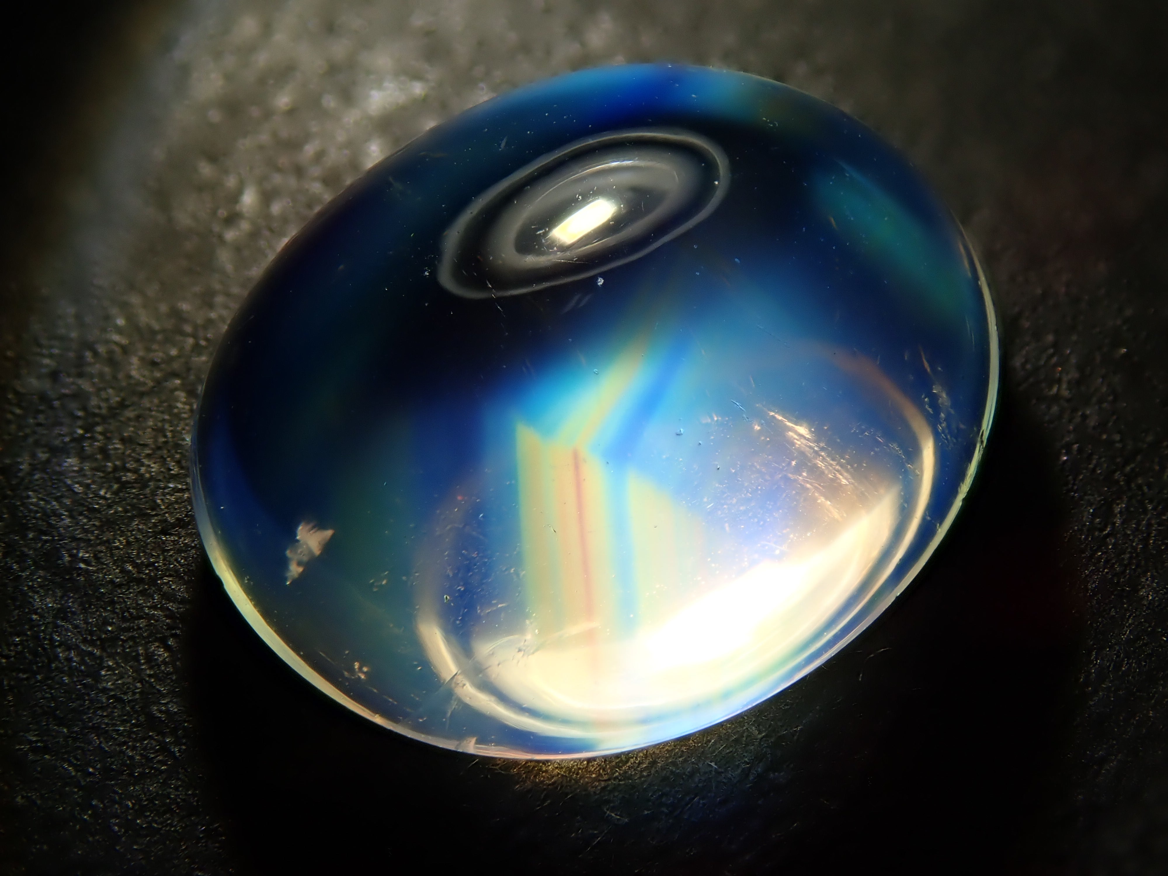 這塊寶石位於斜長石組,介於中長石和拉長石之間。彩虹般的光學效果閃耀著神秘的光芒,讓人忍不住想永遠凝視它。
