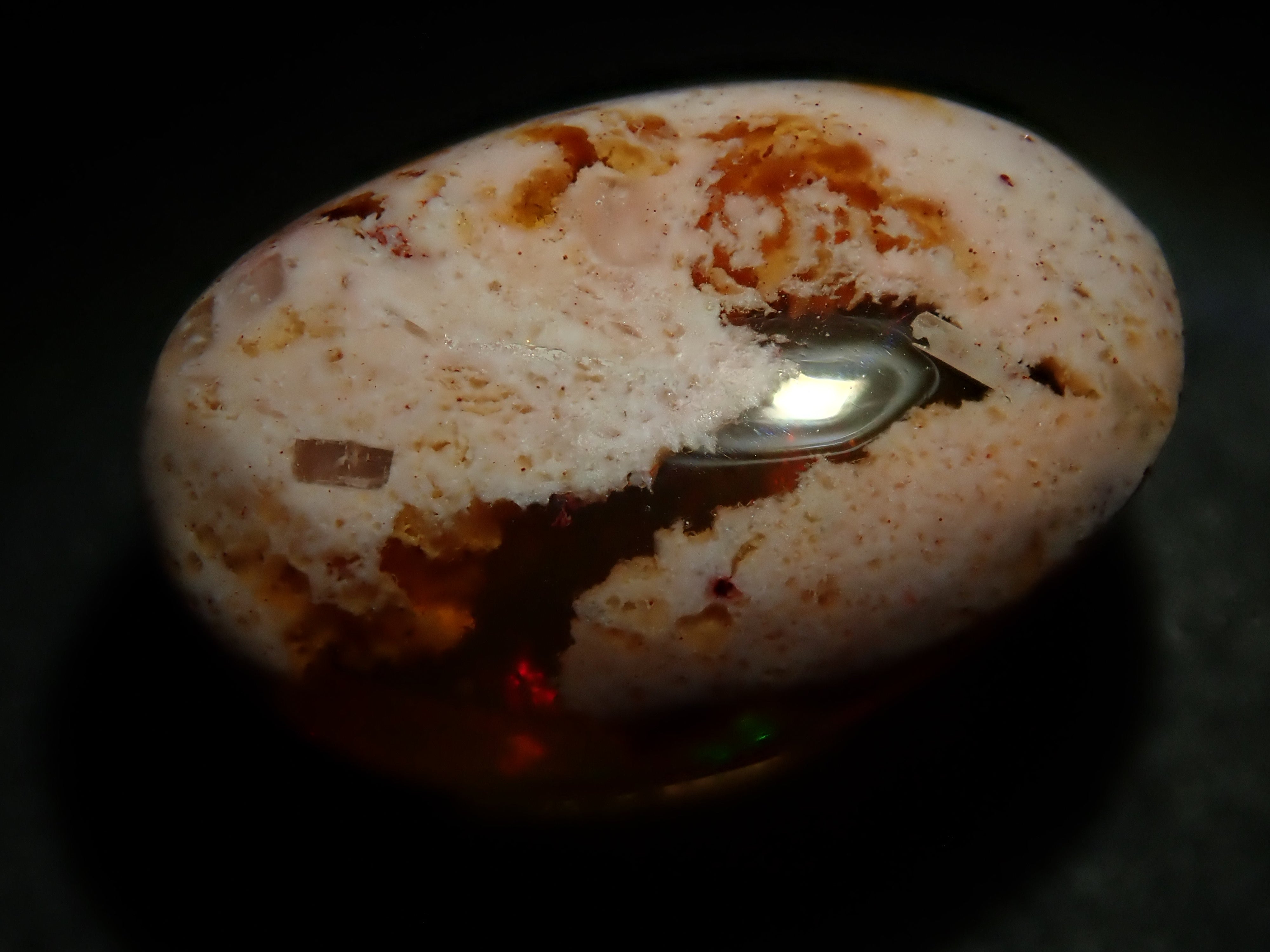 蛋白石是一種以其閃耀的彩虹色澤為特徵的寶石。蛋白石種類繁多,其中尤以坎德拉蛋白石最受收藏家的青睞。它像徵著地球的活力,擁有眾多愛好者,即使是散裝的,也值得細細品味。坎德拉蛋白石是一種天然光澤的寶石。這張照片是用筆型電筒拍攝的。