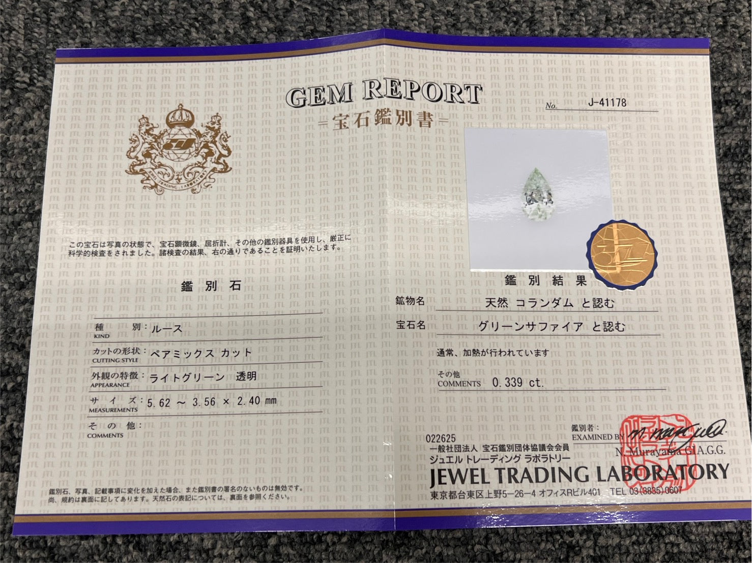 ・重量:0.339ct