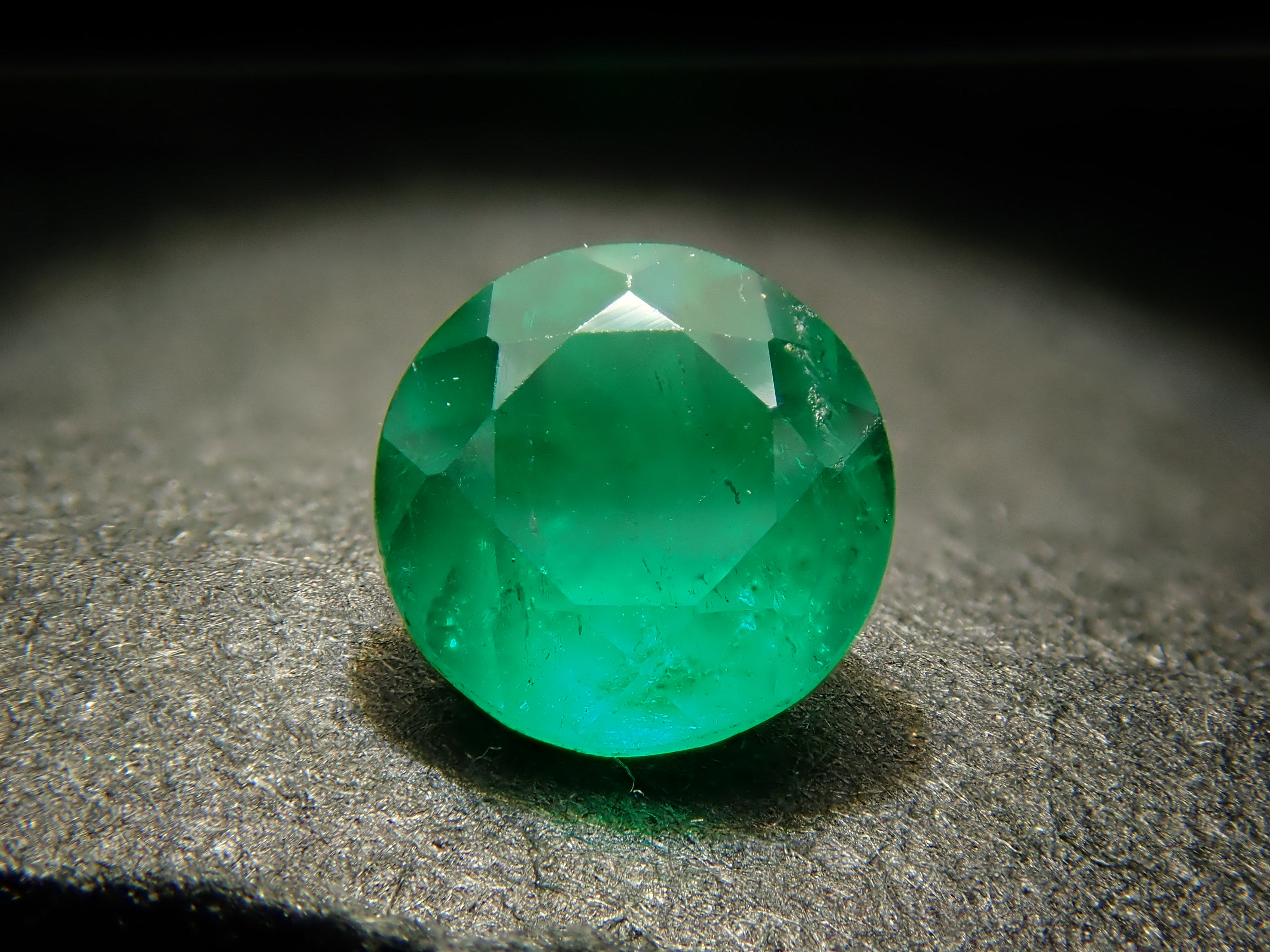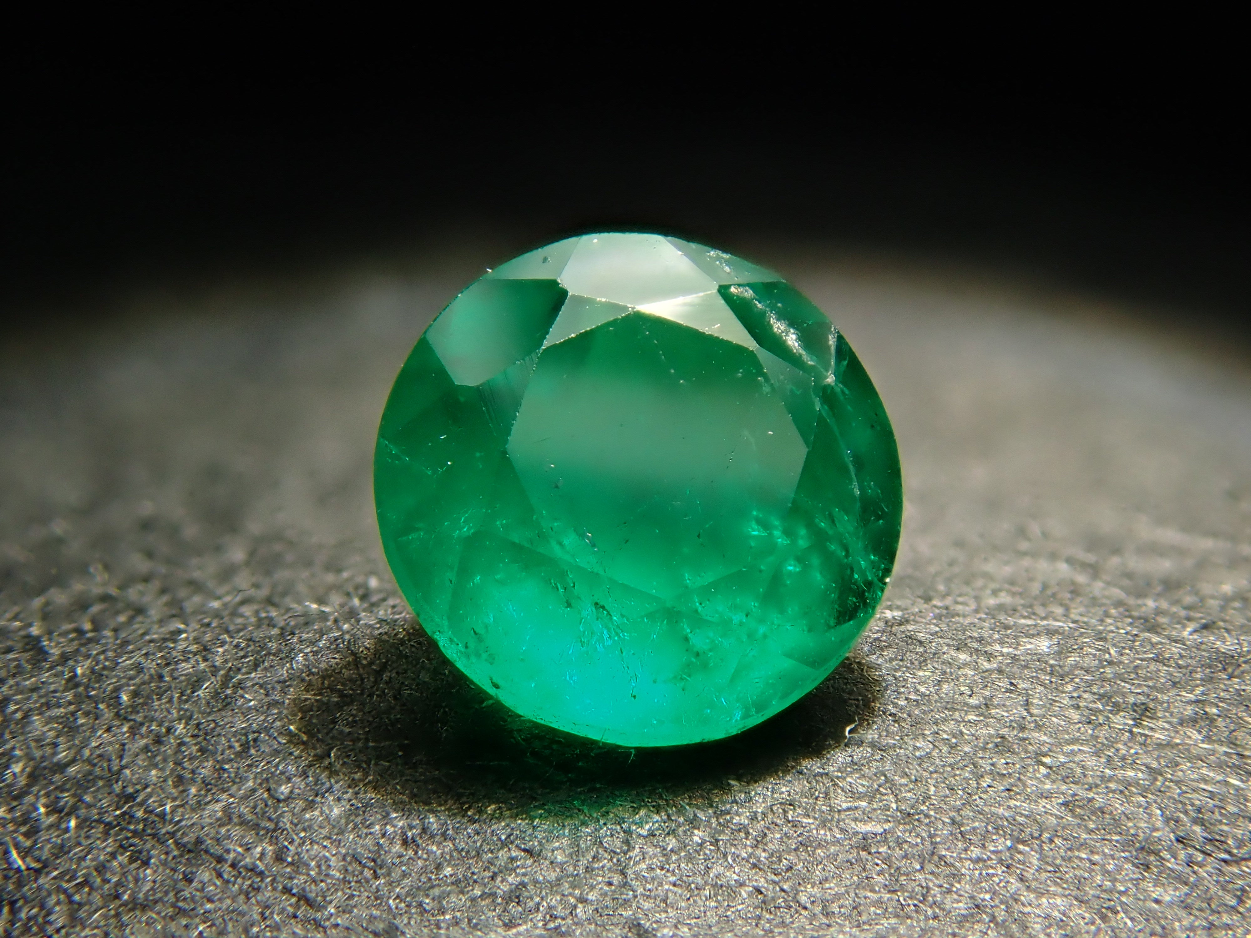 據說祖母綠的美麗綠色因產地而異。這顆哥倫比亞祖母綠據說擁有特別深邃的綠色。祖母綠通常容易出現刮痕,因此通常會用油進行處理,使刮痕不那麼明顯。請欣賞它優雅的綠色。這顆3.7毫米的圓形哥倫比亞祖母綠顏色深邃。