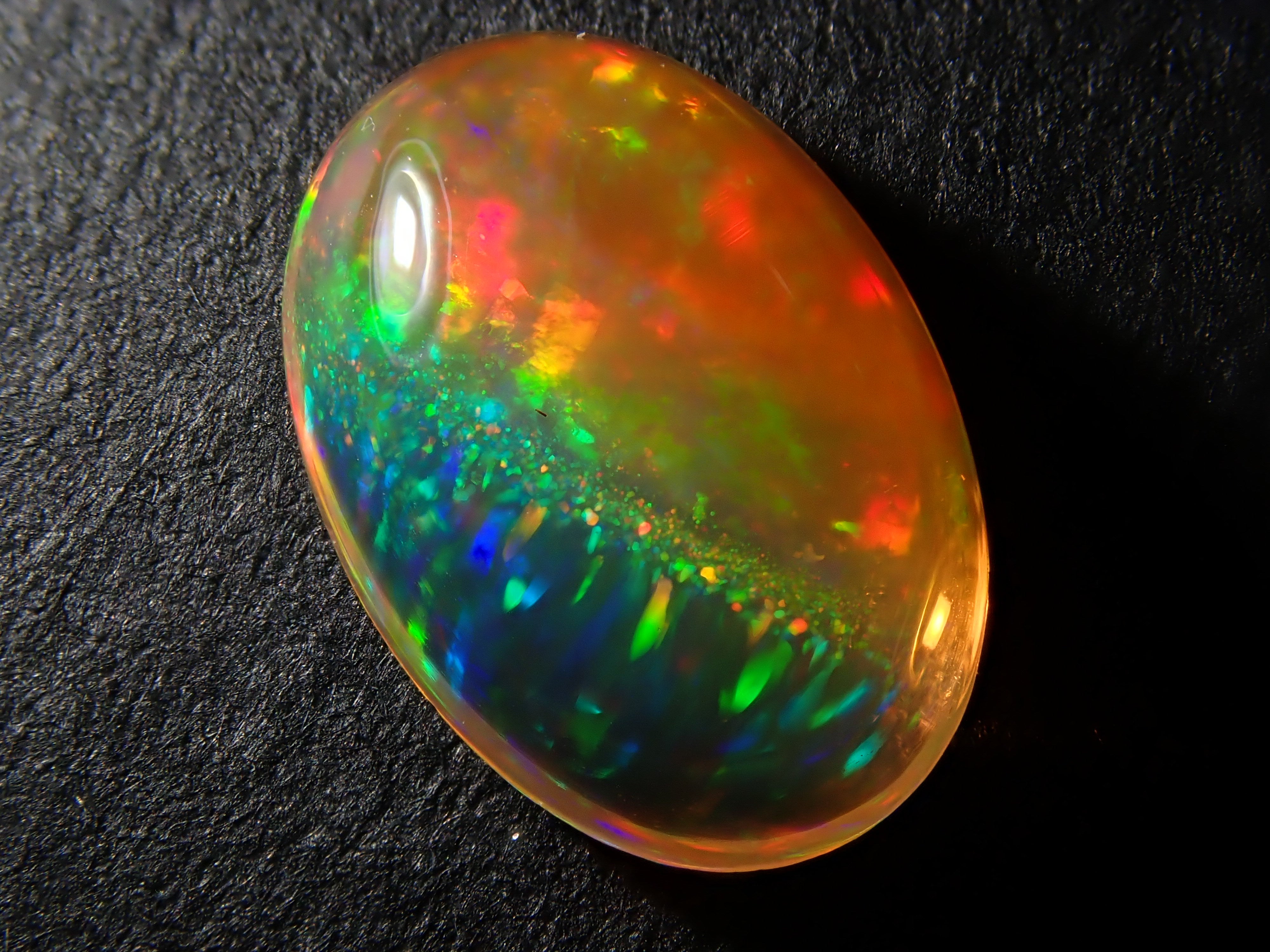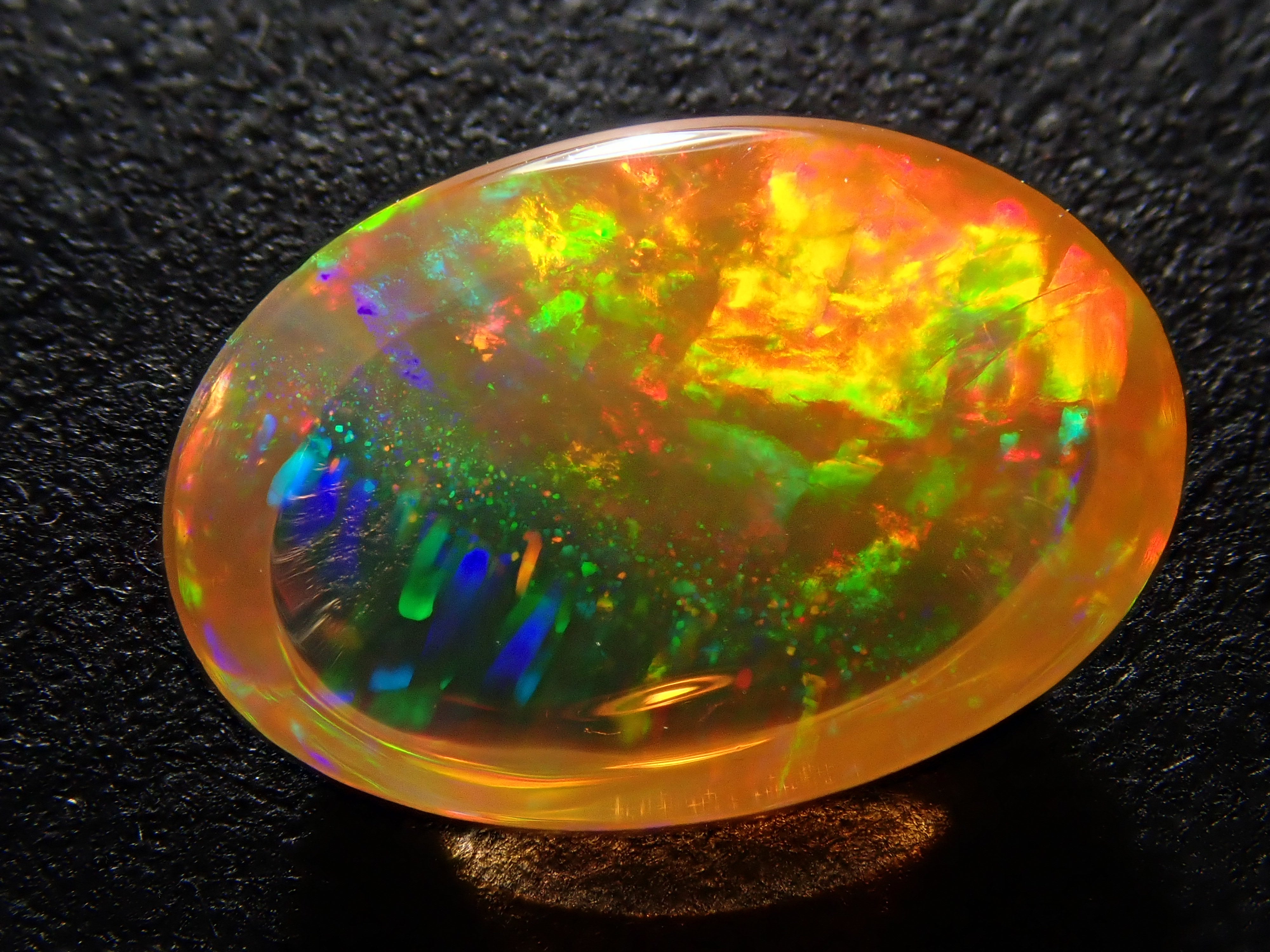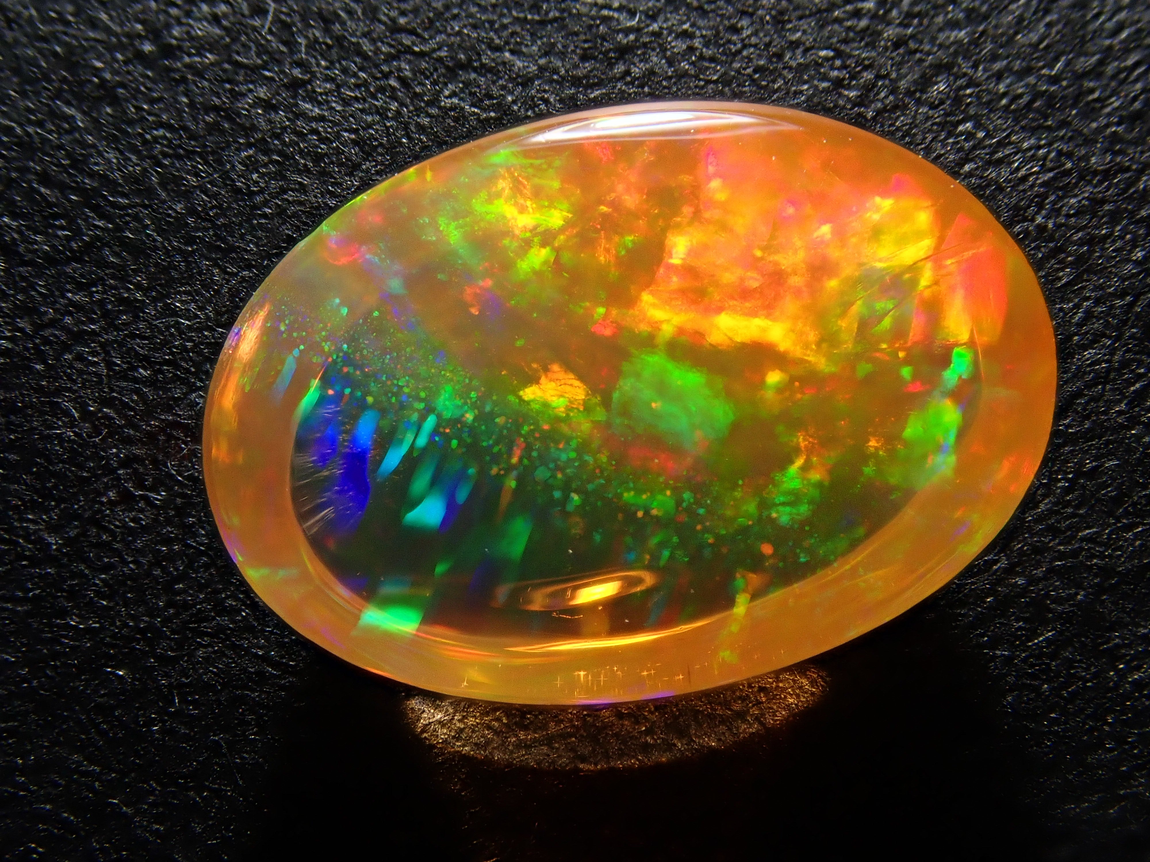 自古羅馬時代以來,蛋白石就廣受歡迎。火蛋白石是一種以紅色到橘色為底色的蛋白石,形狀像「火」。這張照片是用筆型電筒拍攝的。