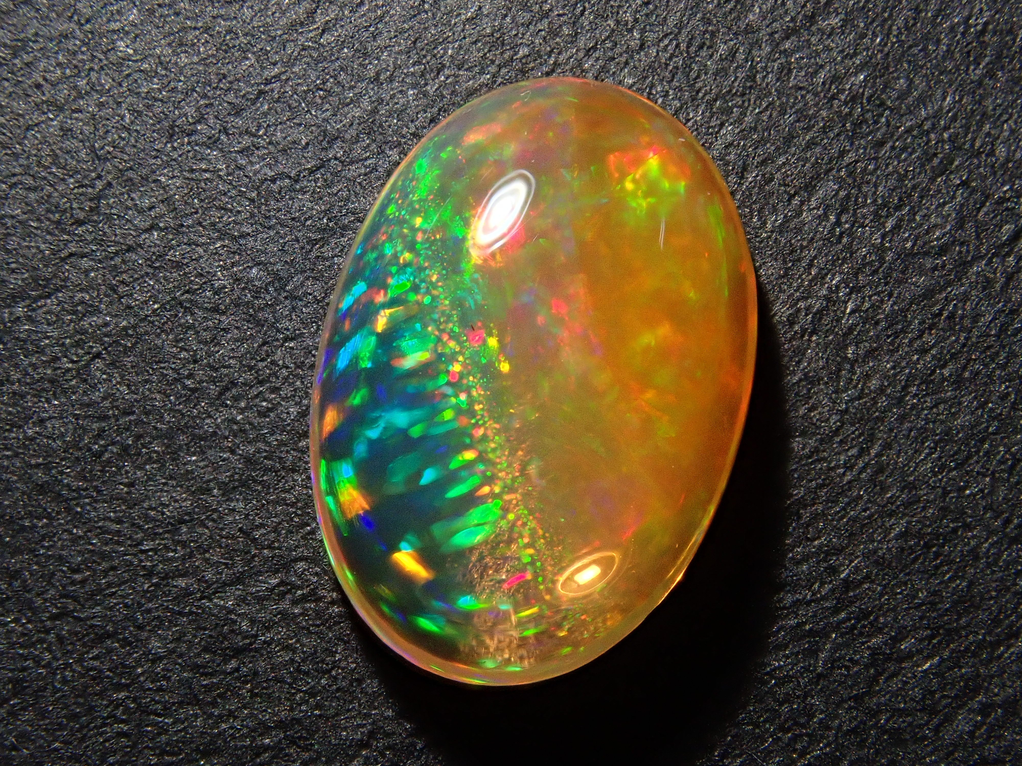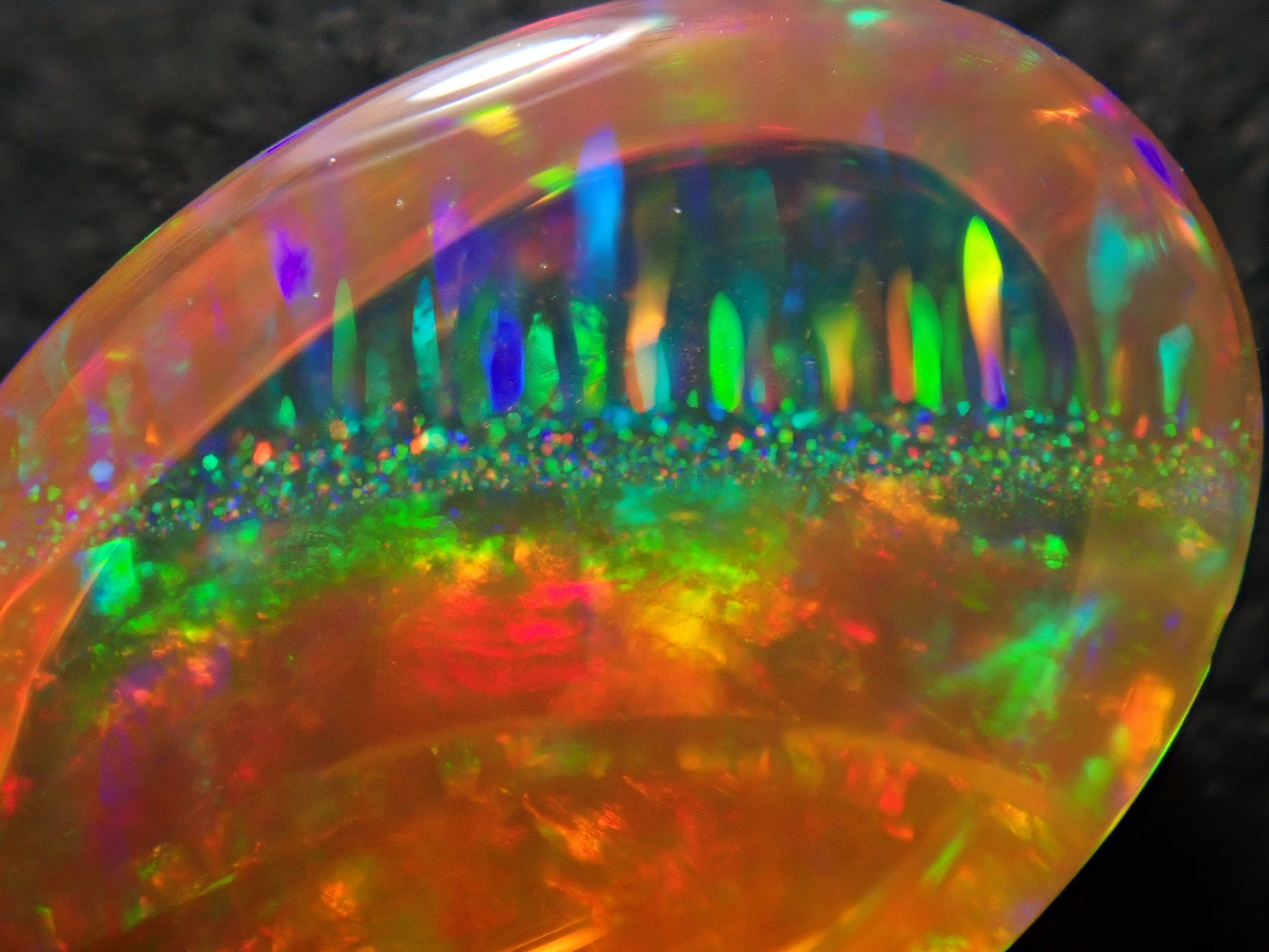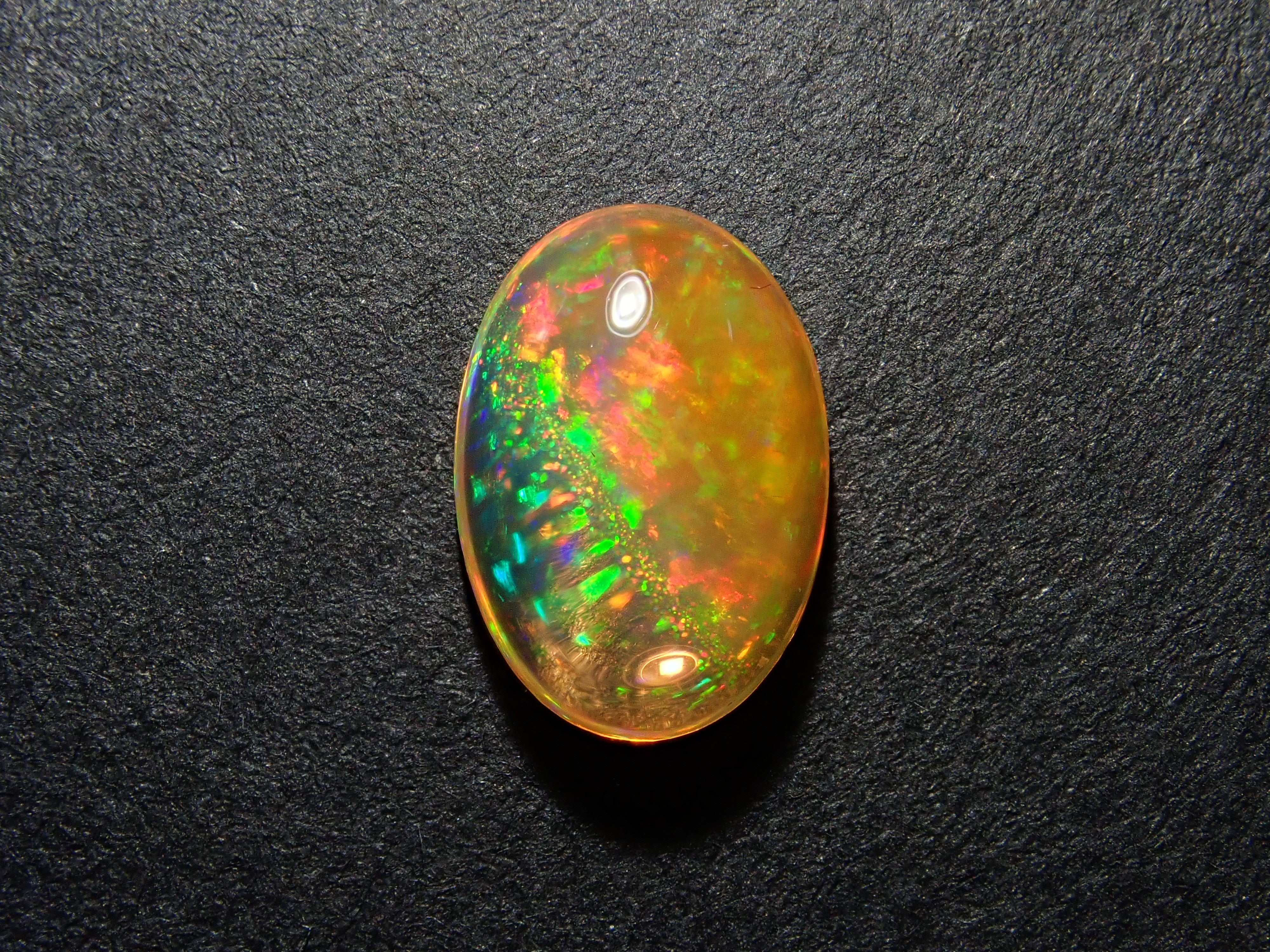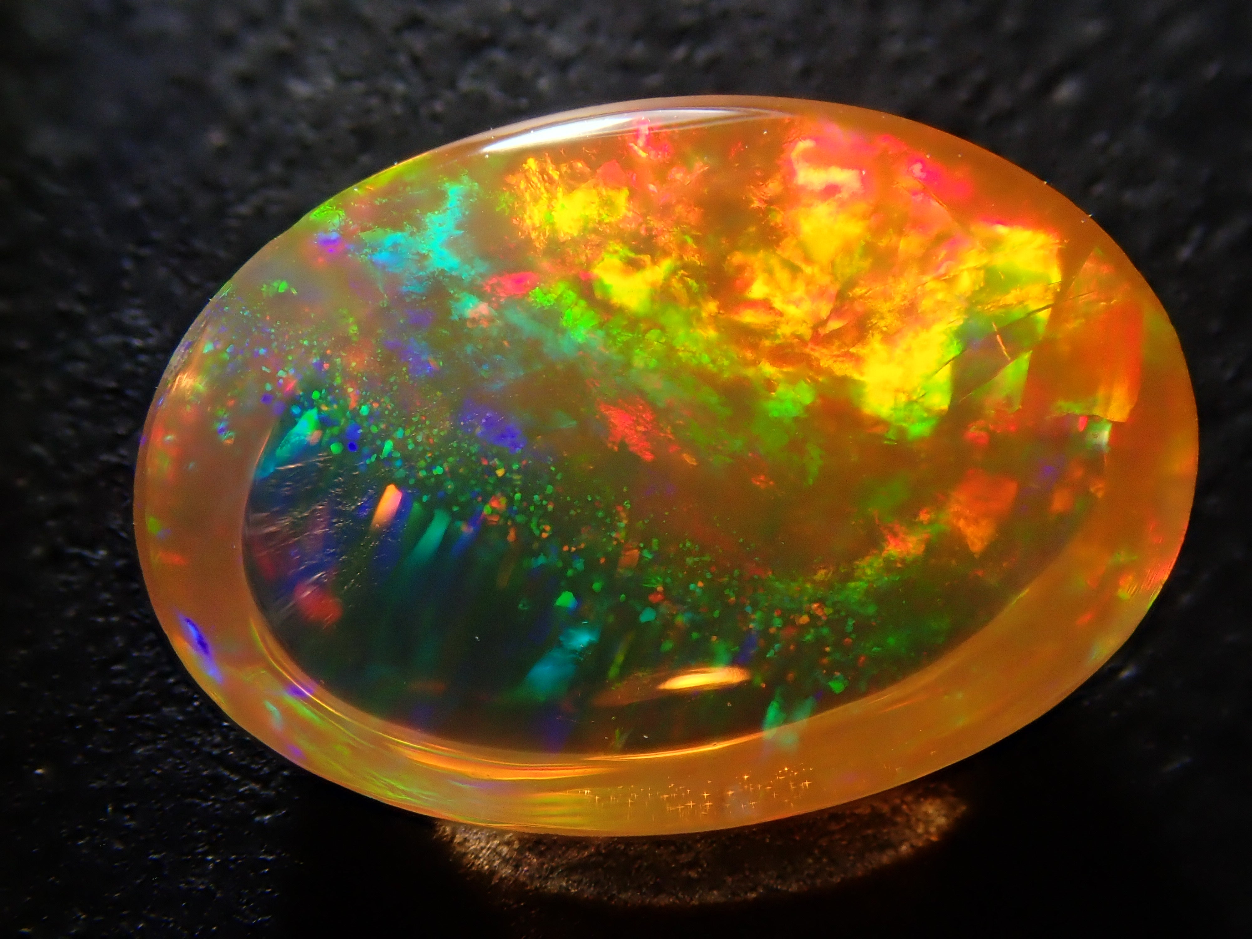 自古羅馬時代以來,蛋白石就廣受歡迎。火蛋白石是一種以紅色到橘色為底色的蛋白石,形狀像「火」。這張照片是用筆型電筒拍攝的。