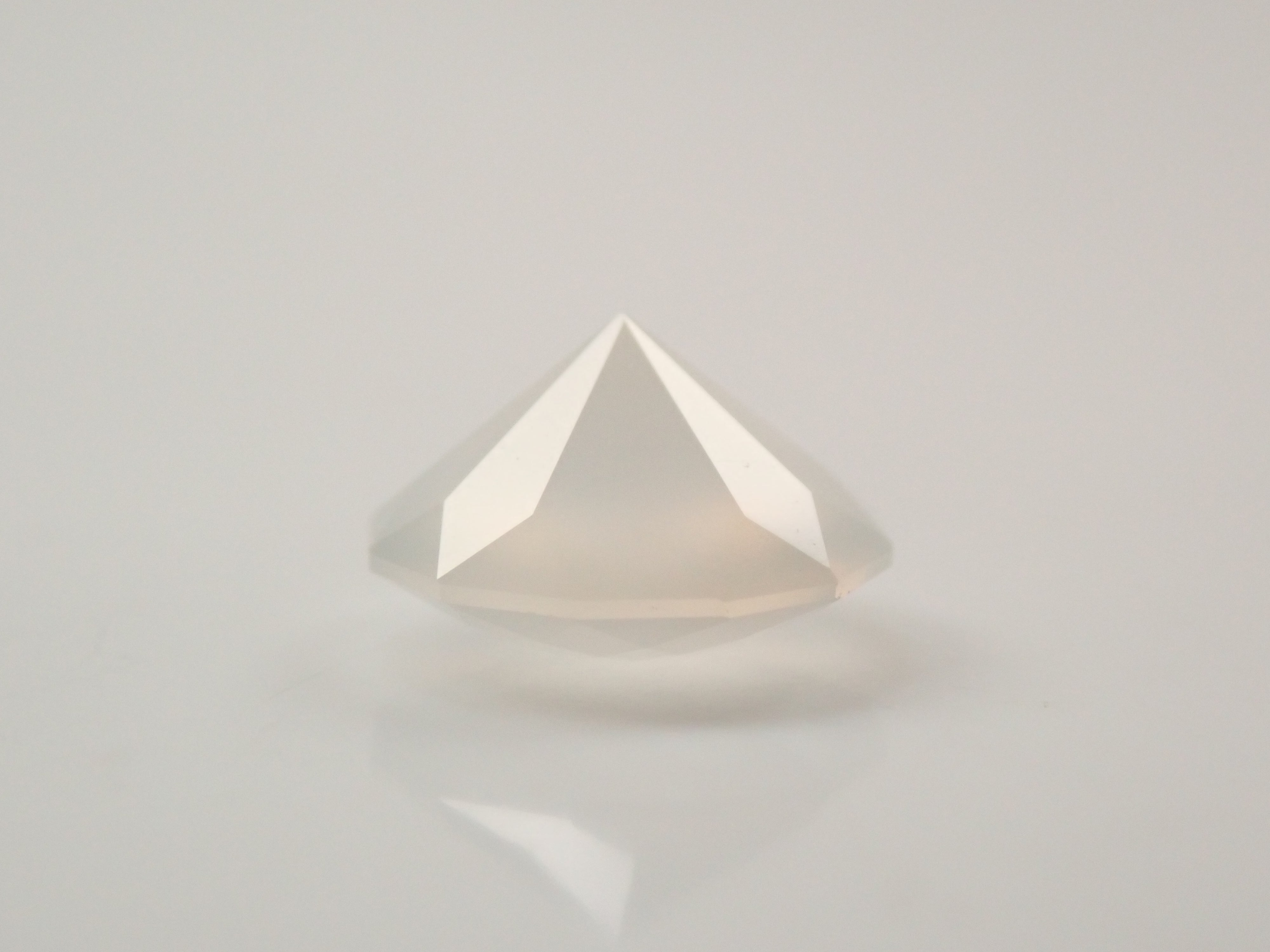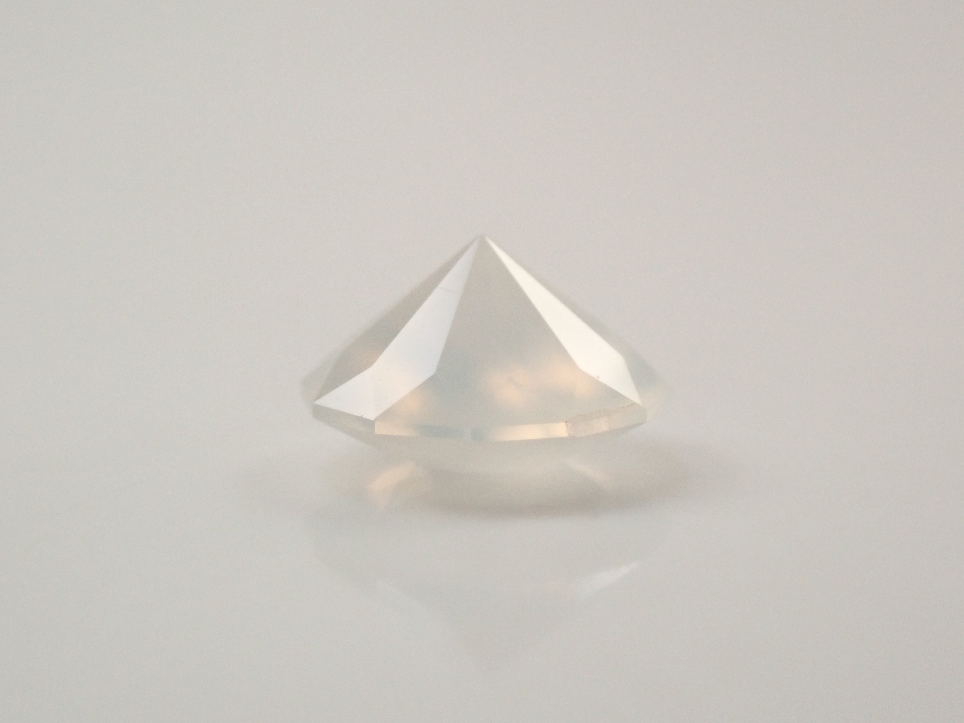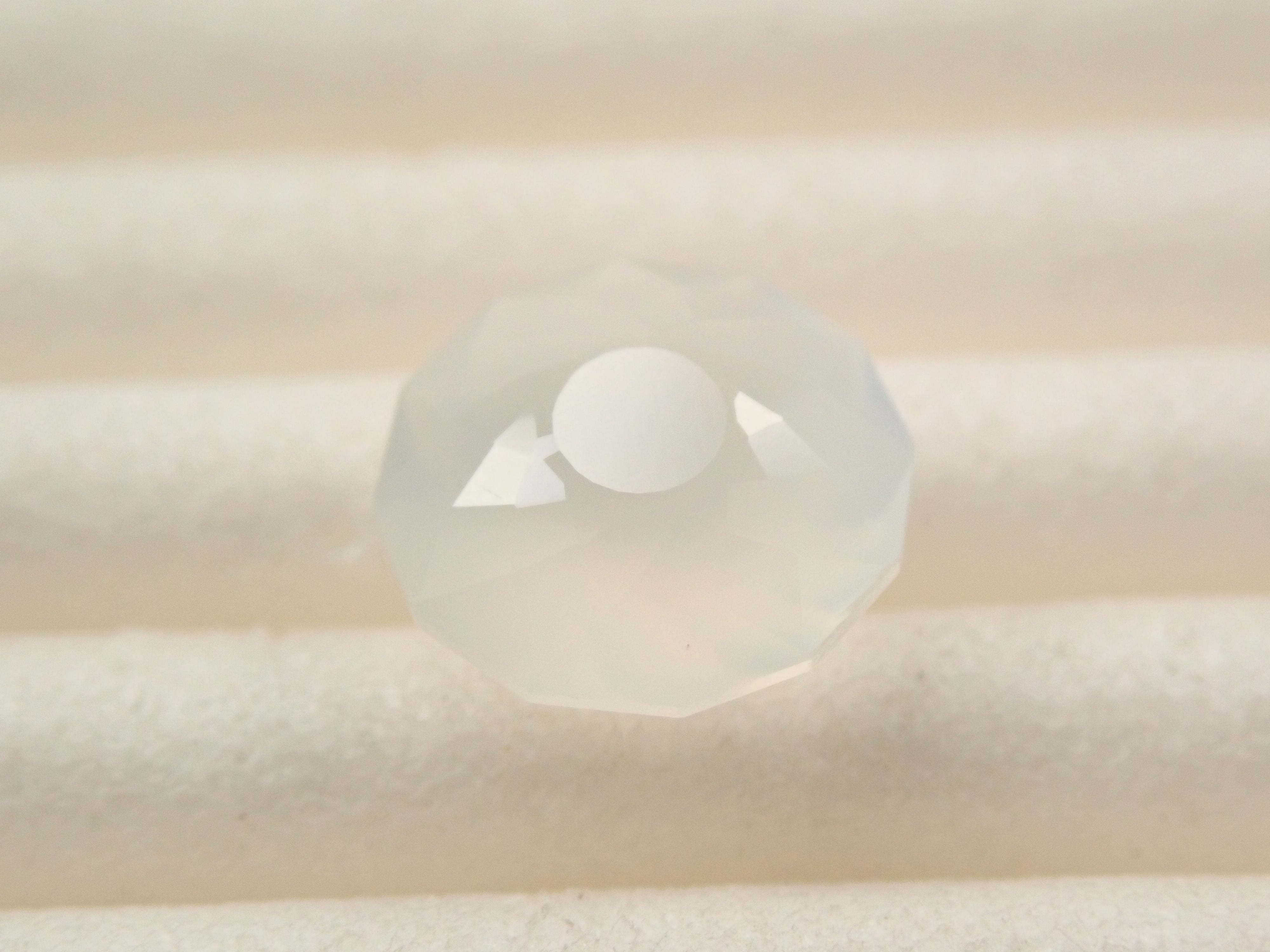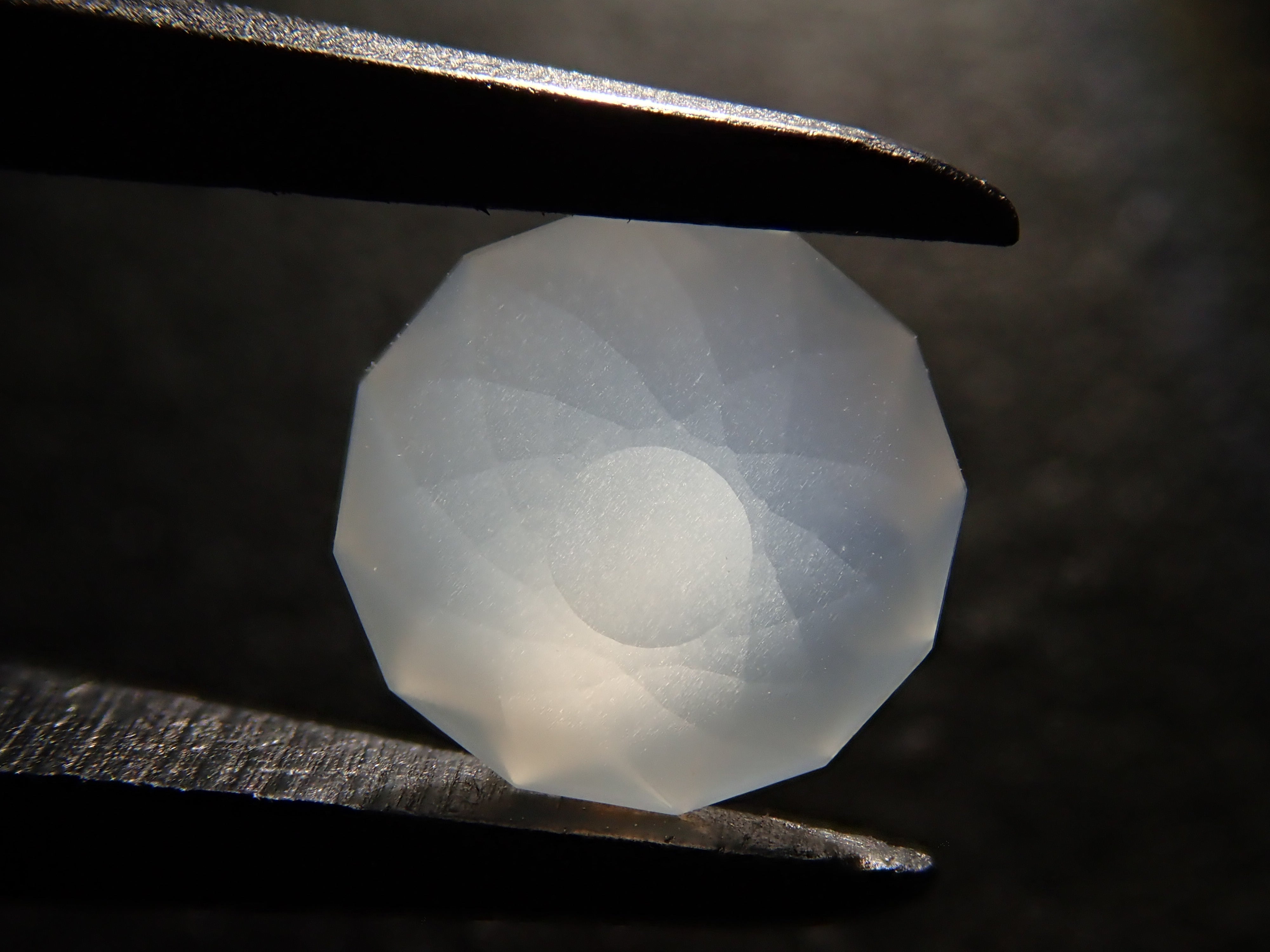 聚光燈照在月光石中央。這種明亮的光學效果,類似月光,是月光石的一大特徵。這張照片是用筆型電筒拍攝的。由斯里蘭卡拋光師桑傑(Sanjay)拋光。