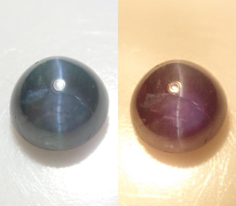 紫翠玉又被稱為「寶石之王」。它是一種神秘的寶石,顏色會從綠色變為紅色,也被稱為“白天是祖母綠,晚上是紅寶石”。紫翠玉具有貓眼效應。照片是使用筆型手電筒和白熾燈拍攝的。請使用紅色變色筆型手電筒欣賞它的顏色變化。
