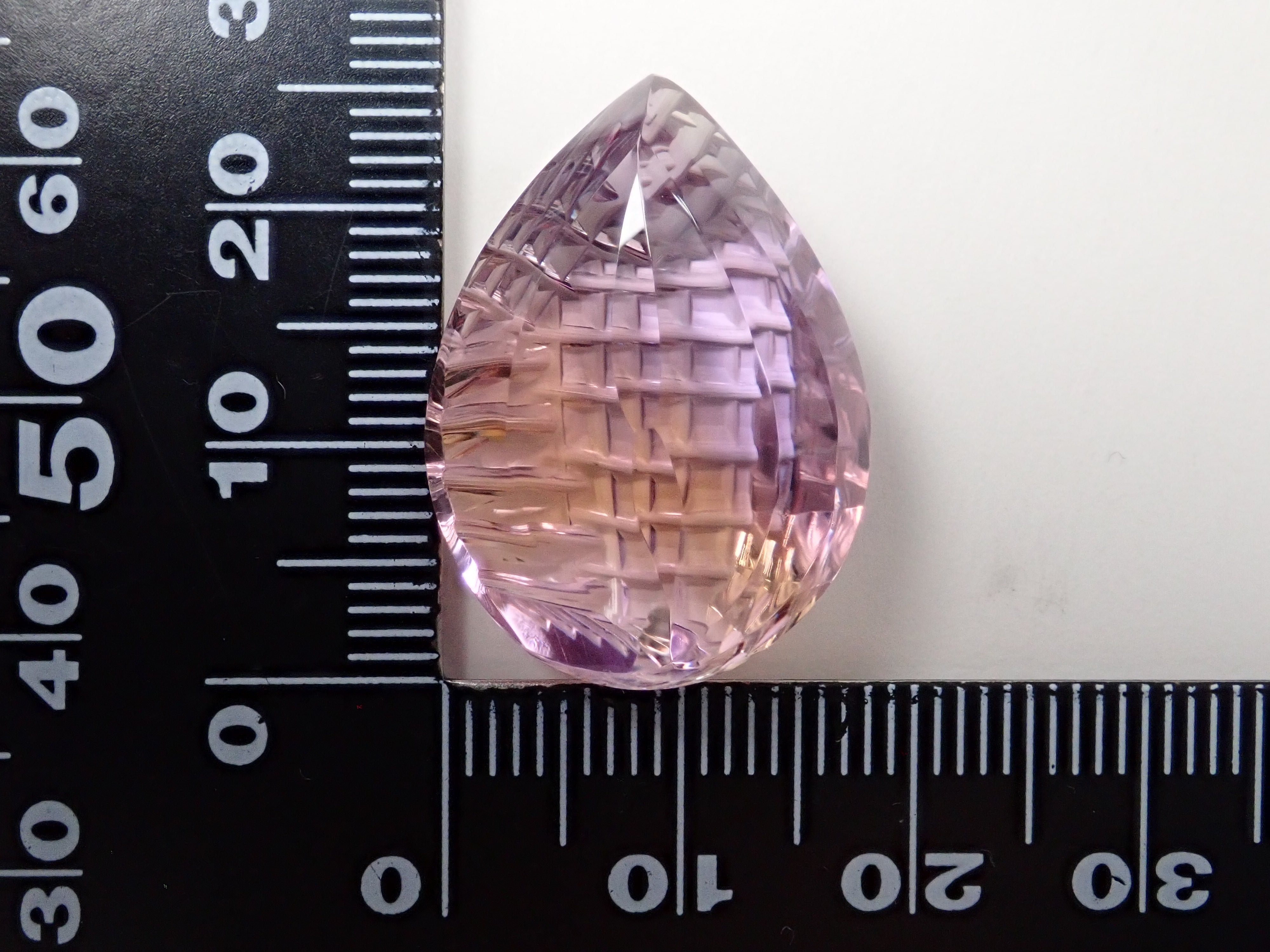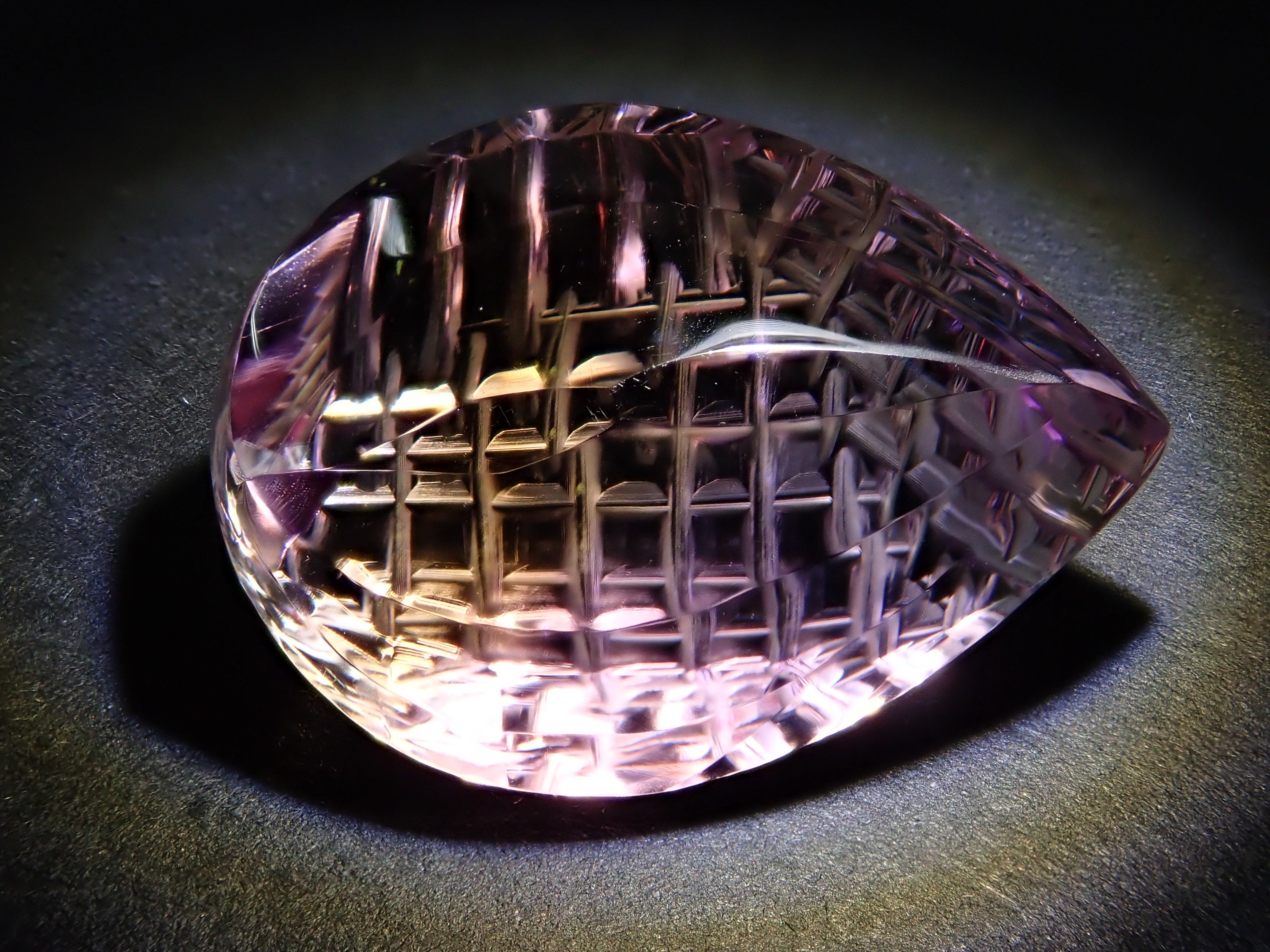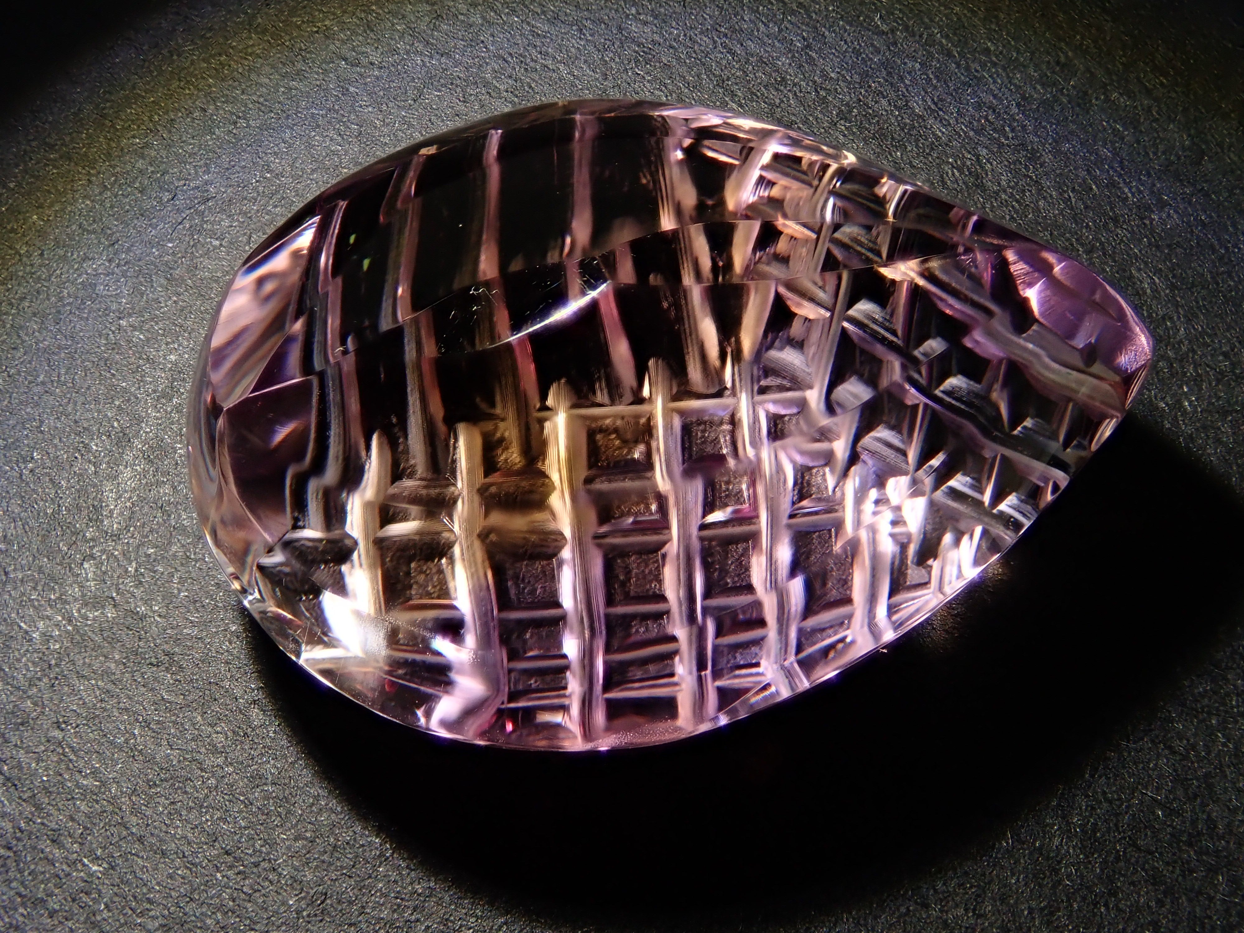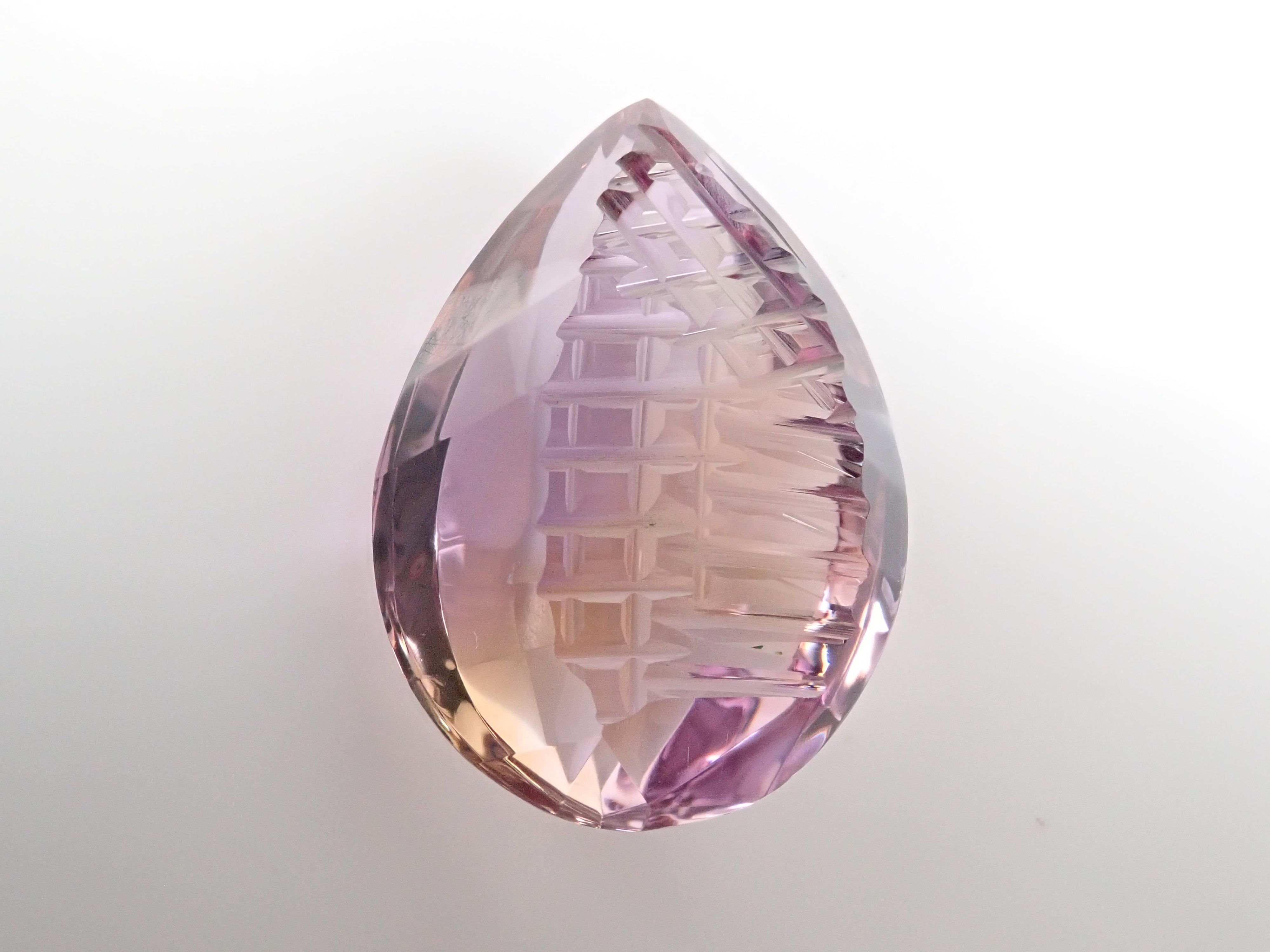 山梨縣引以為傲的一流寶石拋光師 這是一顆由山本武士切割的精美紫黃晶。這顆寶石重達29克拉,您可以用肉眼欣賞它美麗的光澤和拋光效果。