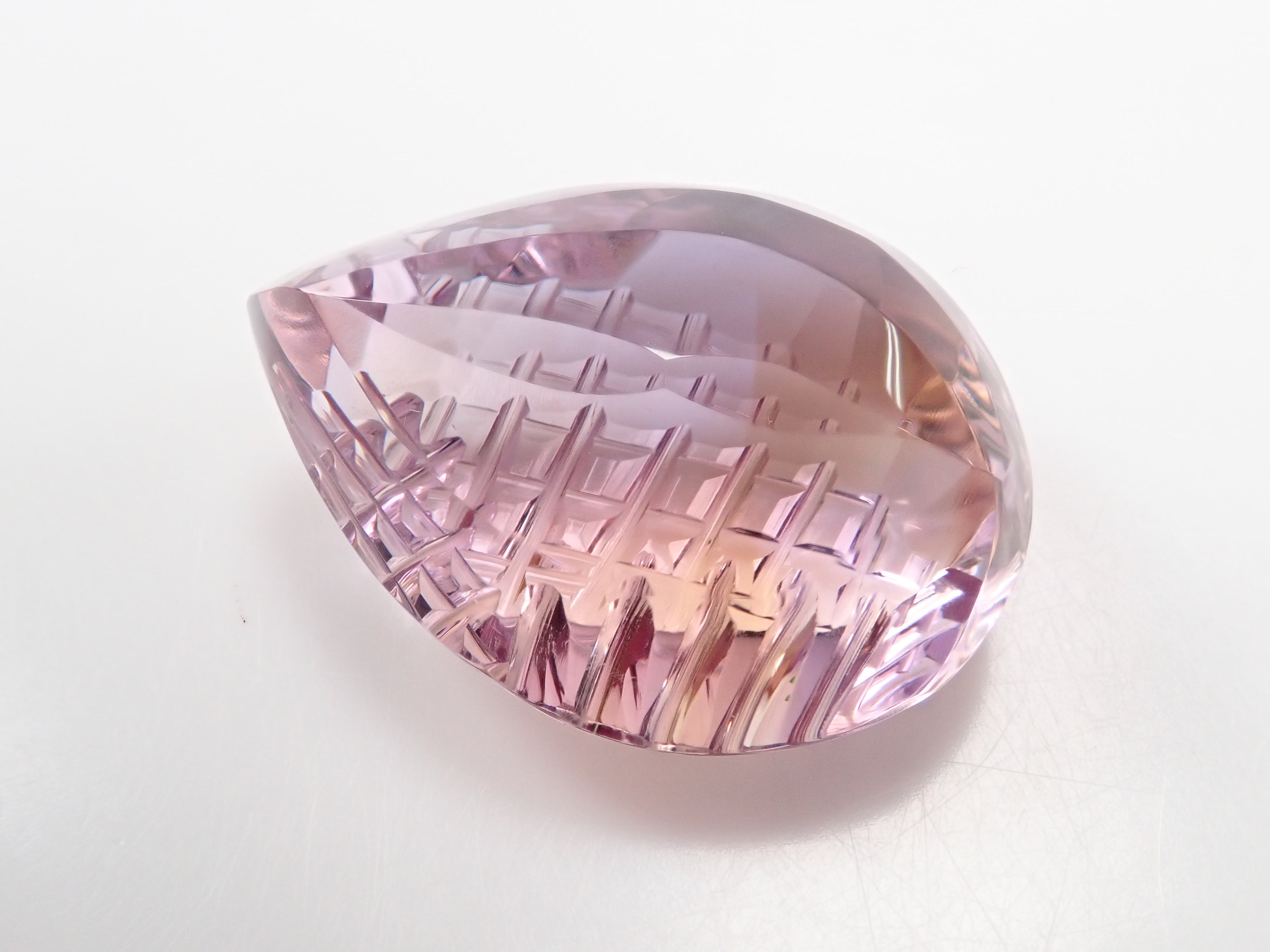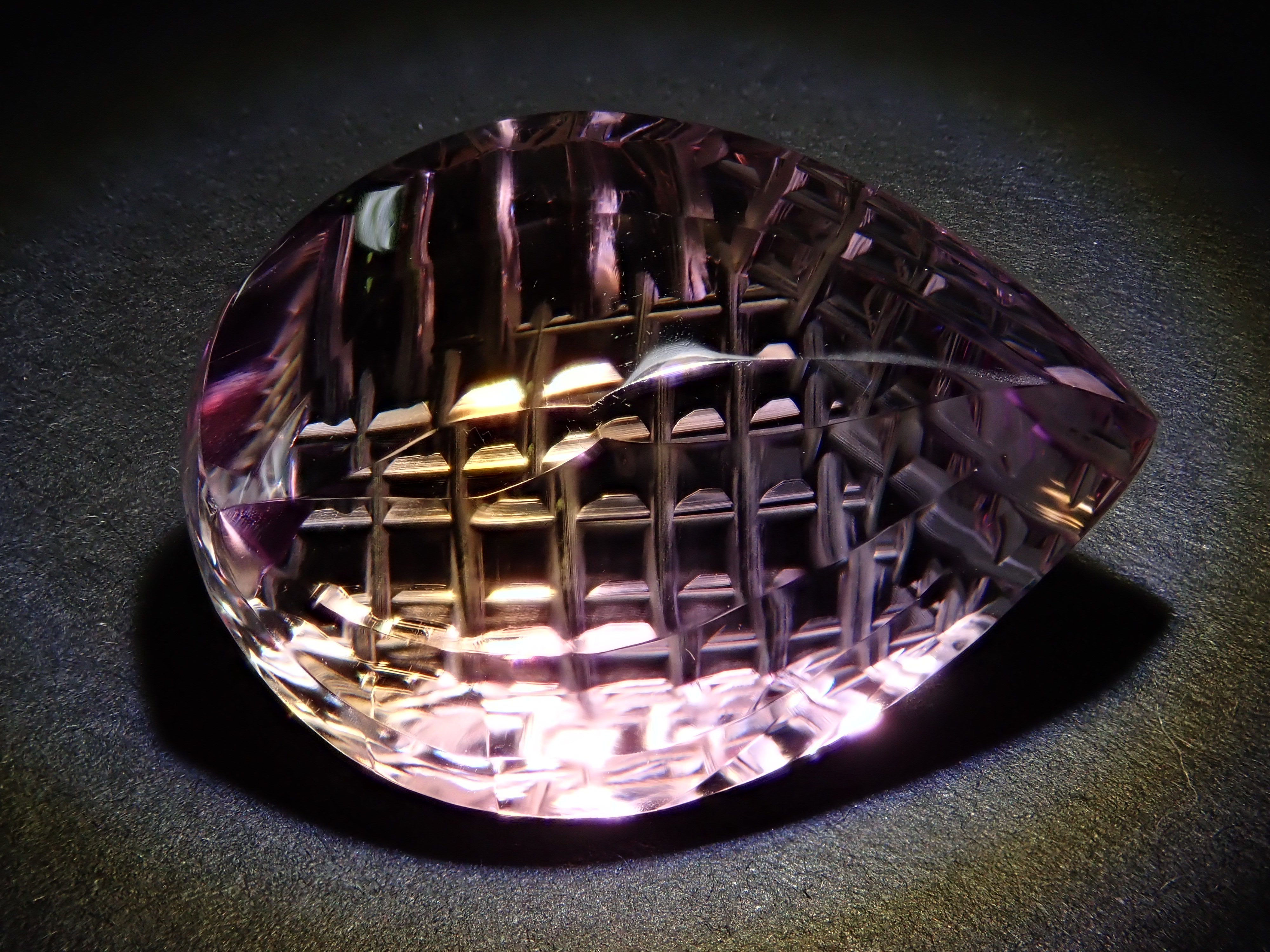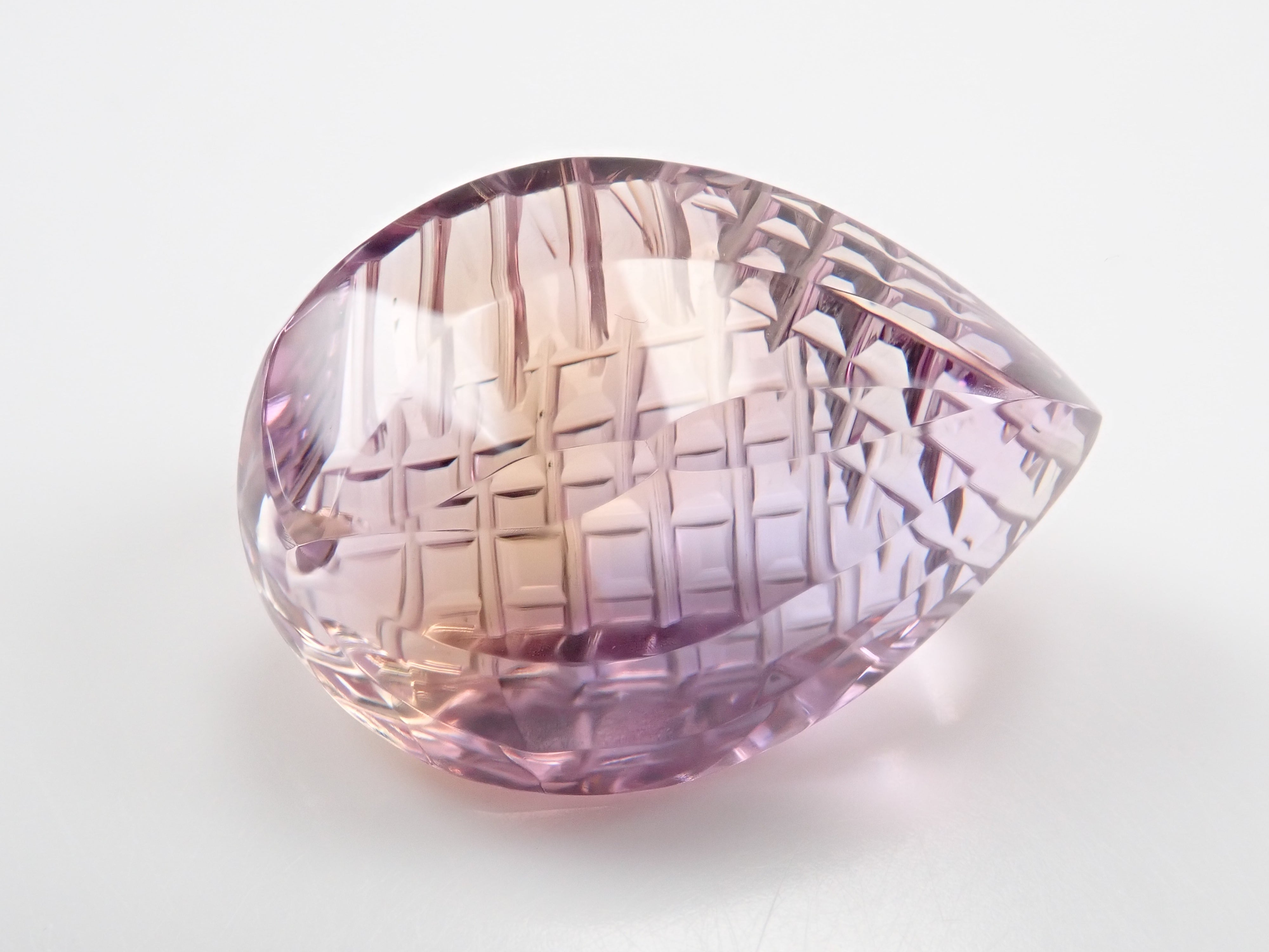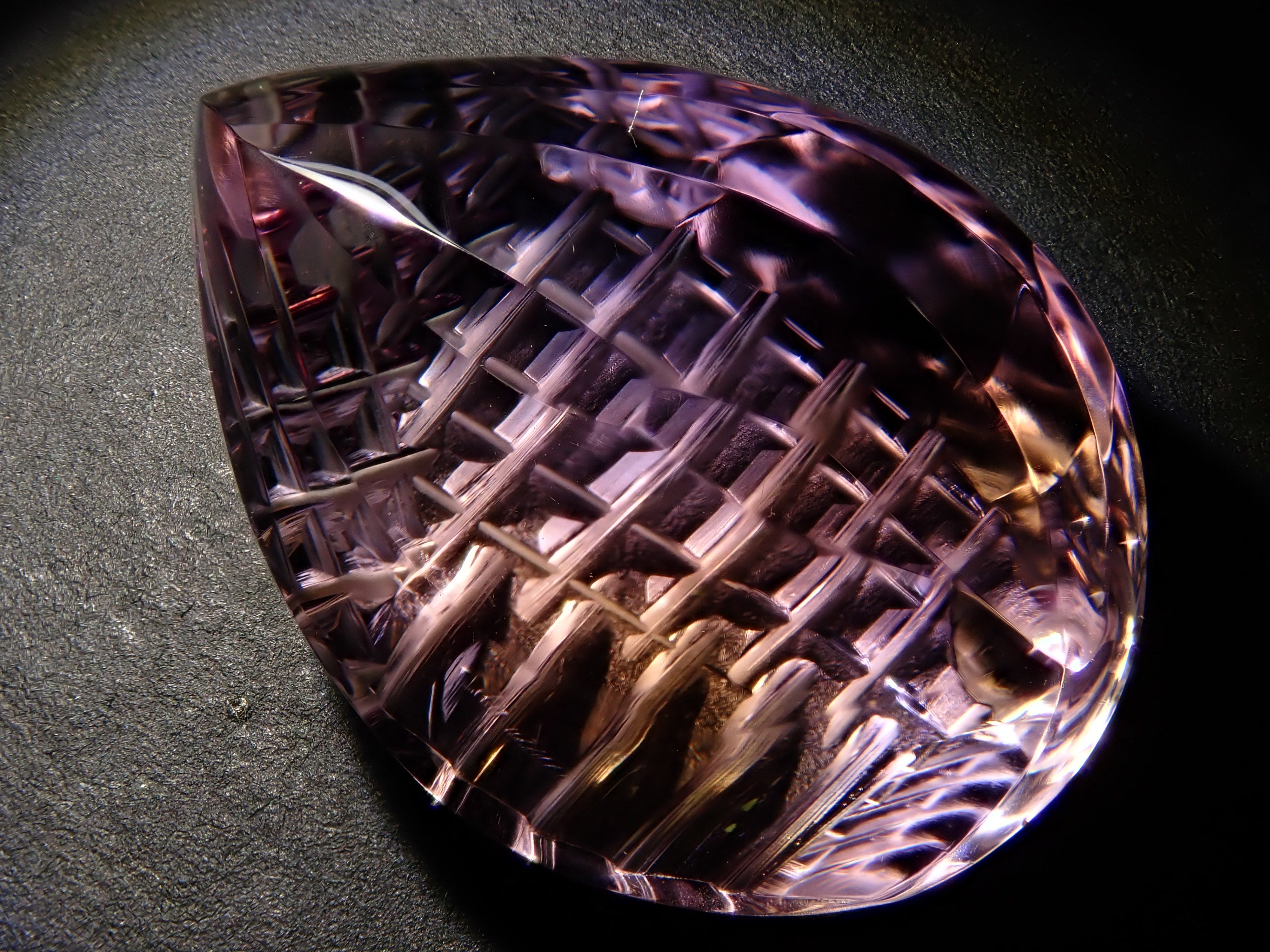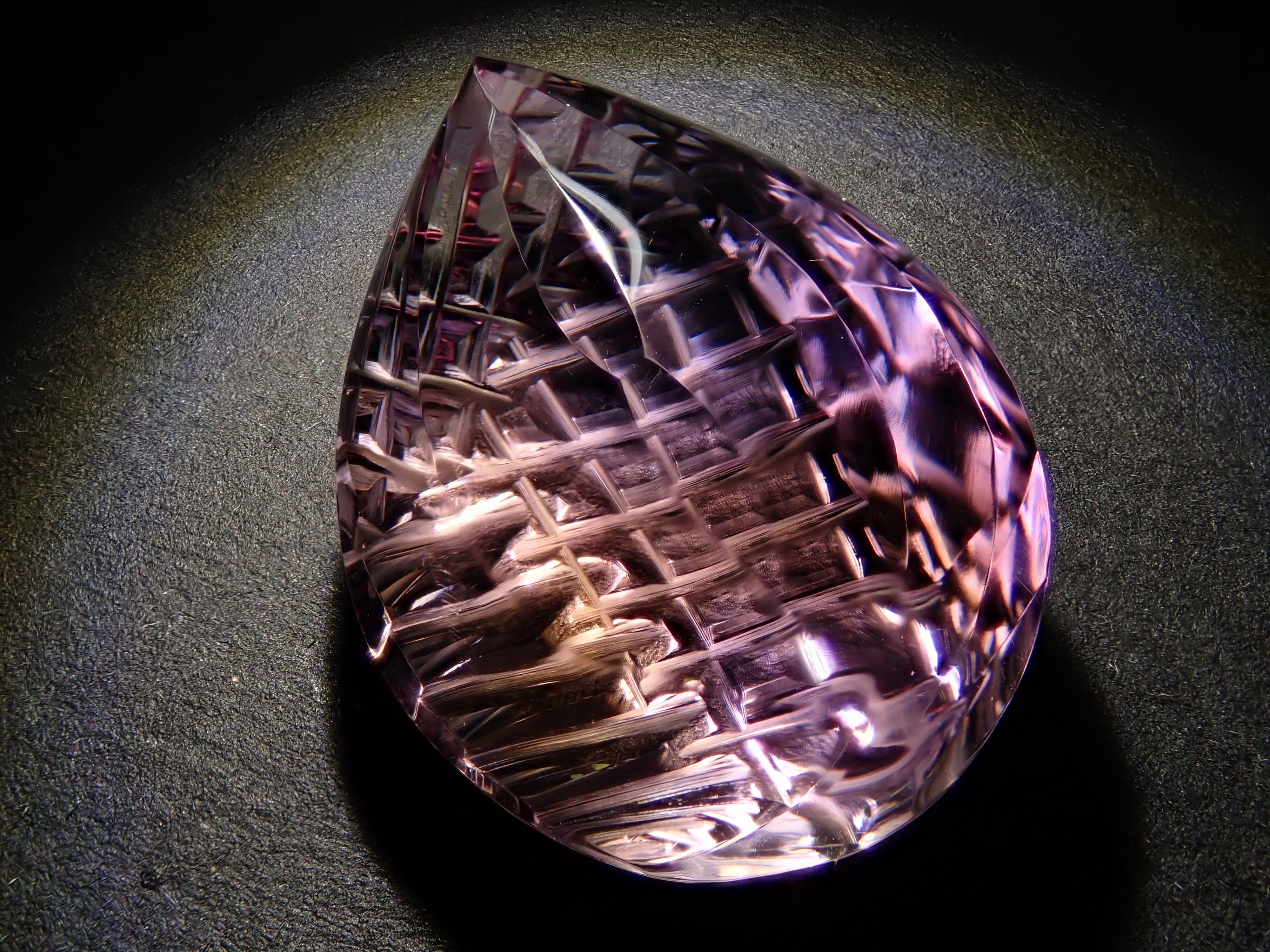 山梨縣引以為傲的一流寶石拋光師 這是一顆由山本武士切割的精美紫黃晶。這顆寶石重達29克拉,您可以用肉眼欣賞它美麗的光澤和拋光效果。