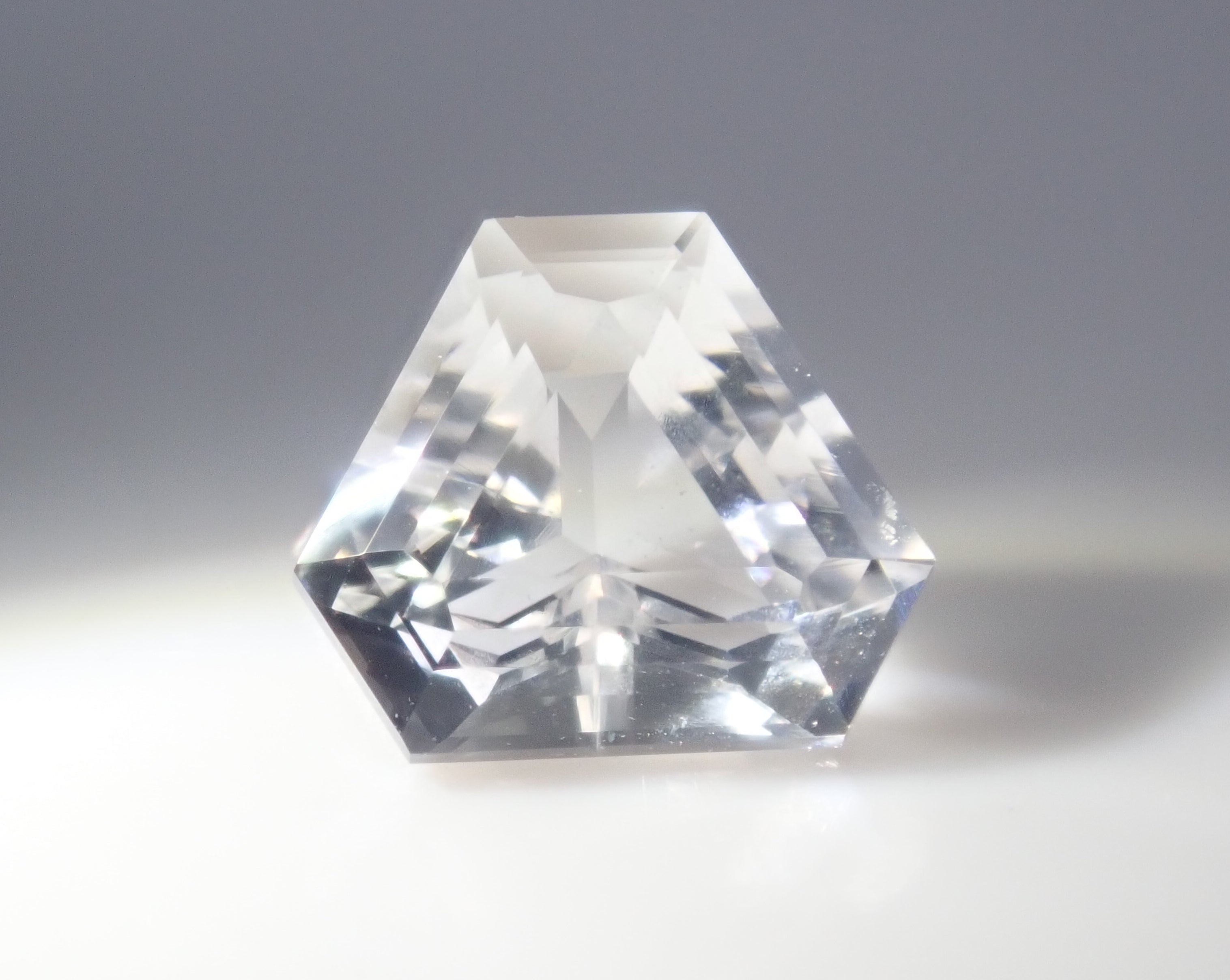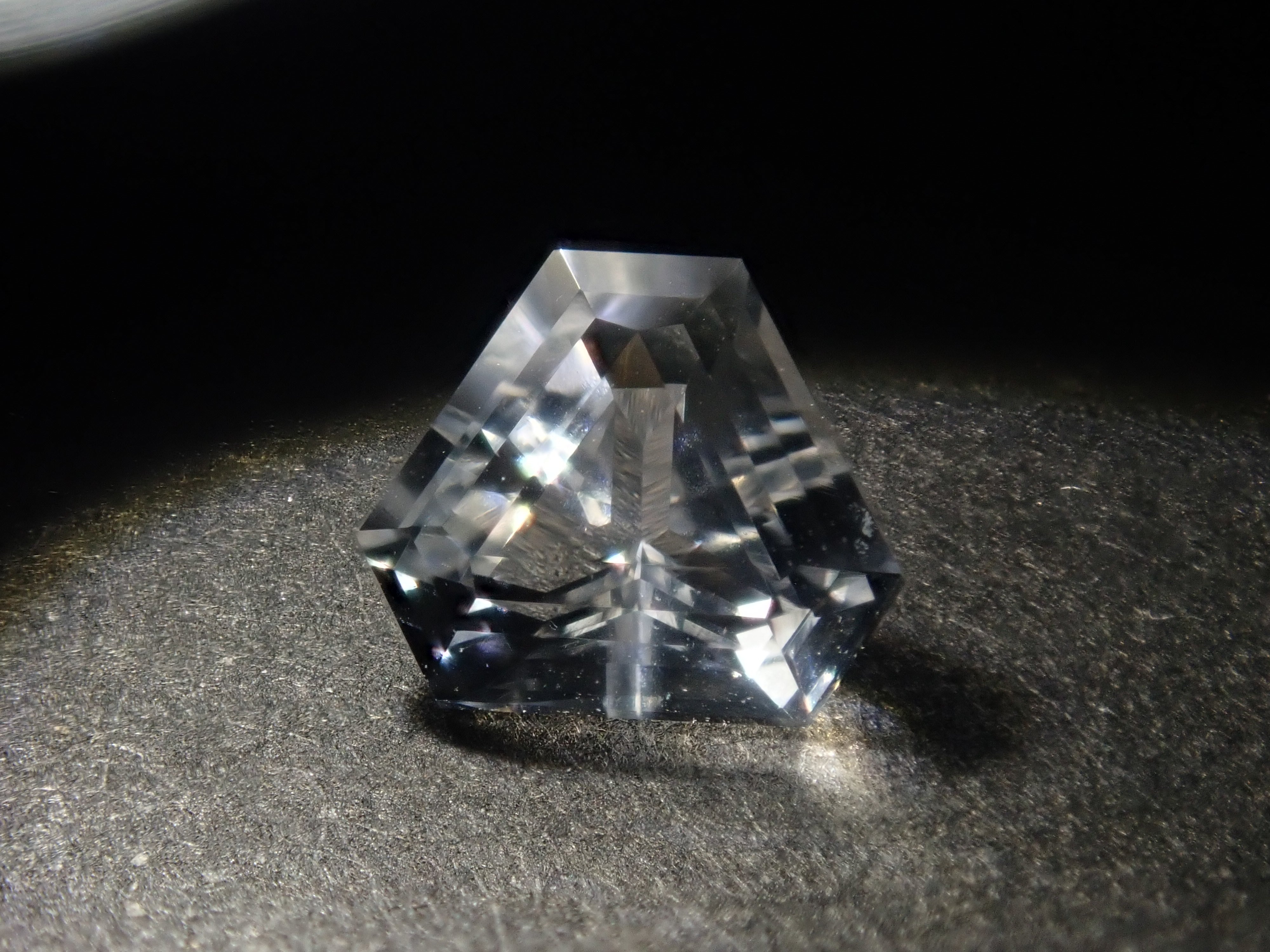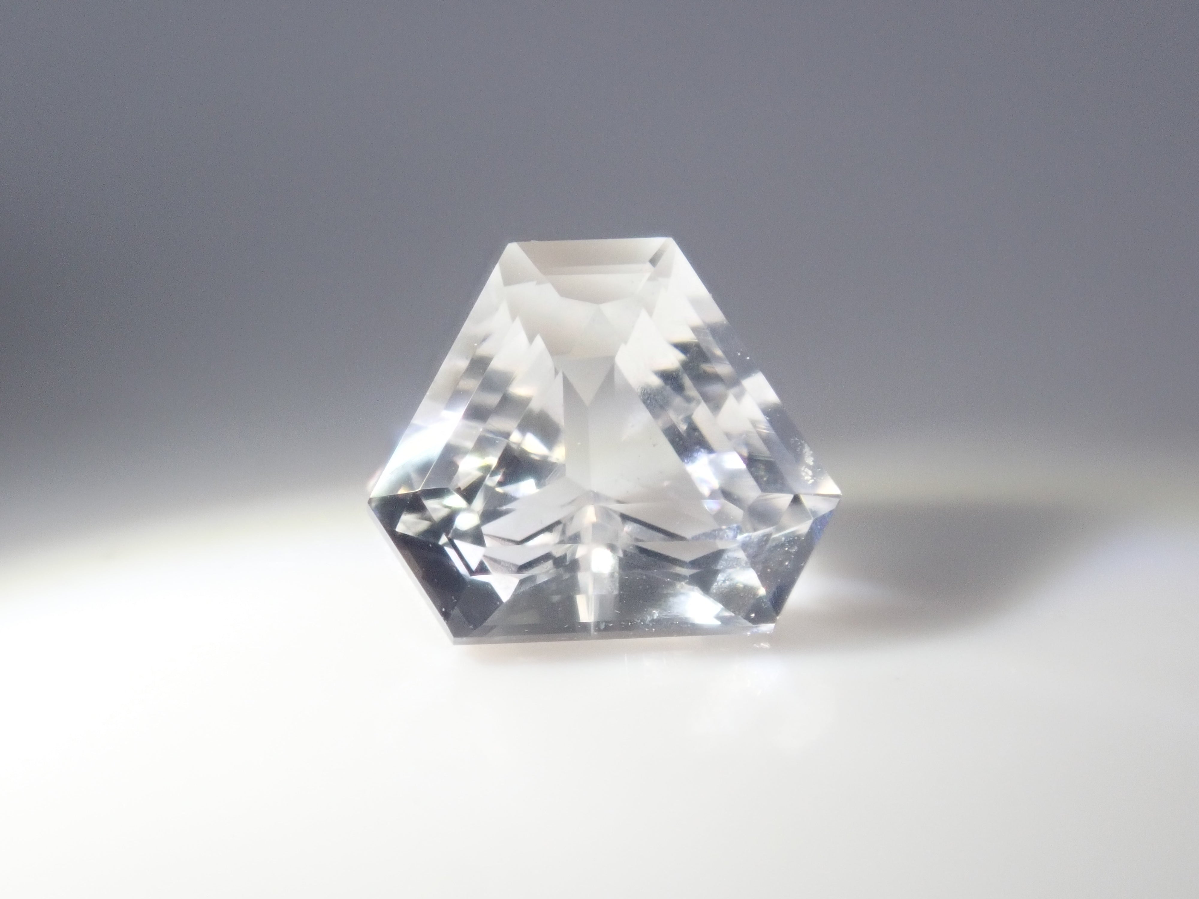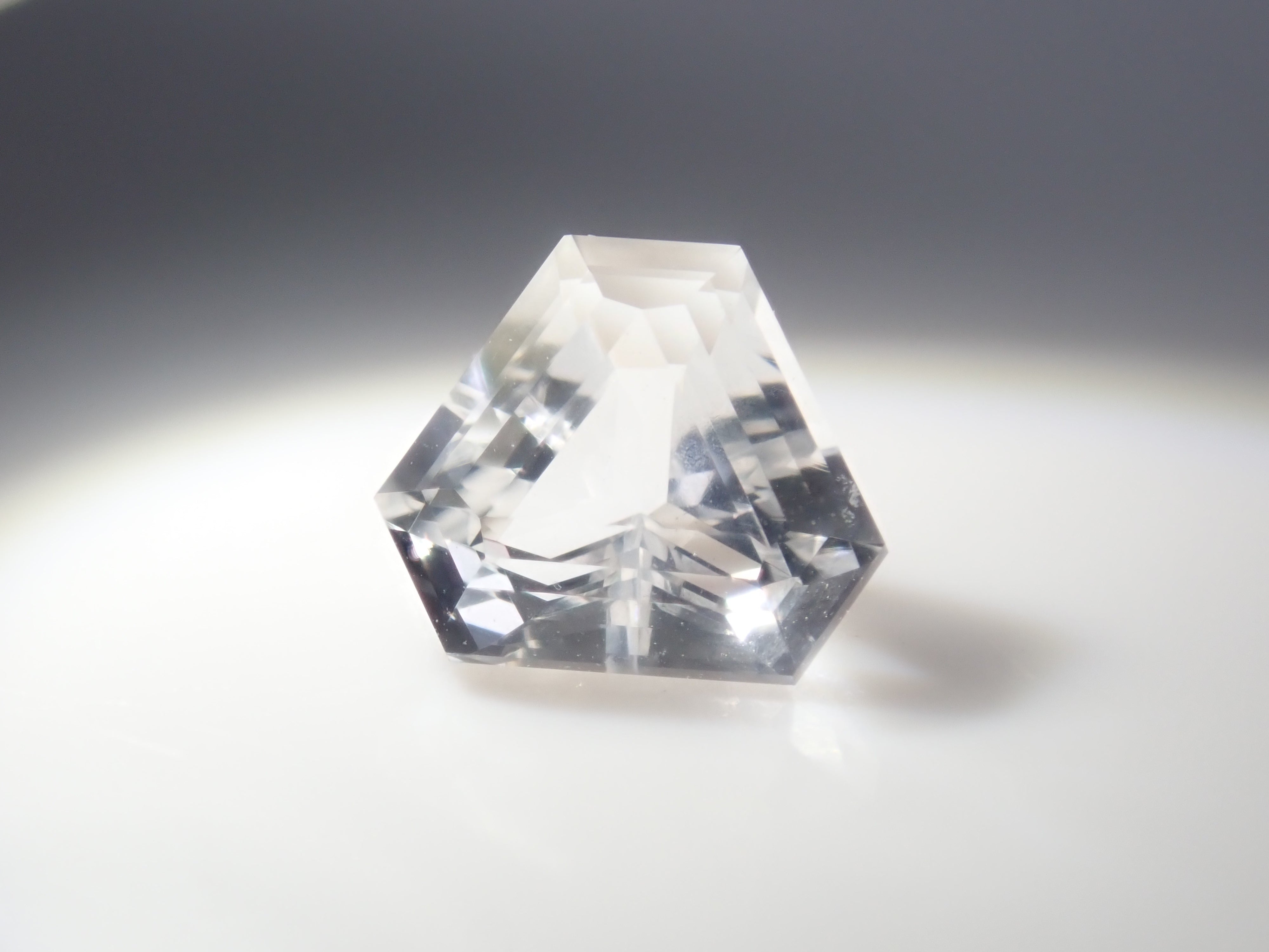 透鋰輝石於19世紀被發現,是一種著名的鋰礦石。由於其性質脆弱,切割起來非常困難。它的日文名稱是“petalite”,源自於其像葉脈一樣容易裂開的特性。它的顏色從淺粉紅色、淺灰色到白色和無色不等。這塊透鋰輝石由斯里蘭卡切割師 Sanjay 切割而成。
