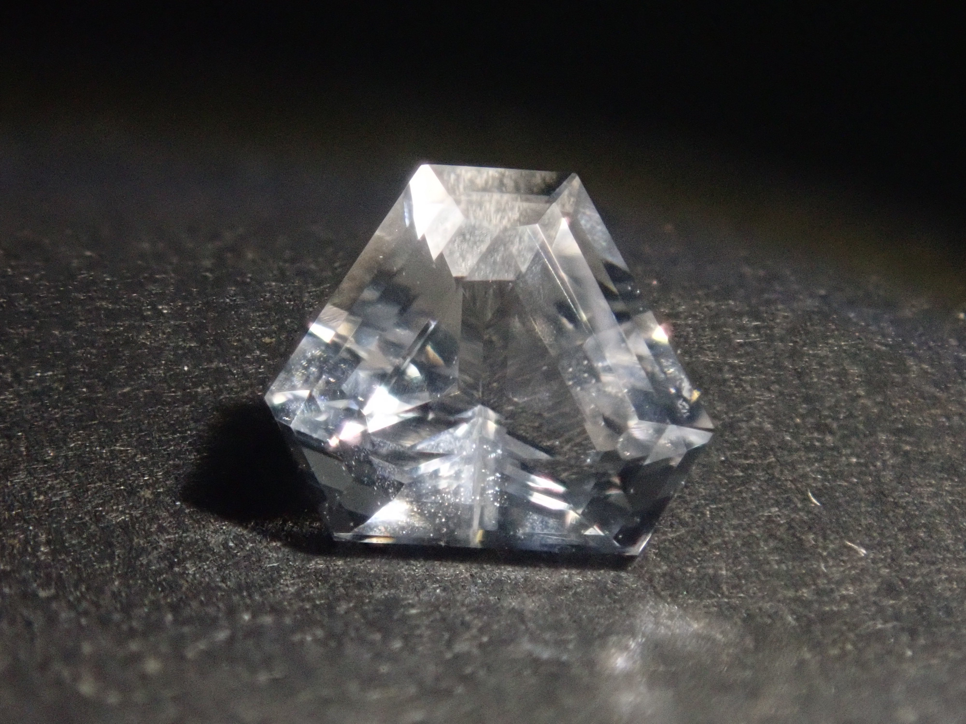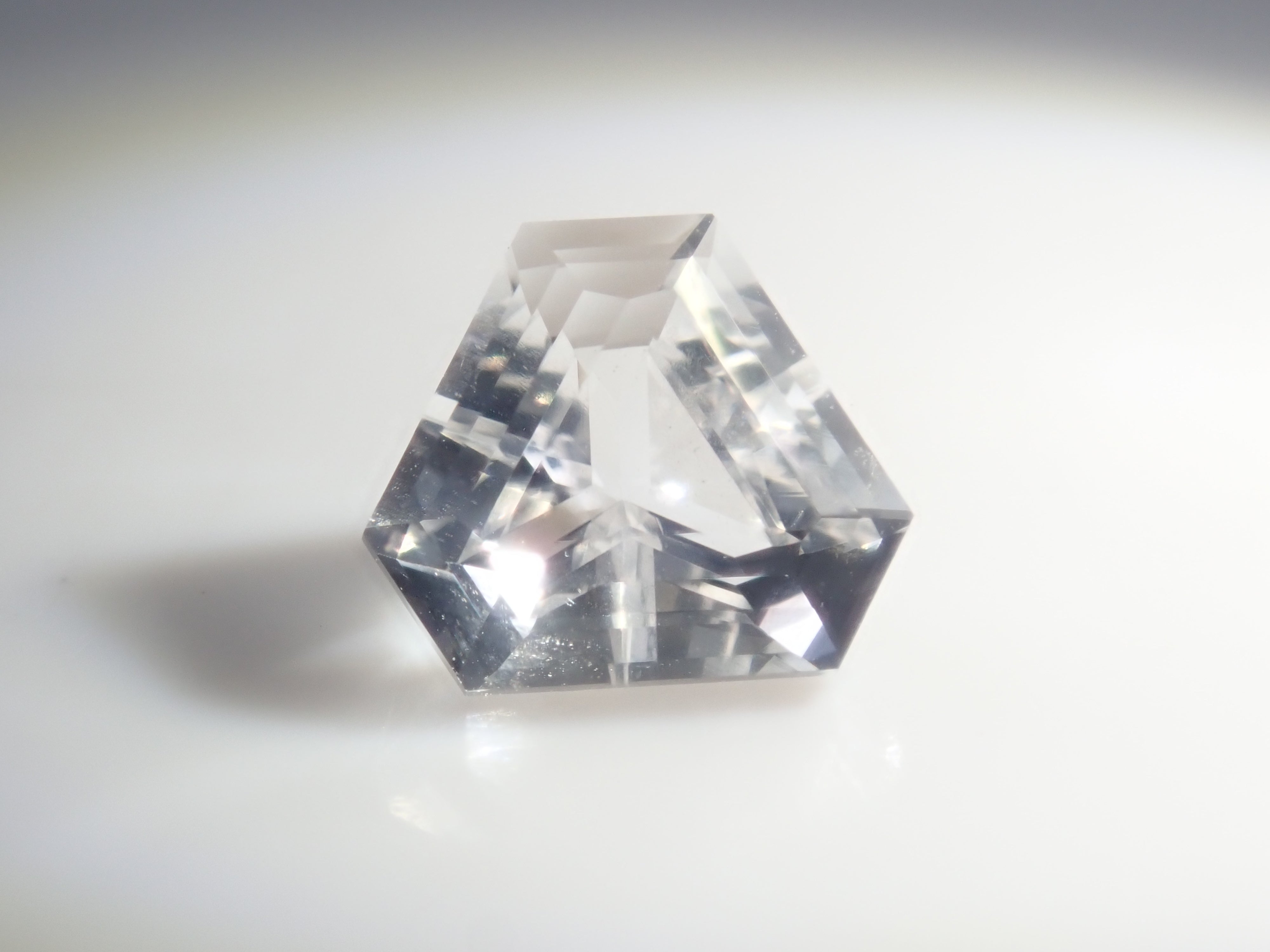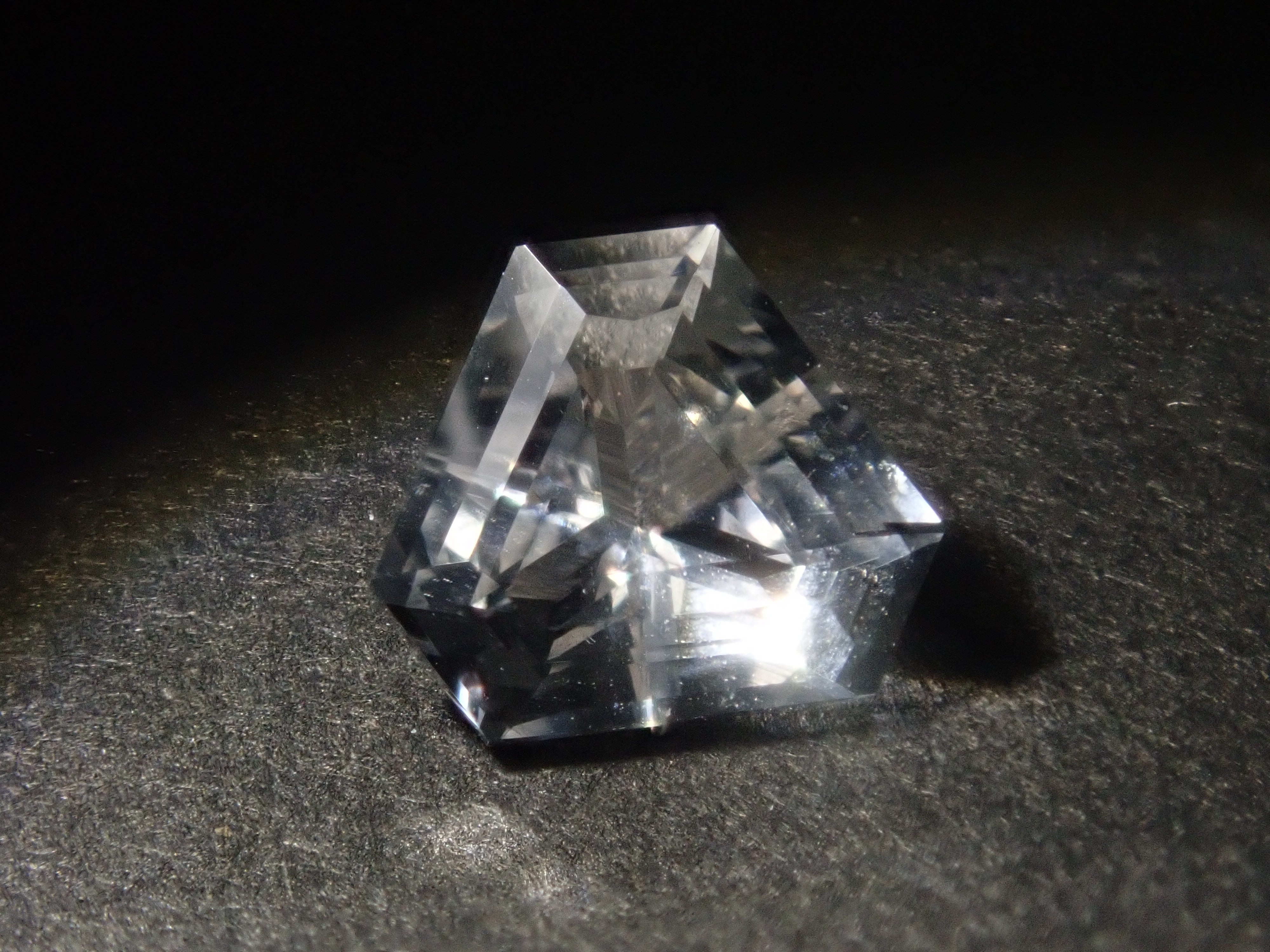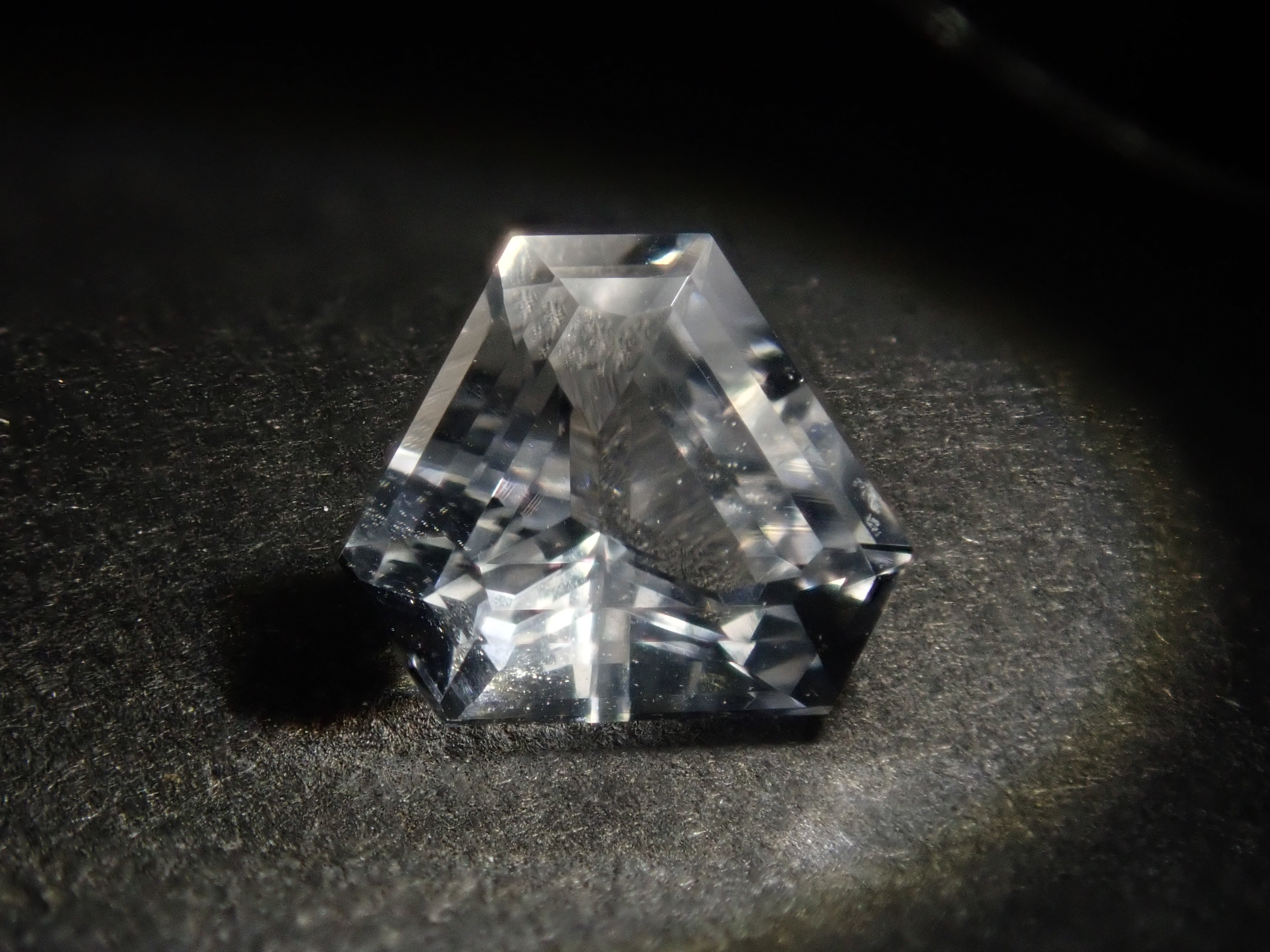 透鋰輝石於19世紀被發現,是一種著名的鋰礦石。由於其性質脆弱,切割起來非常困難。它的日文名稱是“petalite”,源自於其像葉脈一樣容易裂開的特性。它的顏色從淺粉紅色、淺灰色到白色和無色不等。這塊透鋰輝石由斯里蘭卡切割師 Sanjay 切割而成。