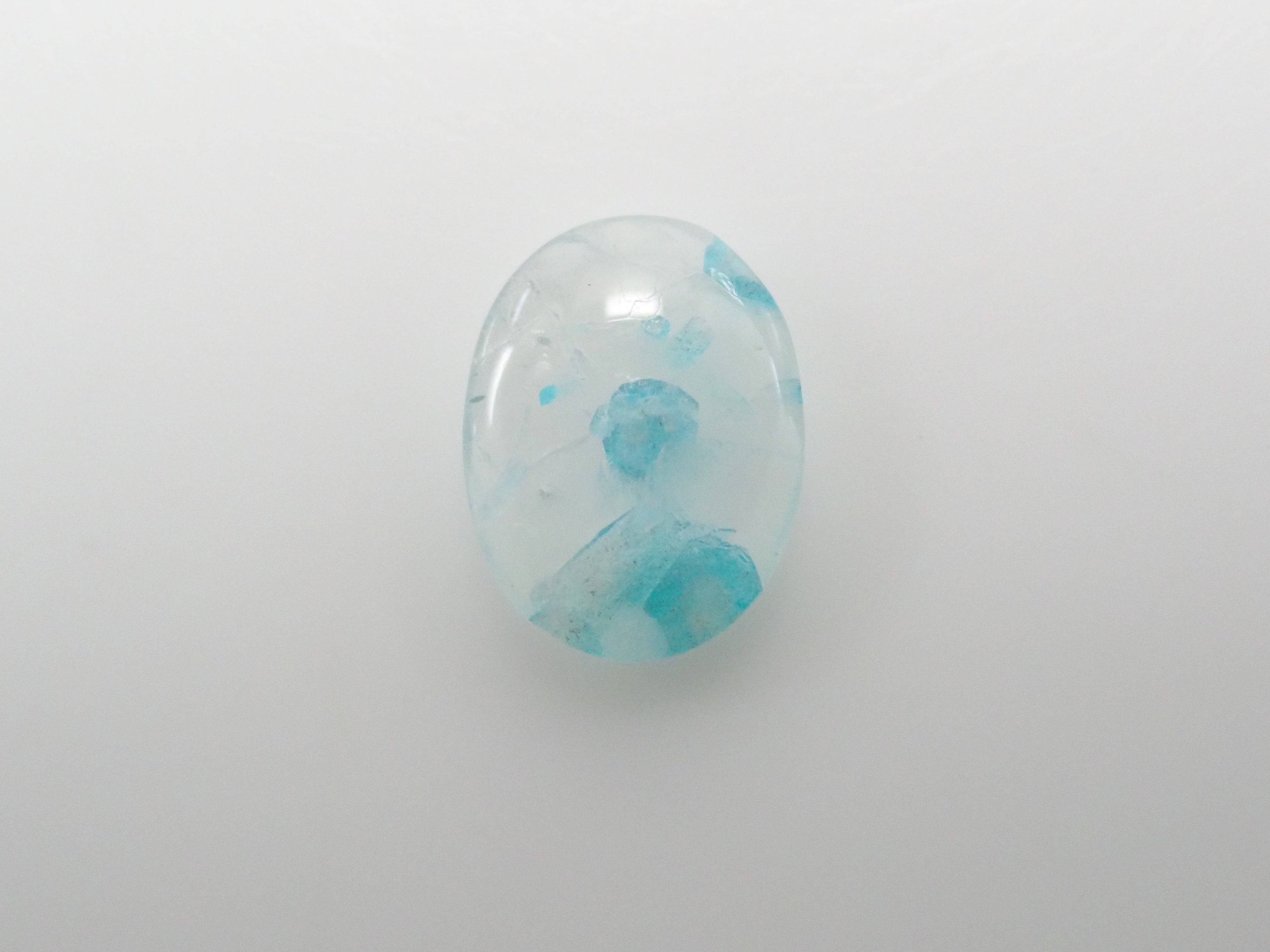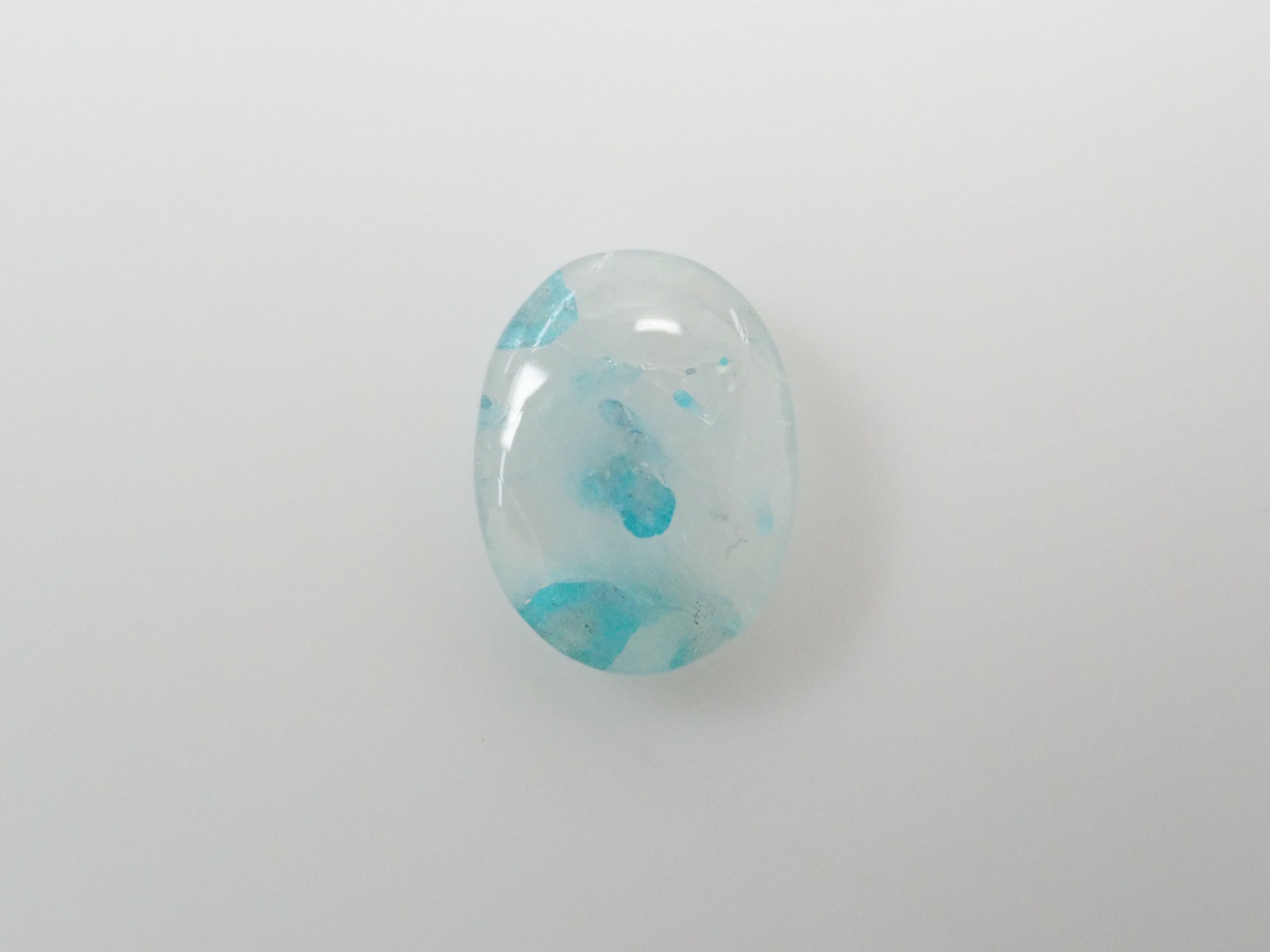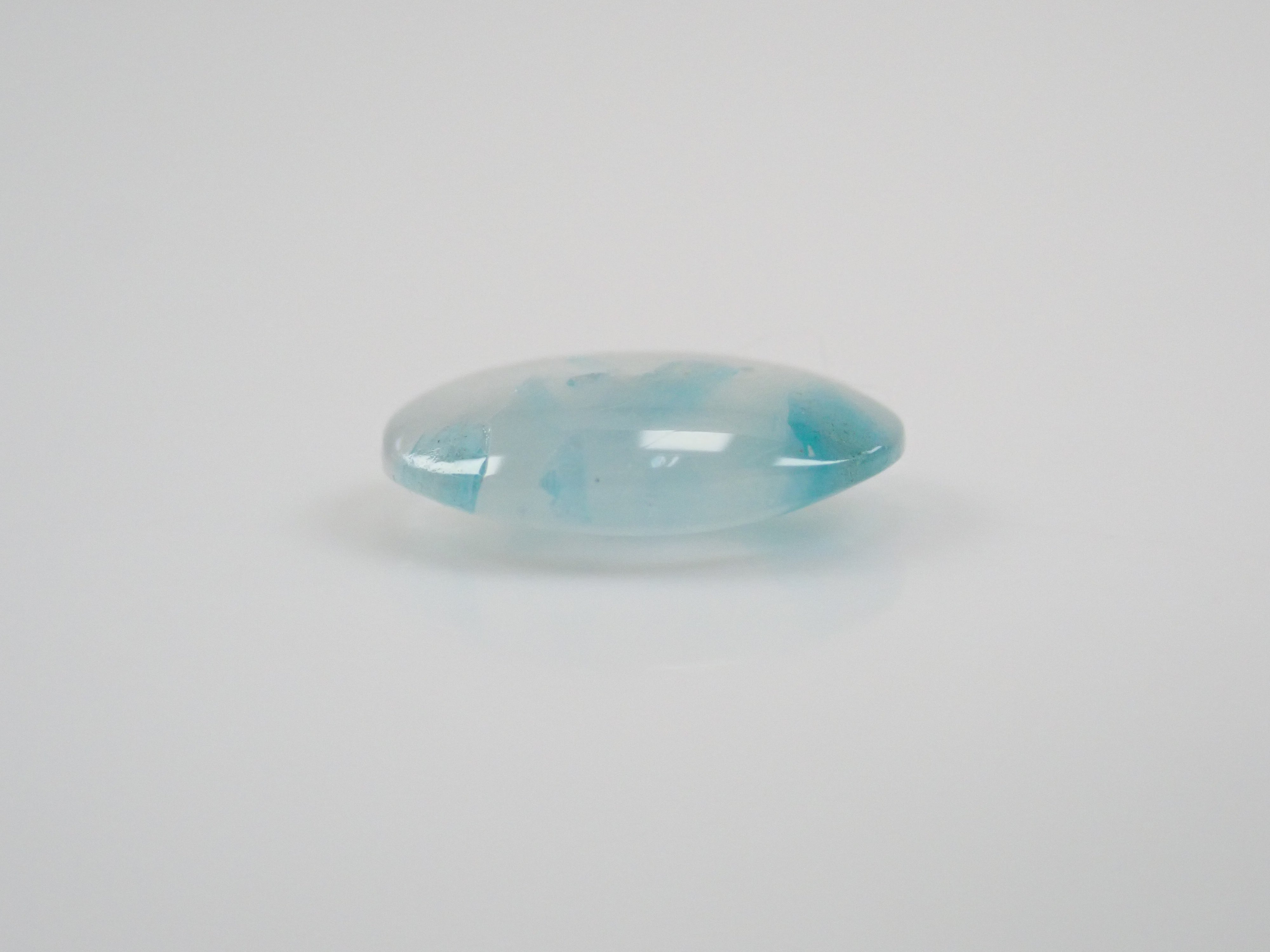 帕拉伊巴石英圓潤可愛,宛如大理石。它清爽的色彩令人聯想到夏日的景象。巴西帕拉伊巴碧璽擁有加勒比海般美麗的色彩,與透明至乳白色的石英交相輝映,令人聯想到海浪拍打潔白沙灘的景象。凝視著它,彷彿能聞到大海的氣息,聽到海浪的聲音。這顆裸石是從巴西帕拉伊巴碧璽礦主手中直接購得的。