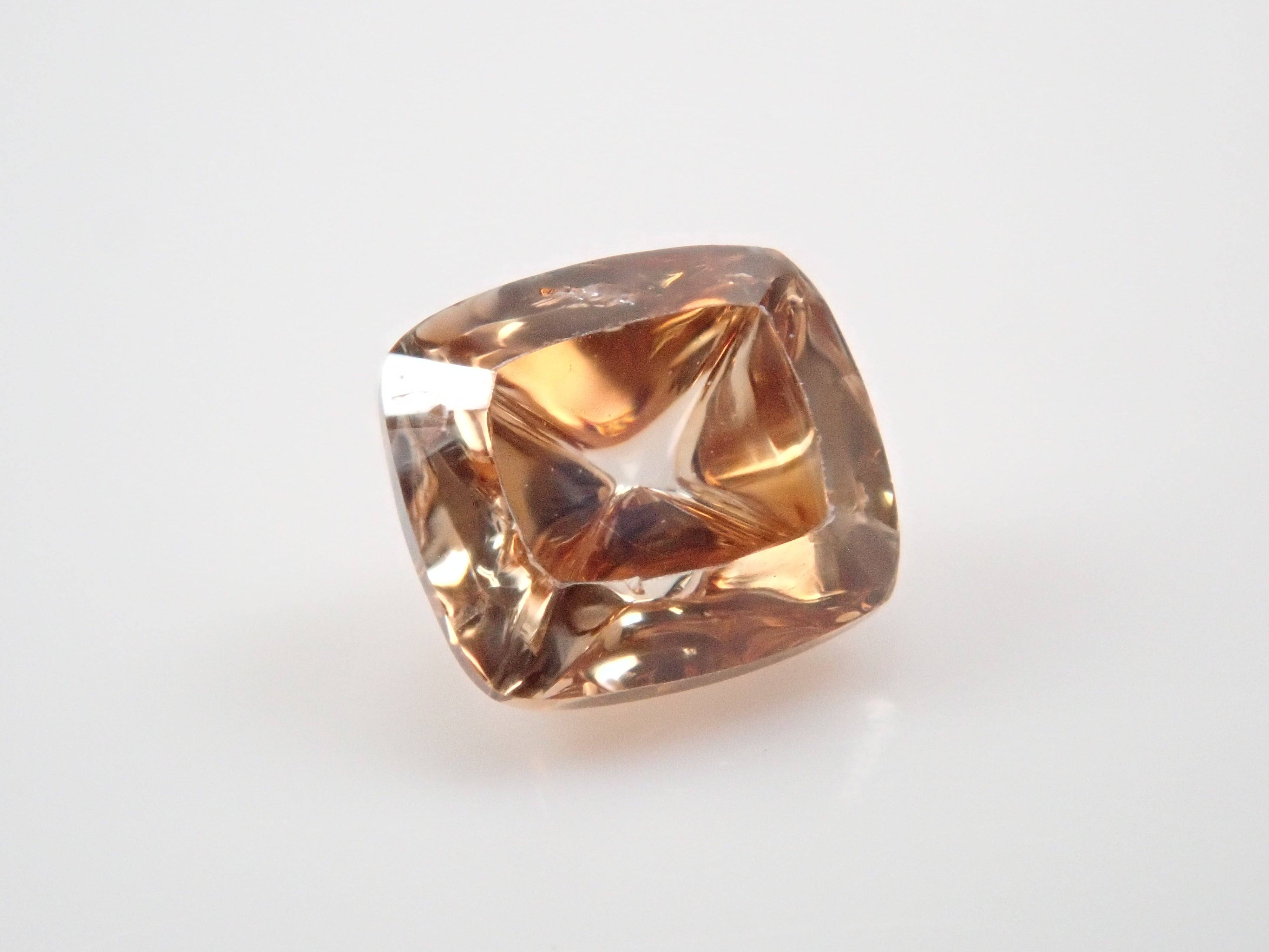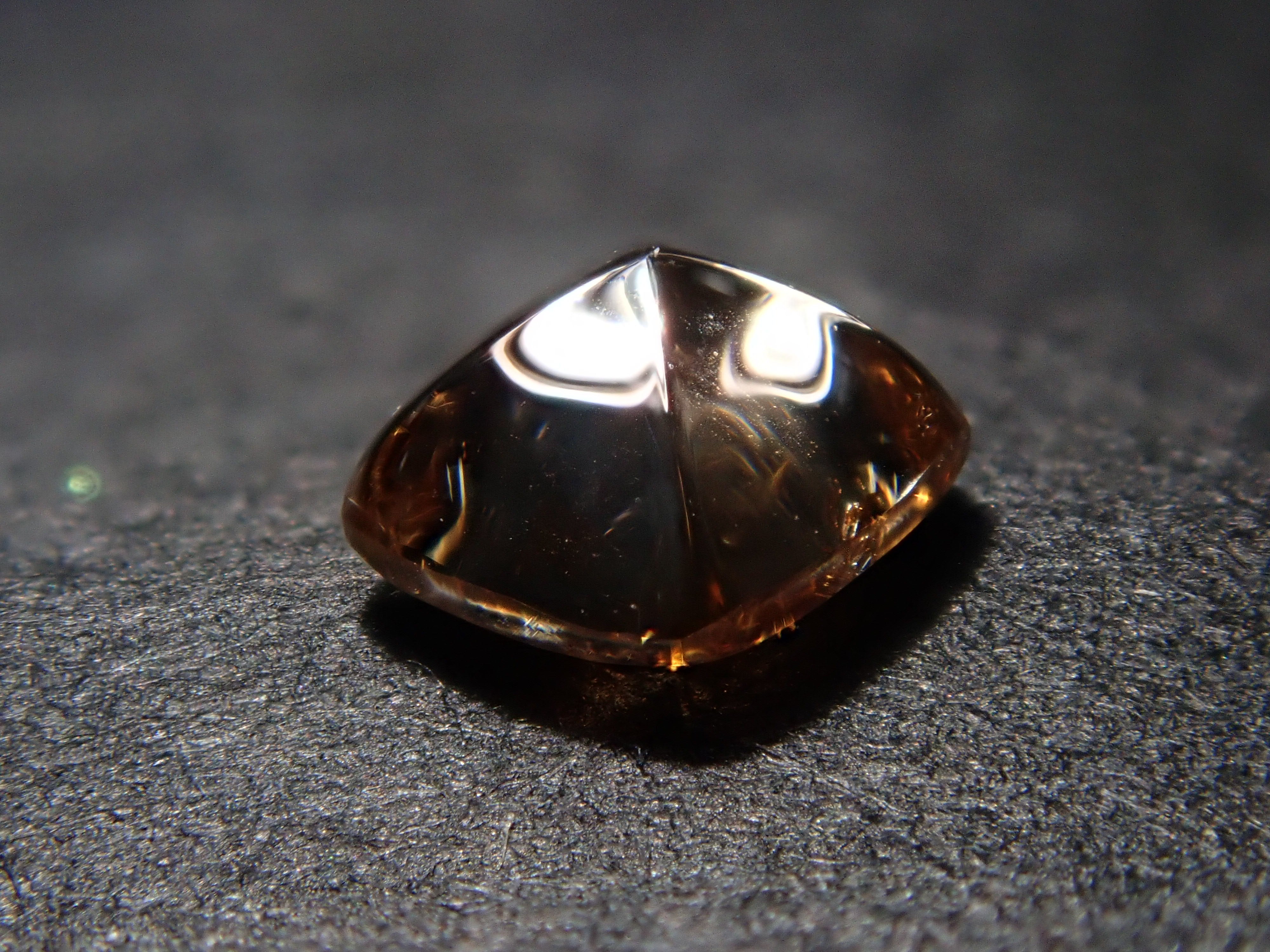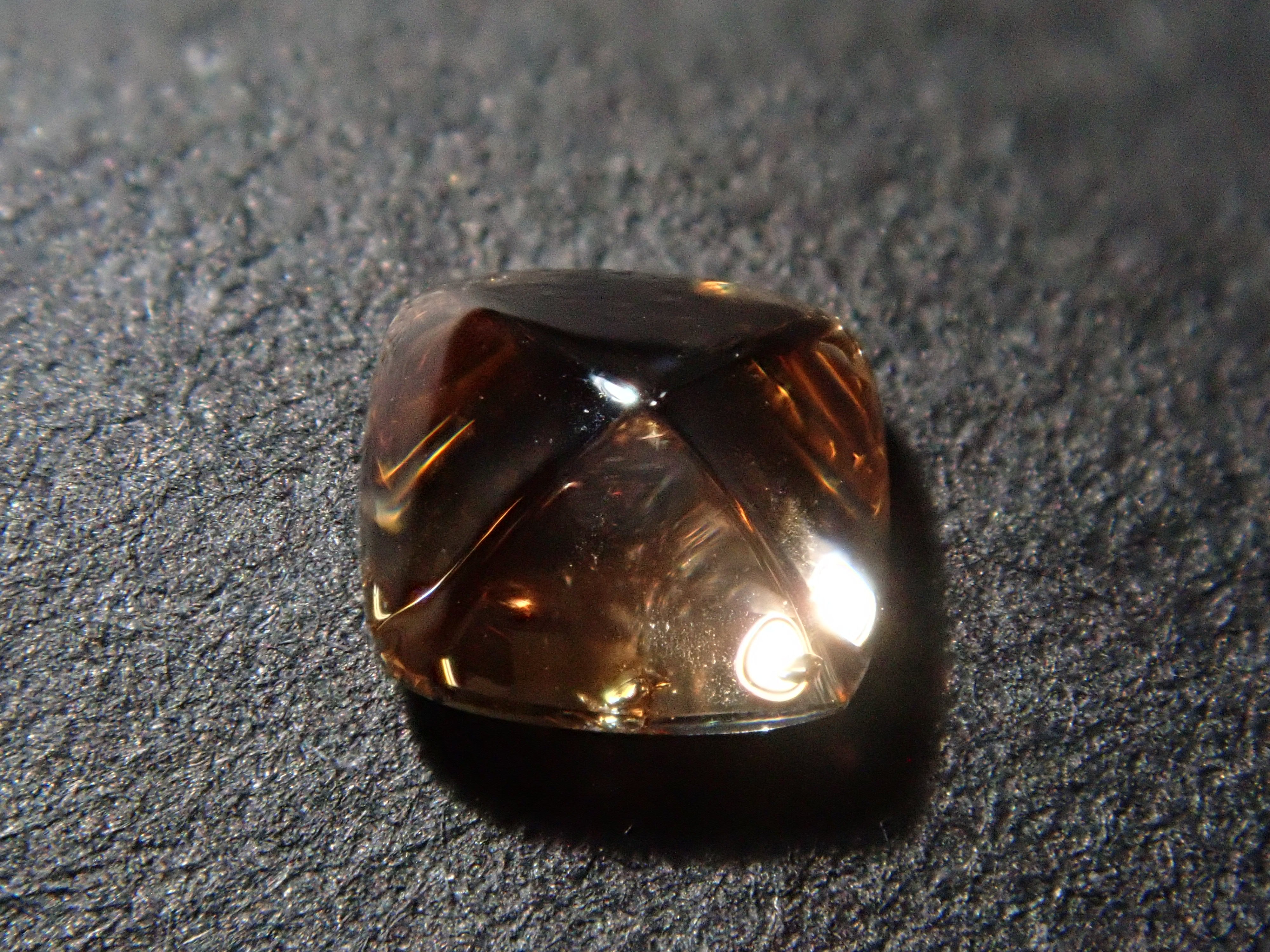 這是一顆透明度高達SI級的棕色鑽石。它採用糖麵包形切割,這種切割方式在棕色鑽石中十分罕見。