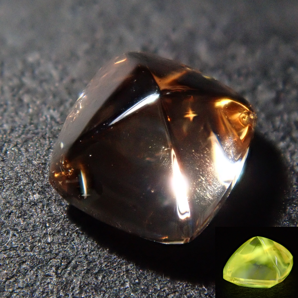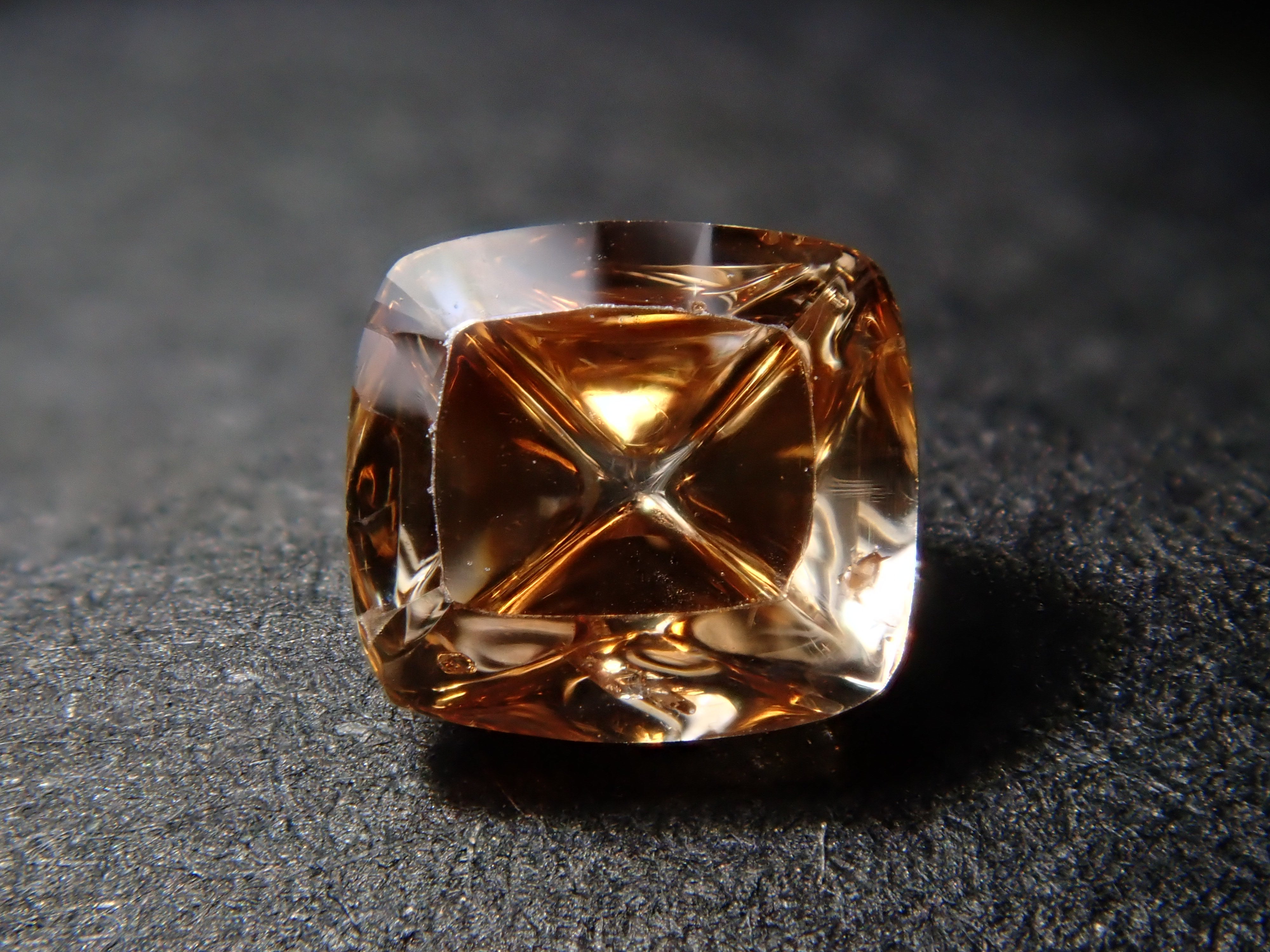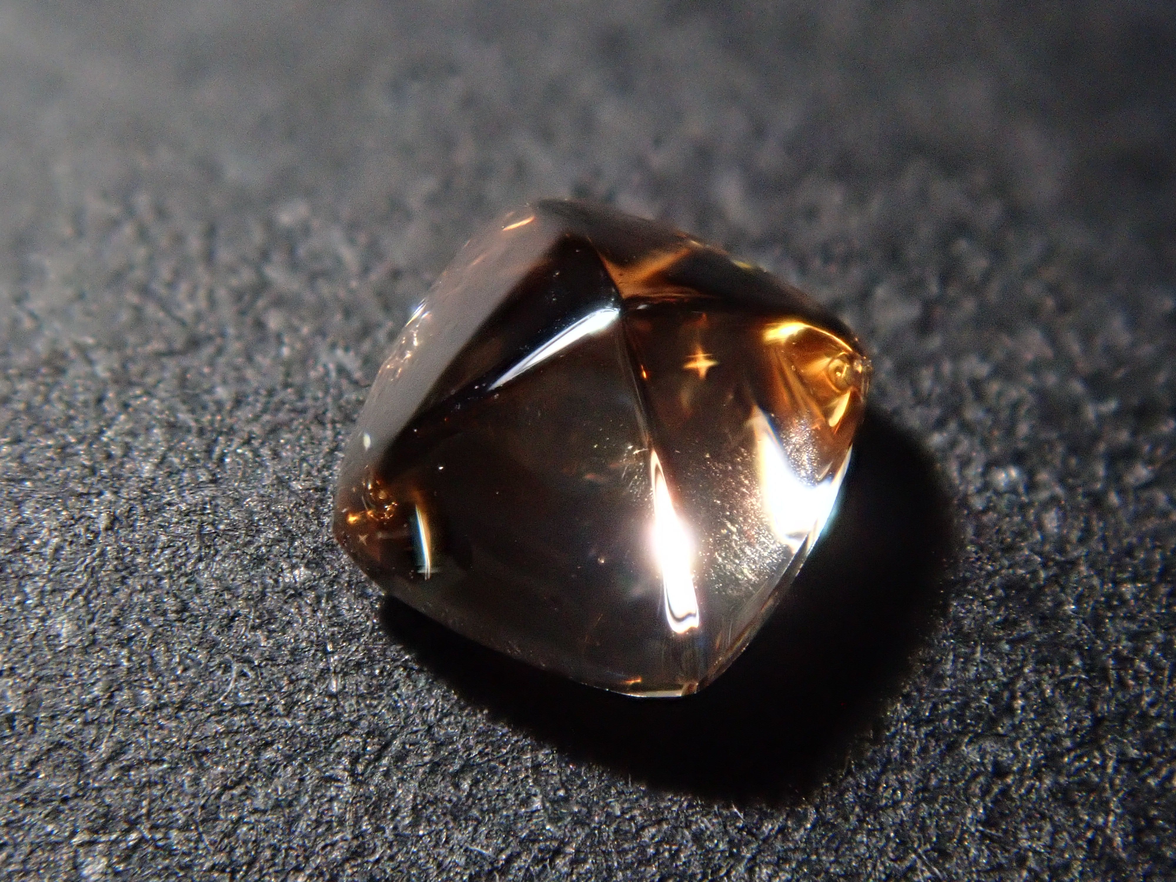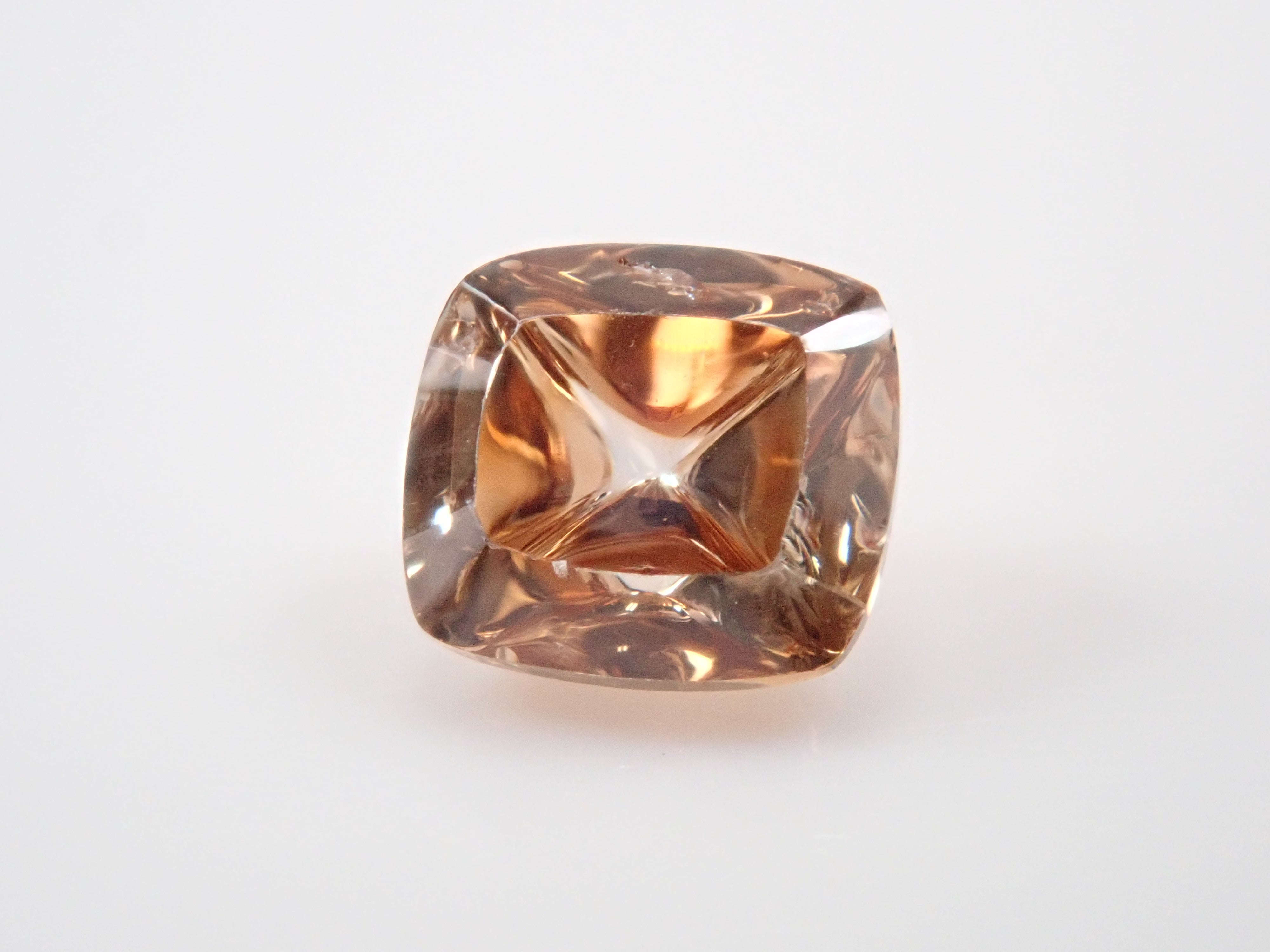 這是一顆透明度高達SI級的棕色鑽石。它採用糖麵包形切割,這種切割方式在棕色鑽石中十分罕見。