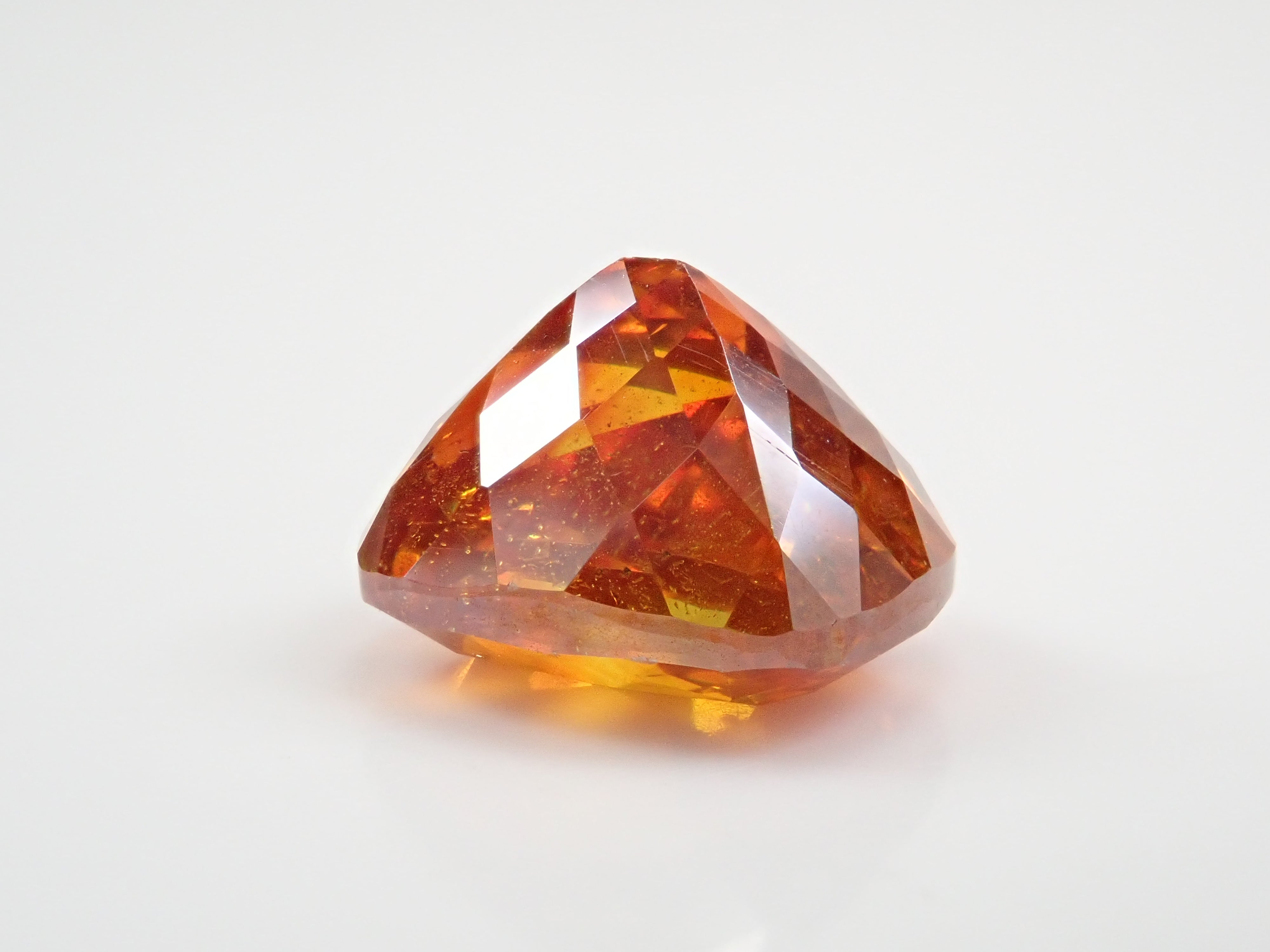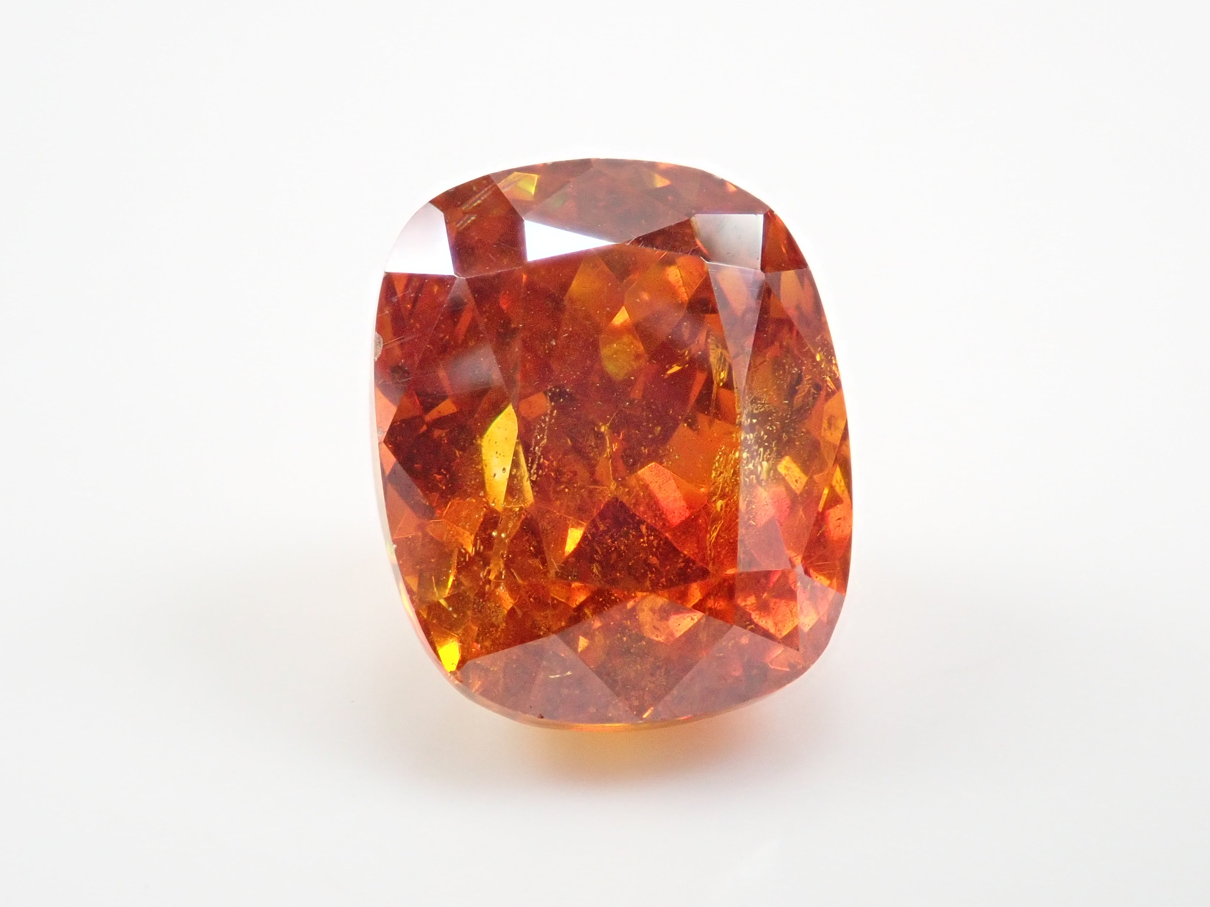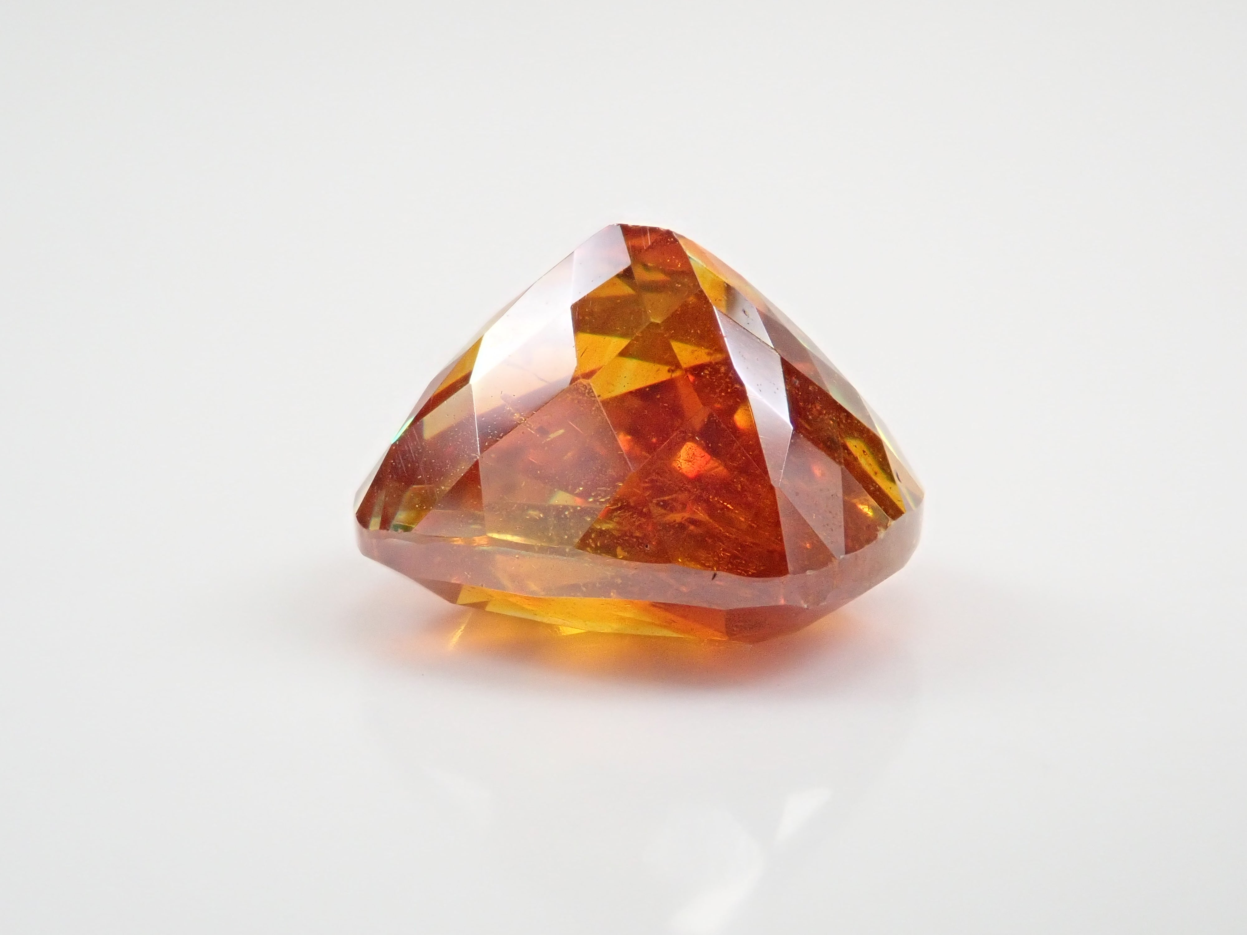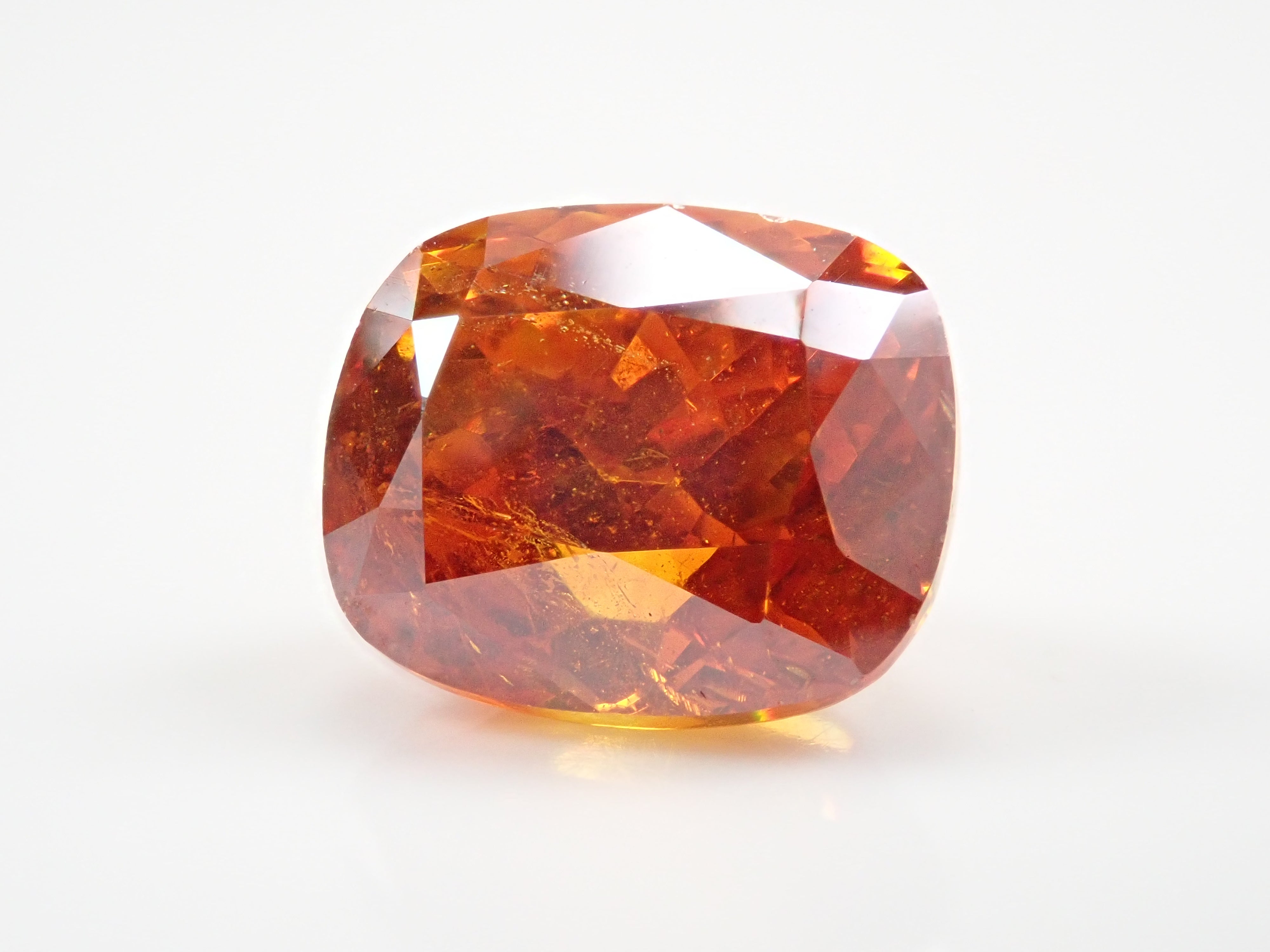 閃鋅礦的色散率幾乎是鑽石的四倍,並能展現出絢麗的火彩。據說,閃鋅礦是稀有寶石之一,流通量極小,在市場上並不常見。其底色為黃色、橙色、綠色等,火彩則呈現多種顏色,例如黃色、棕色、橙色、紅色和綠色。這顆產自西班牙的6.494克拉散裝閃鋅礦,透明度高,呈現濃鬱的橘色。