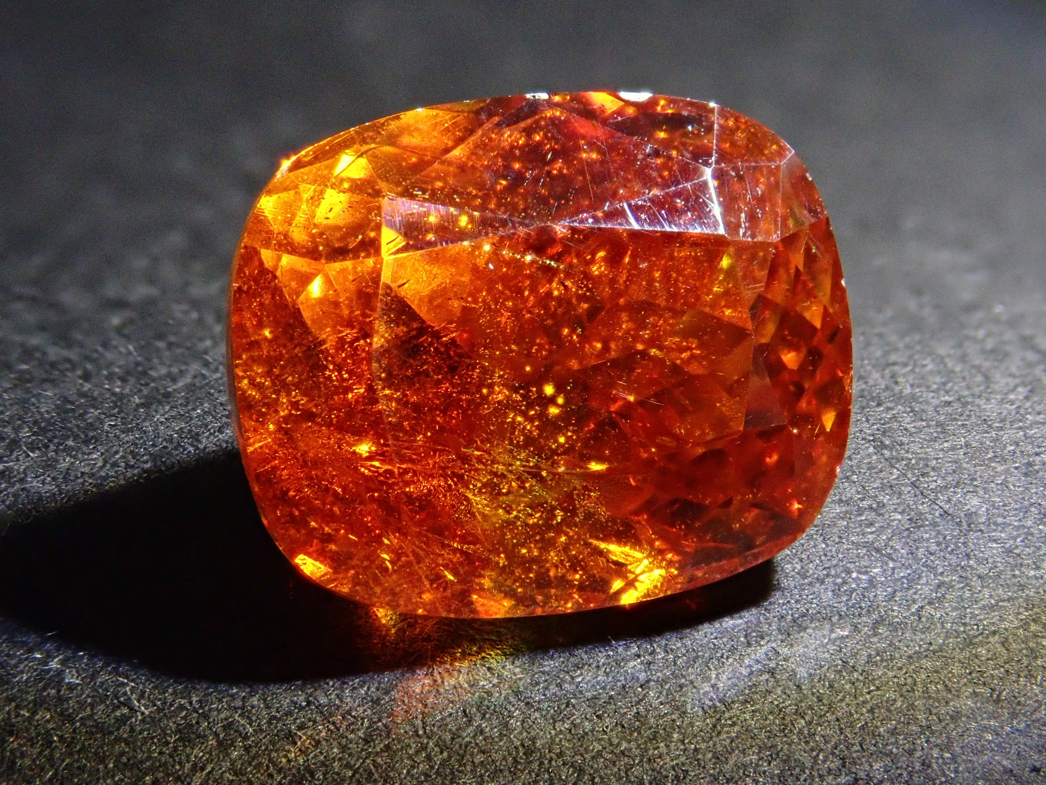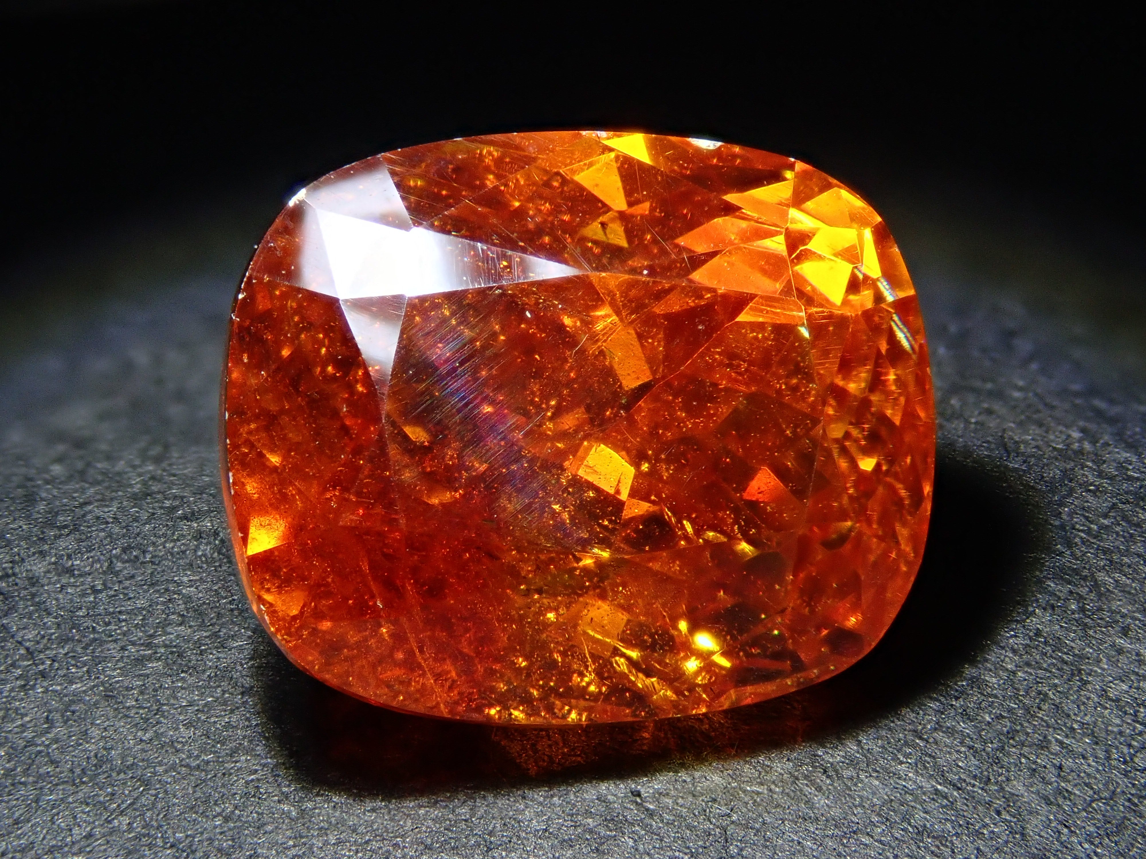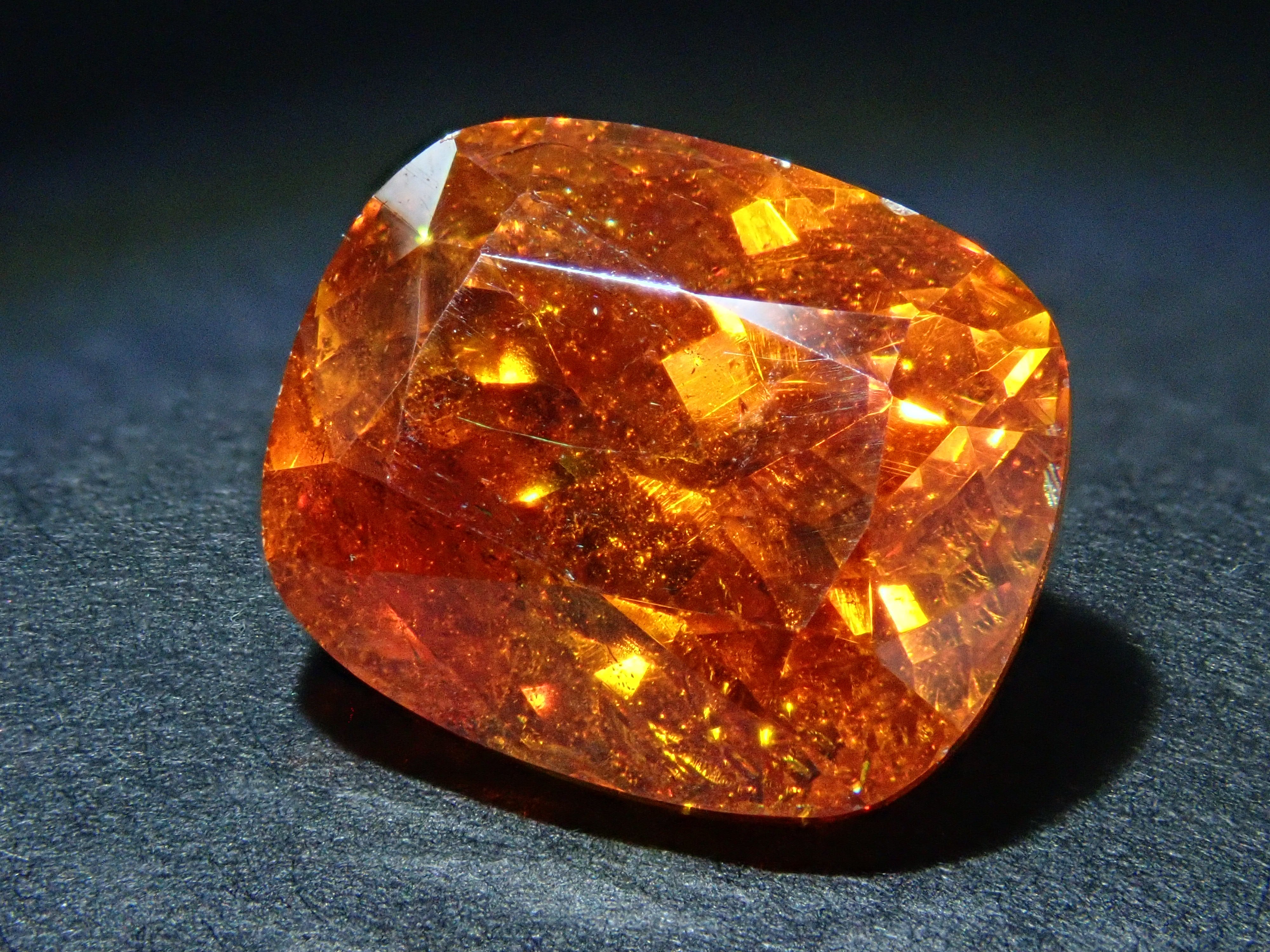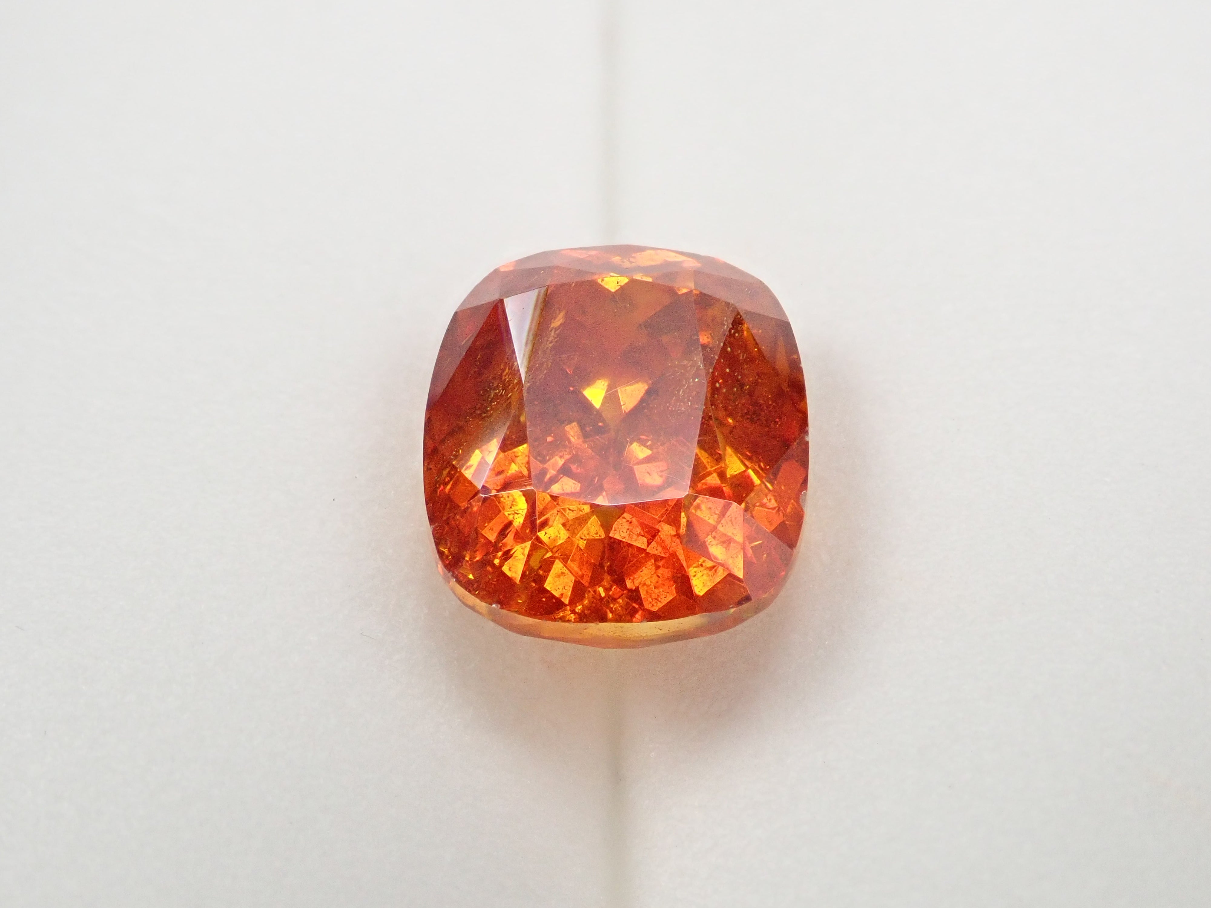閃鋅礦的色散率幾乎是鑽石的四倍,並能展現出絢麗的火彩。據說,閃鋅礦是稀有寶石之一,流通量極小,在市場上並不常見。其底色為黃色、橙色、綠色等,火彩則呈現多種顏色,例如黃色、棕色、橙色、紅色和綠色。這顆產自西班牙的6.494克拉散裝閃鋅礦,透明度高,呈現濃鬱的橘色。