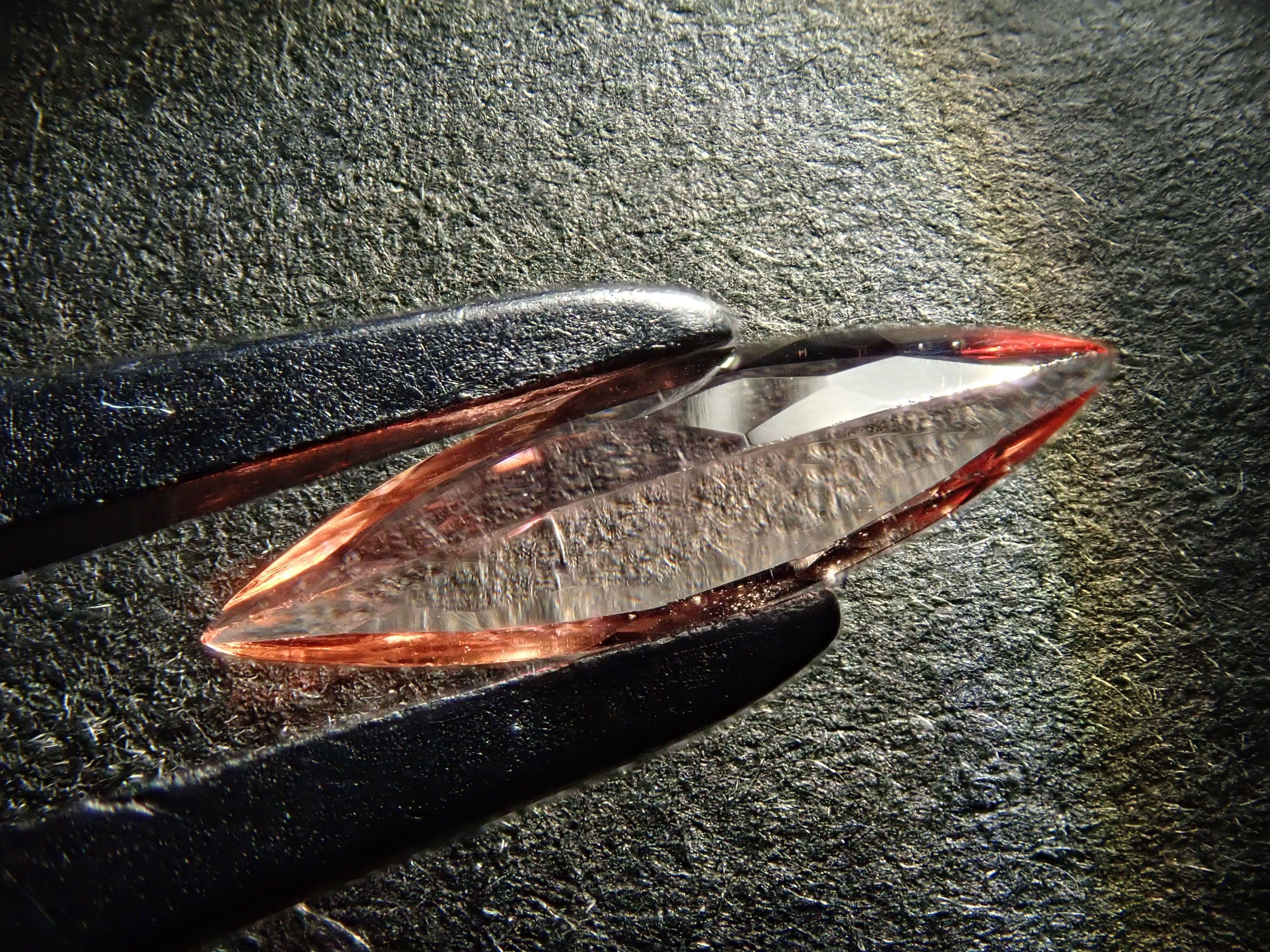 帝王托帕石被譽為托帕石中的極品。它以雪利酒般的金黃色澤而聞名,但偶爾也會發現像這顆一樣的粉紅色帝王托帕石。這顆粉紅帝王托帕石帶有粉紅色調。