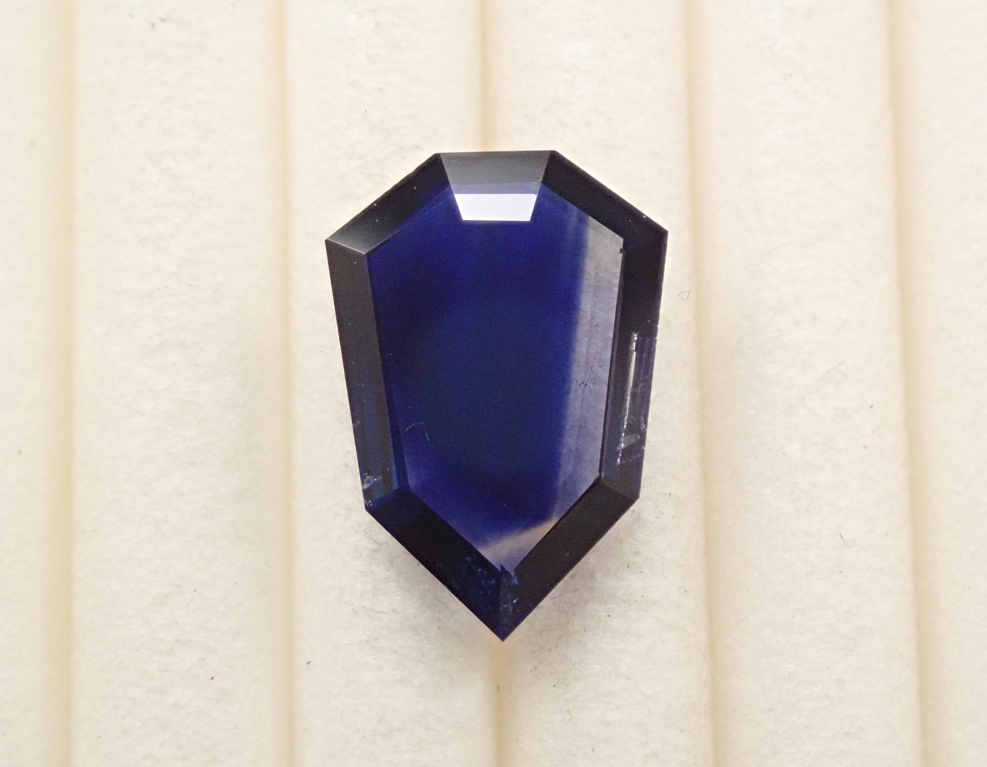 這是一顆產自馬達加斯加、經過特殊切割且未經加熱的藍色藍寶石。它附有GIA證書。