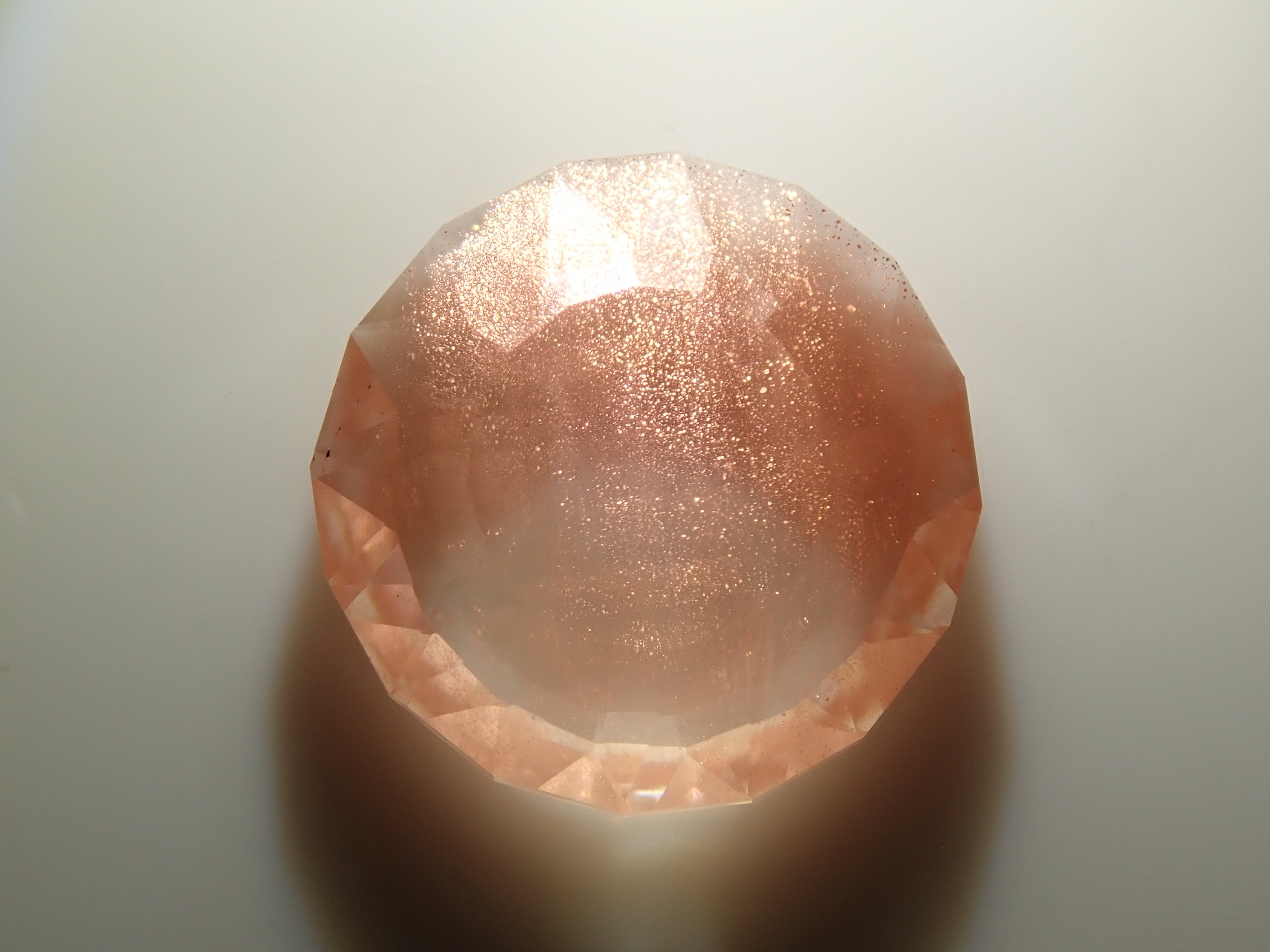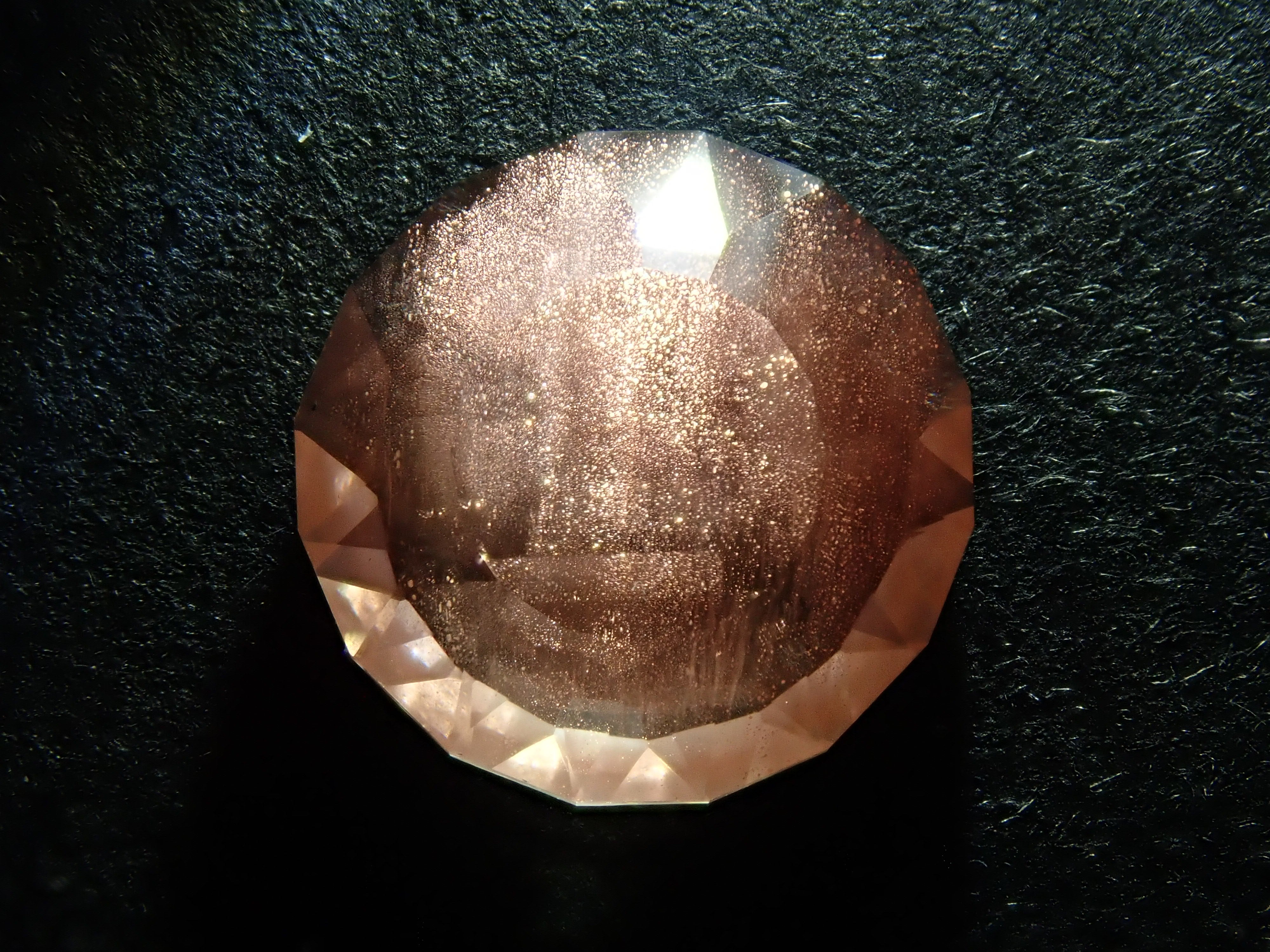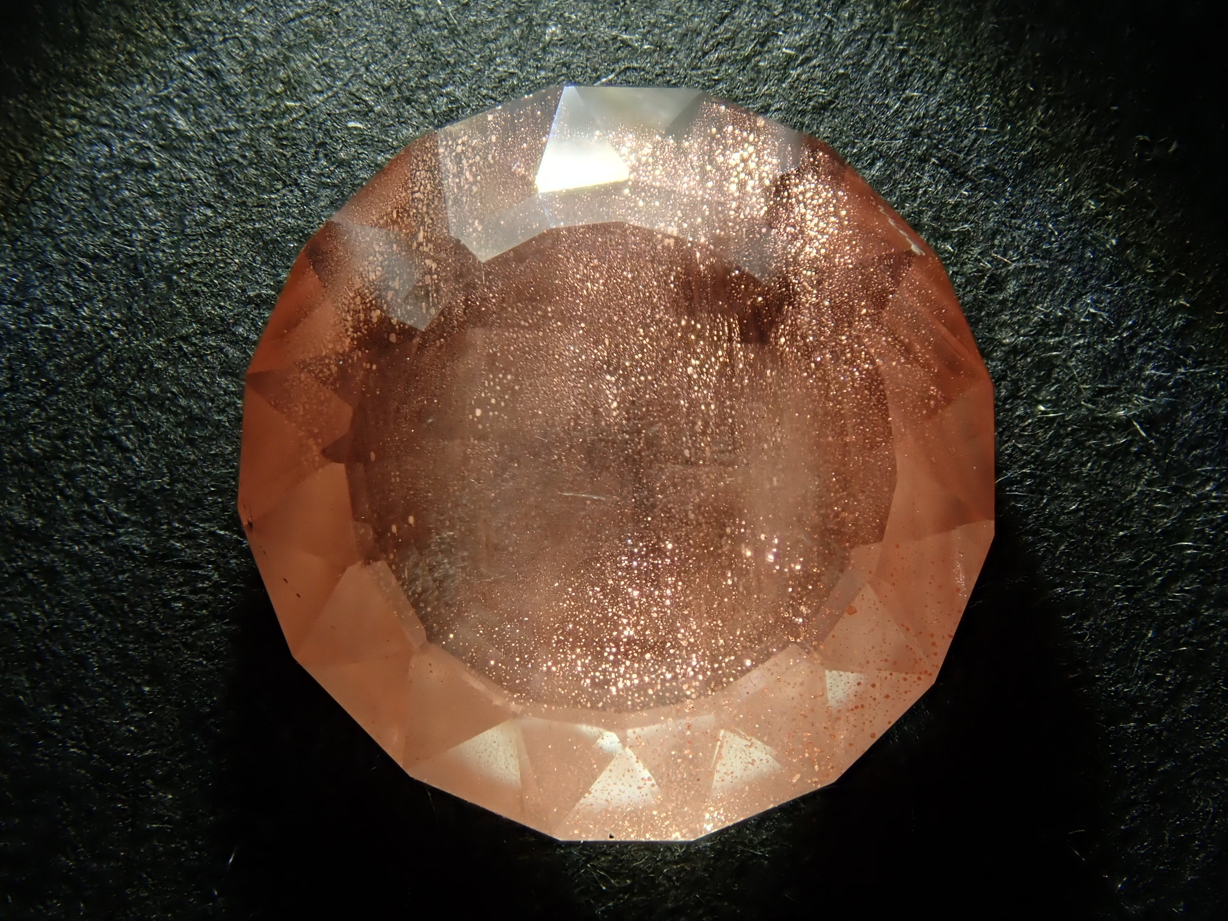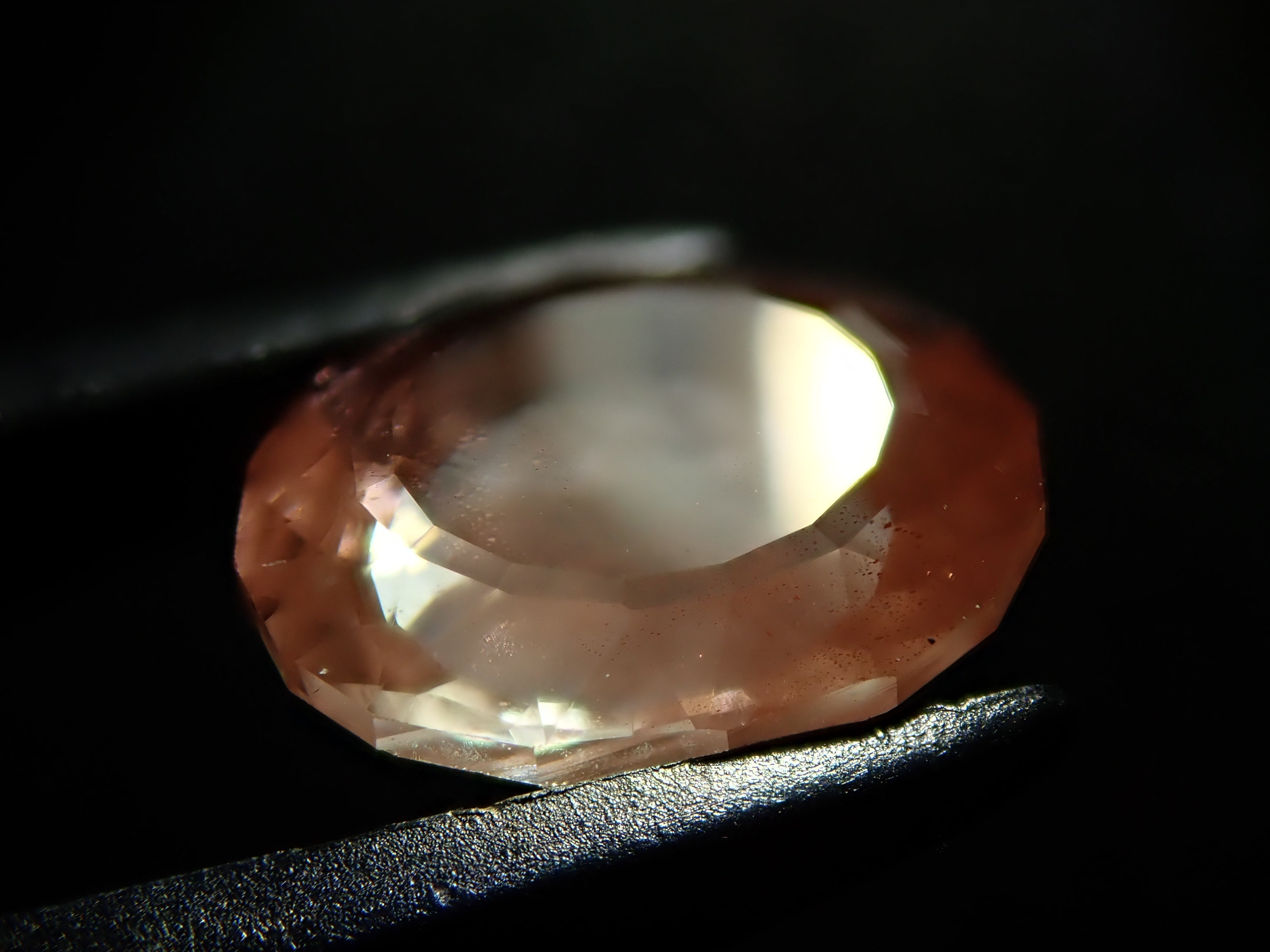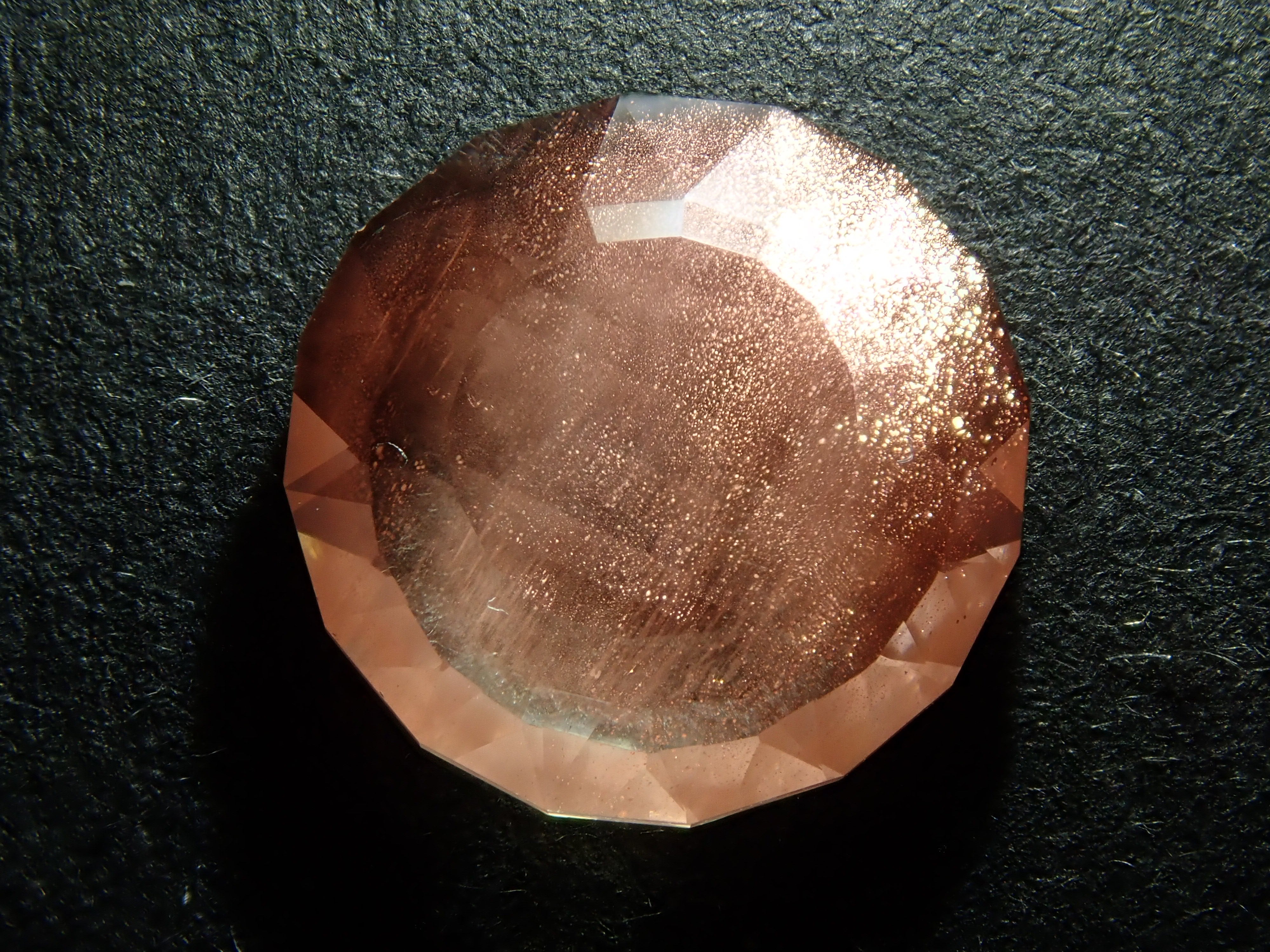 俄勒岡太陽石被譽為世界上最美麗的拉長石。近年來,這種寶石越來越受歡迎。有些寶石中的內含物會像閃光一樣反射,這種現象稱為灑金現象(席勒效應)。為了更好地呈現這些光學效果,攝影時會使用筆形電筒。
