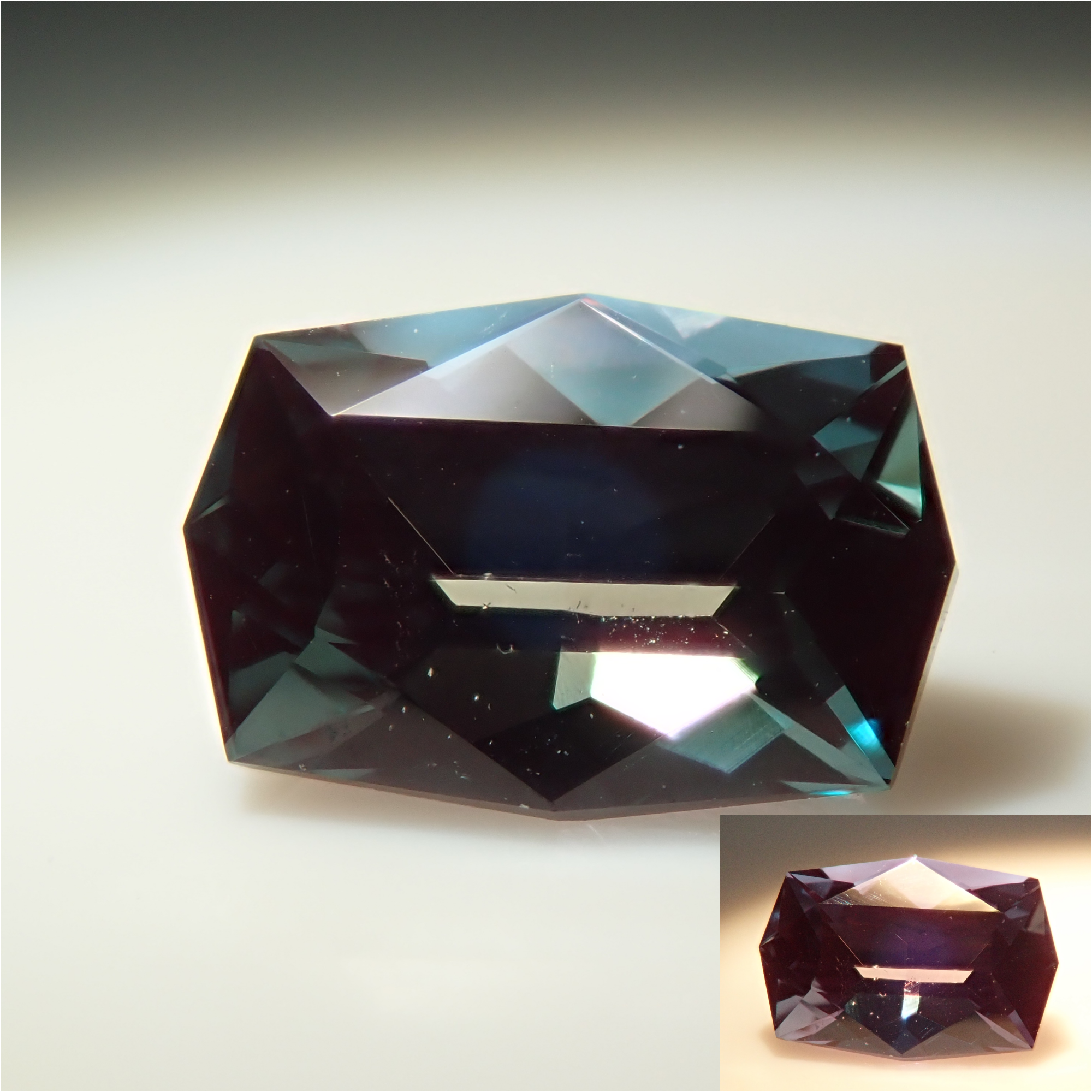 紫翠玉又被稱為「寶石之王」。它是一種神秘的寶石,會從綠色變成紅色,也被稱為“白天的祖母綠,晚上的紅寶石”。這是一種「合成寶石」。請使用紅色變色筆型手電筒來欣賞它的顏色變化。