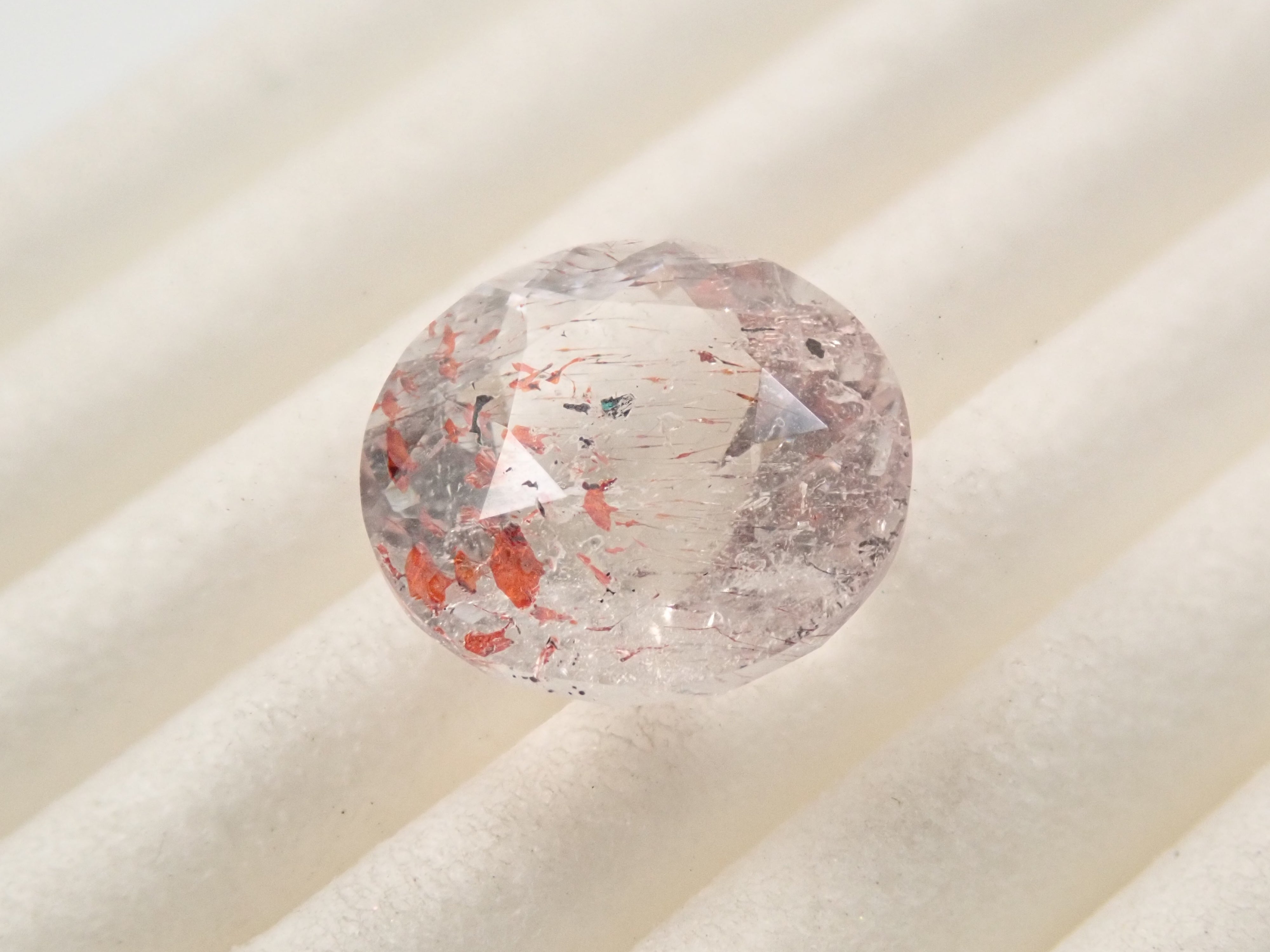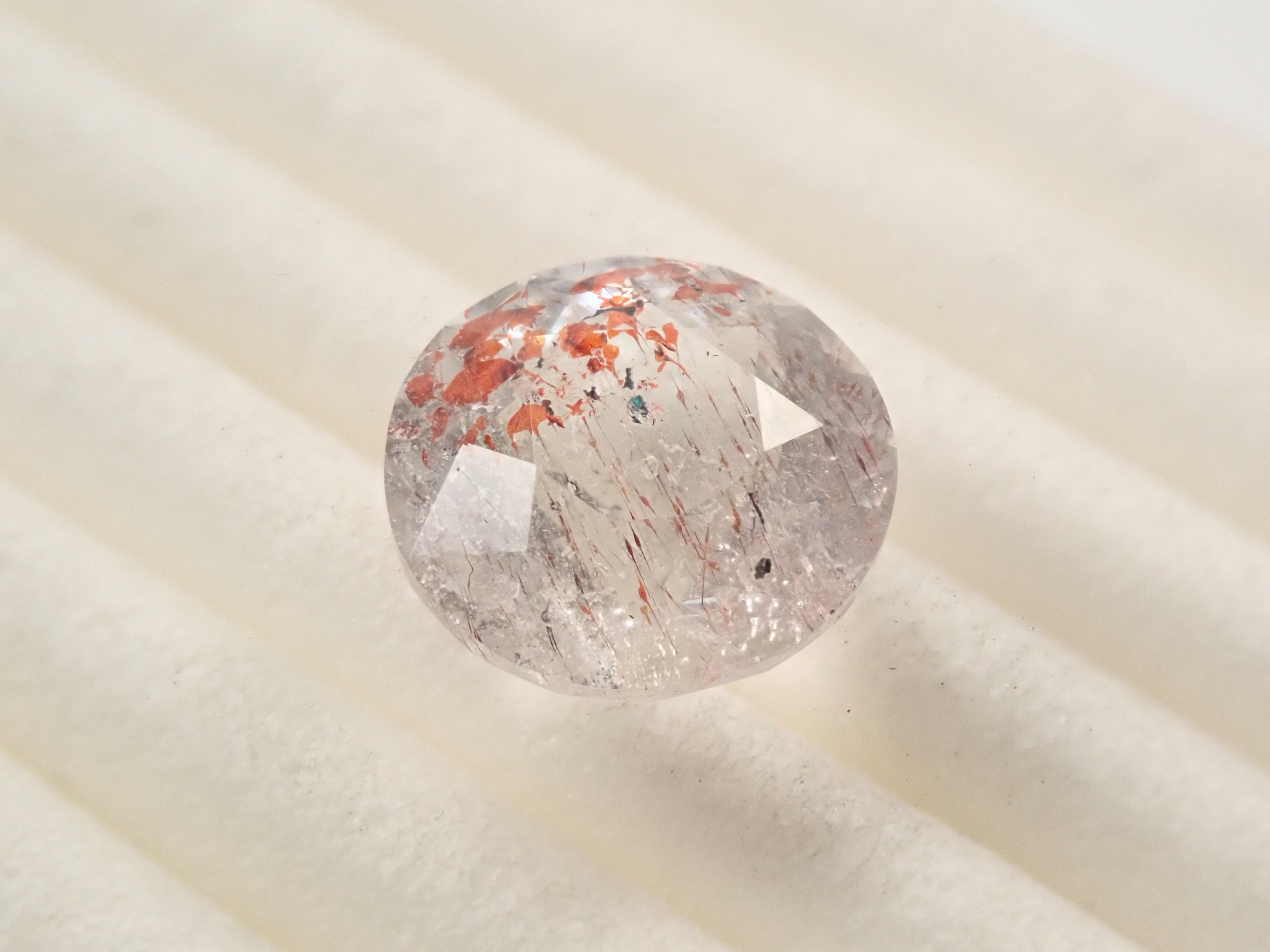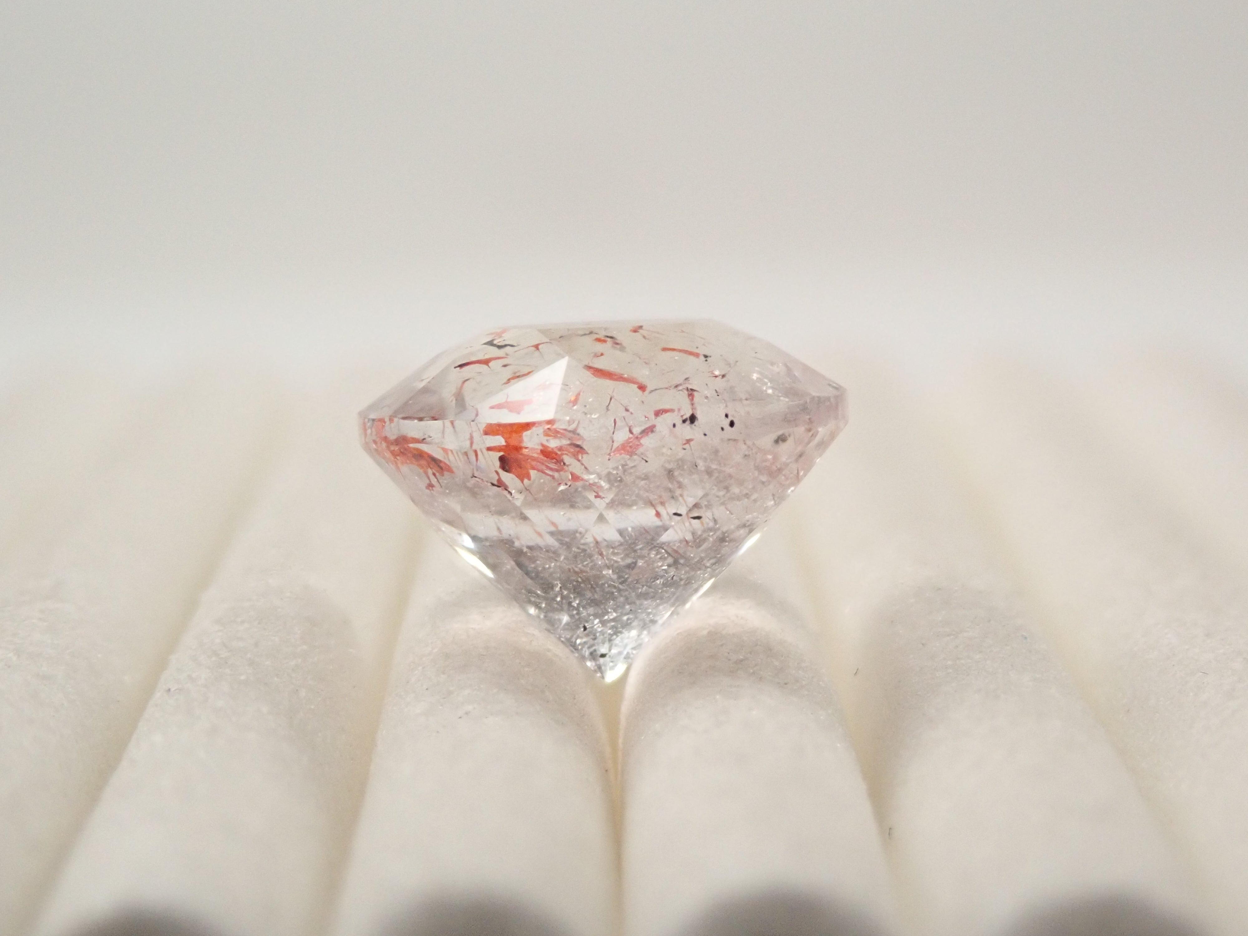 石英在日文稱為「水翔」。其礦物名稱為“石州”。石英因其供應穩定且易於維護而被稱為礦物之王,但這顆石英中的纖鐵礦呈現出秋葉飄落的景象,讓人彷彿被吸入其中,彷彿置身於秋日的石頭之中。這顆來自巴西的2.735克拉石英中的纖鐵礦裸石由斯里蘭卡切割師Sanjay切割而成。它呈圓形,直徑9毫米。