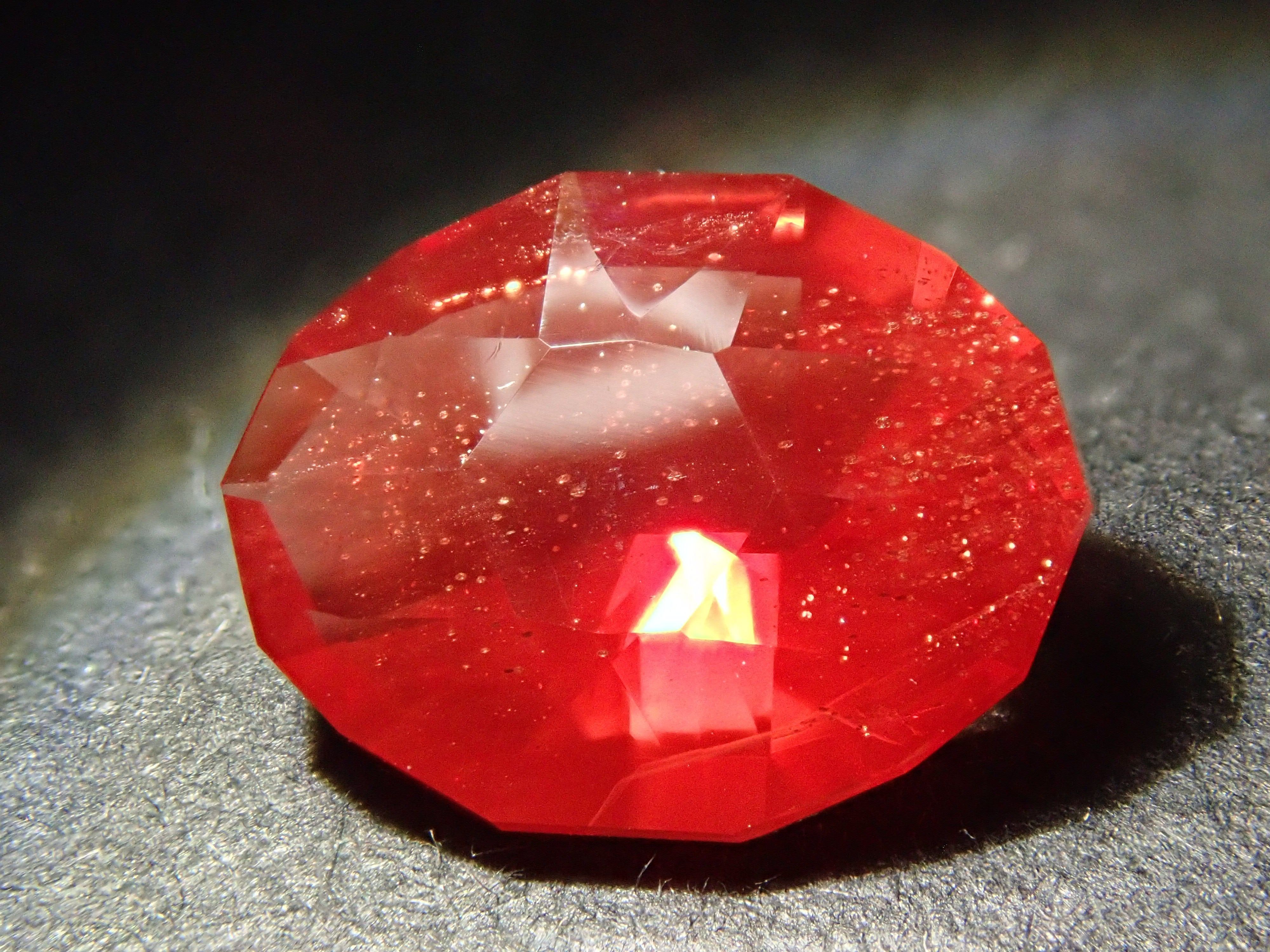 這顆產自美國俄勒岡的日光石,底色深邃,具有美麗的螢光效果,由斯里蘭卡切割師 Sanjay 切割而成。