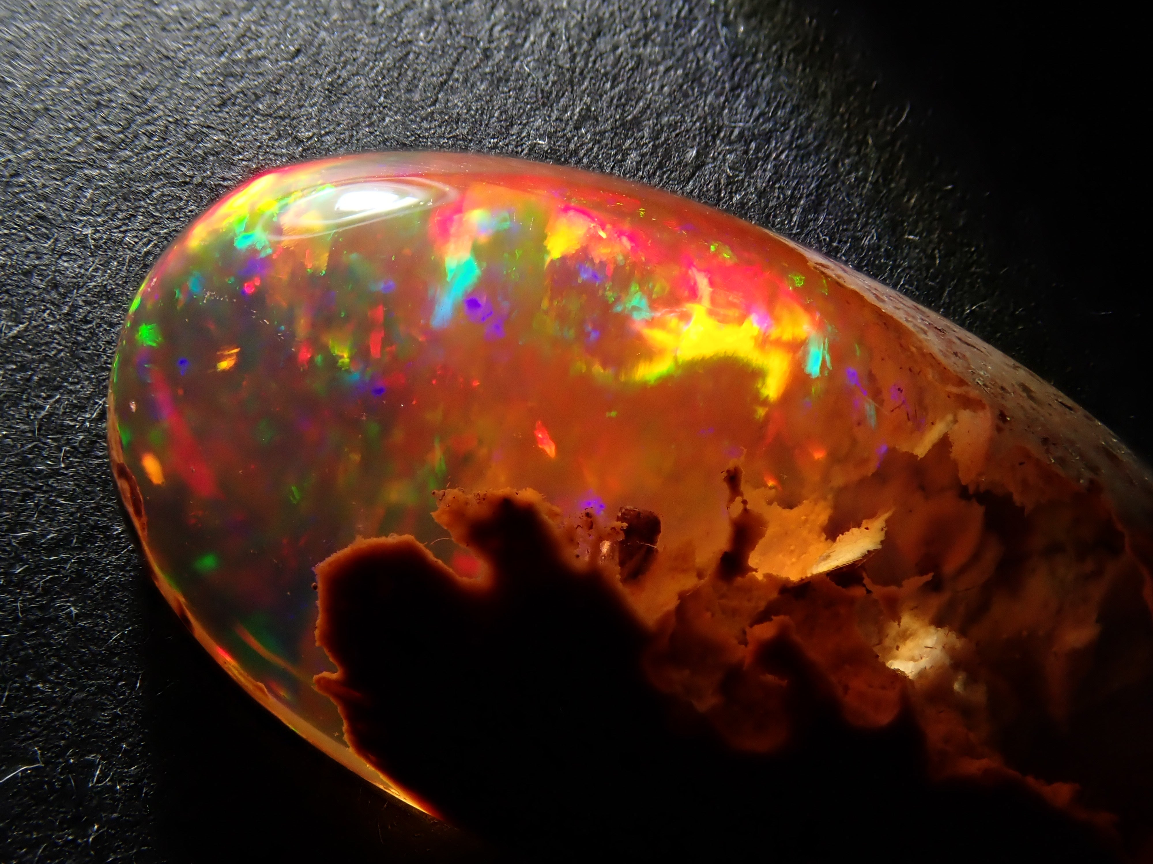 蛋白石是一種以彩虹般閃耀的色彩為特徵的寶石。蛋白石種類繁多,但最受收藏家青睞的是坎德拉蛋白石。它給人一種地球活力的印象,擁有眾多愛好者,即使是散石也可以欣賞。坎德拉蛋白石本身就是一種富含坎德拉的寶石。照片是用筆形電筒拍攝的。