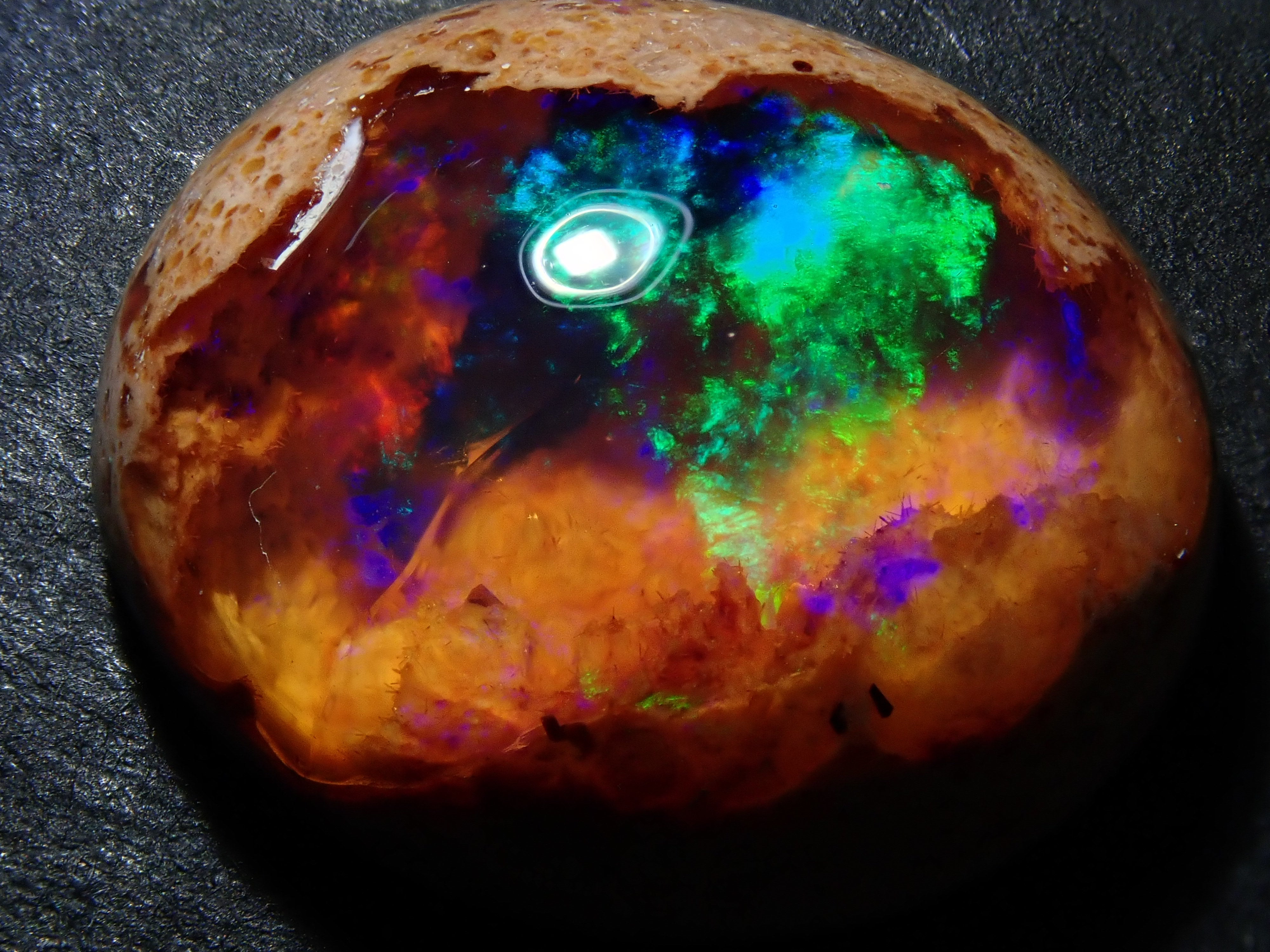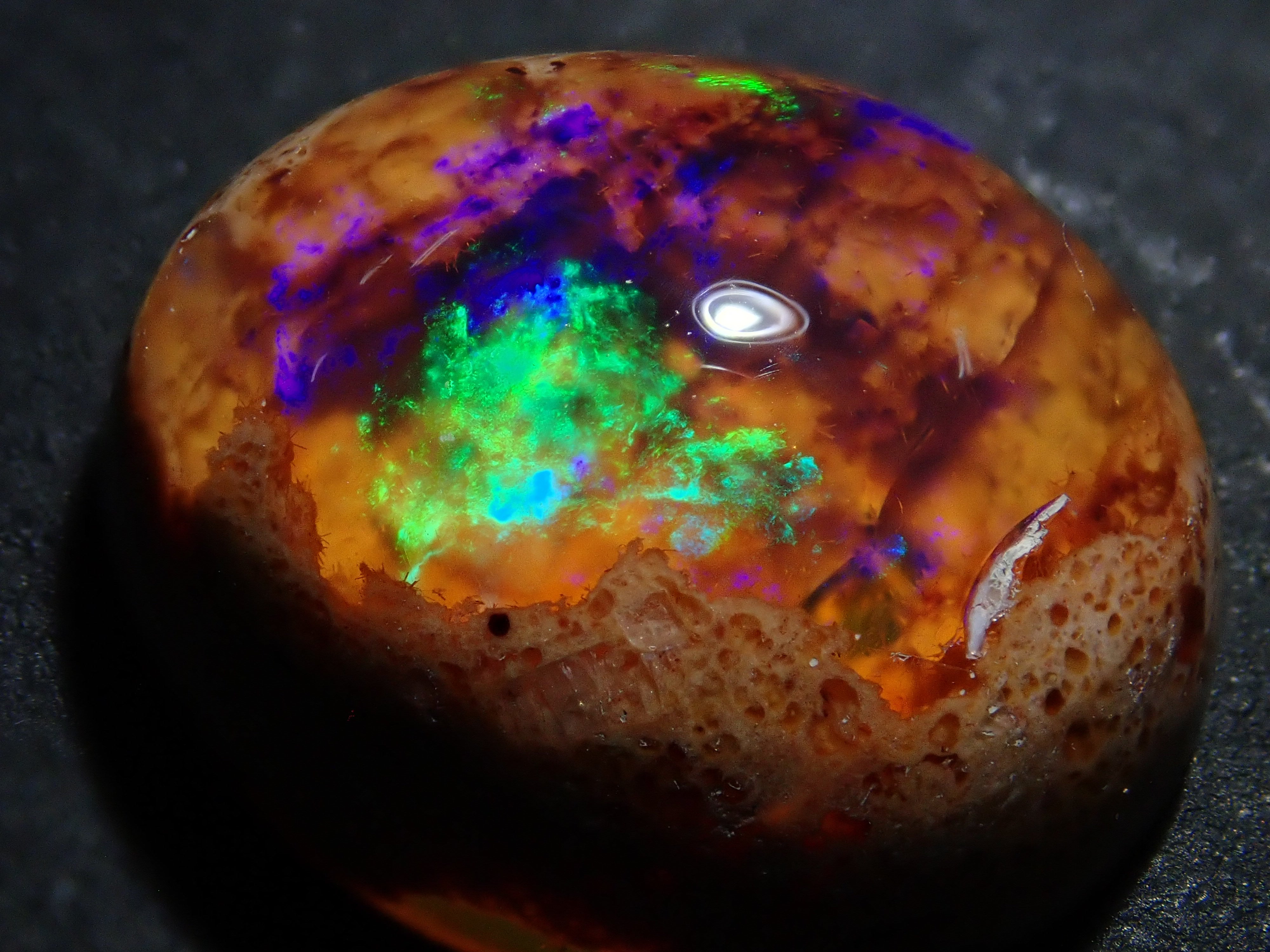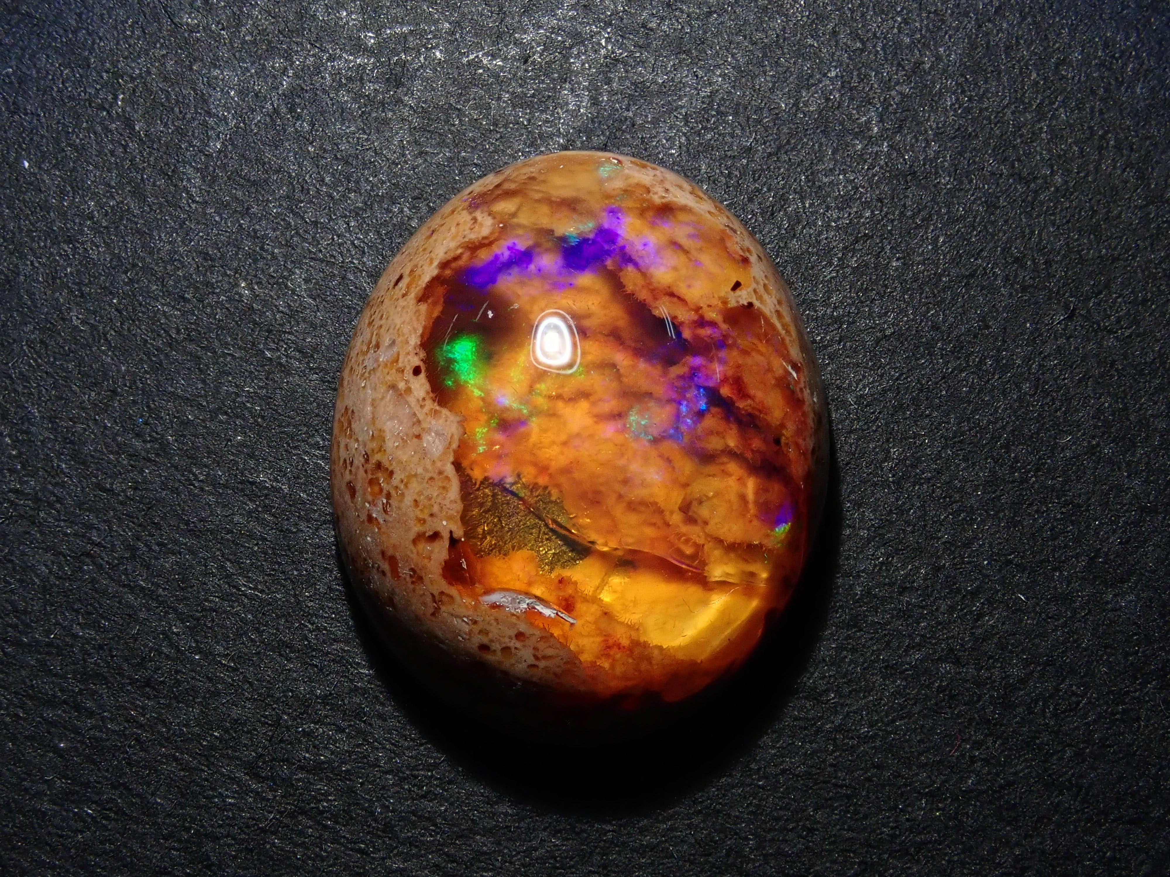蛋白石是一種以彩虹般閃耀的色彩為特徵的寶石。蛋白石種類繁多,但最受收藏家青睞的是坎德拉蛋白石。它給人一種地球活力的印象,擁有眾多愛好者,即使是散石也可以欣賞。坎德拉蛋白石本身就是一種富含坎德拉的寶石。照片是用筆形電筒拍攝的。