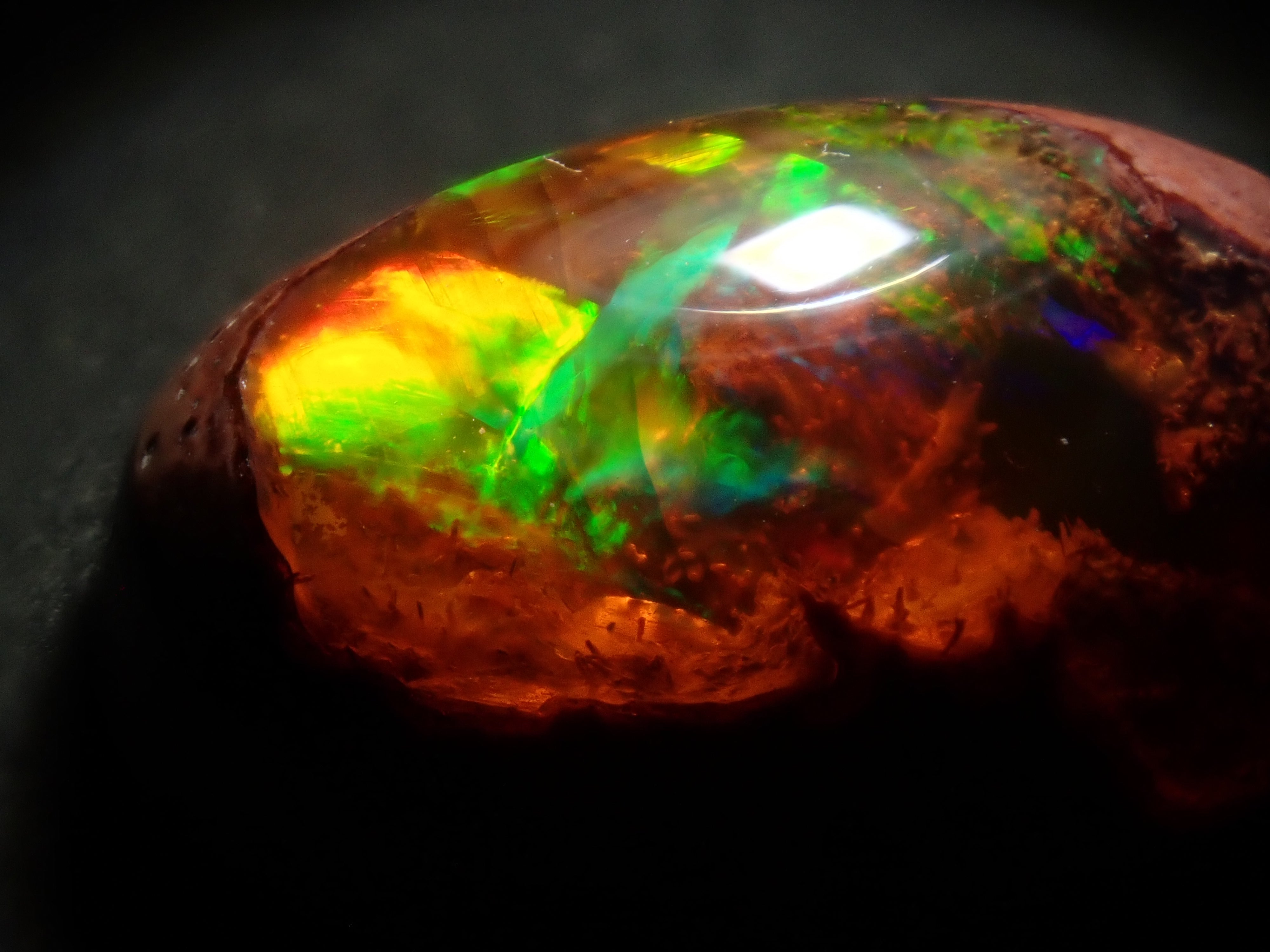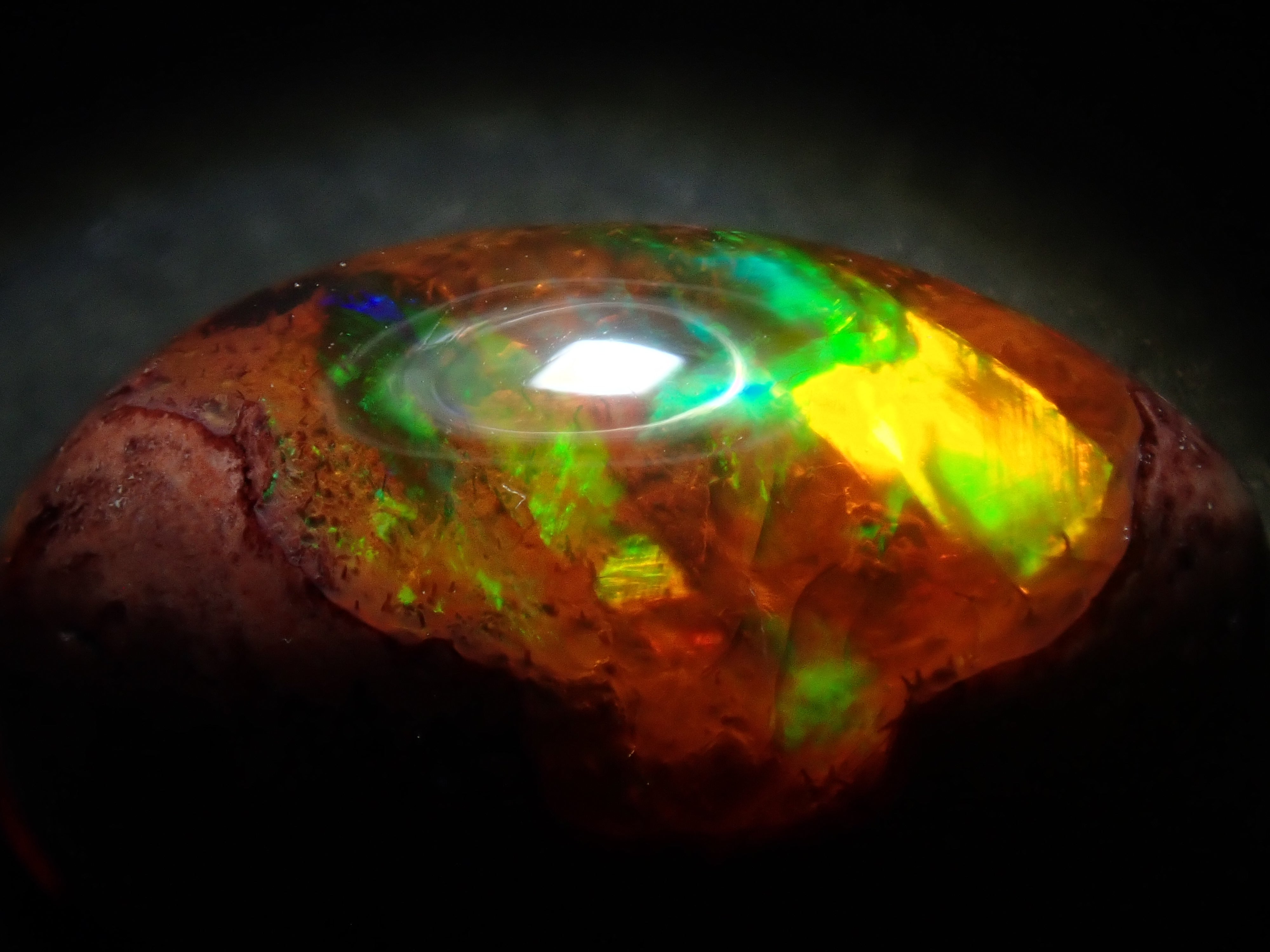蛋白石是一種以彩虹般閃耀的色彩為特徵的寶石。蛋白石種類繁多,但最受收藏家青睞的是坎德拉蛋白石。它給人一種地球活力的印象,擁有眾多愛好者,即使是散石也可以欣賞。坎德拉蛋白石本身就是一種富含坎德拉的寶石。照片是用筆形電筒拍攝的。