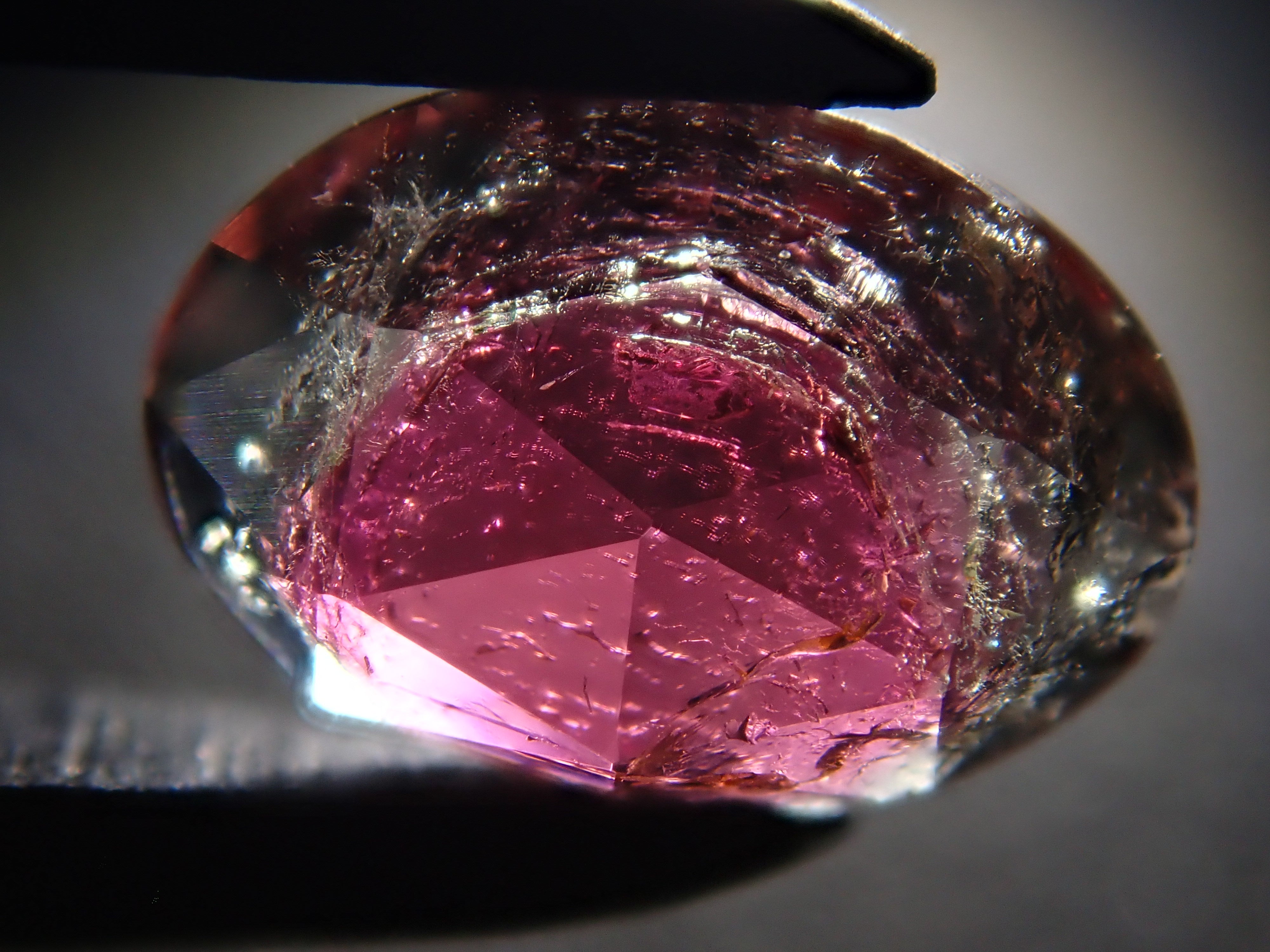 這是來自巴西的玫瑰式切割雙色碧璽散石。