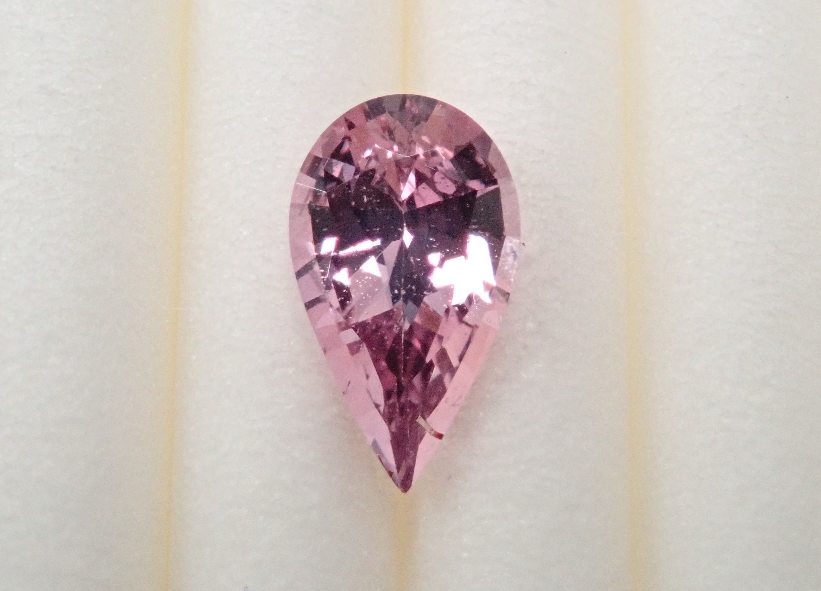 這是一顆來自馬達加斯加的 0.486 克拉梨形切割粉紅色藍寶石,透明度高。