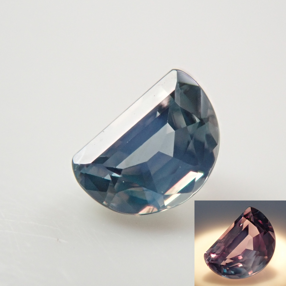 這顆半月形切割的亞歷山大變石直接從巴西Hematita礦主處購得。您可以欣賞它的顏色變化。