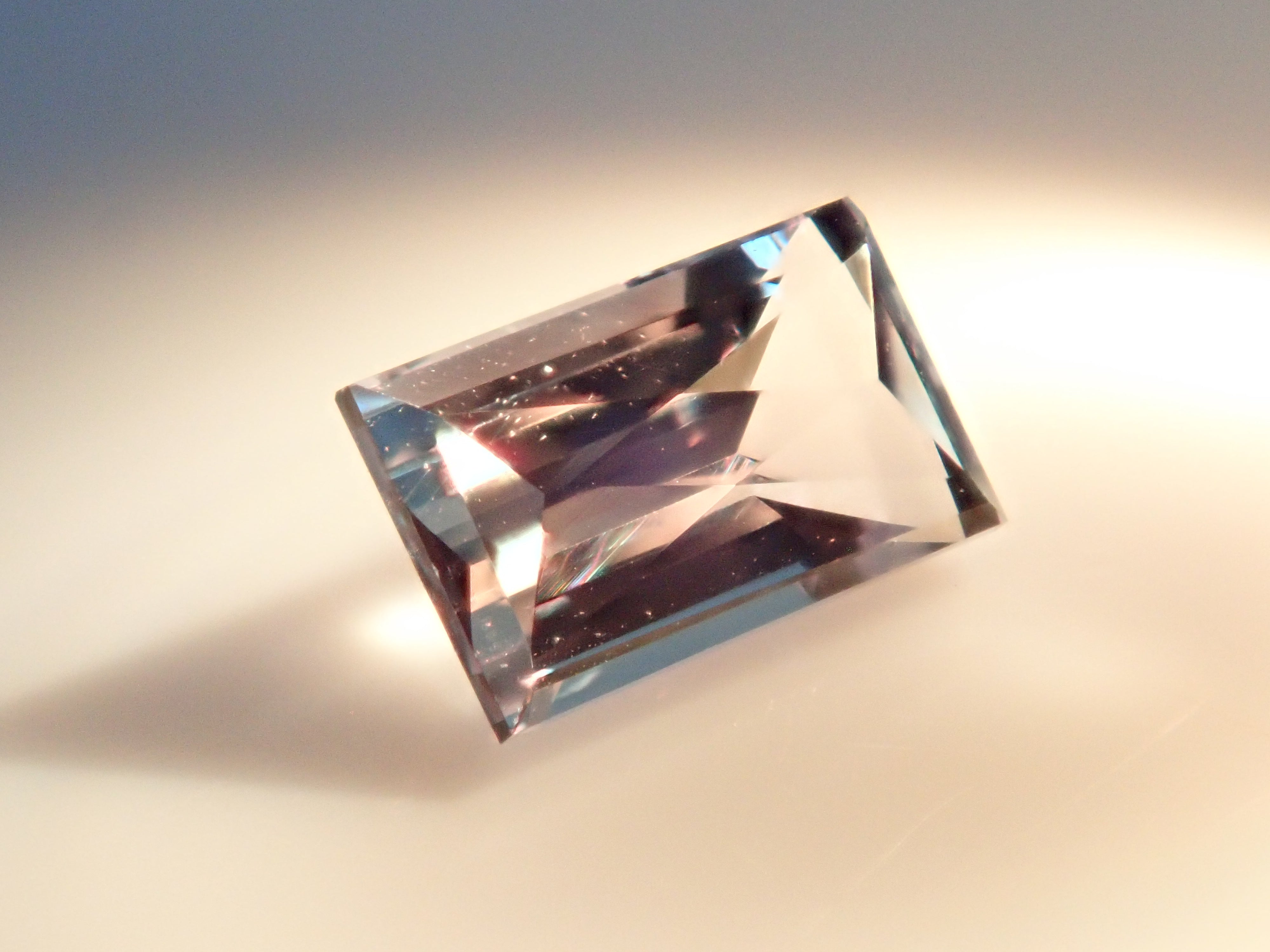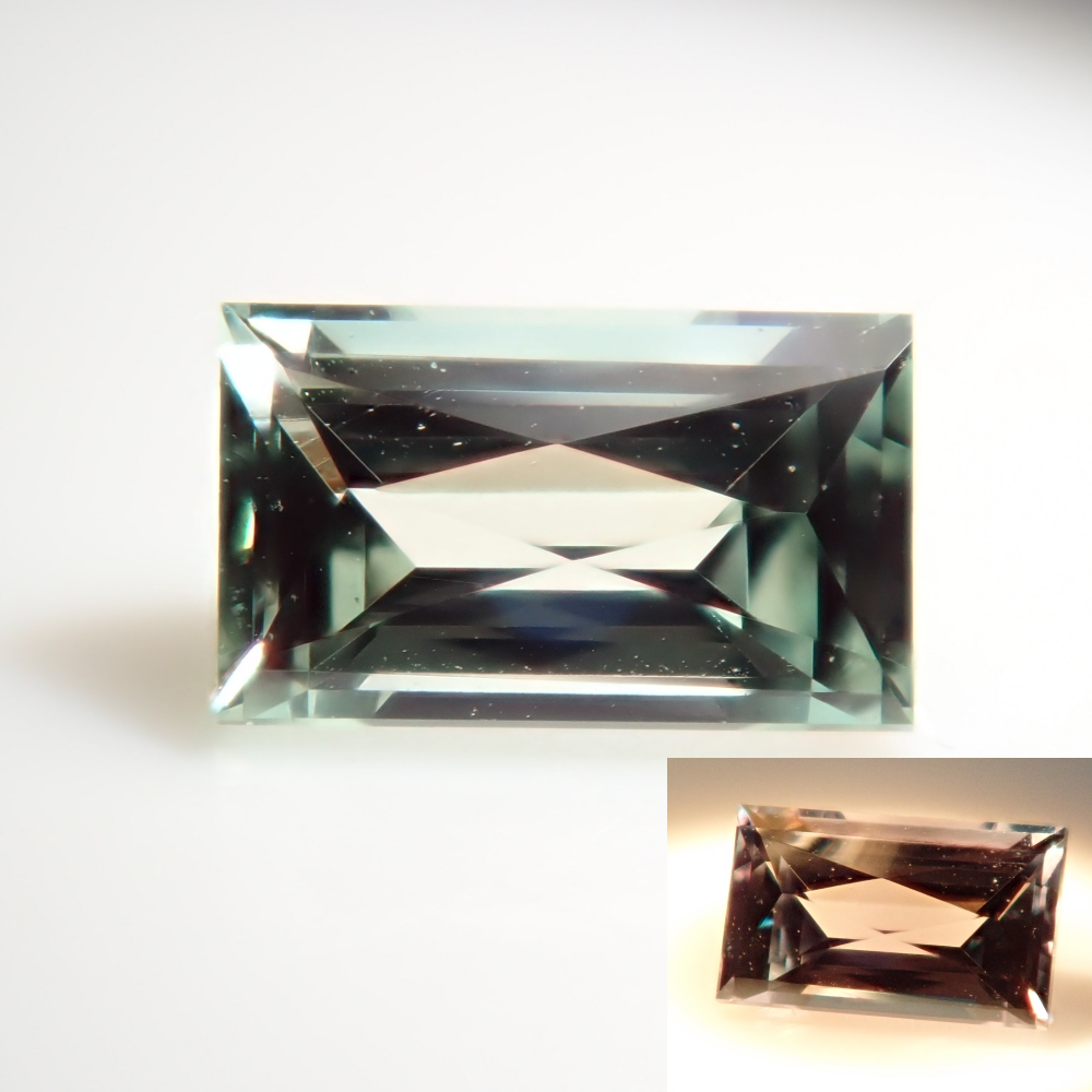 透明度極高,您可以欣賞顏色的變化。長方形切割的巴西亞歷山大變石。