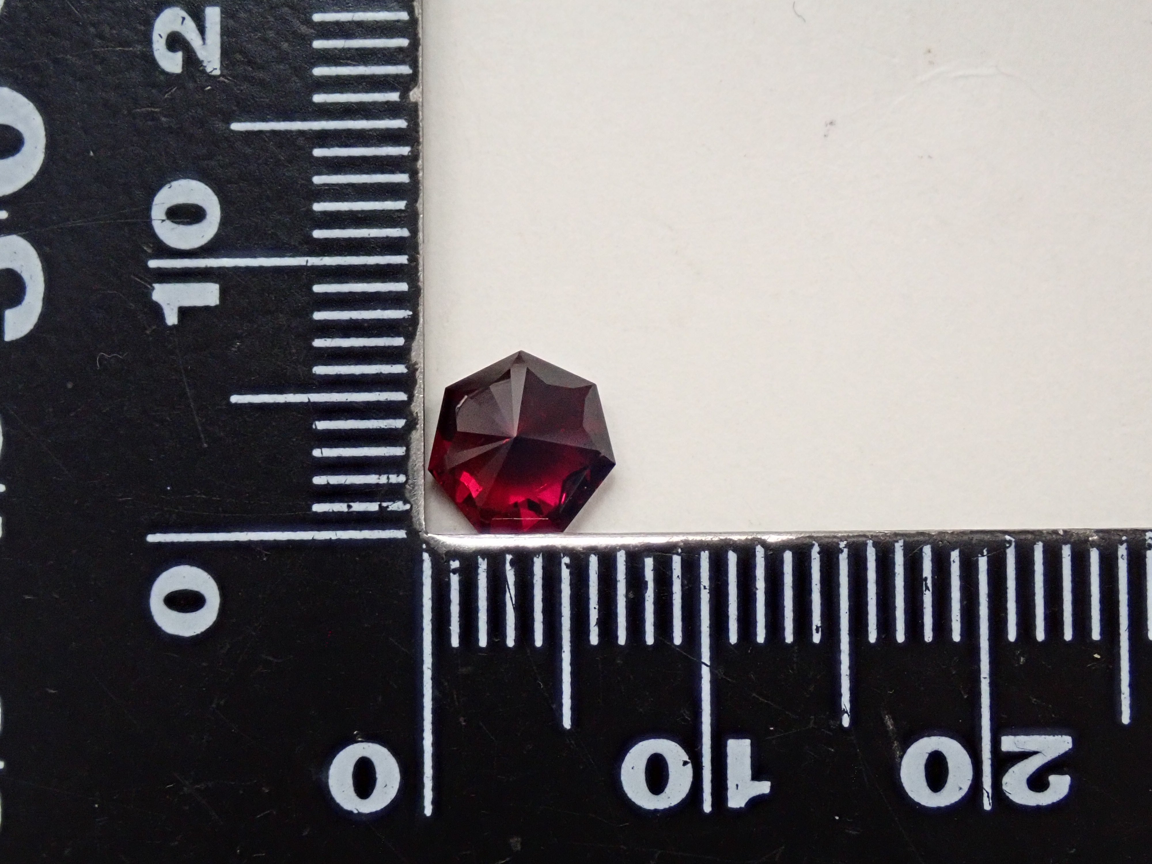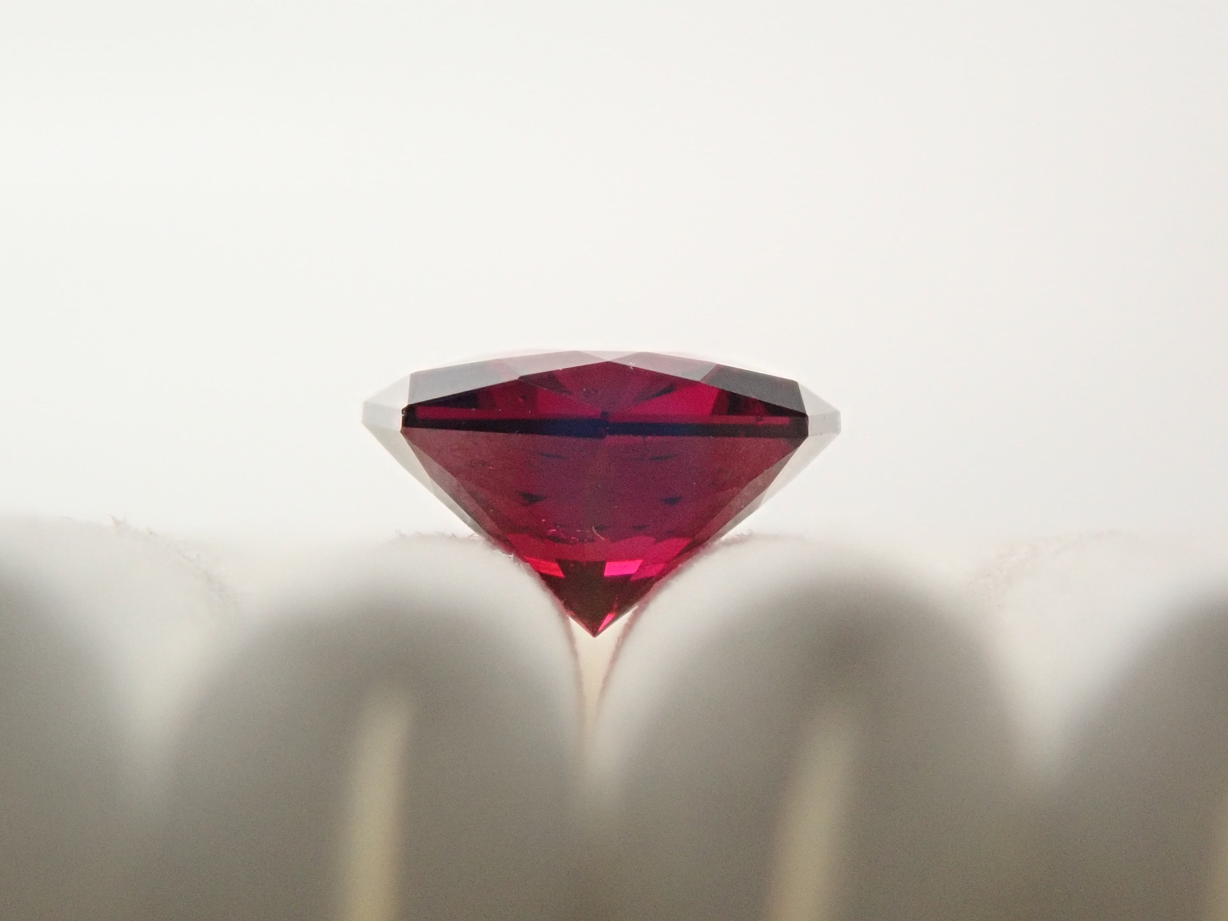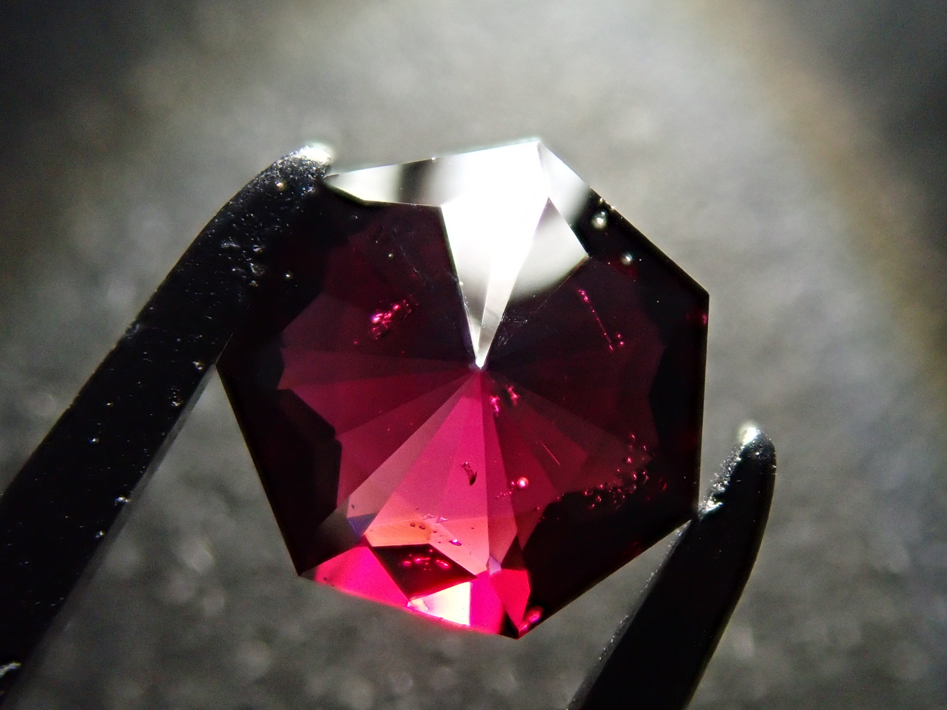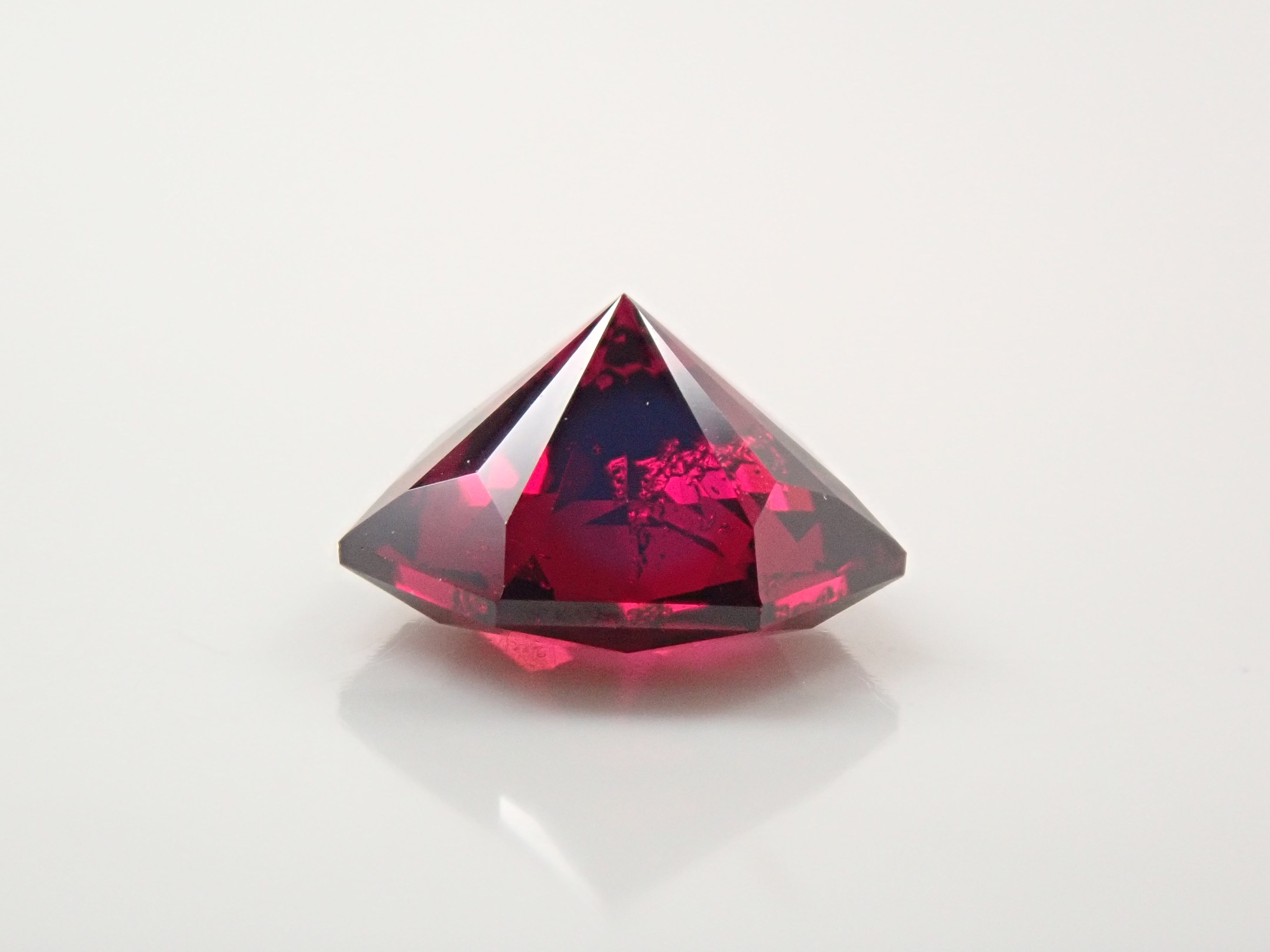 石榴石是著名的一月誕生石。它的顏色多種多樣,包括紅色、黃色、橙色和綠色。其中最受歡迎的紅色石榴石是「鐵鋁榴石」。它的特徵是深紅色。這顆鐵鋁榴石由斯里蘭卡切割師桑傑切割而成。