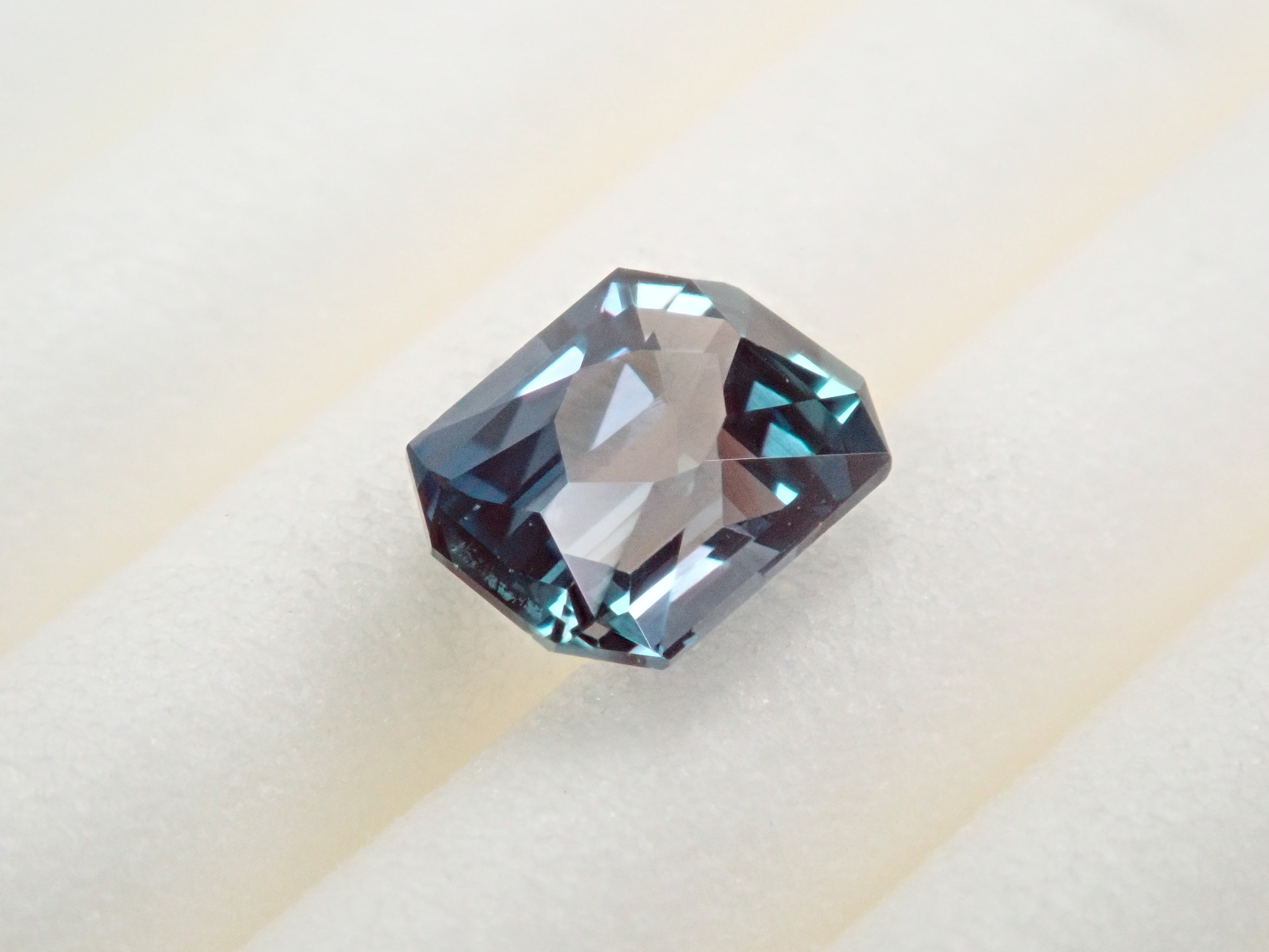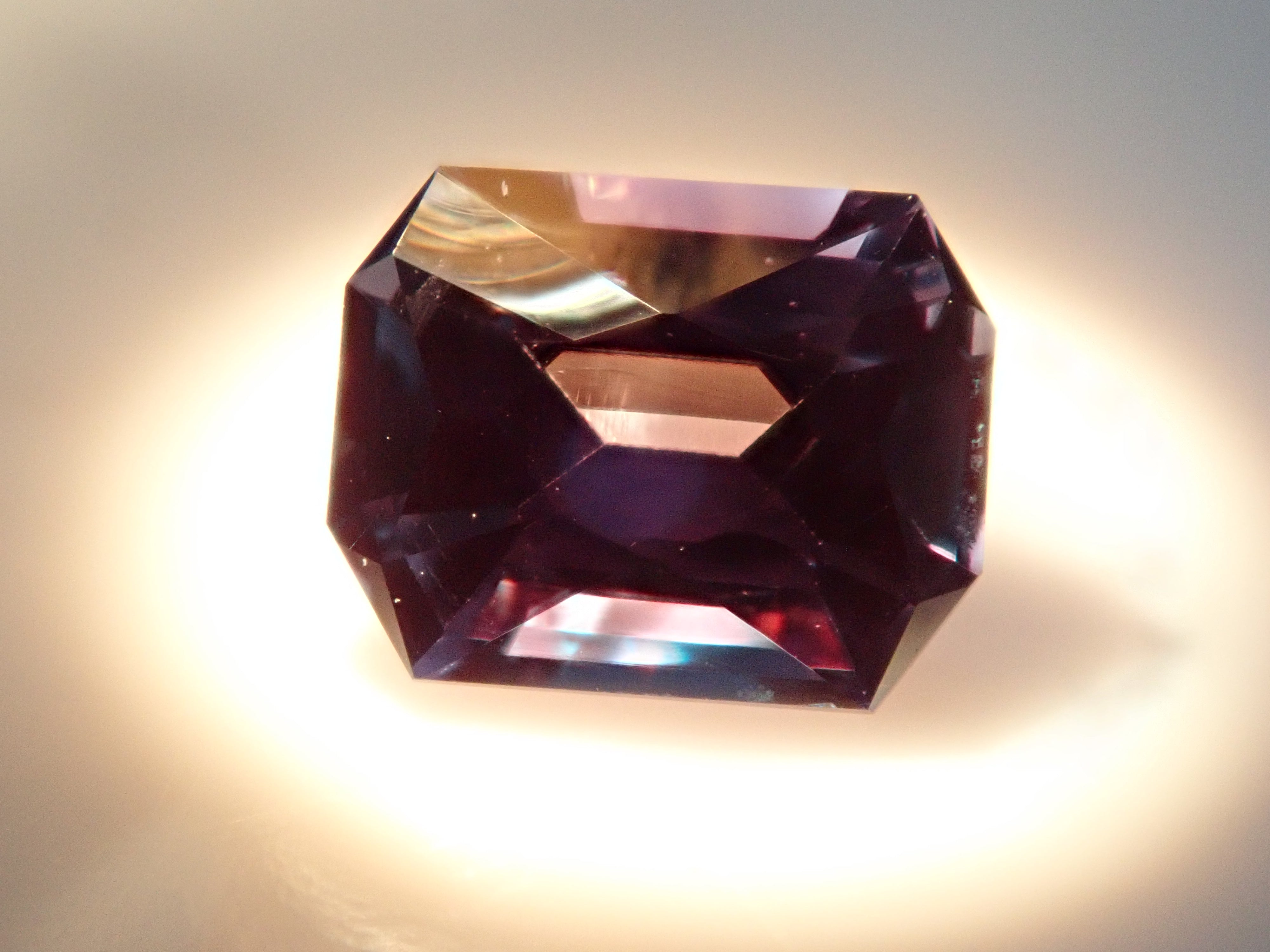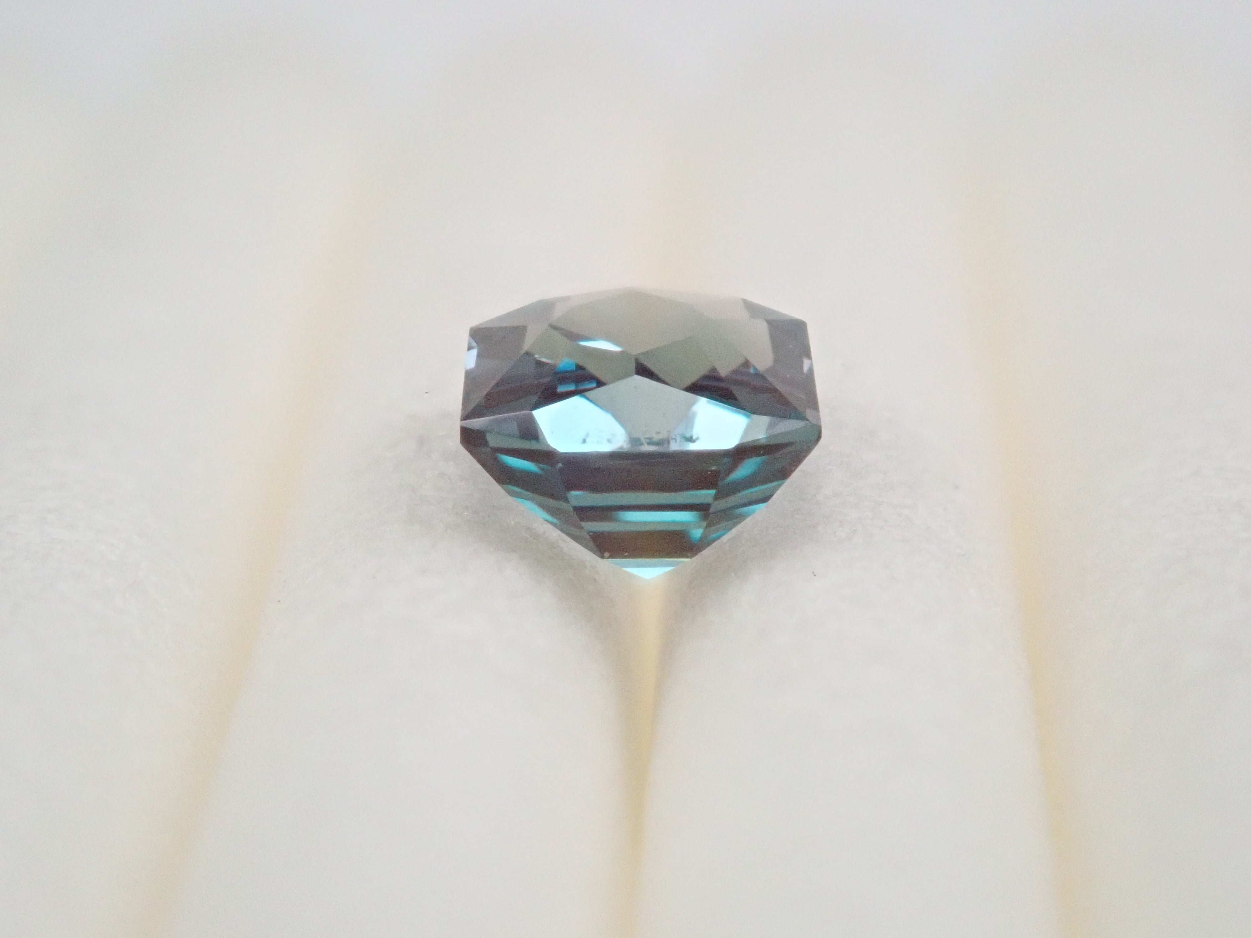 這是一顆璀璨奪目的合成亞歷山大變石。這種切工在合成亞歷山大變石中十分罕見。