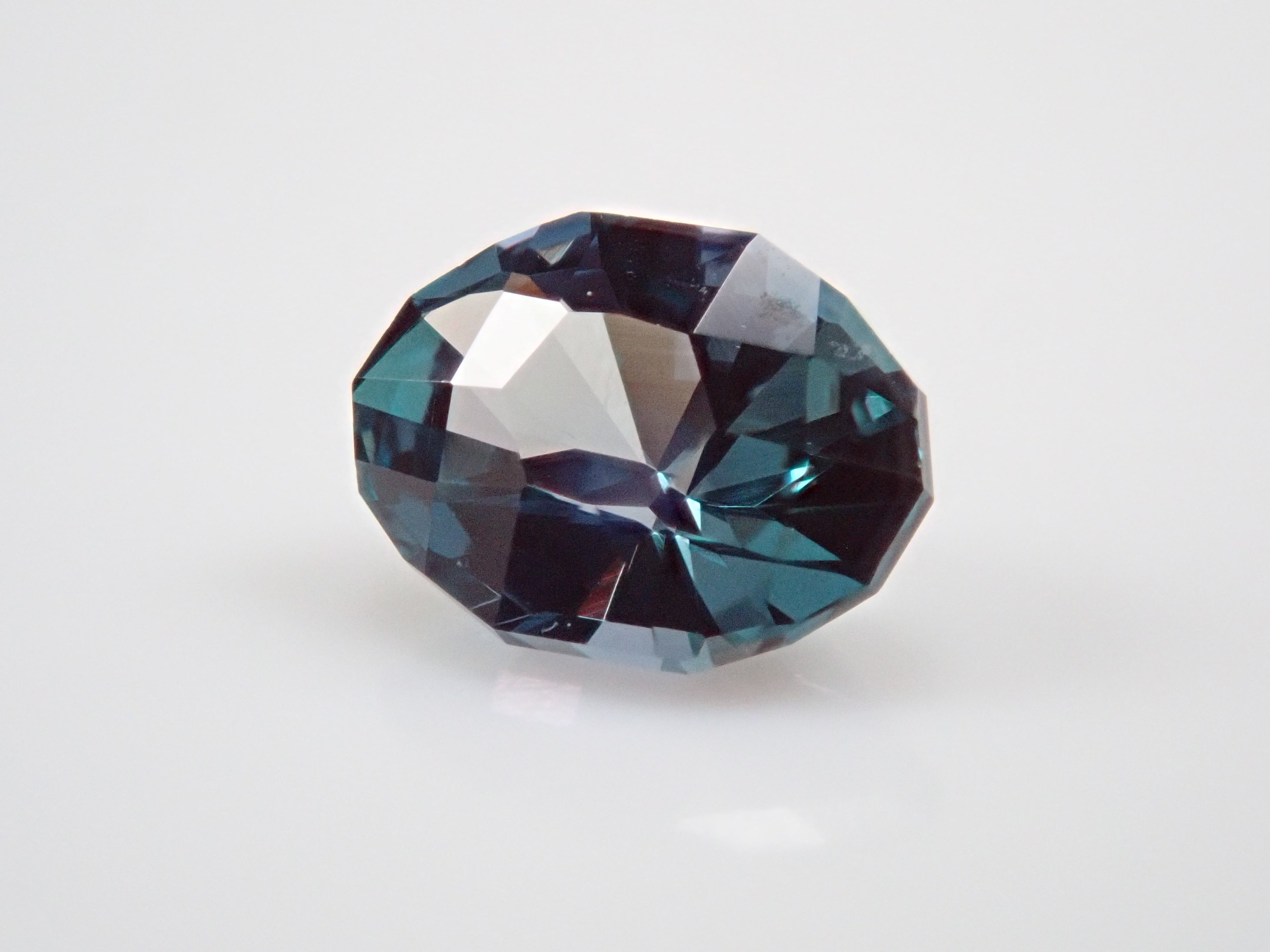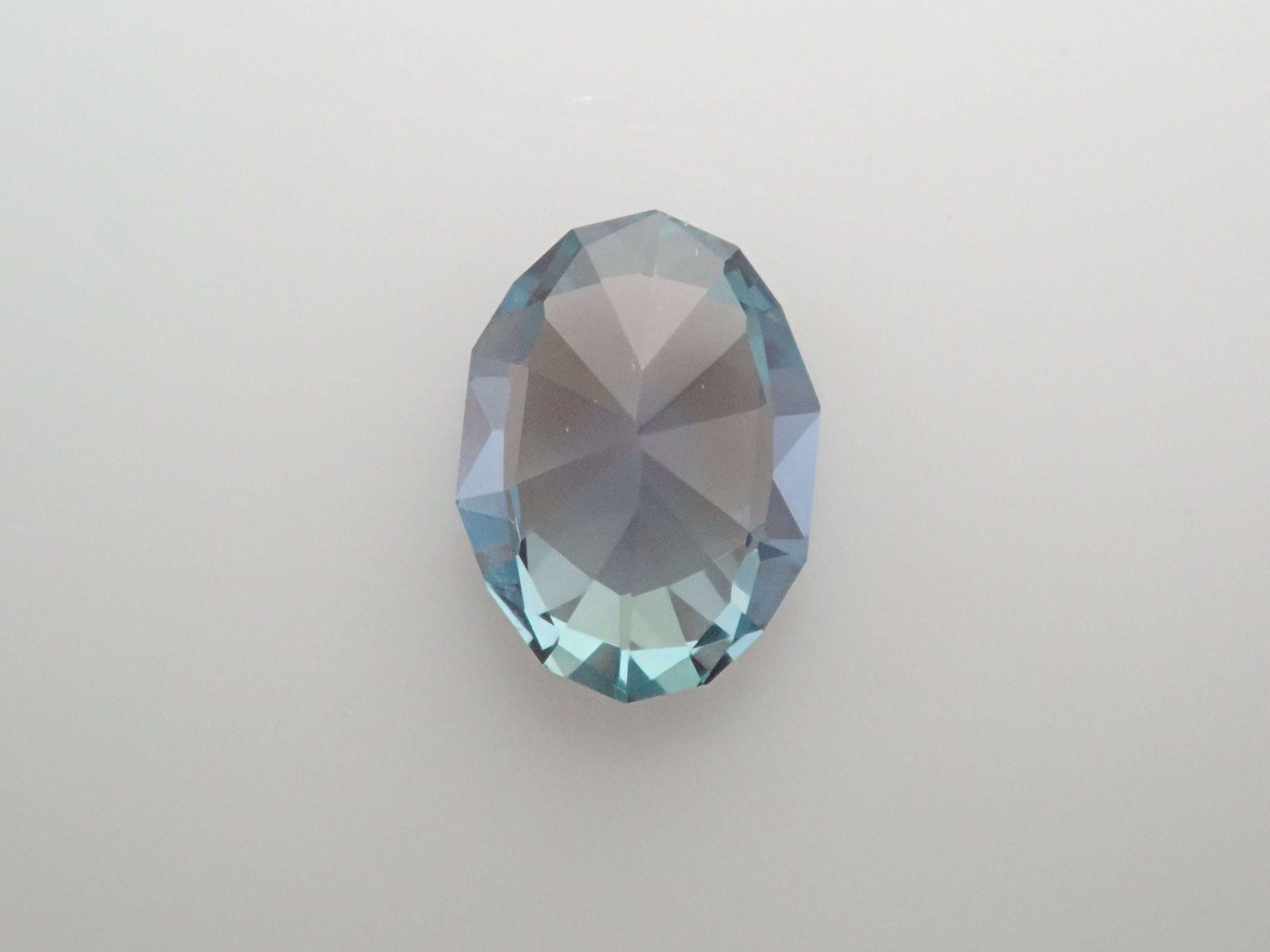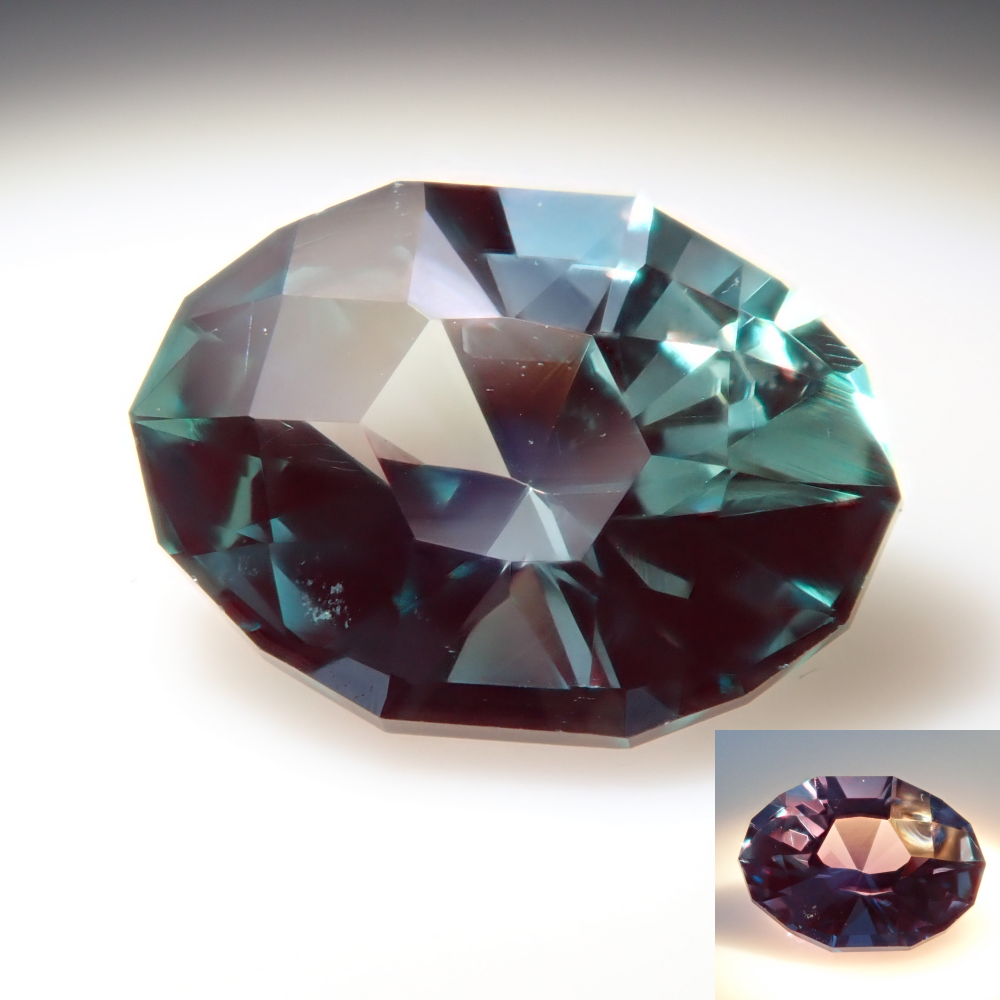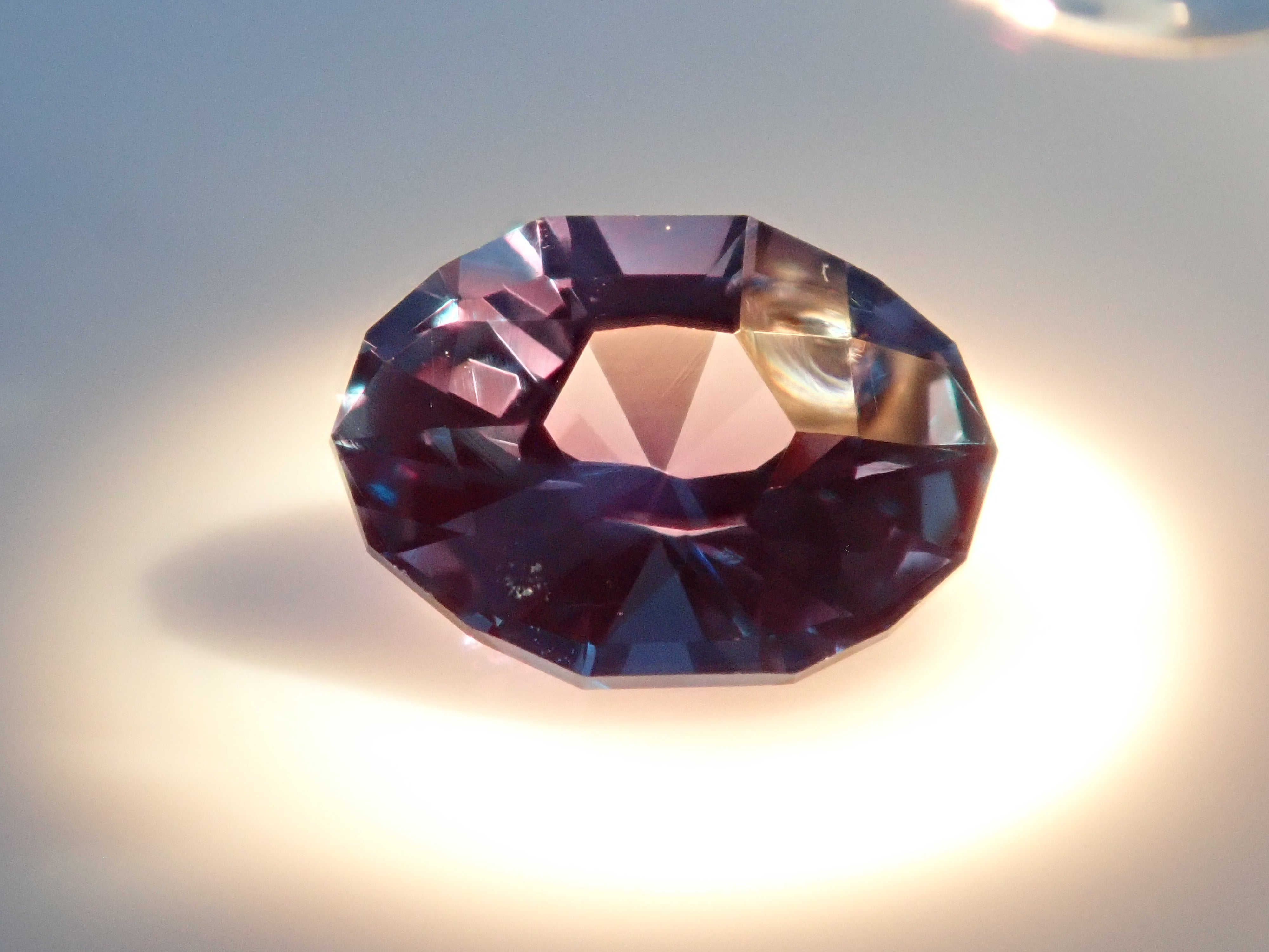 這是一顆璀璨奪目的合成亞歷山大變石。這種切工在合成亞歷山大變石中十分罕見。