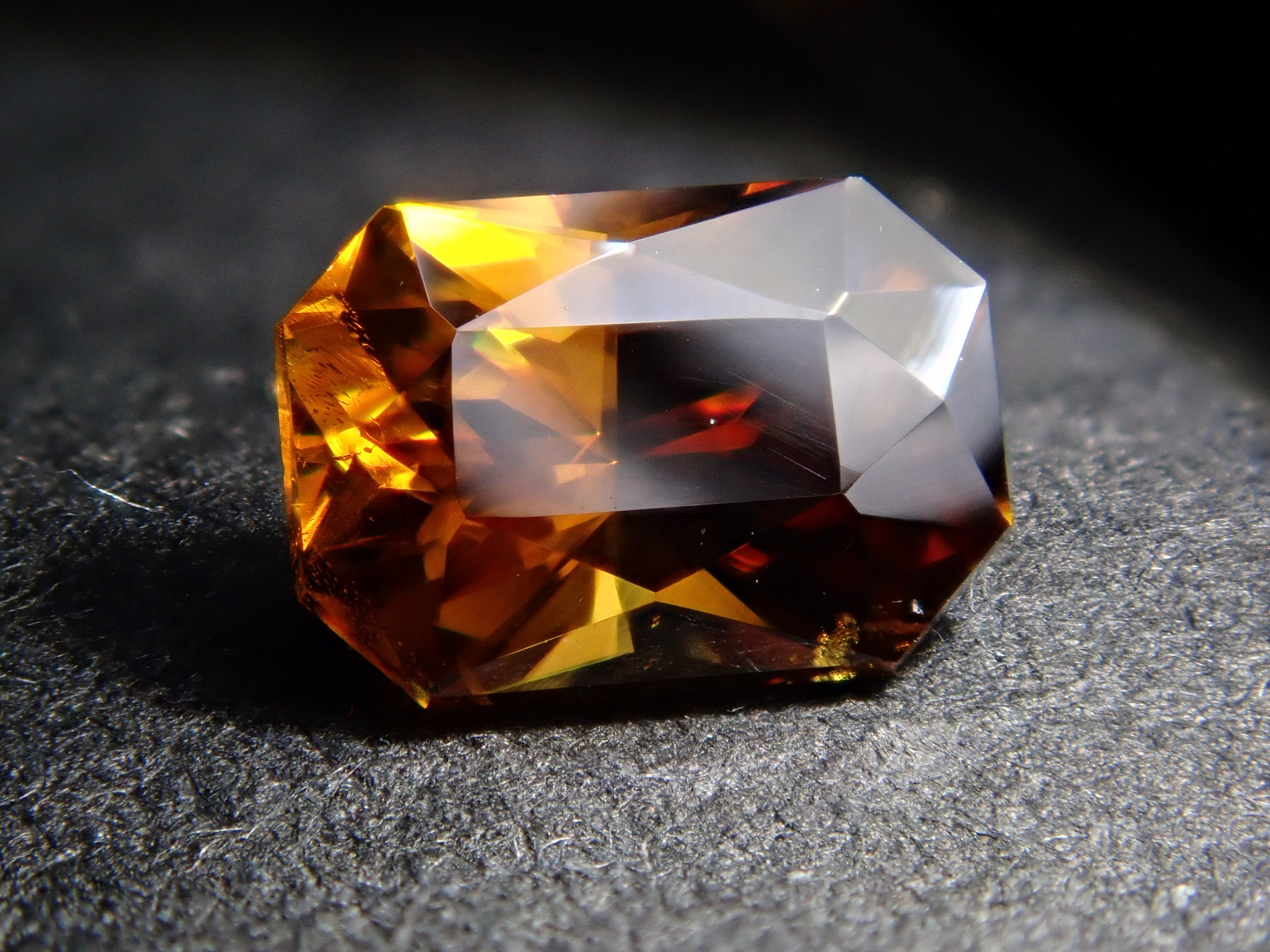 榍石散發著金色的光芒和絢麗的火彩。它是一種魅力十足的寶石,其火彩比鑽石更濃烈,越來越受到收藏家的青睞。榍石的光芒會隨著角度的變化而產生巨大的變化。不妨試試在陽光下用手掌滾動榍石,仔細觀察它。部分照片是用筆型手電筒拍攝的。