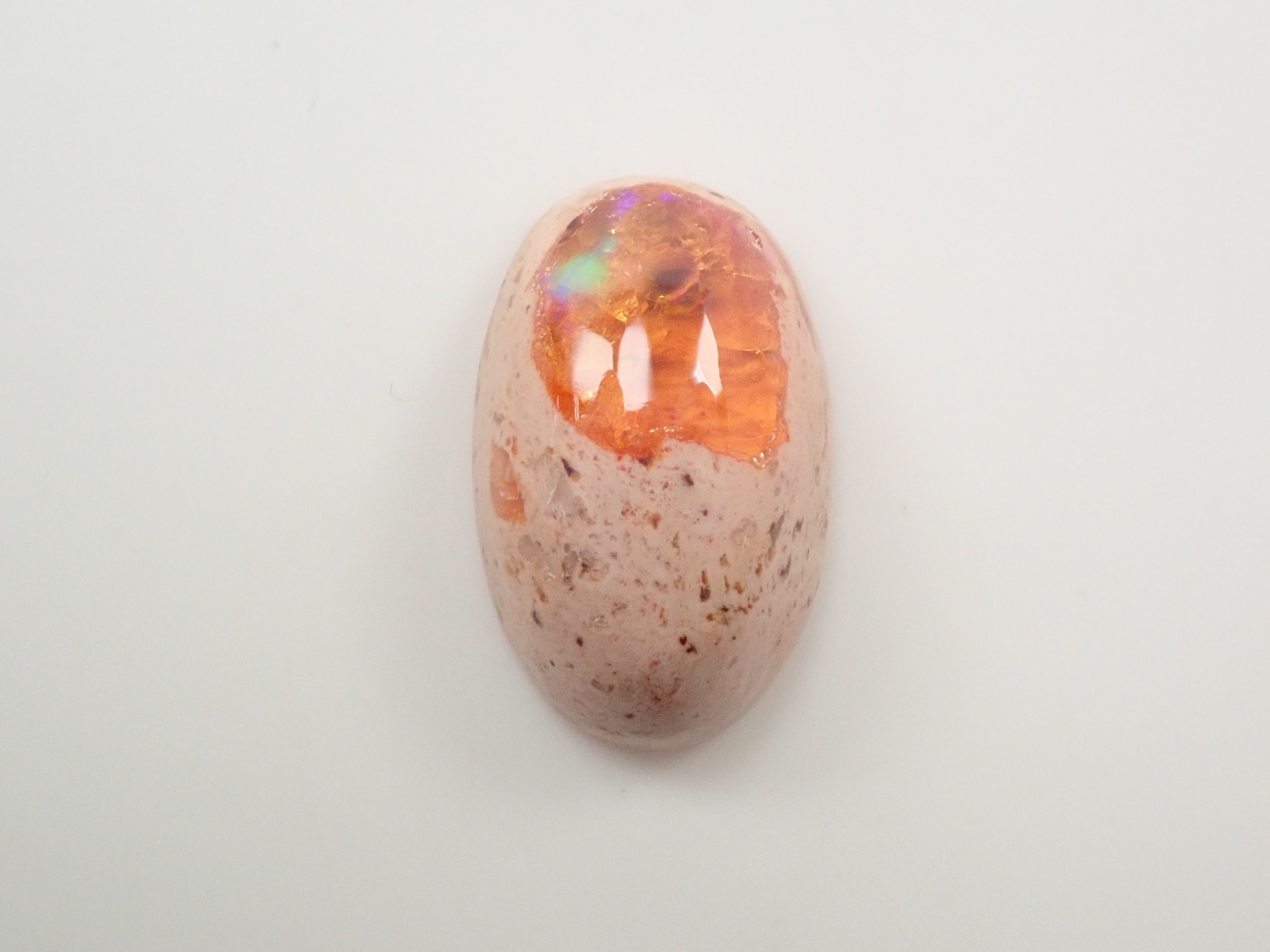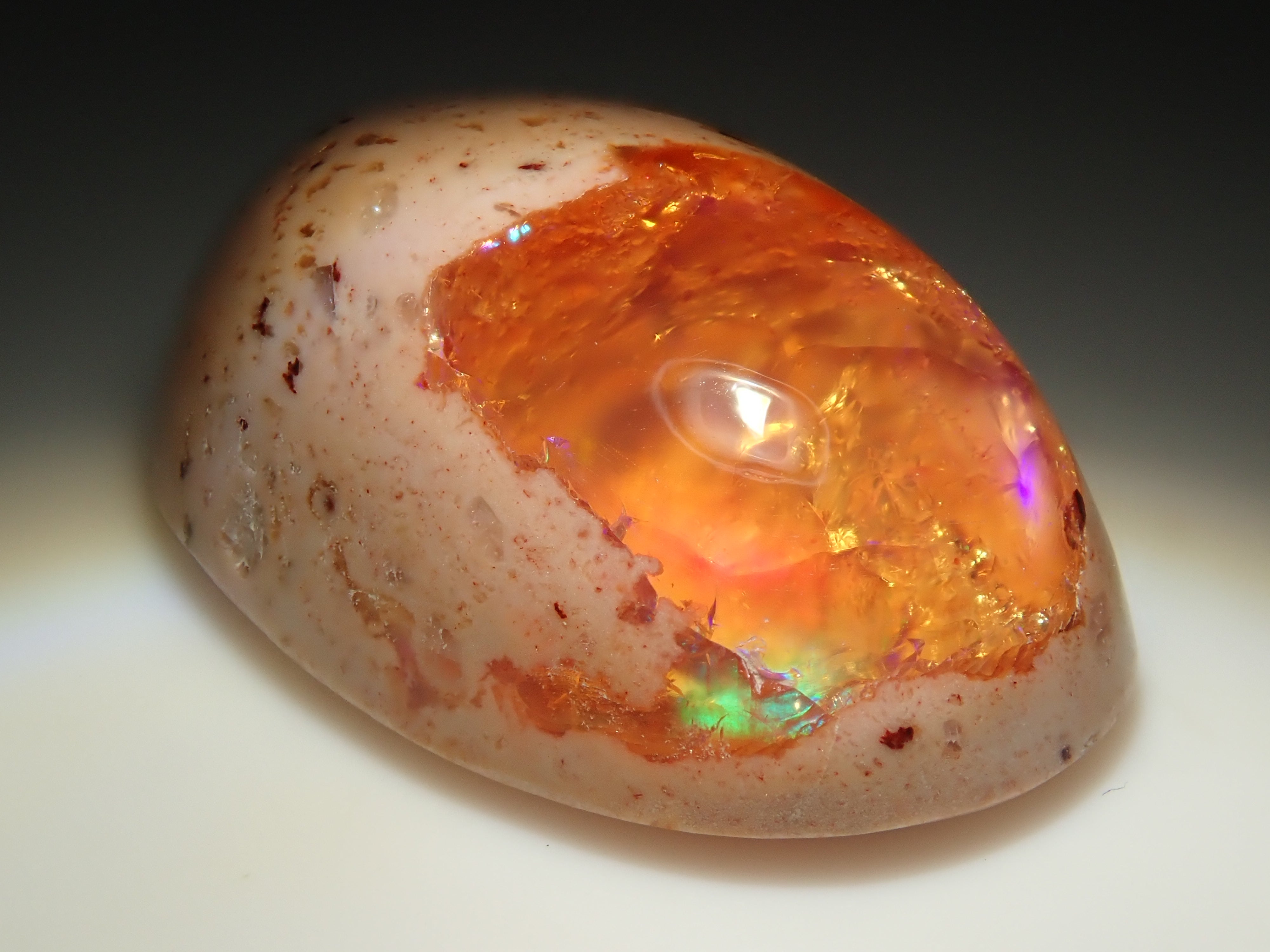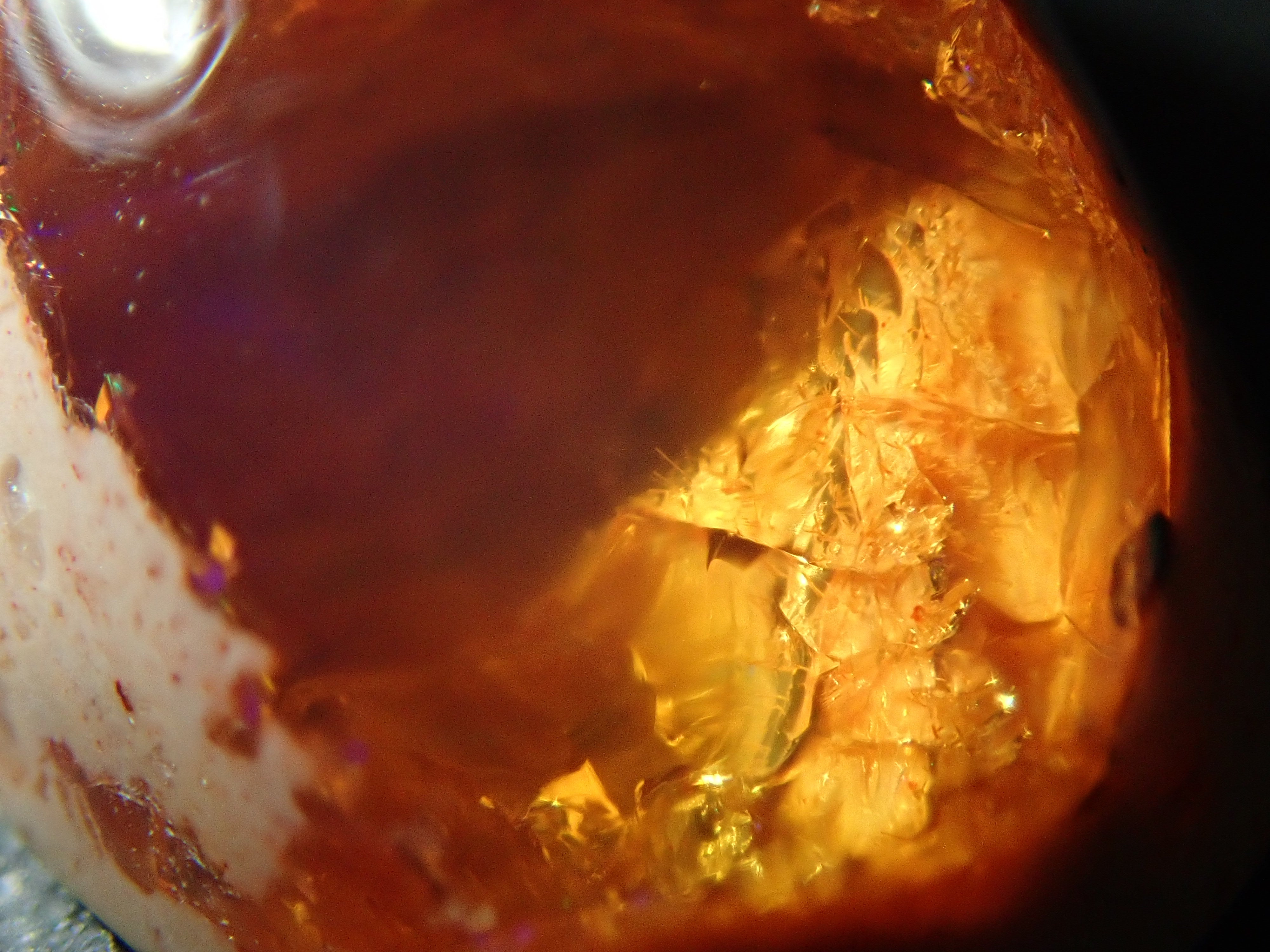 坎特拉蛋白石是一種天然富含赤鐵礦的寶石。照片是用筆形電筒拍攝的。