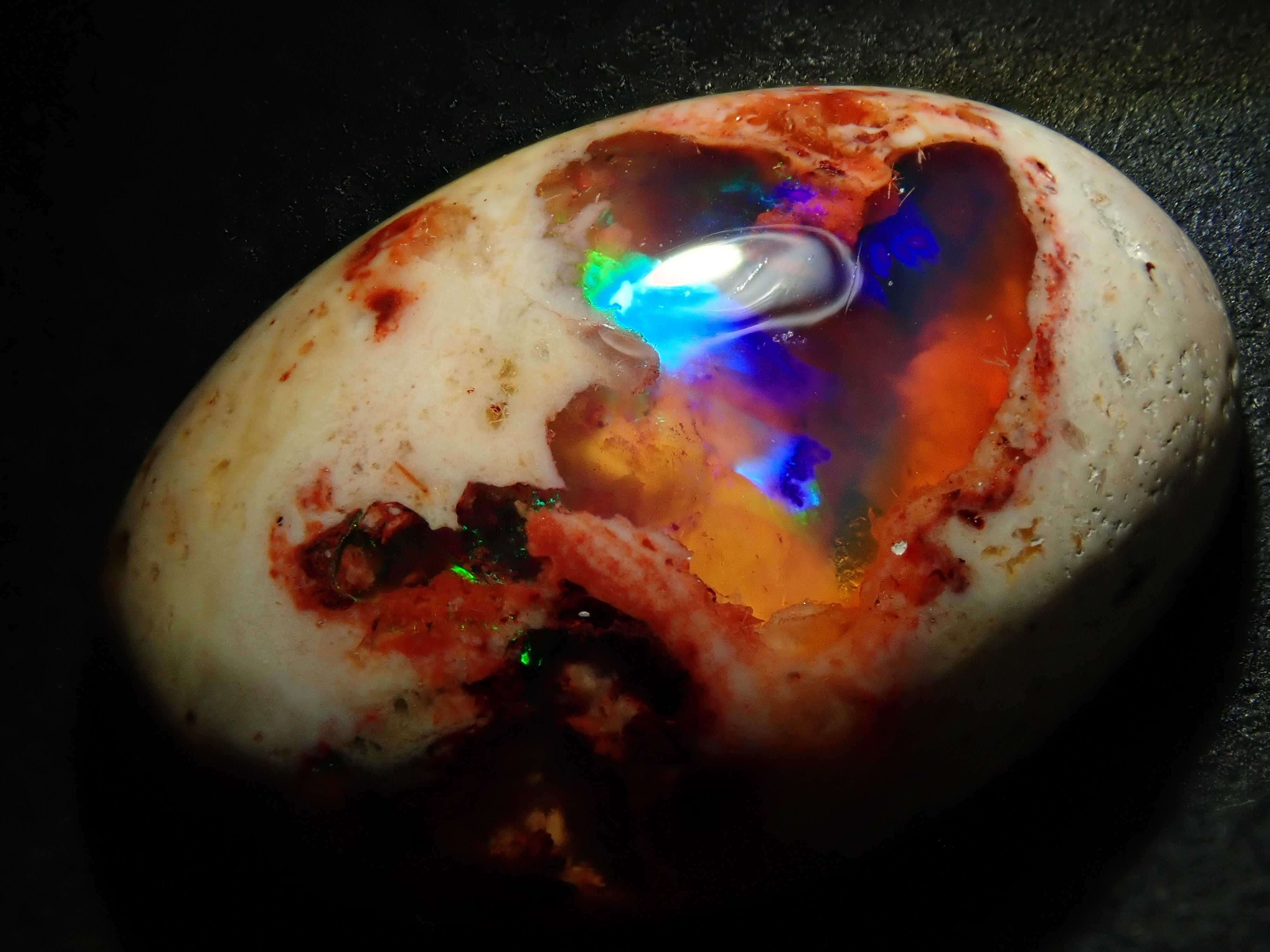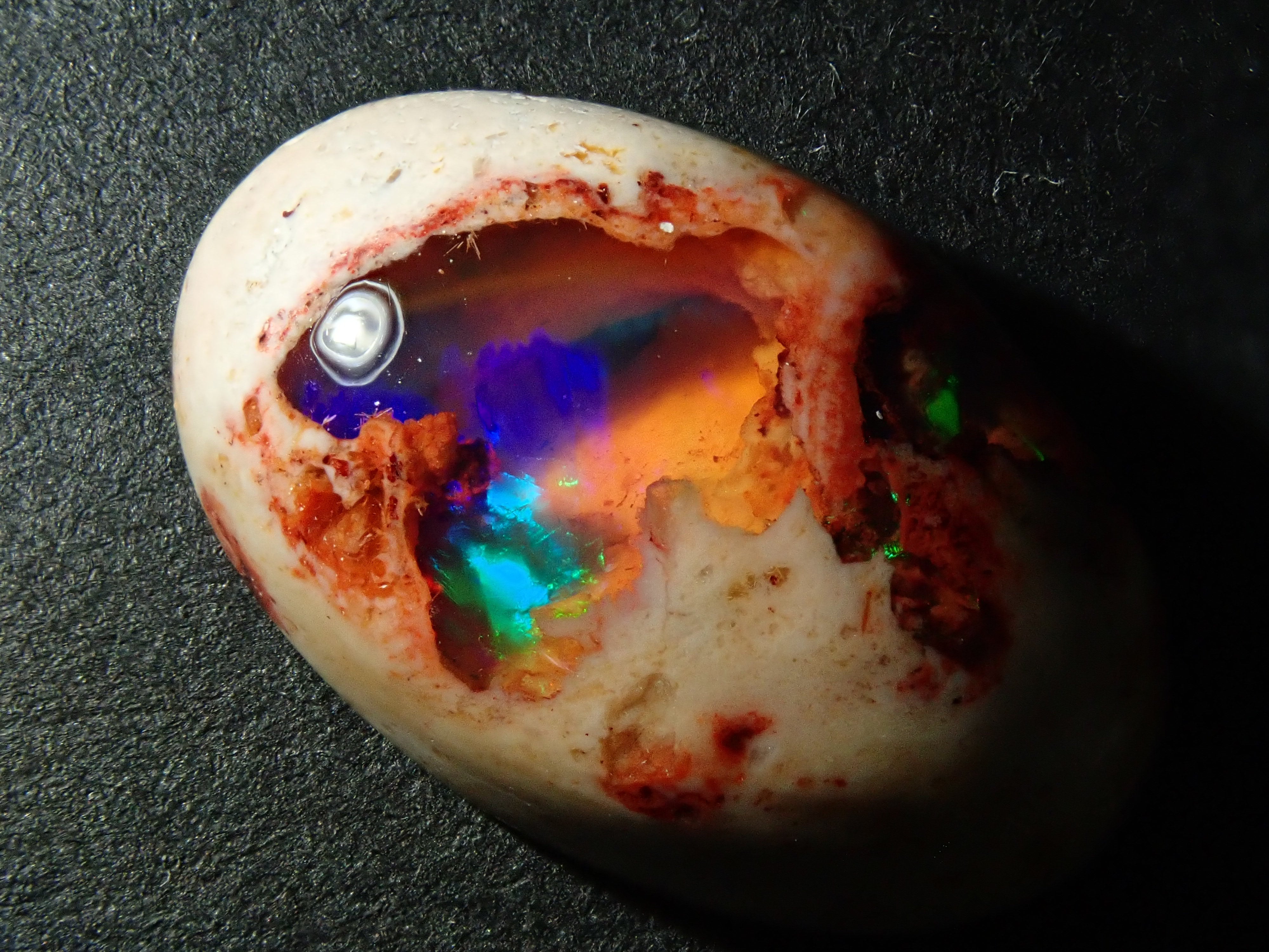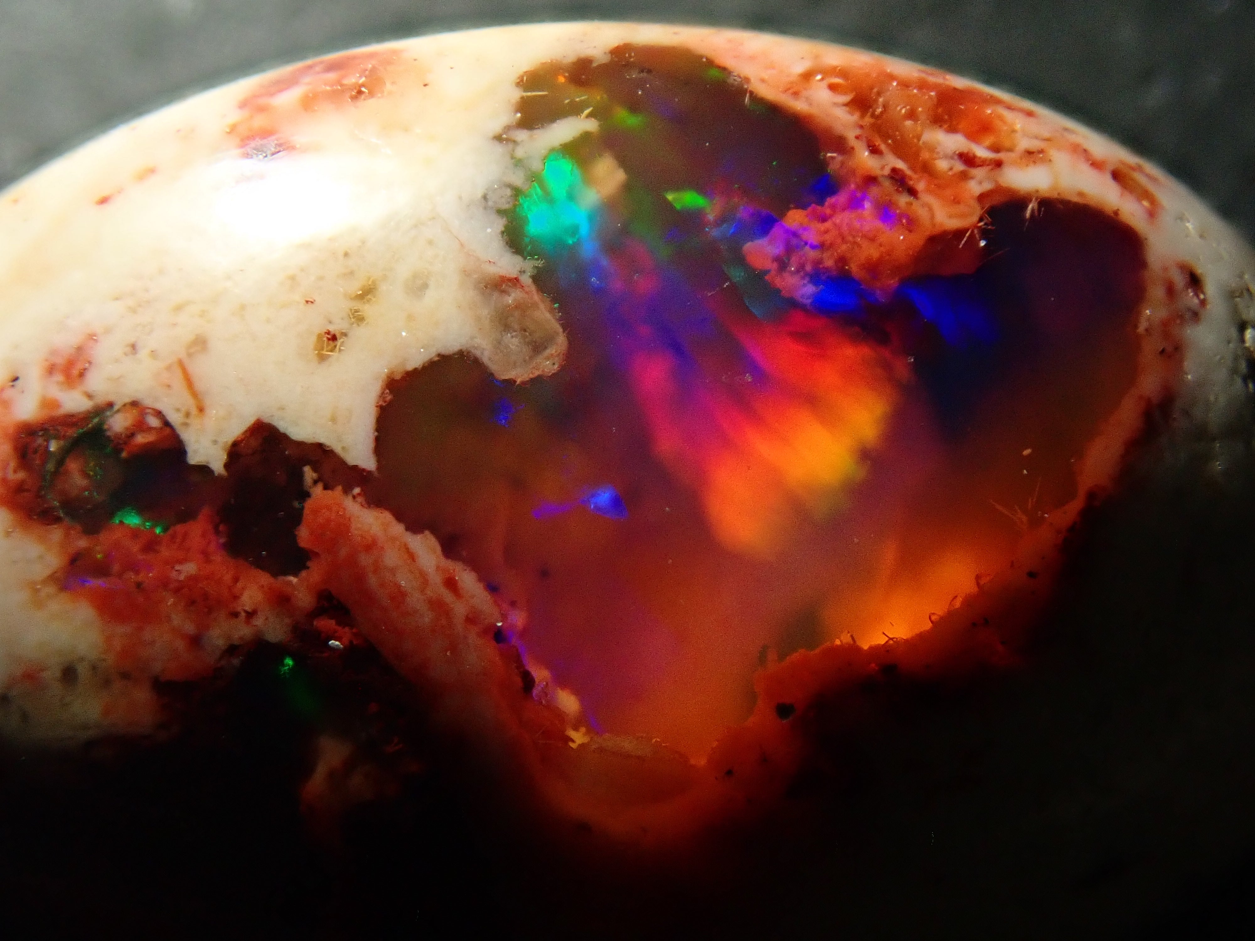 坎特拉蛋白石是一種天然富含赤鐵礦的寶石。照片是用筆形電筒拍攝的。