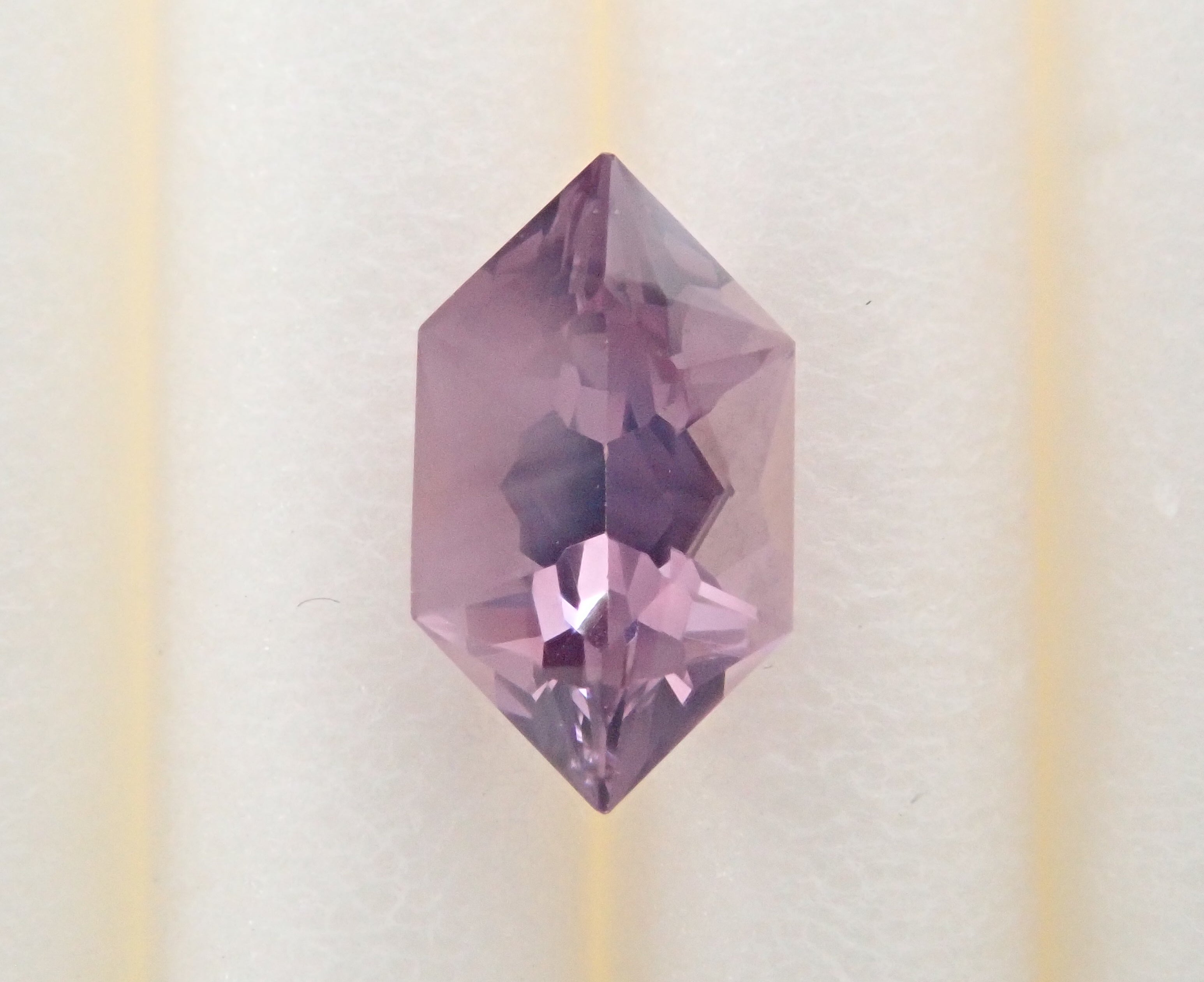 尖晶石是一種色彩繽紛的寶石,充滿魅力。它以幾乎涵蓋除黃色(黃綠色)以外的所有顏色而聞名,包括紅色、橙色、藍色、綠色、黑色和無色。您一定會想收集所有顏色。這就是「紫色尖晶石」。這是一顆長六角形切割的紫色尖晶石。