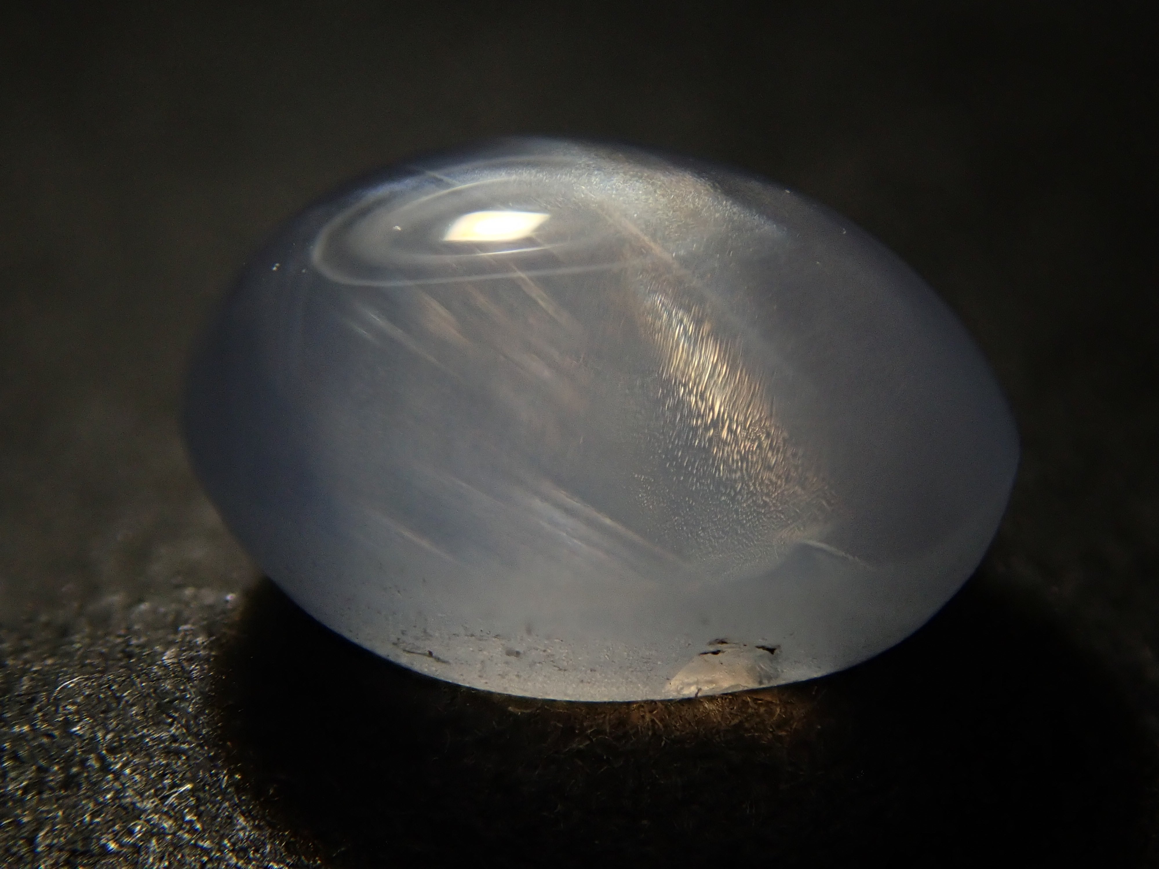 著名的藍寶石是一種著名的寶石。這顆藍寶石具有星光效果。藍寶石是僅次於鑽石的第二硬寶石,硬度為9,堅韌、穩定且易於保養。照片使用了筆型手電筒拍攝。寶石的背面通常未經拋光。