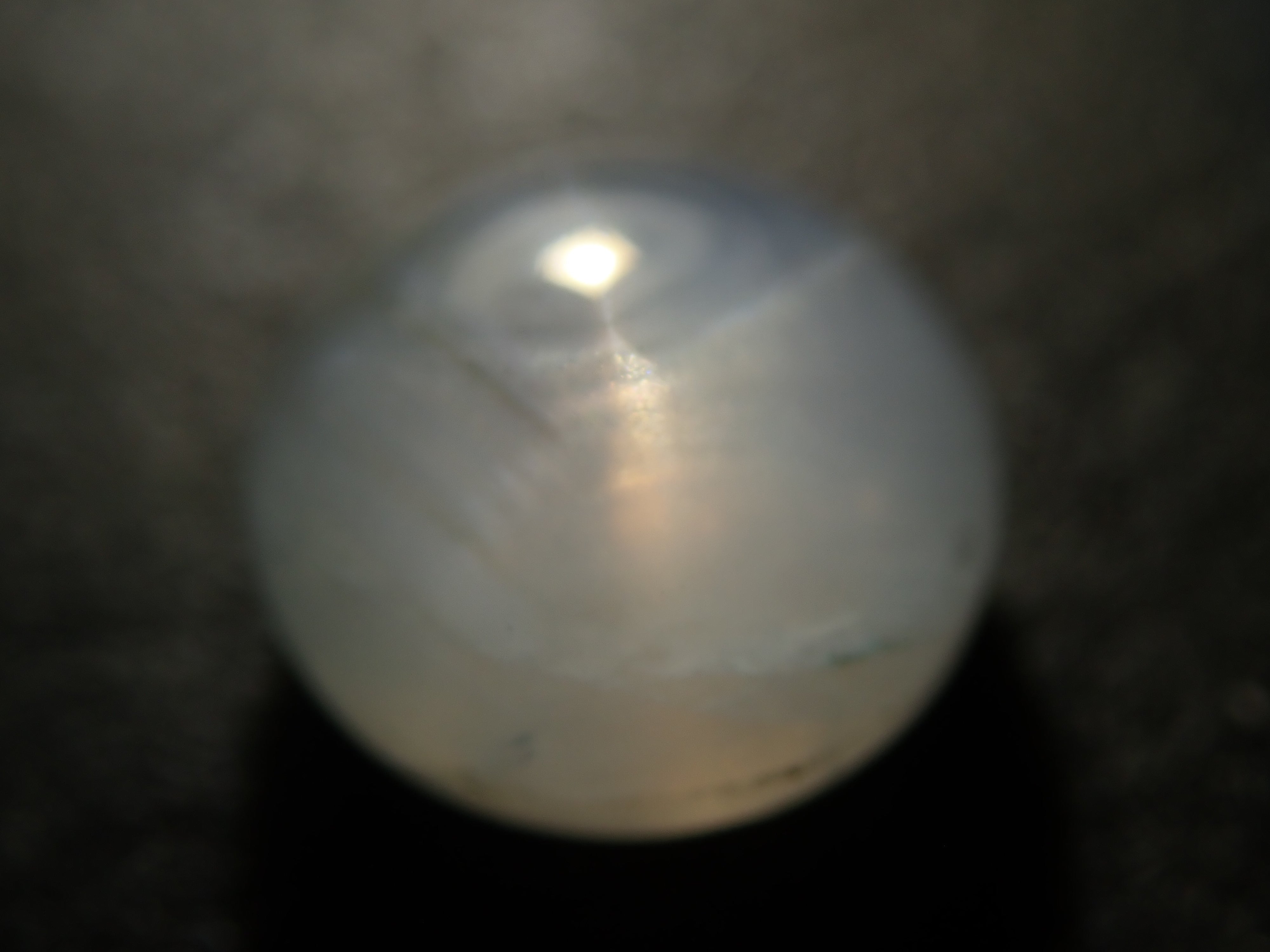 著名的藍寶石是一種著名的寶石。這顆藍寶石具有星光效果。藍寶石是僅次於鑽石的第二硬寶石,硬度為9,堅韌、穩定且易於保養。照片使用了筆型手電筒拍攝。寶石的背面通常未經拋光。