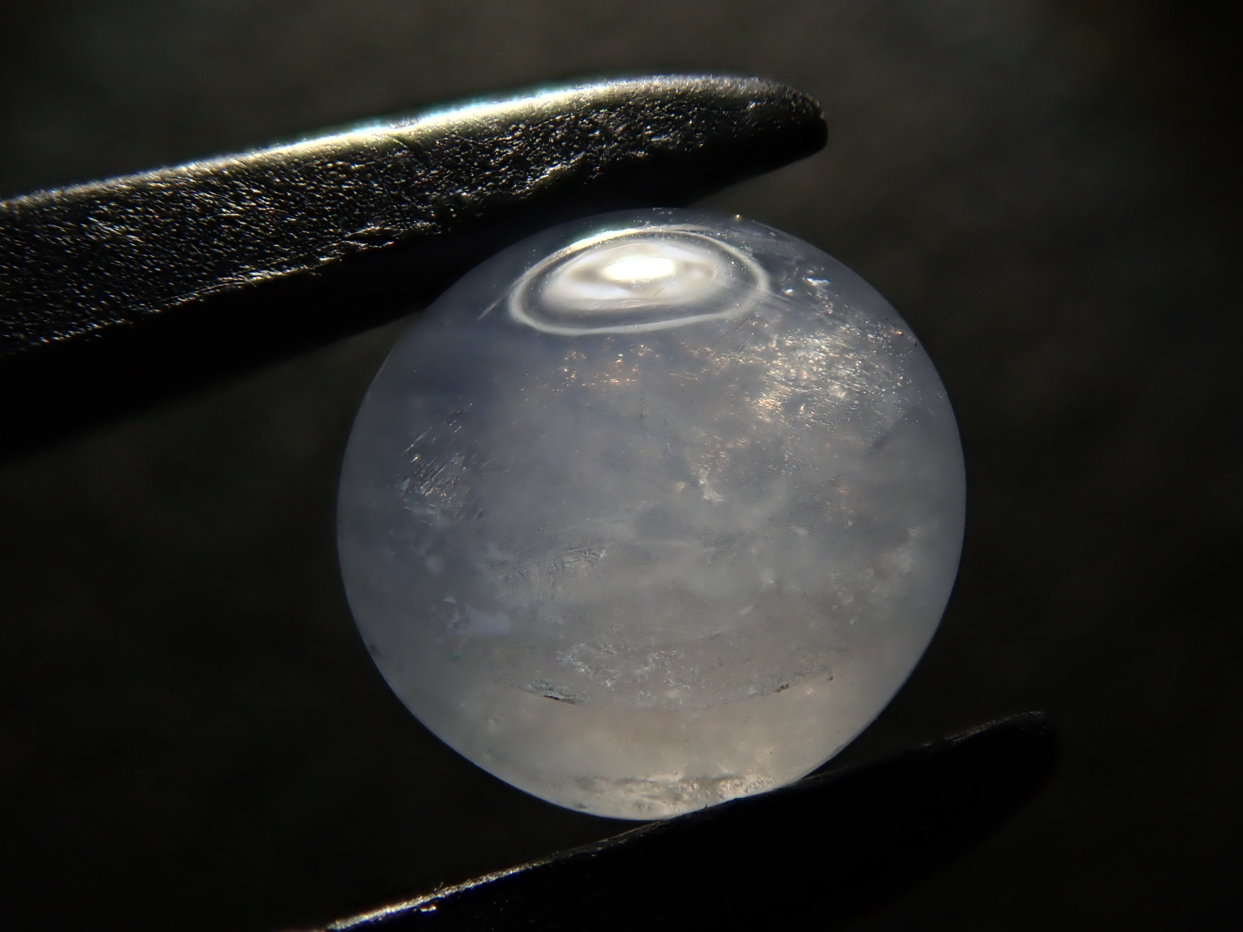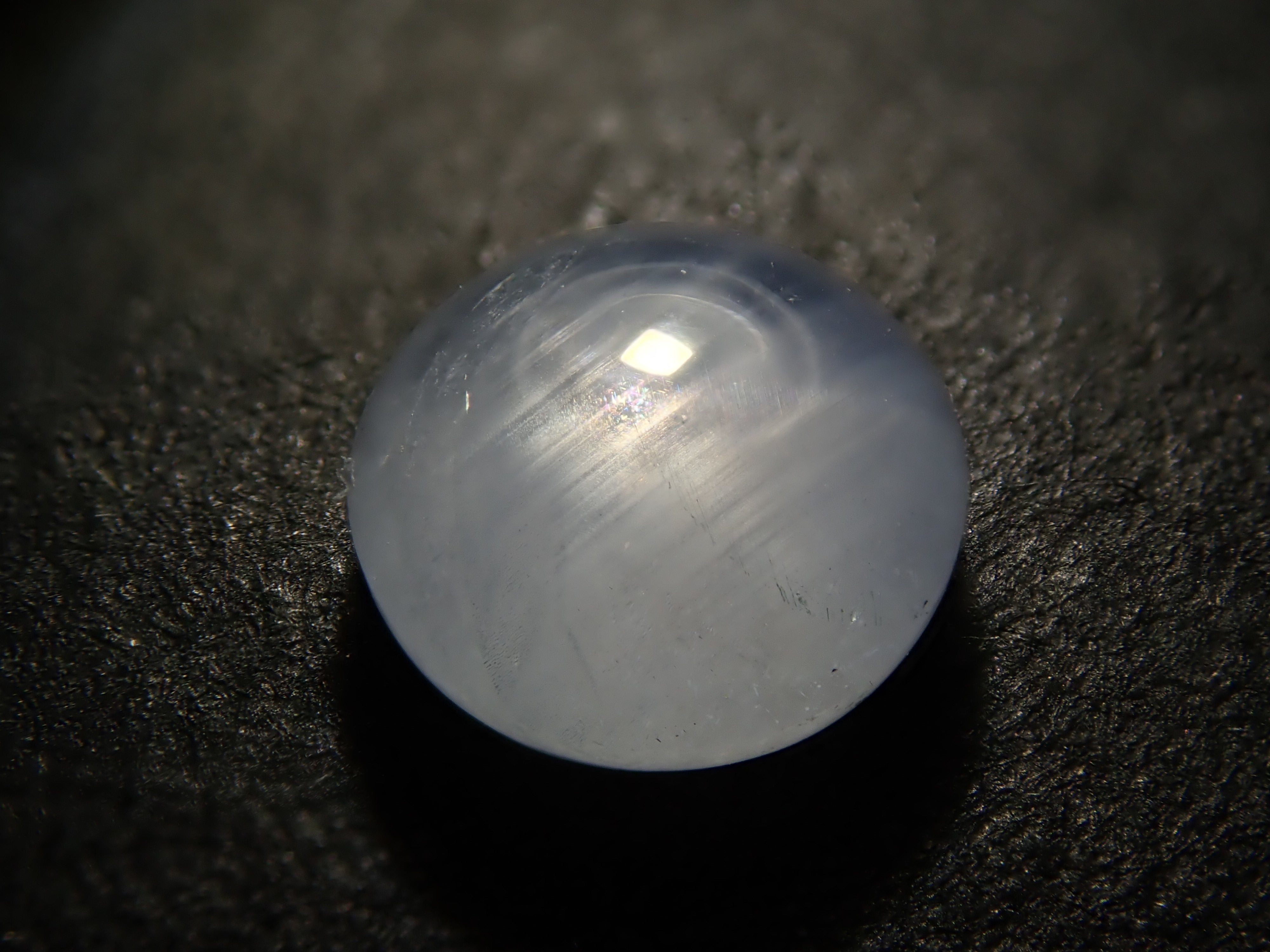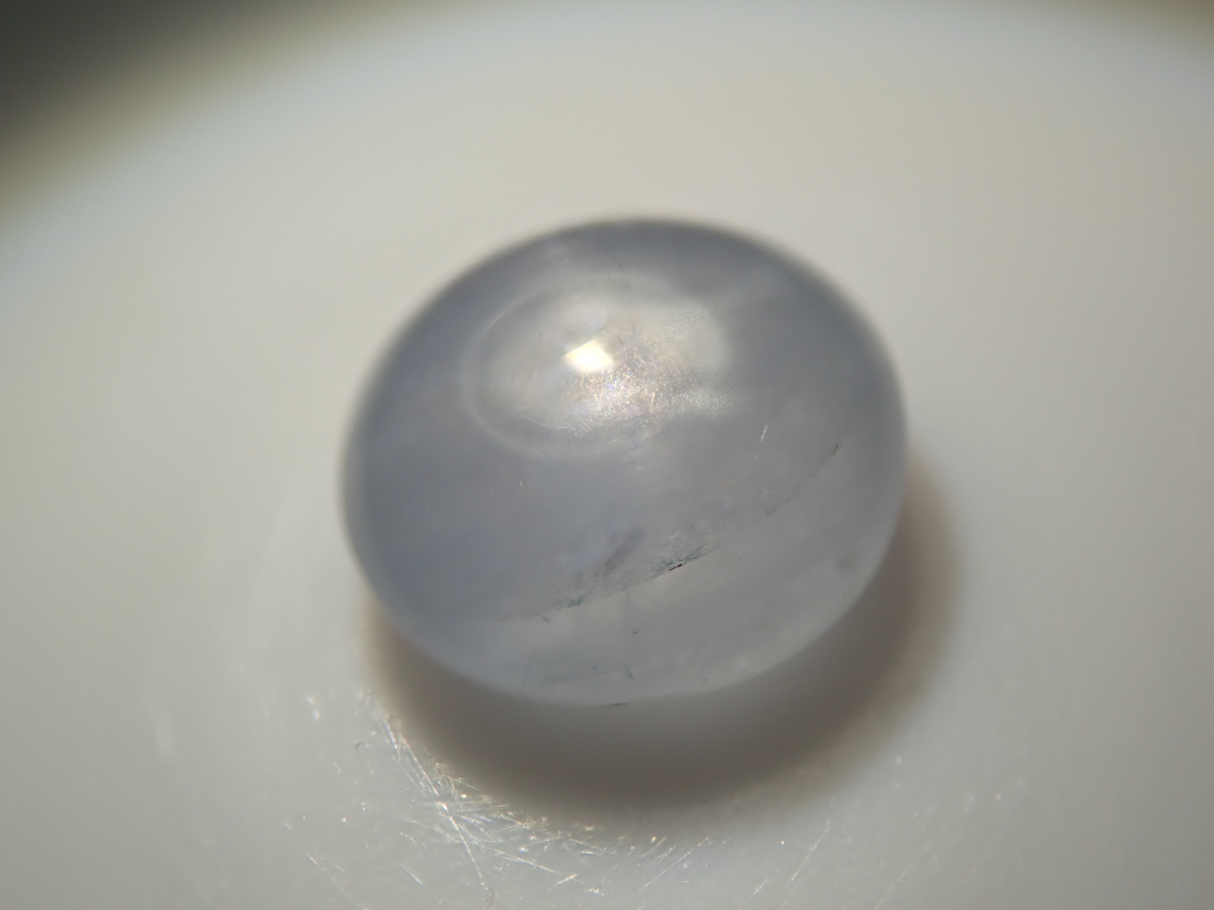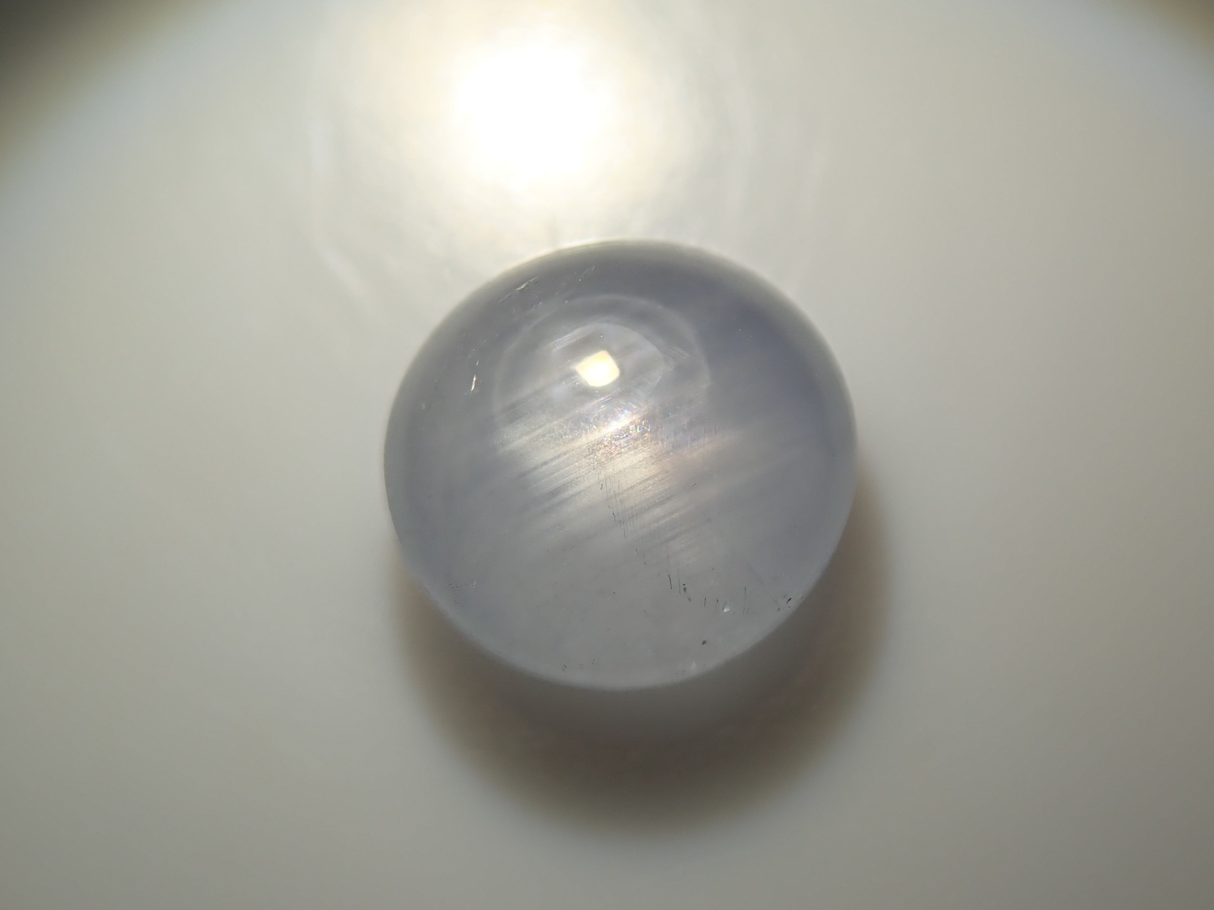 著名的藍寶石是一種著名的寶石。這顆藍寶石具有星光效果。藍寶石是僅次於鑽石的第二硬寶石,硬度為9,堅韌、穩定且易於保養。照片使用了筆型手電筒拍攝。寶石的背面通常未經拋光。