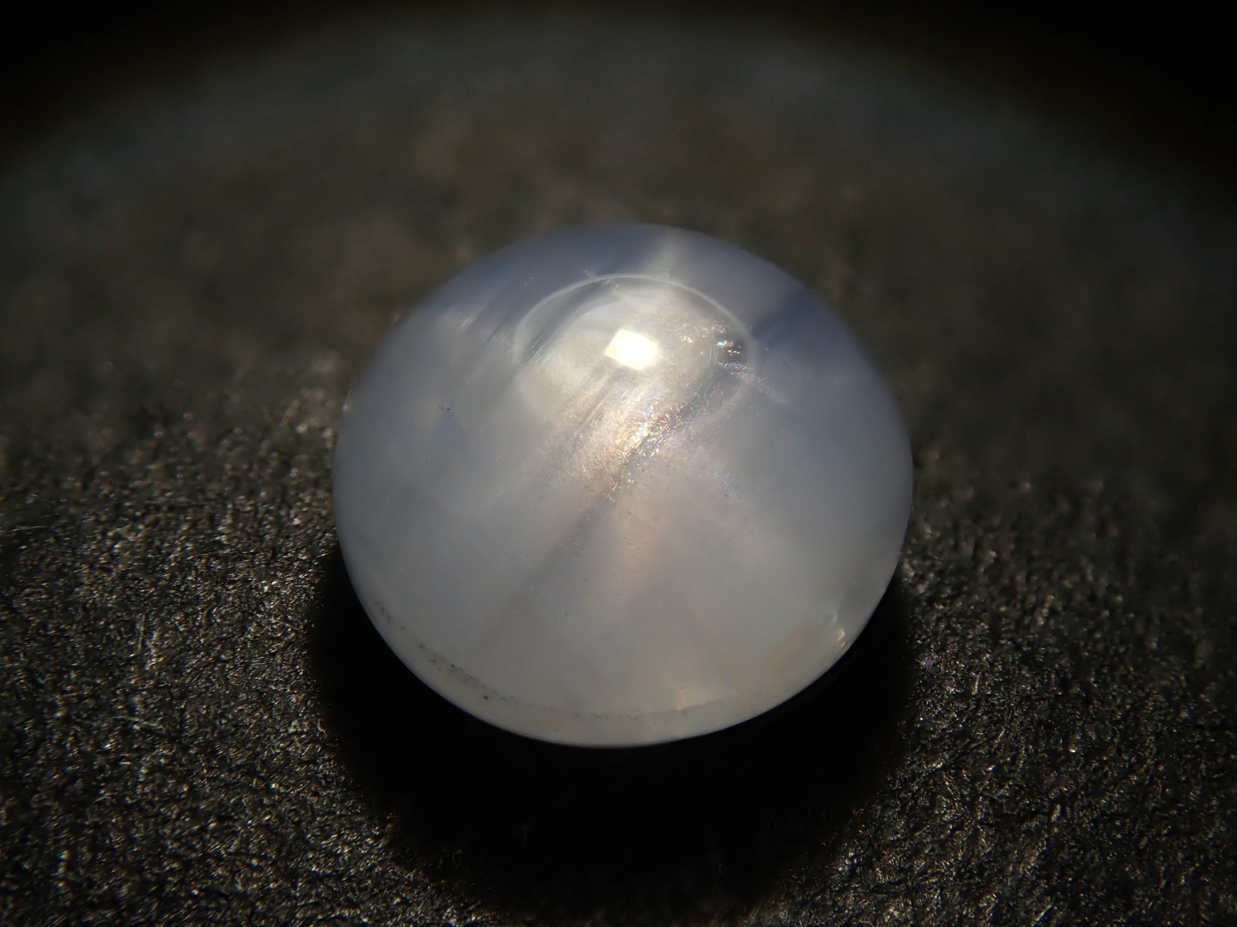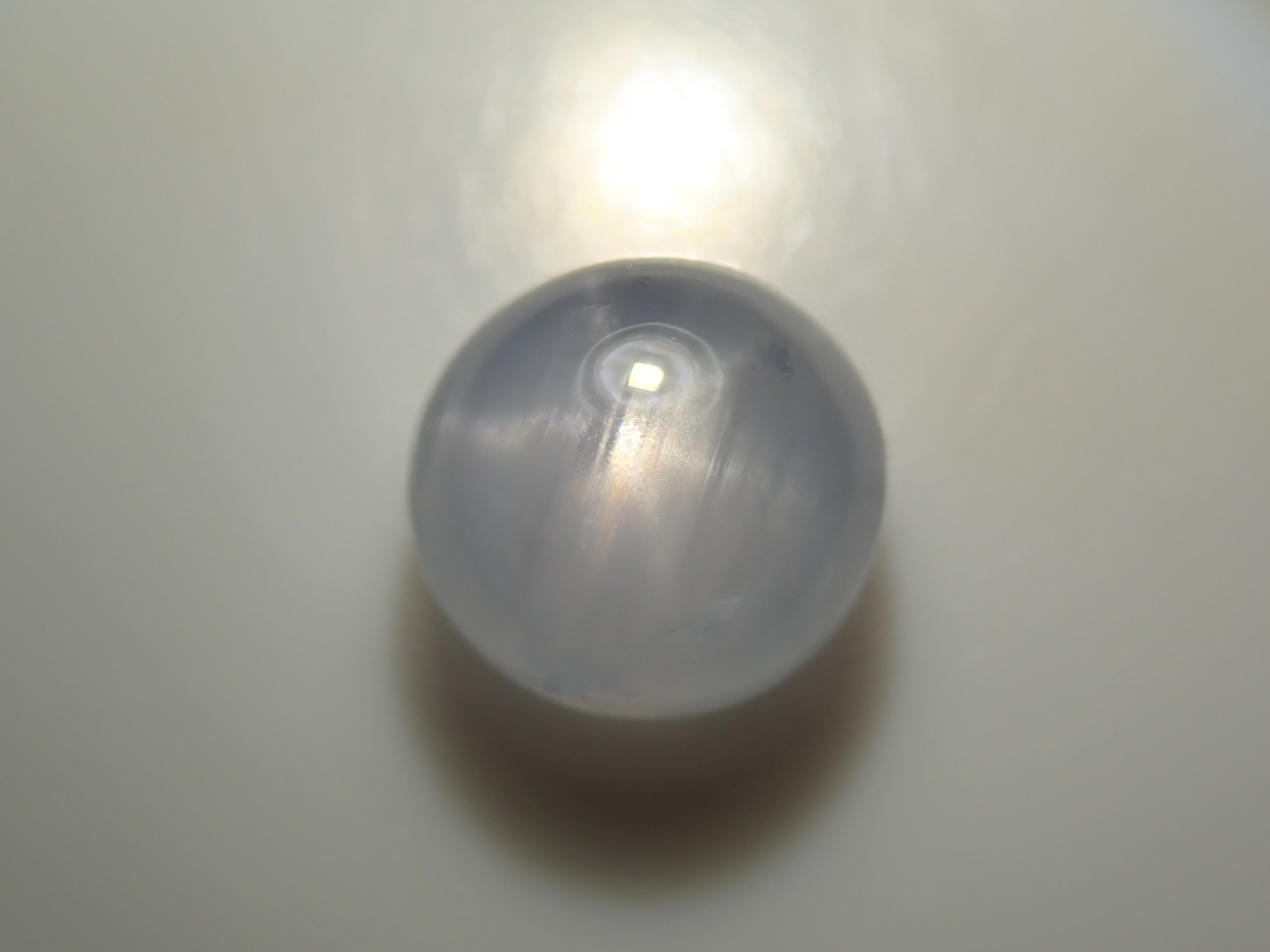 著名的藍寶石是一種著名的寶石。這顆藍寶石尤其展現了星光效應。藍寶石是僅次於鑽石的第二硬寶石,硬度為9,堅韌、穩定且易於保養。照片使用了筆型手電筒。寶石背面基本未拋光。這是一顆產自斯里蘭卡的圓形切割5毫米星光藍寶石。