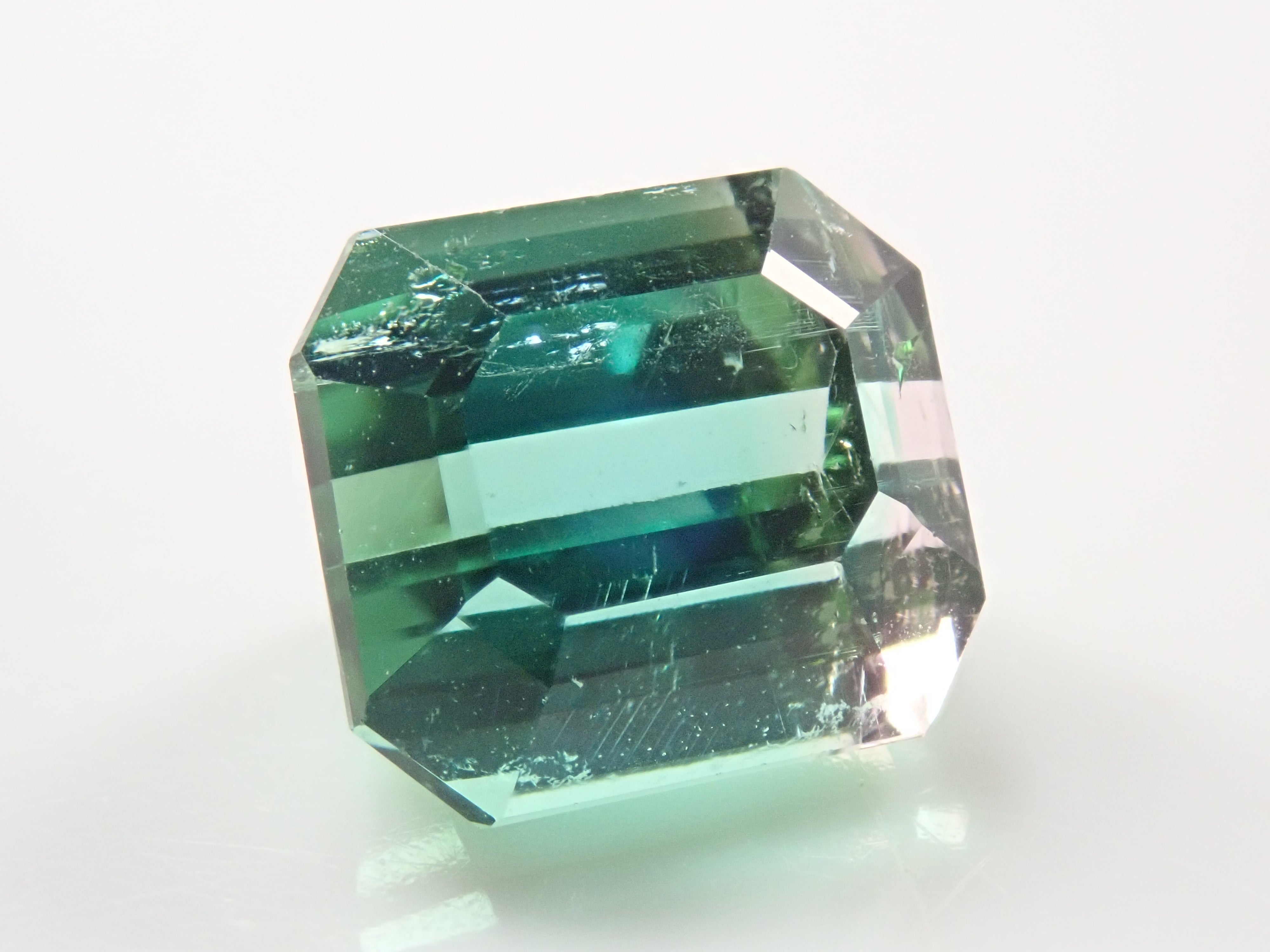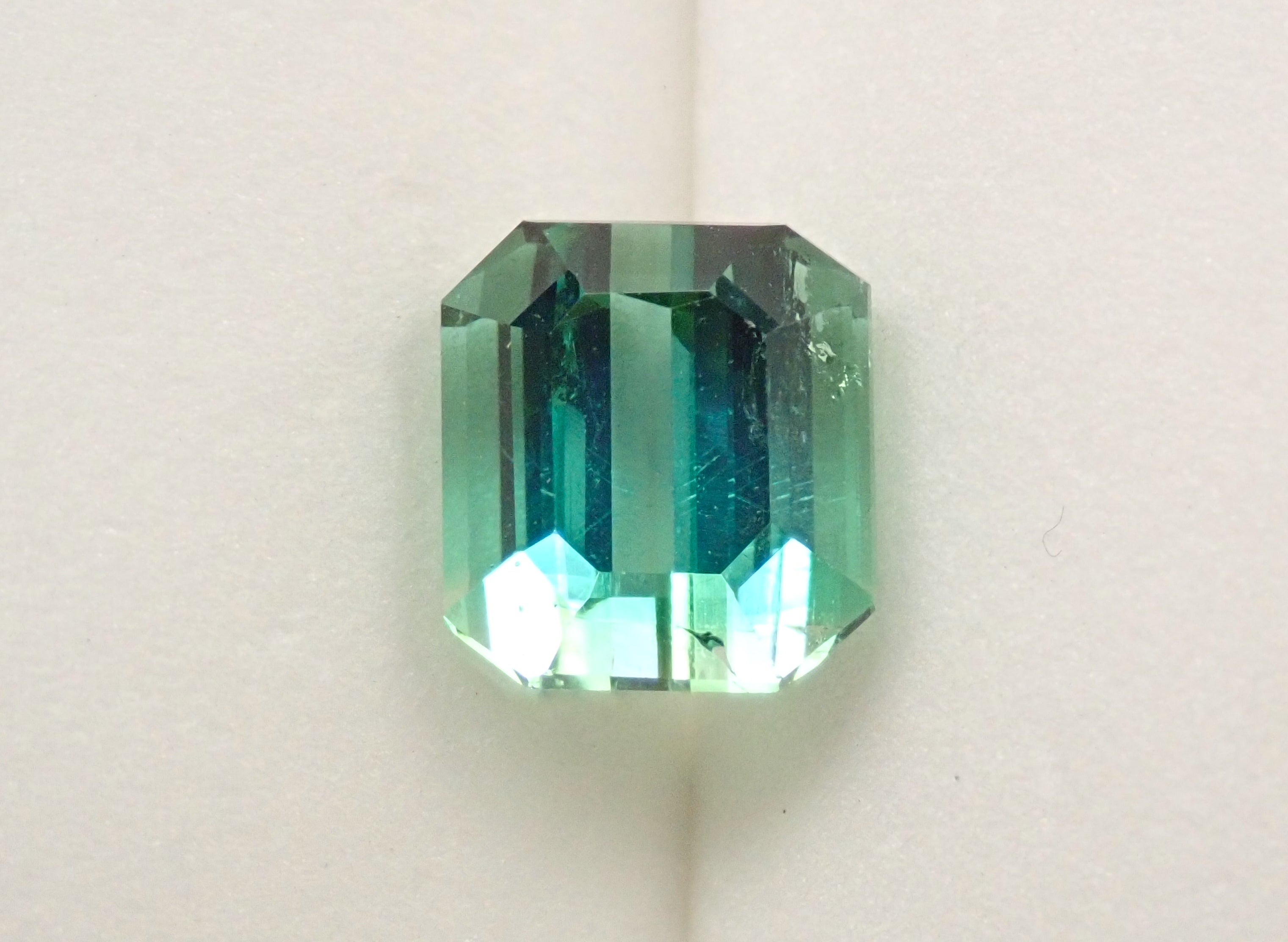 這顆雙色碧璽購自泰國,顏色與海泡石碧璽相同,透明度高,色澤柔和。