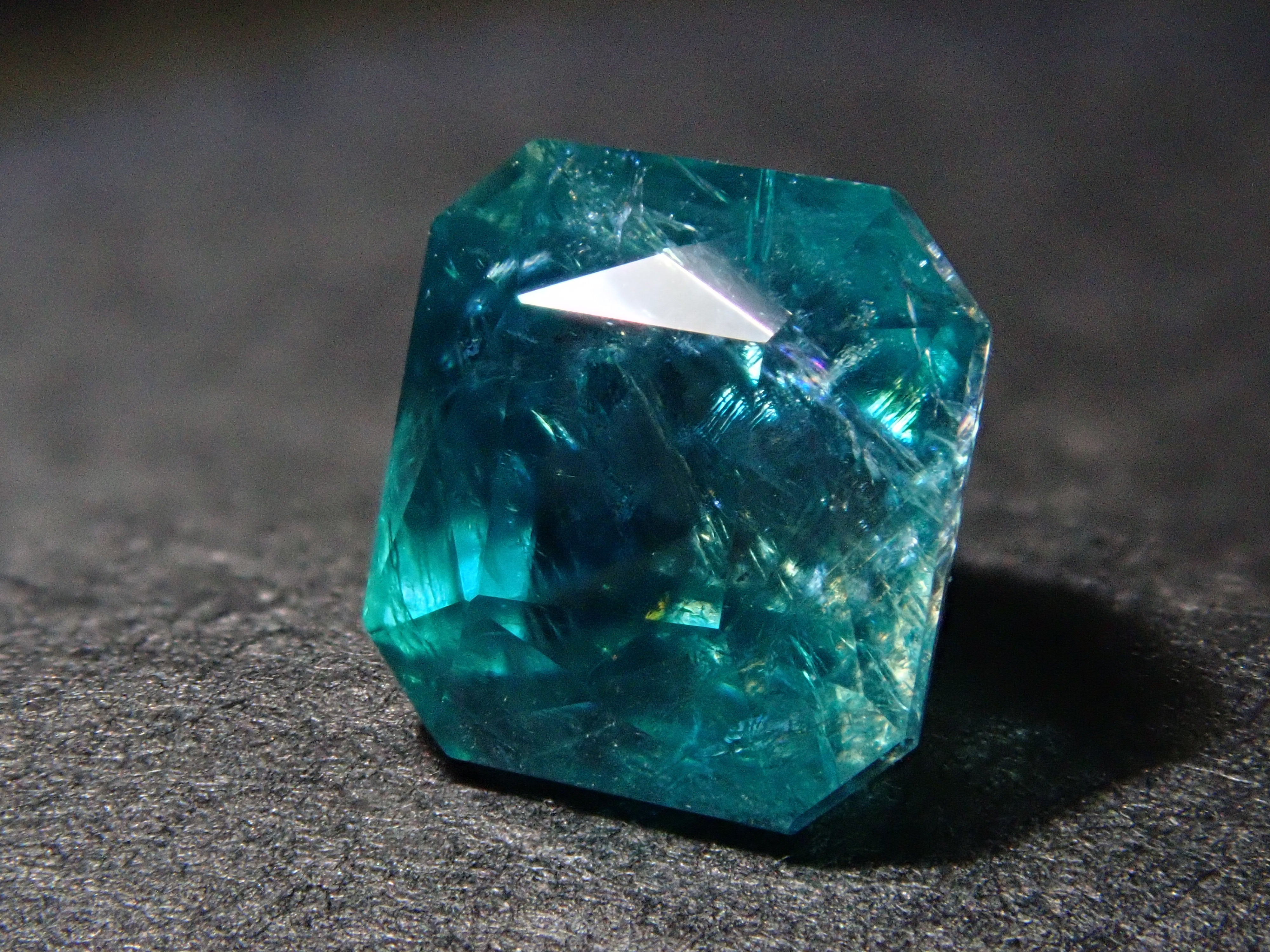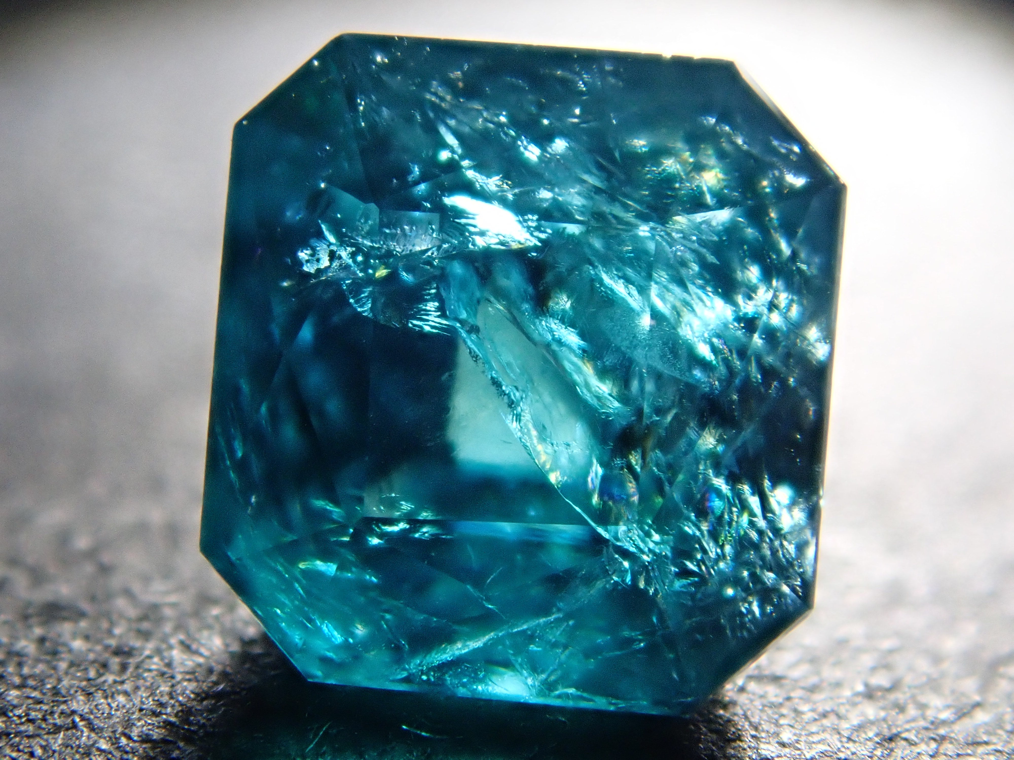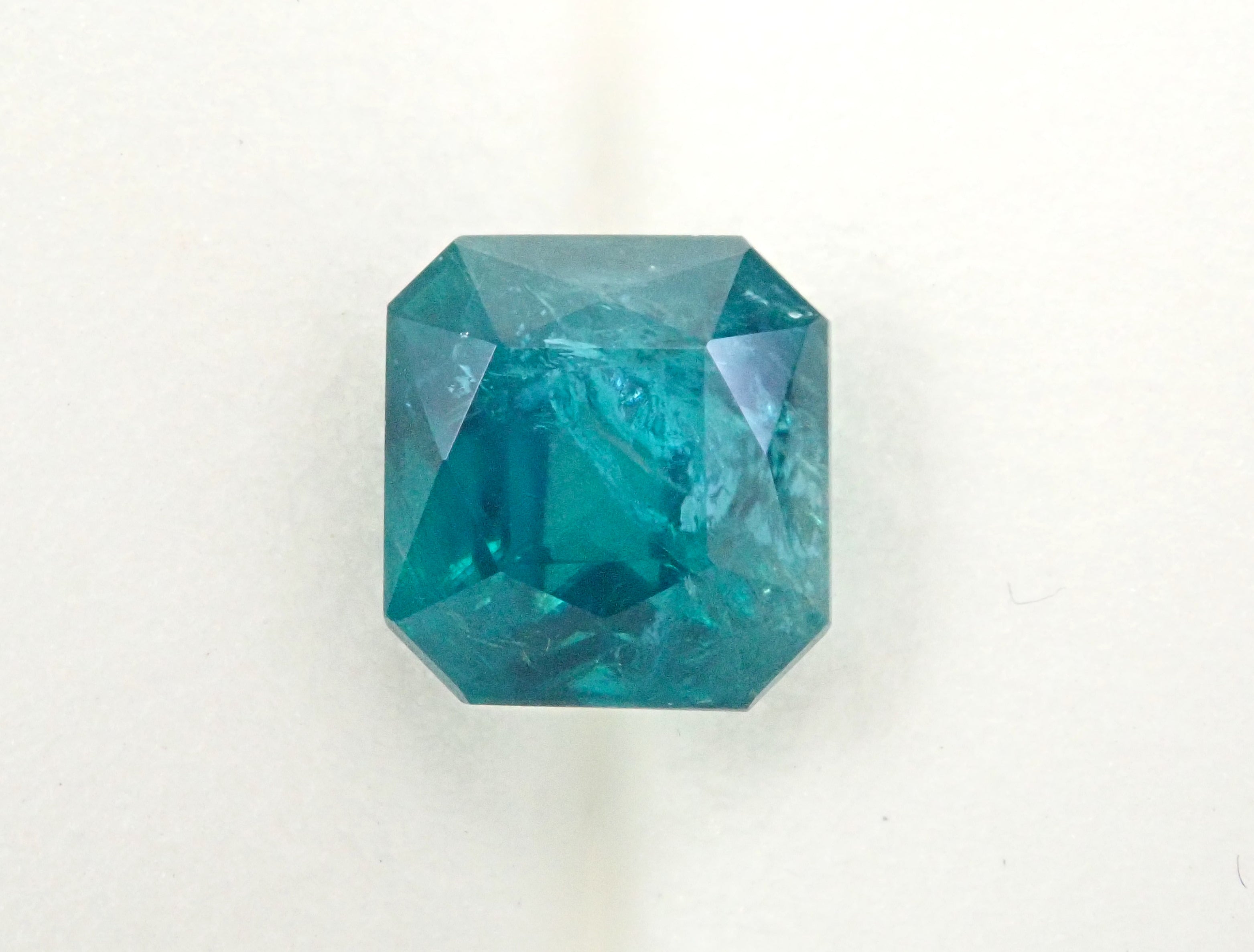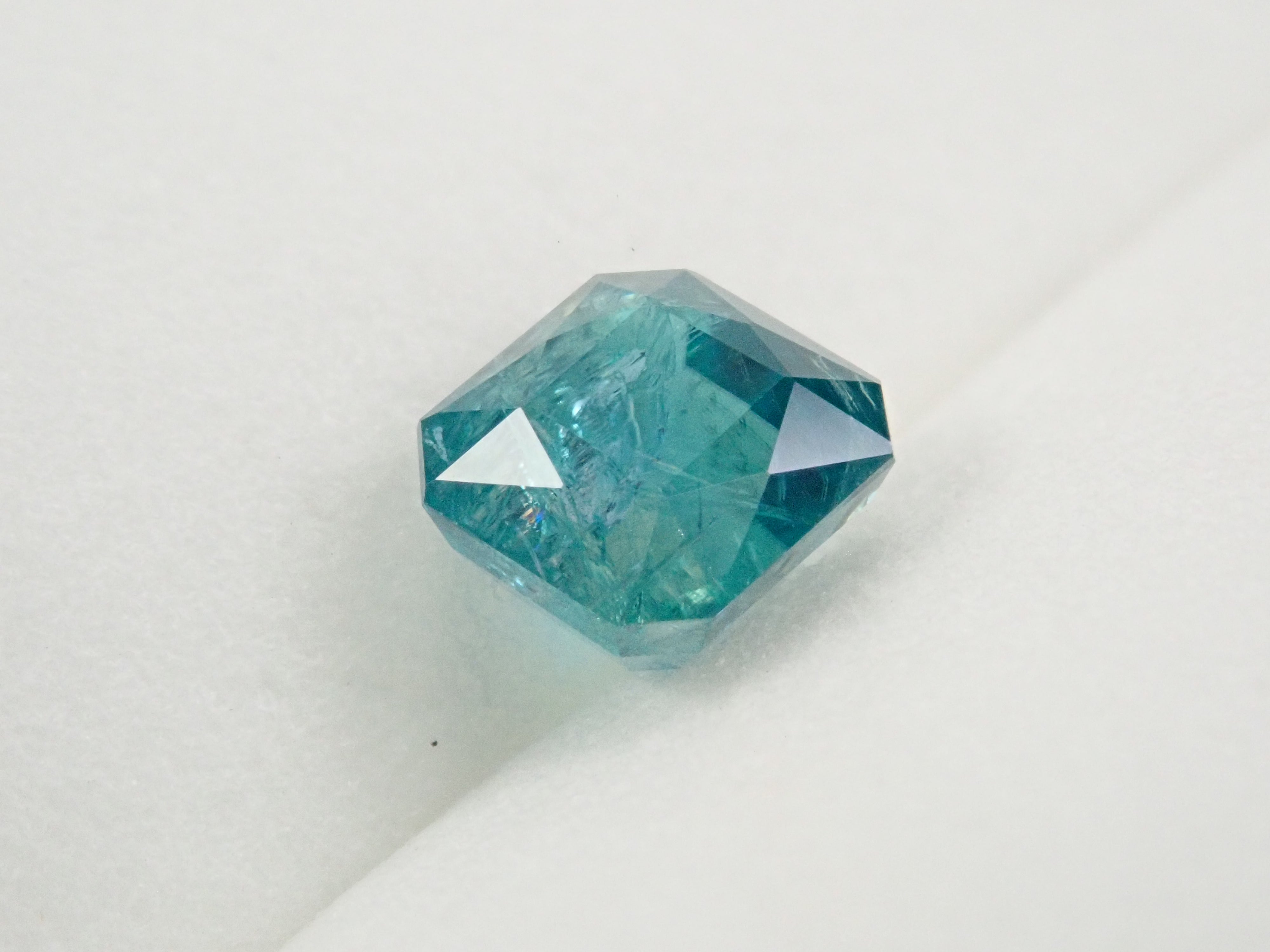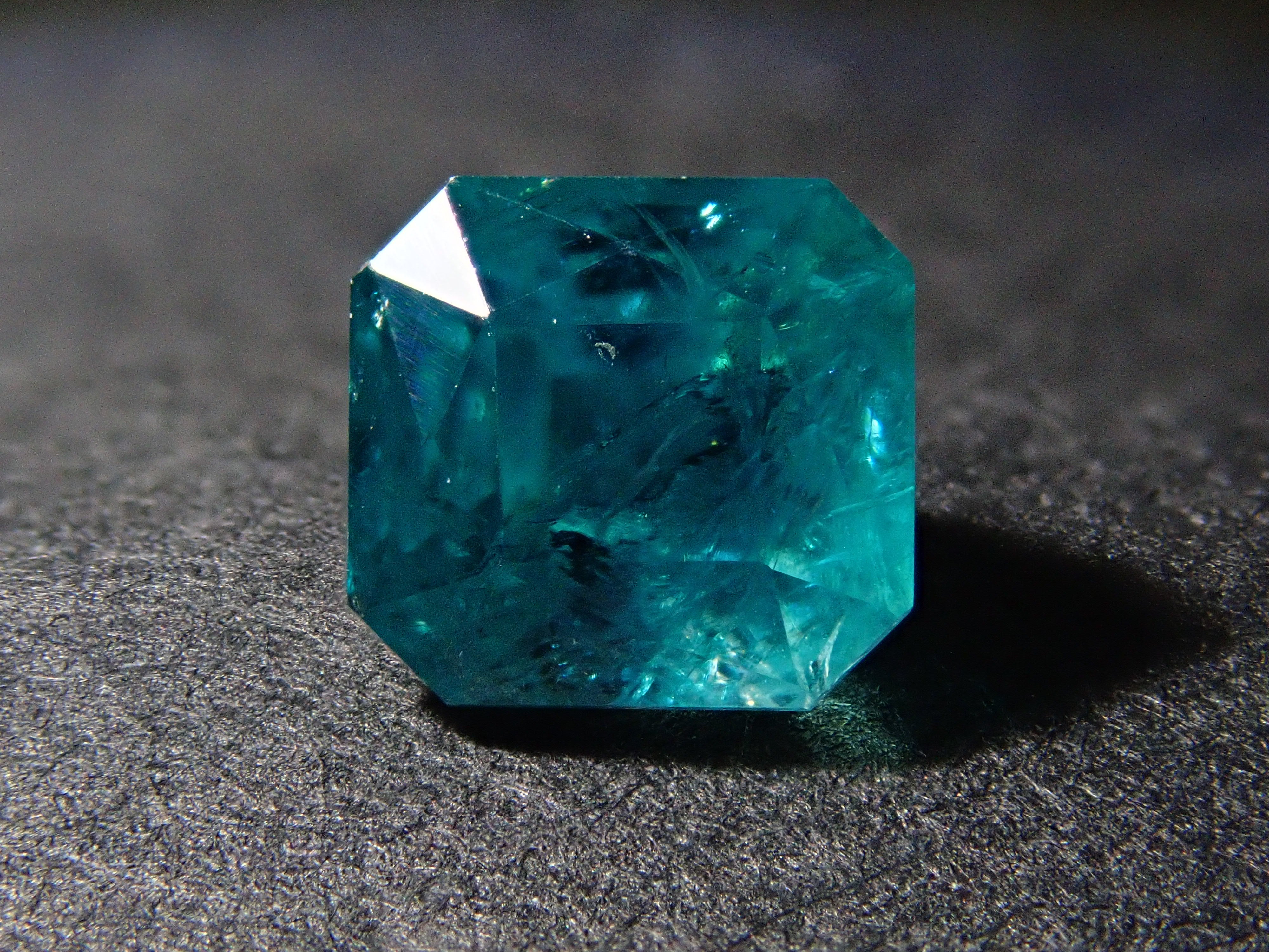 這是一顆含有內含物的矽硼鎂鋁石,顏色深且較大,重量超過 1 克拉。