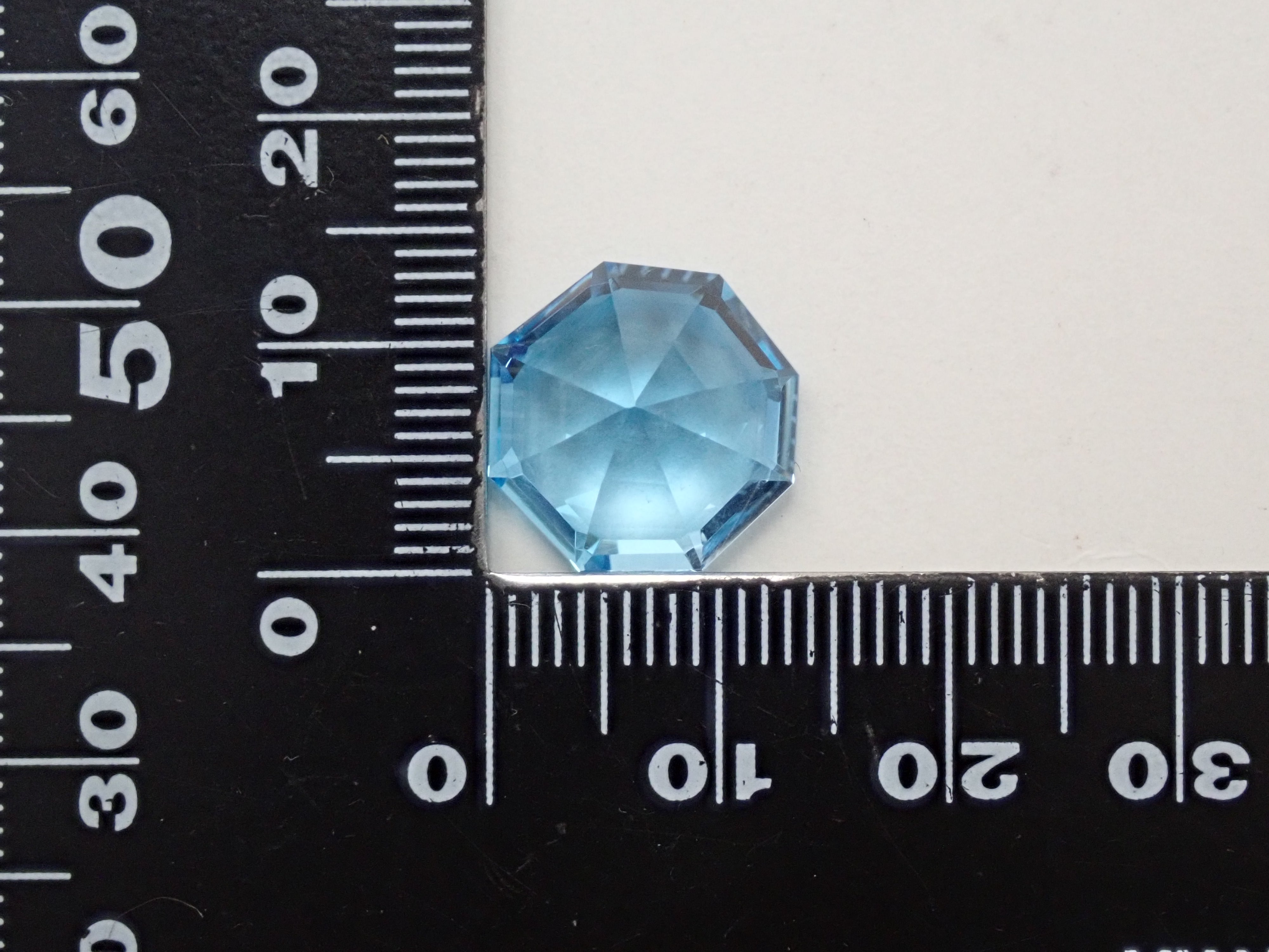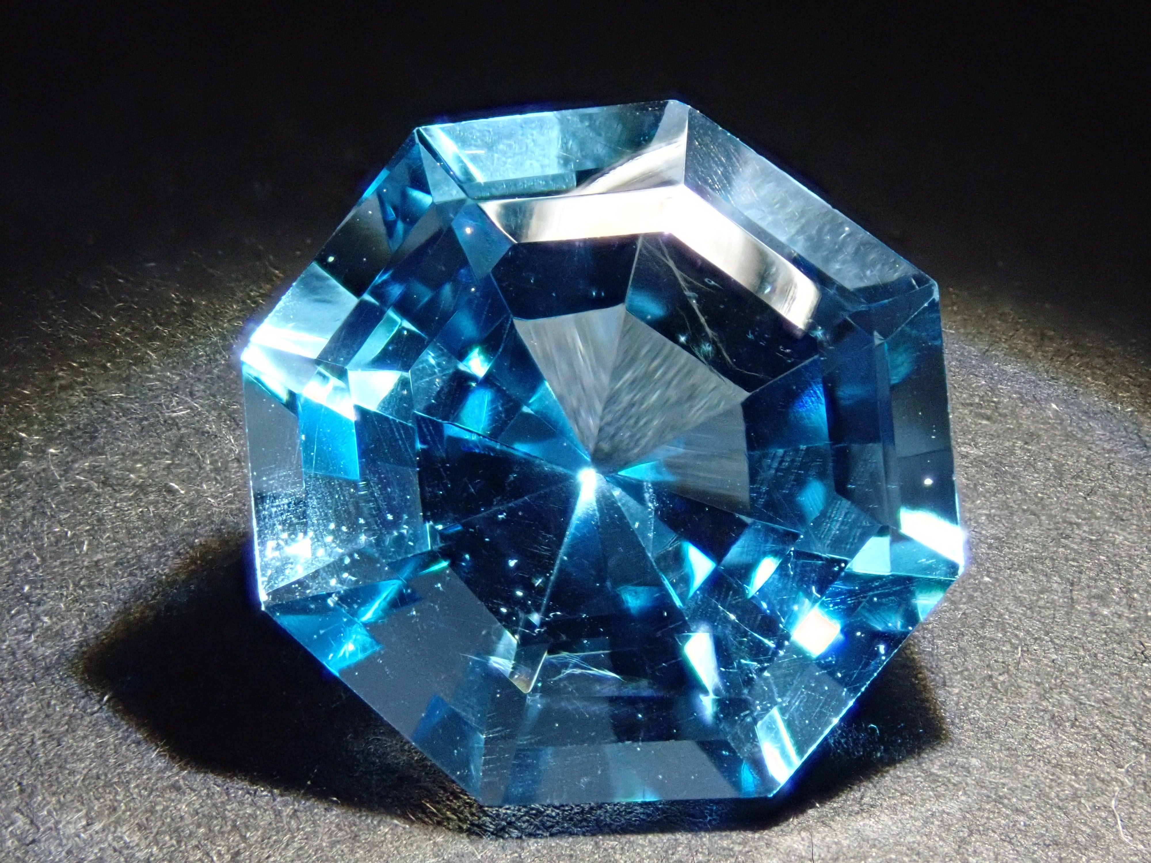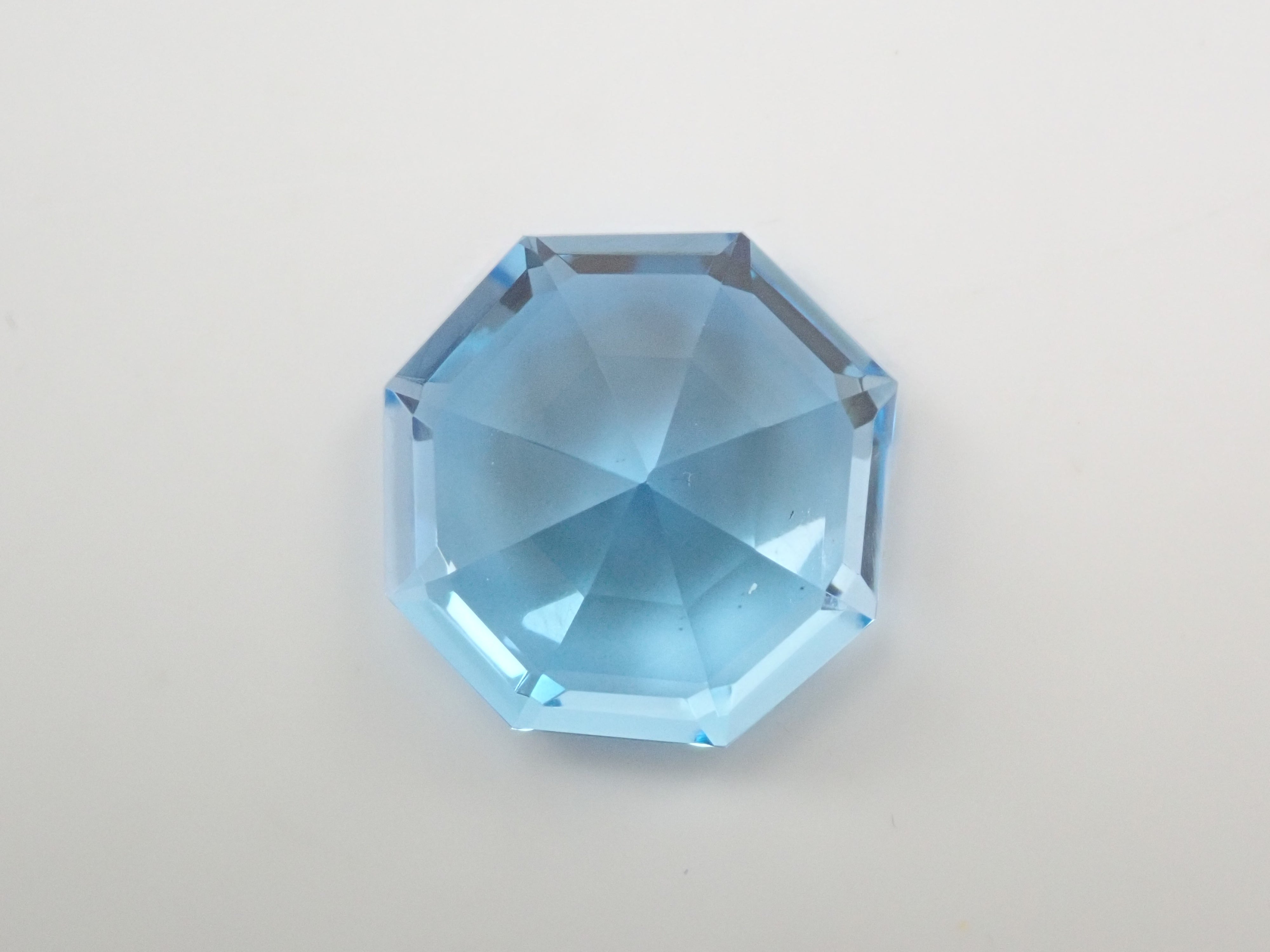 這是一顆尺寸驚人的八角形切割瑞士藍托帕石。