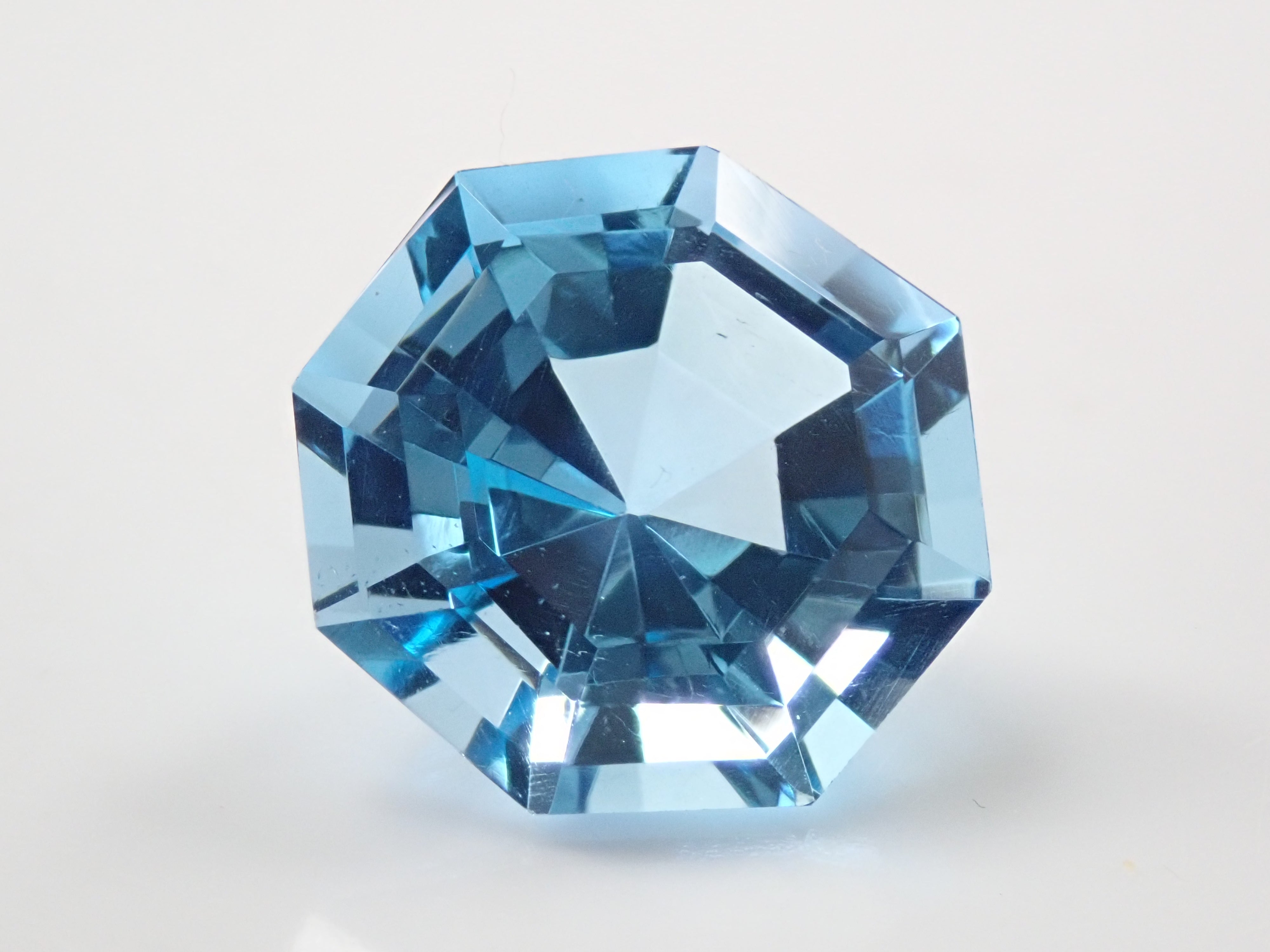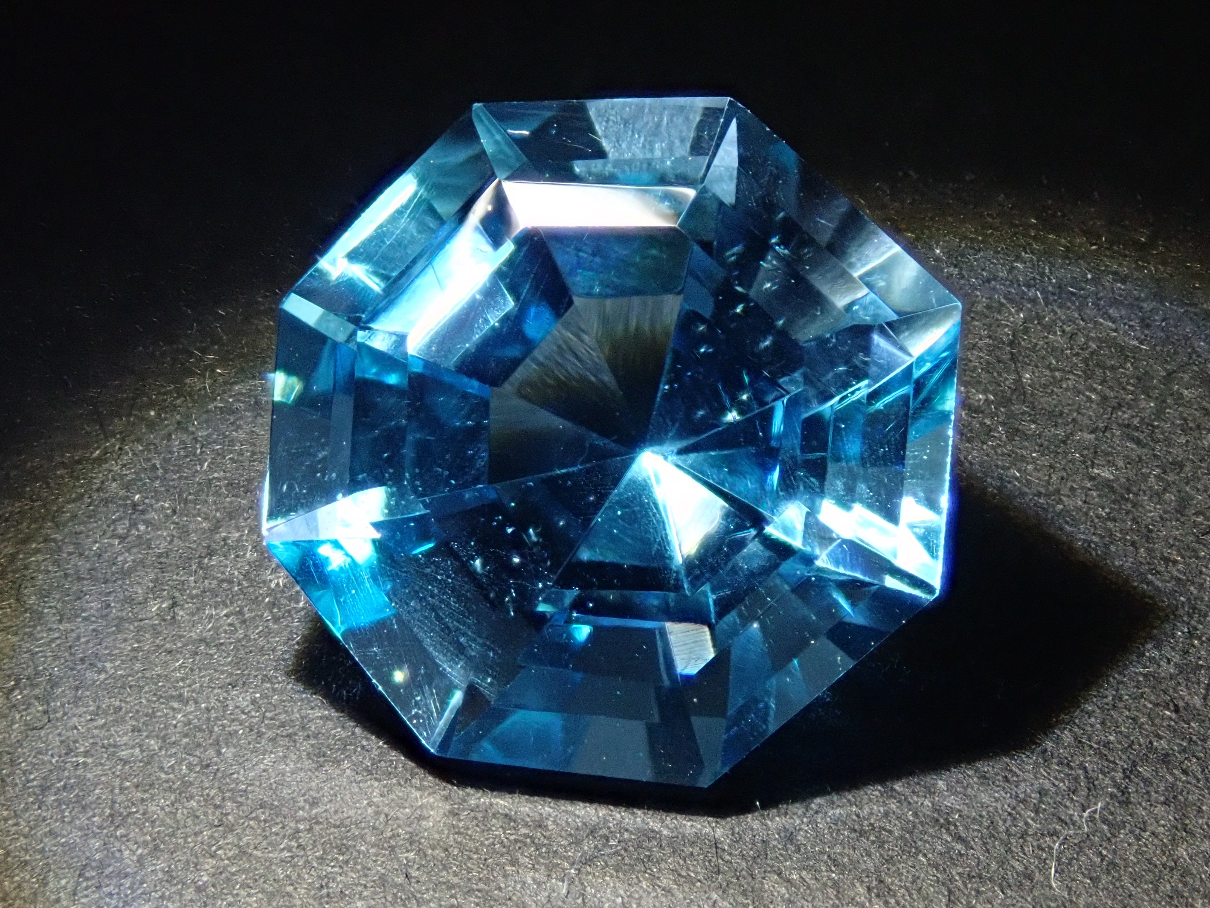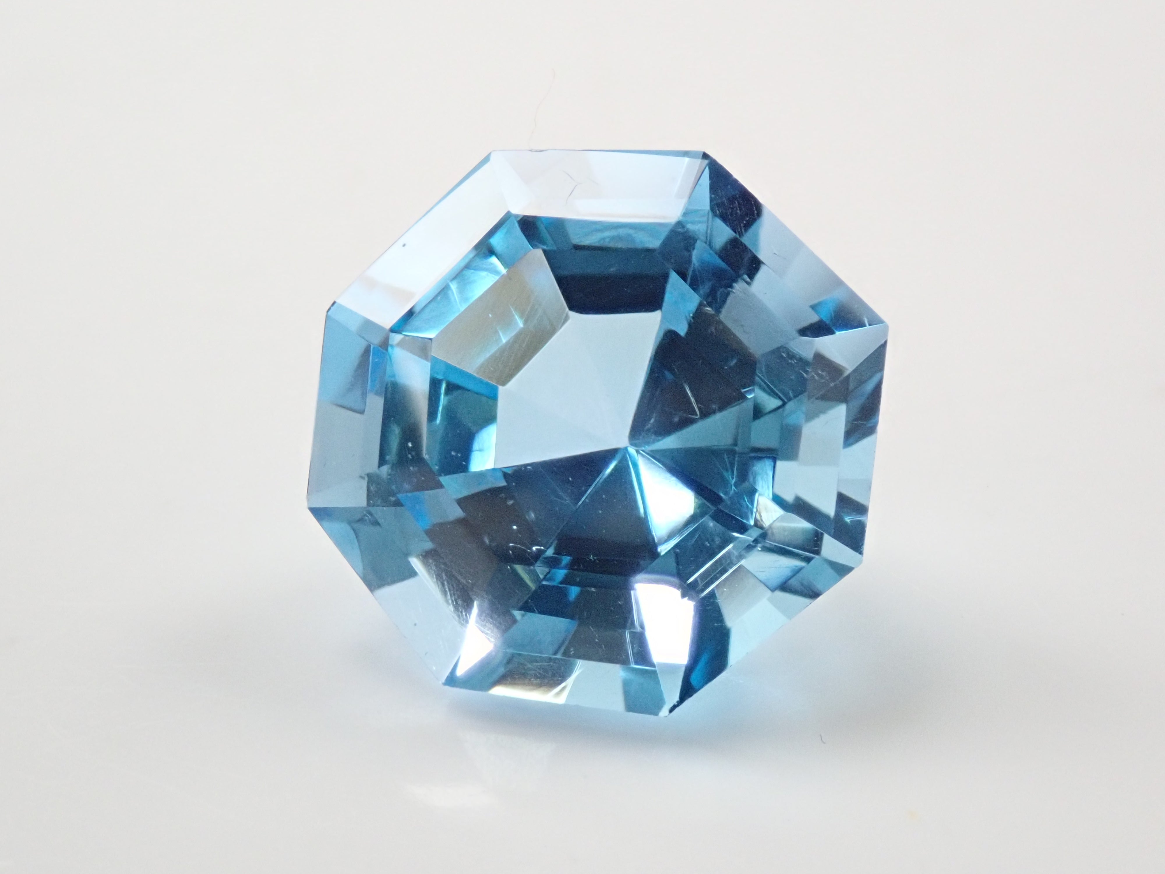 這是一顆尺寸驚人的八角形切割瑞士藍托帕石。