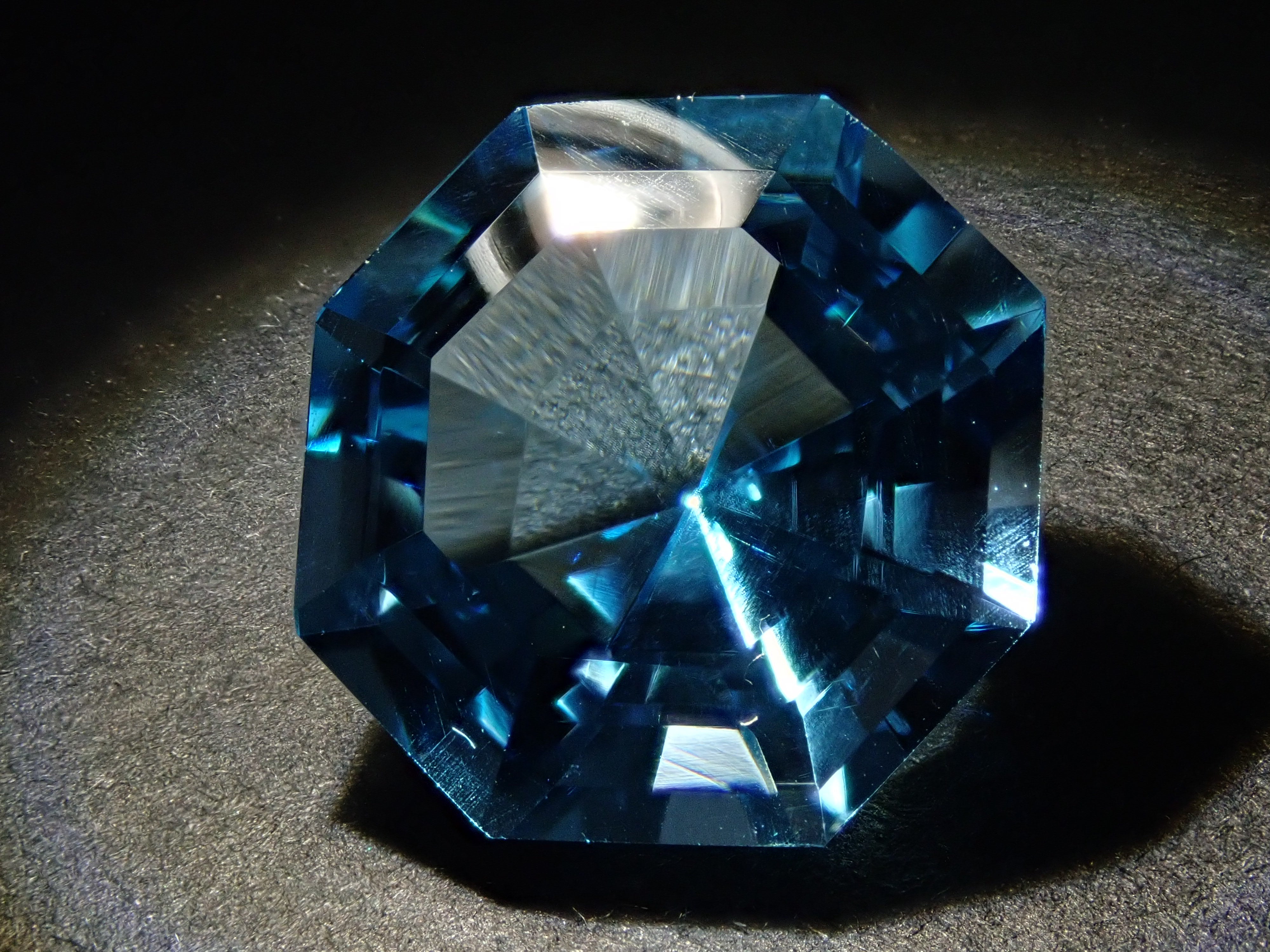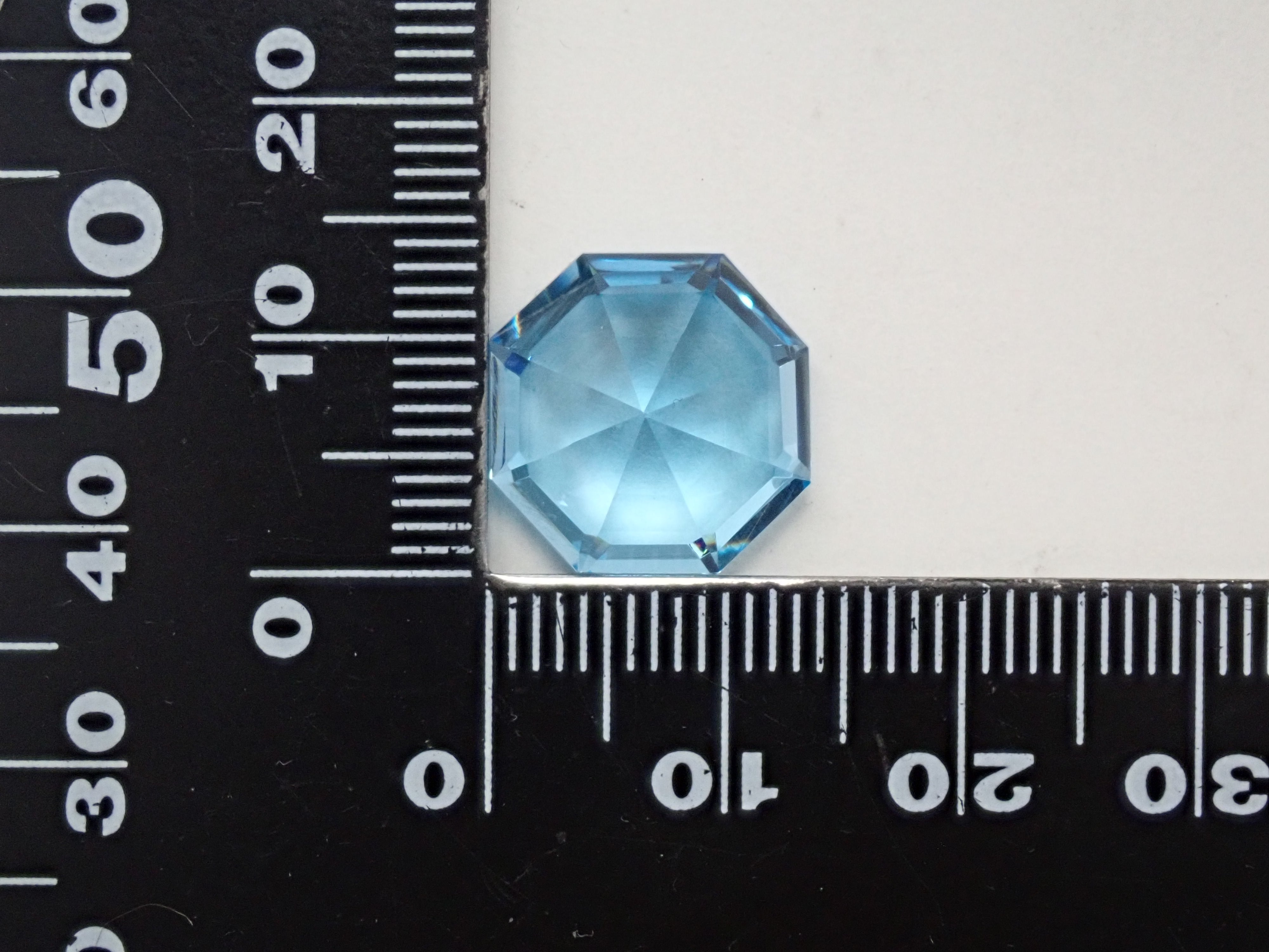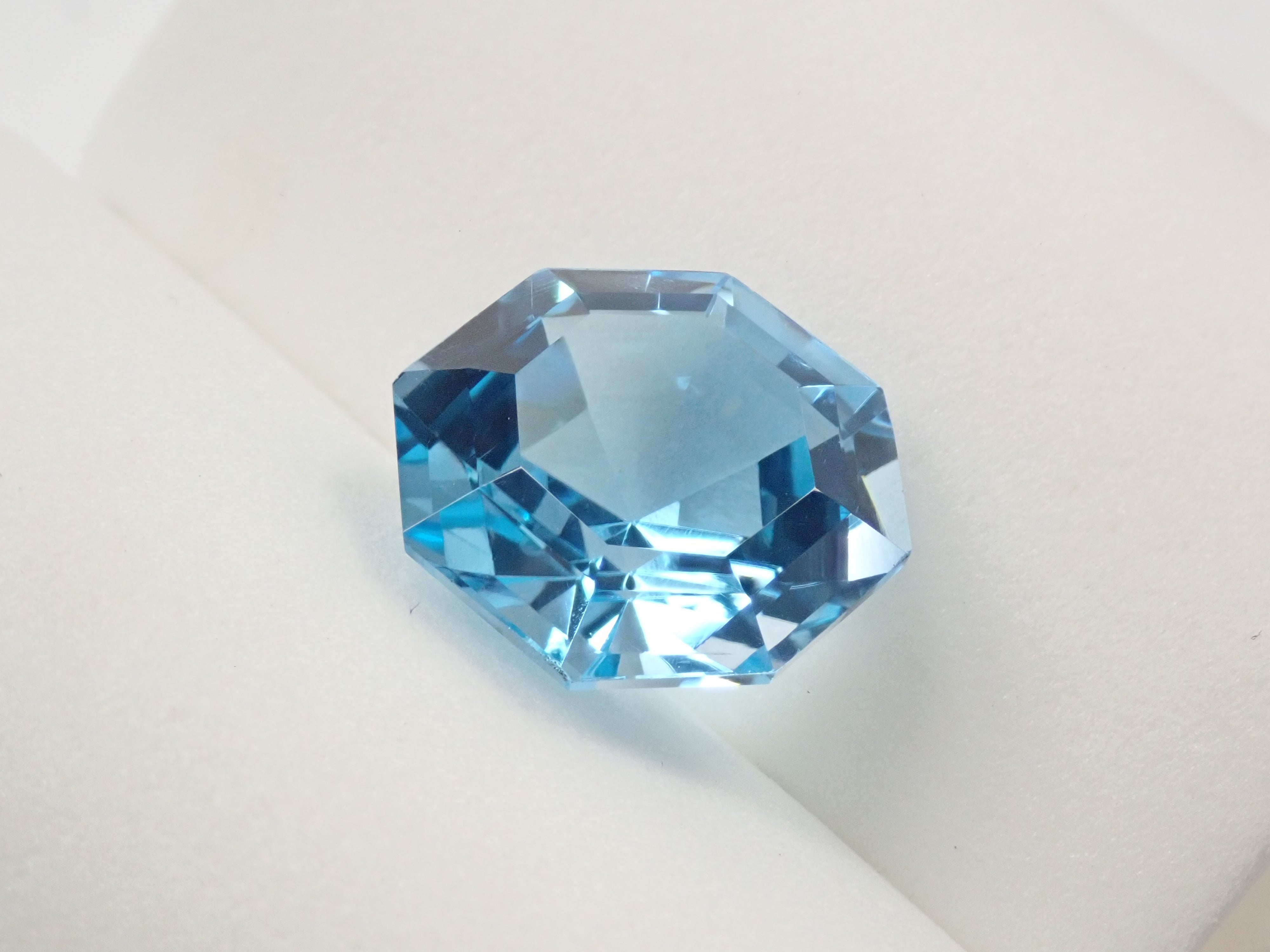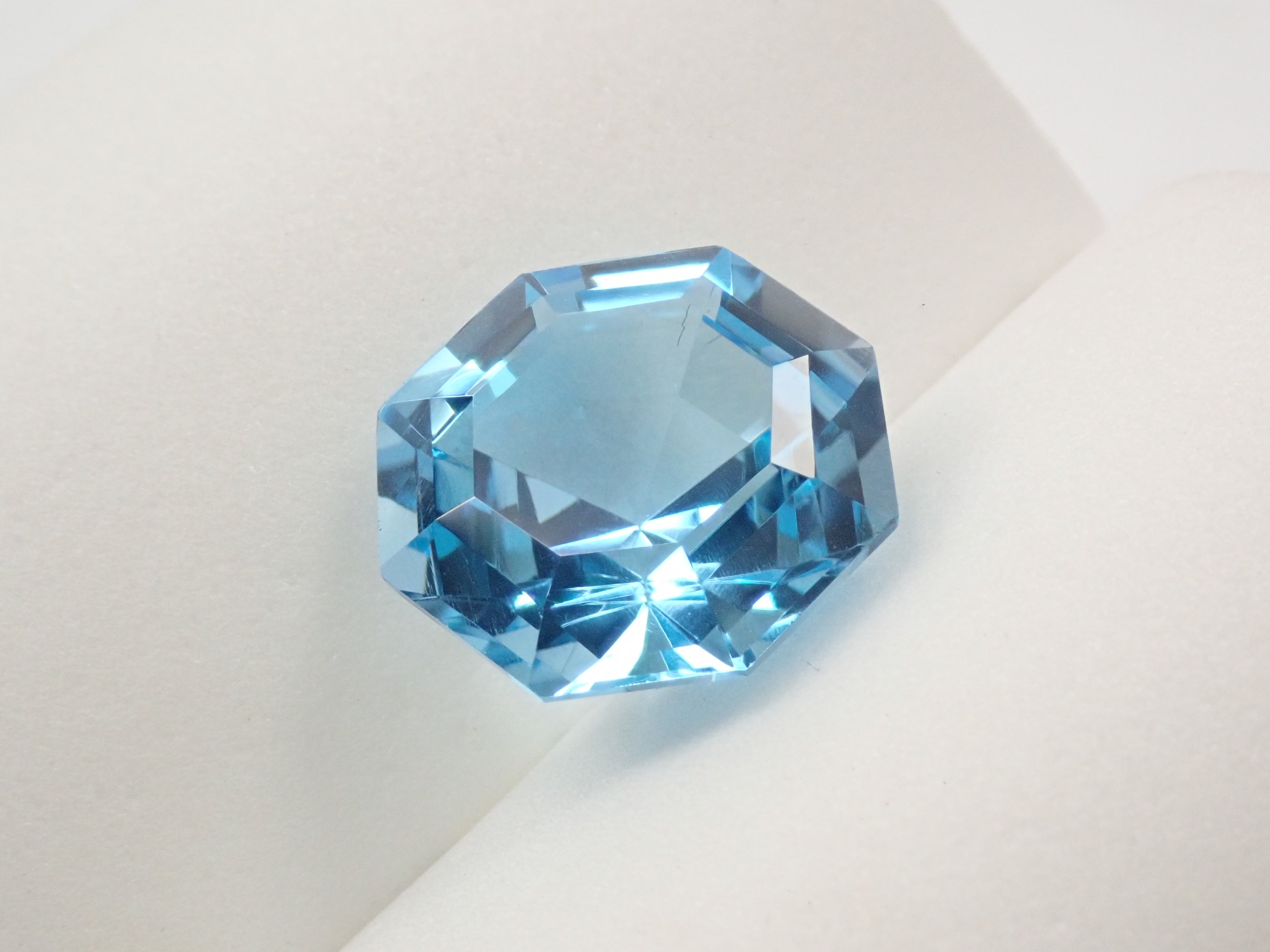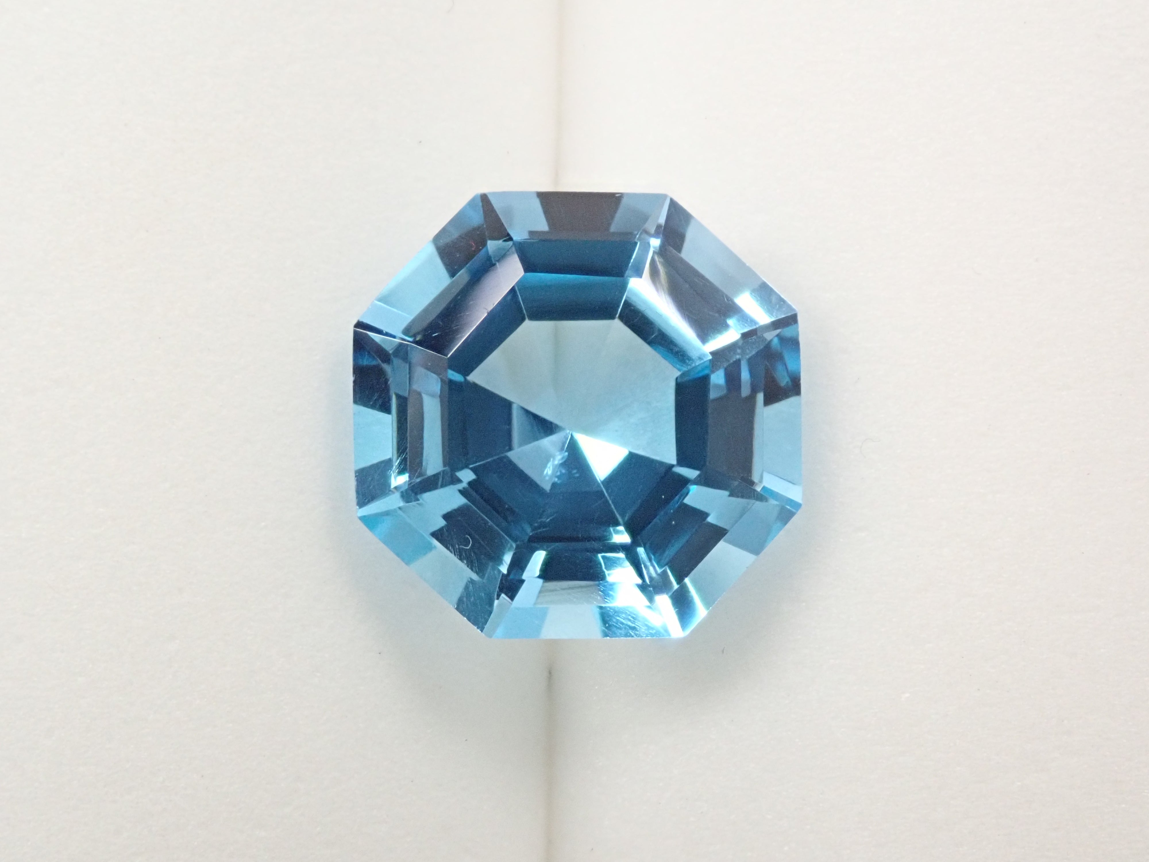 這是一顆尺寸驚人的八角形切割瑞士藍托帕石。