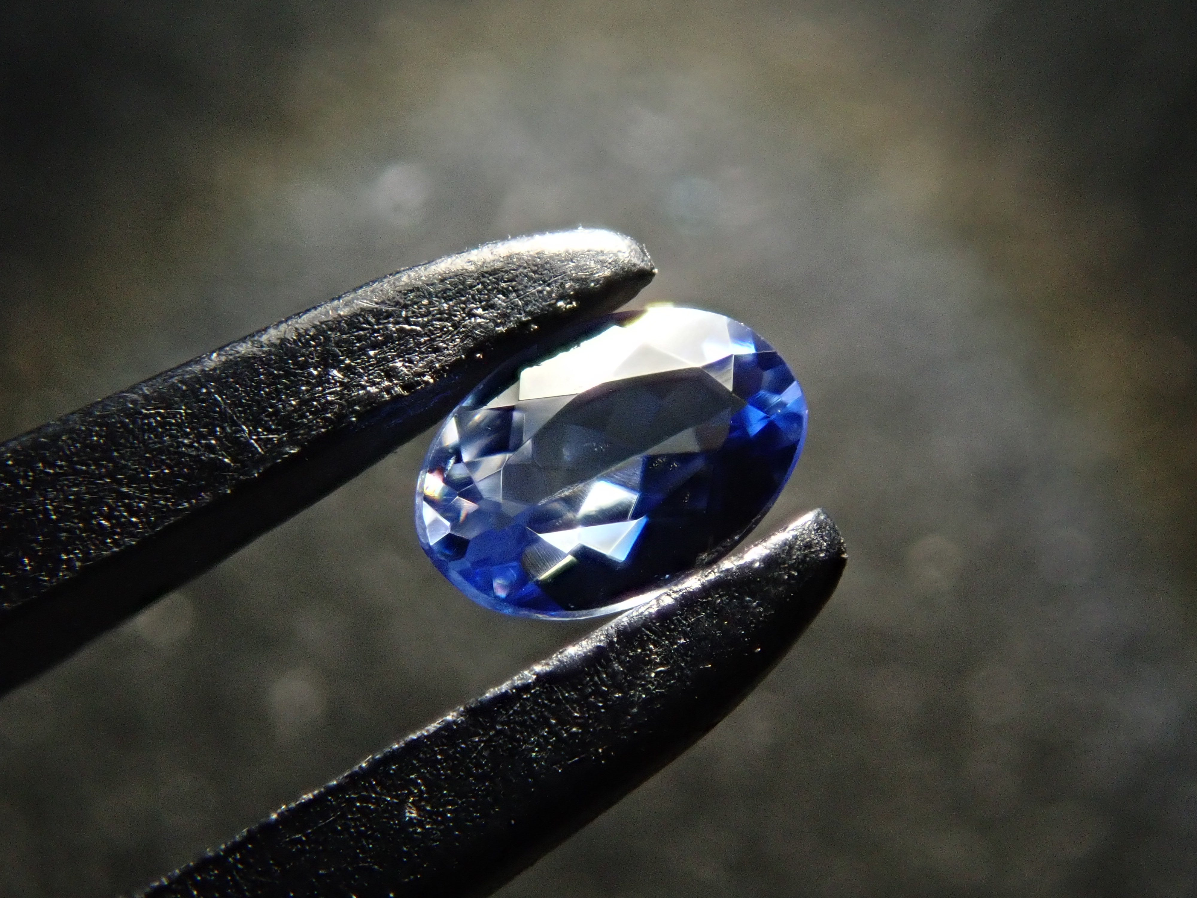 這是一顆橢圓形切割的藍錐礦,透明度高,顏色美麗。