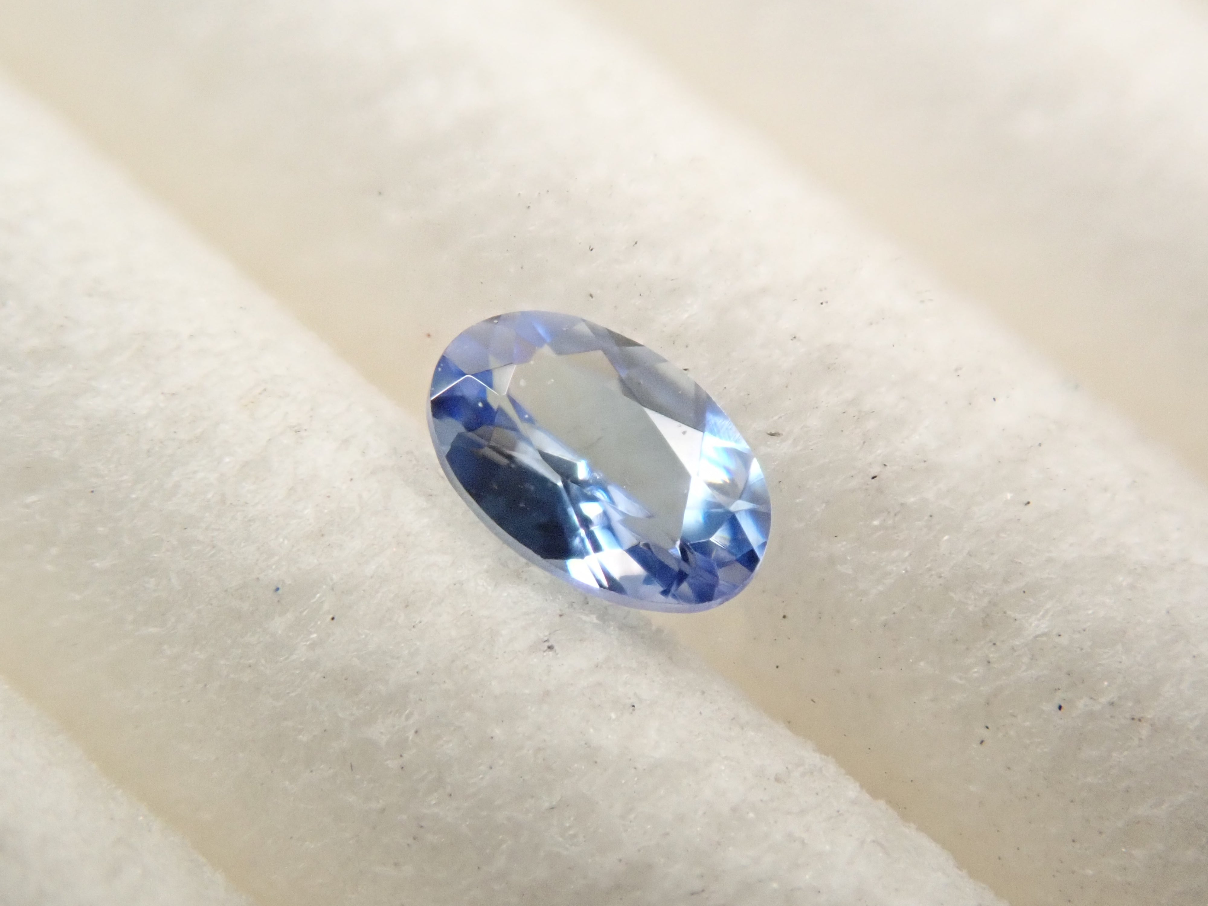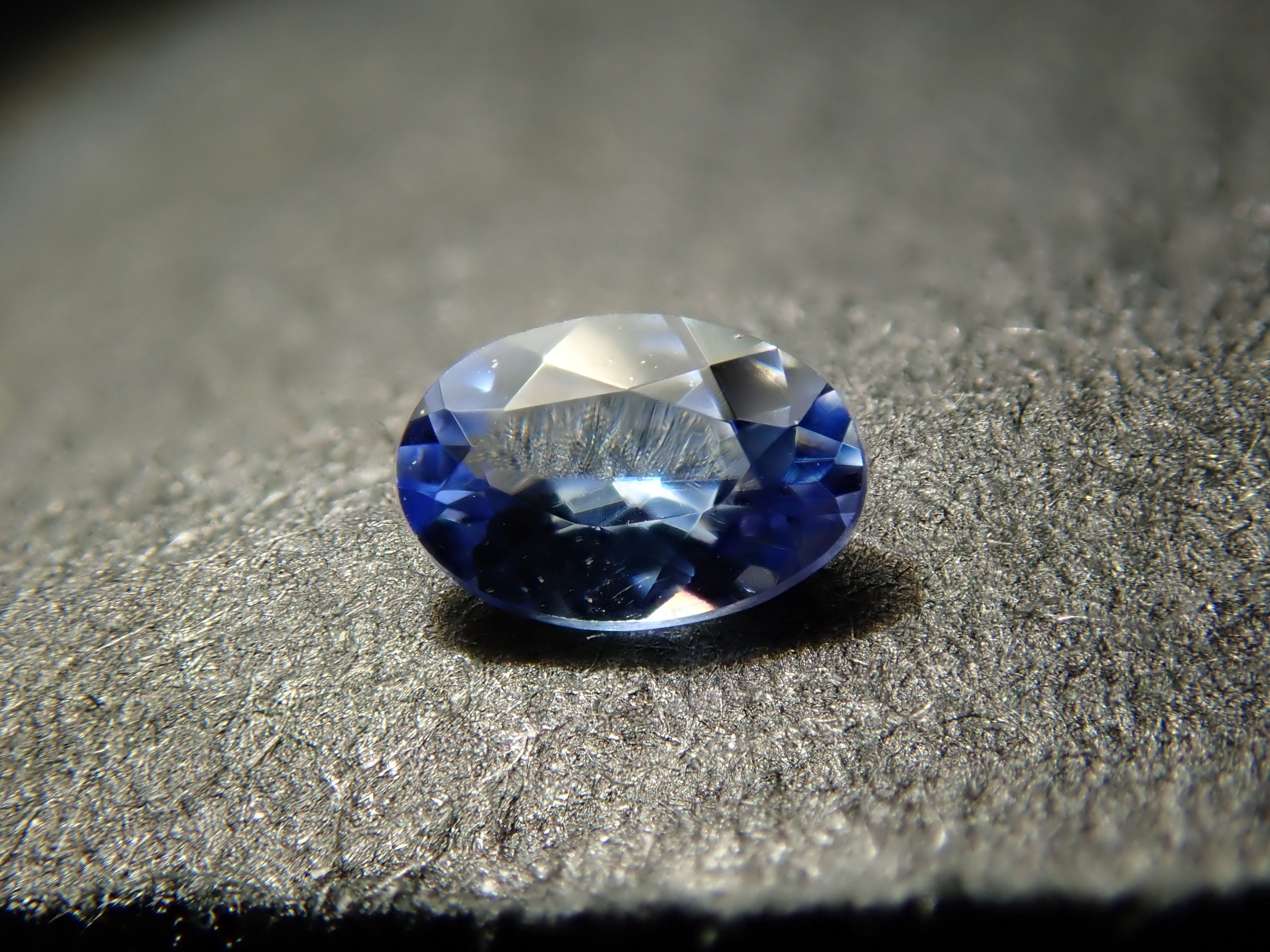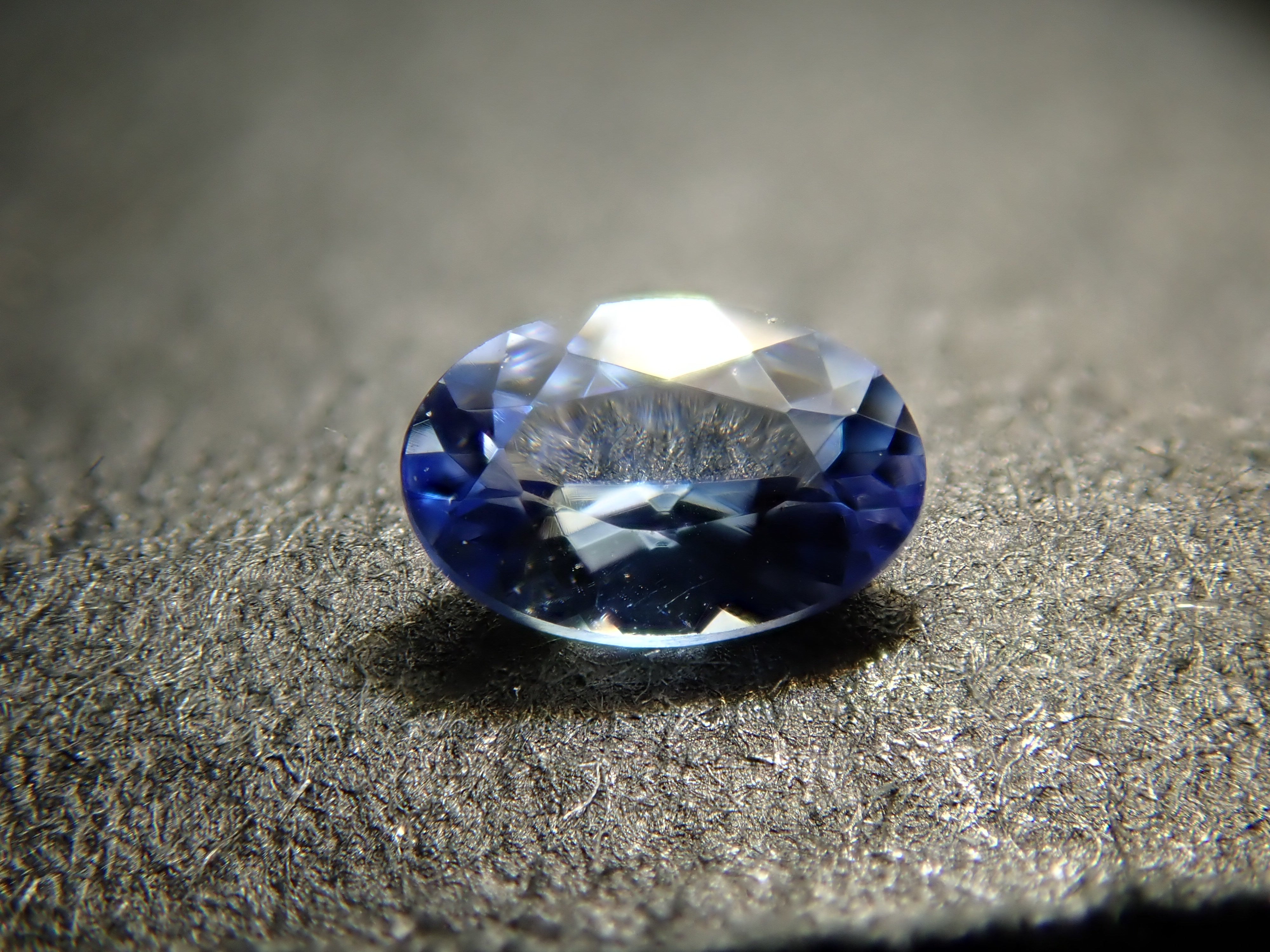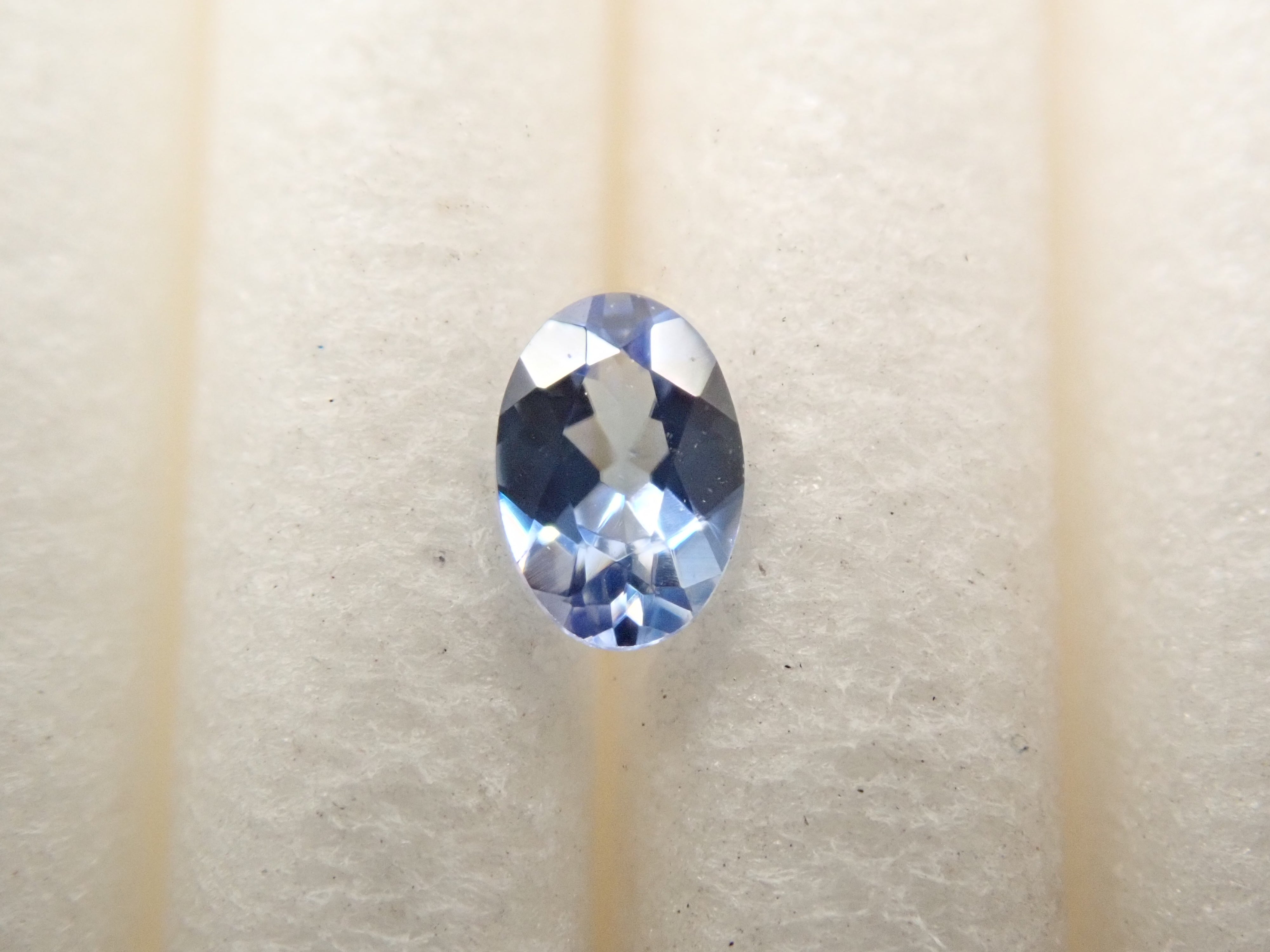 這是一顆橢圓形切割的藍錐礦,透明度高,顏色美麗。