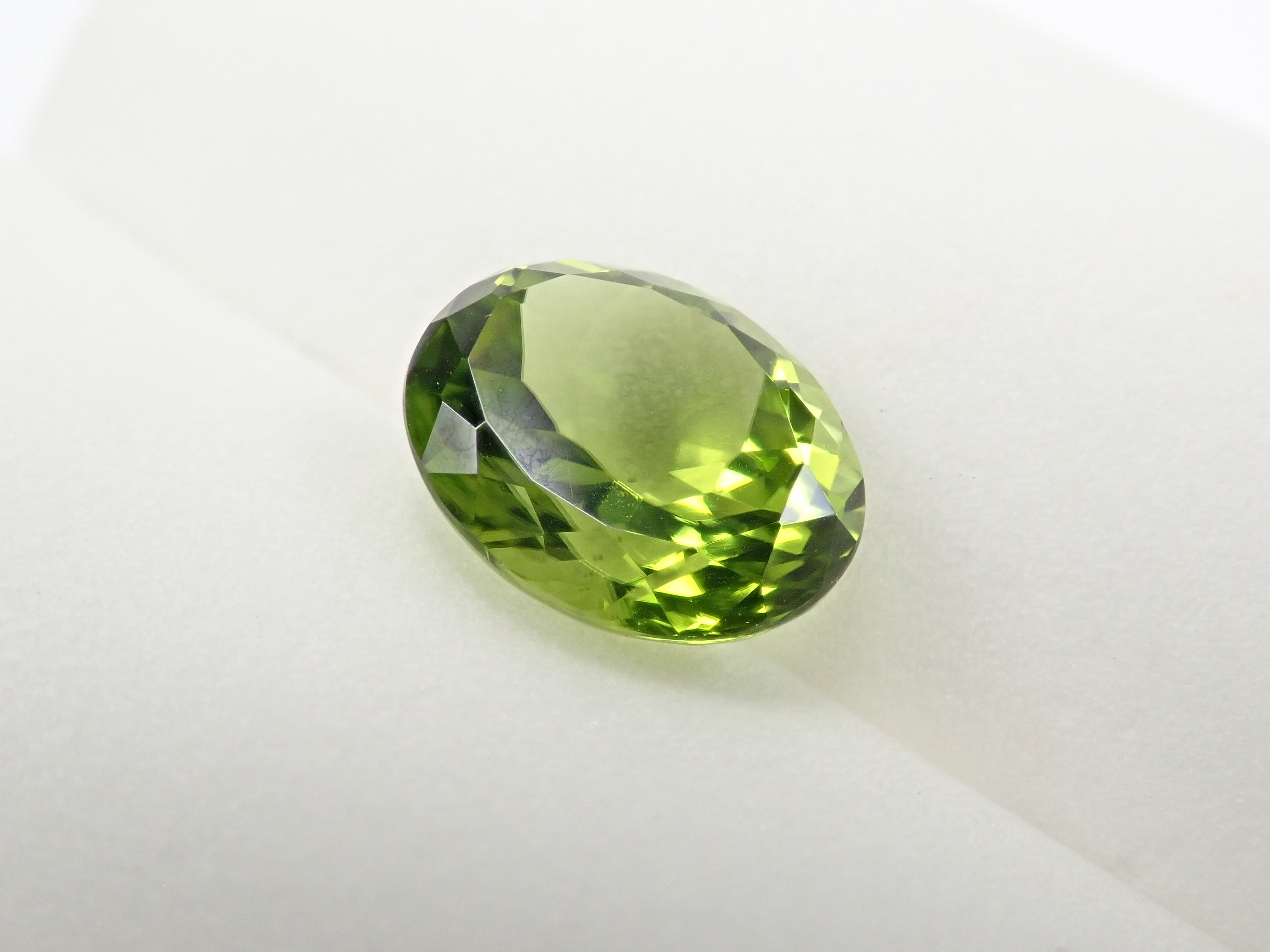 橄欖石是一種擁有如嫩草般迷人淺綠色的寶石。它以八月誕生石而聞名。 「橄欖石」一詞源自於拉丁文「olive」(橄欖)。它年輕、清新的綠色,如同橄欖般迷人。這3.847克拉的優質橢圓形切割橄欖石,色澤深邃,透明度高。