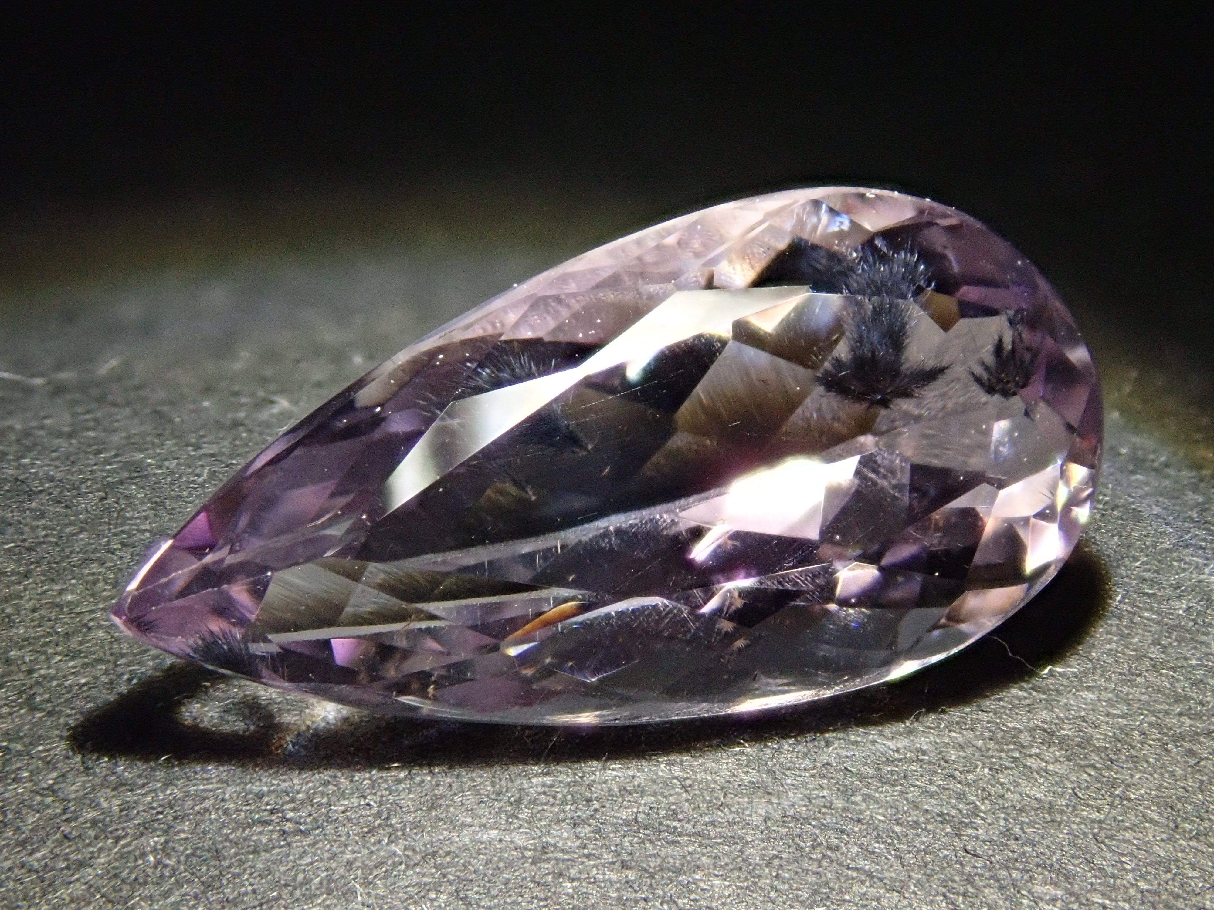 石英,日文稱為“suisho”,是日本常見的寶石,但它也是一種意義深遠的寶石,擁有眾多種類,包括紫水晶和黃水晶。這是一種在市場上難以找到的稀有寶石,含有一種名為「膽鹼石」的礦物。據說,這種礦物以英國地質學家托馬斯·H·霍蘭德的名字命名。這是剛從圖森運來的紫水晶中的氫氧化鈉石。